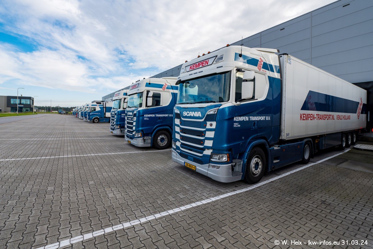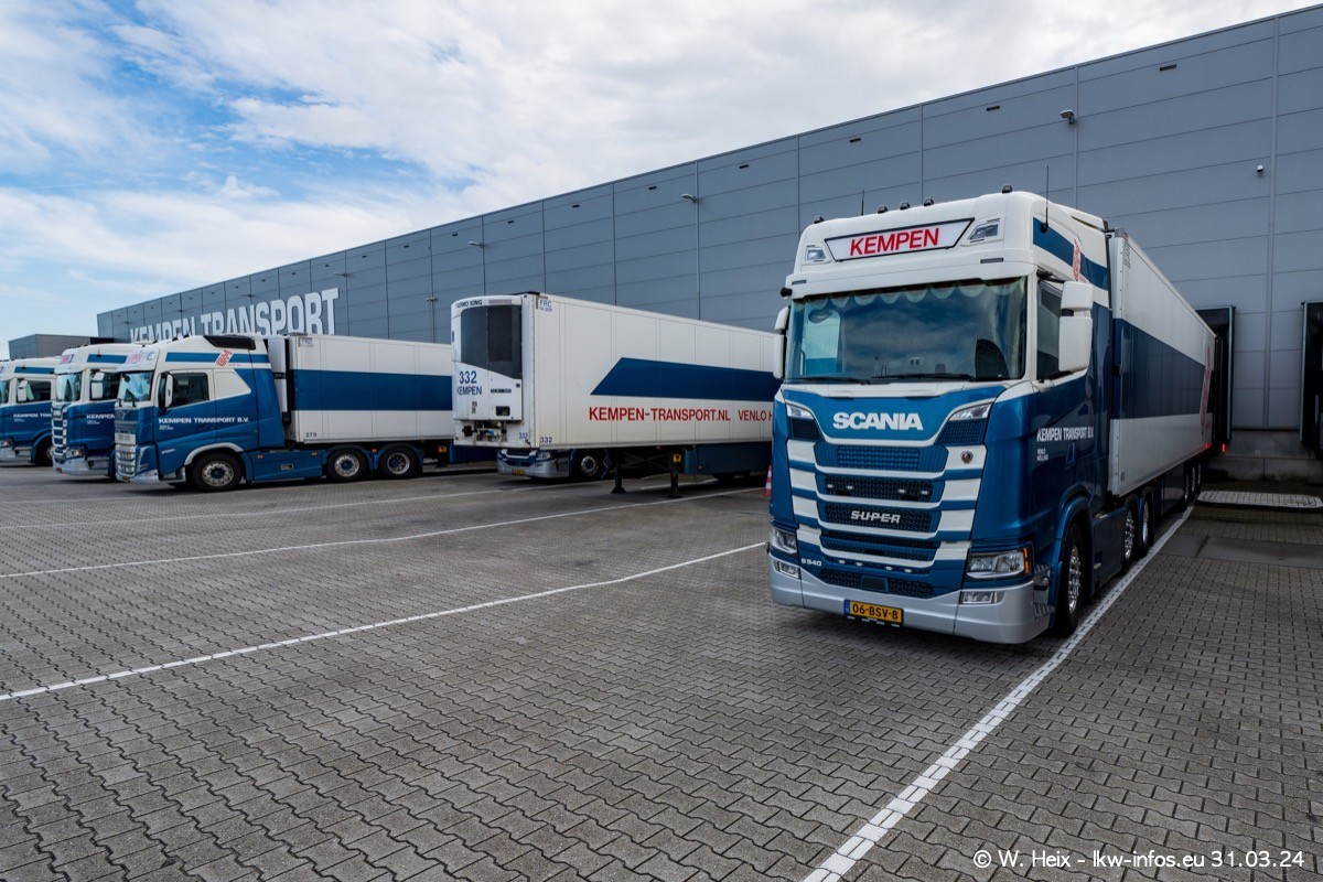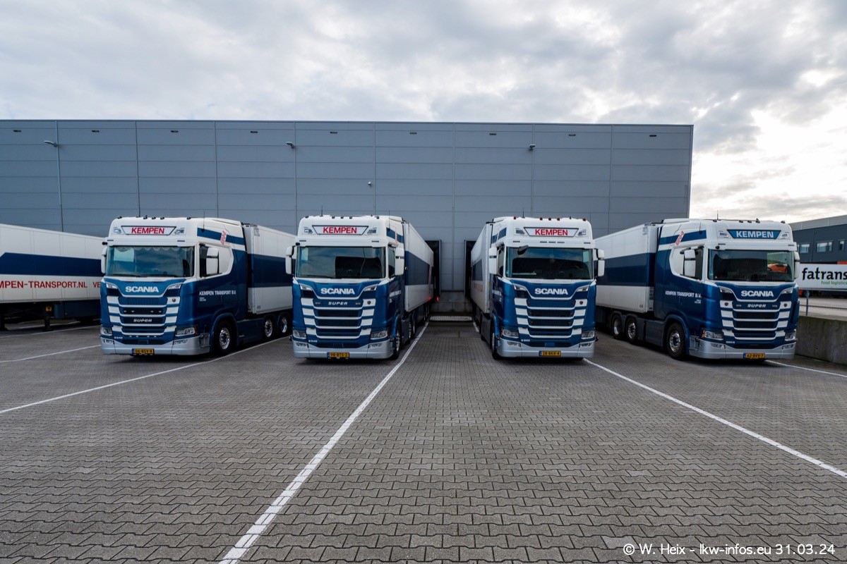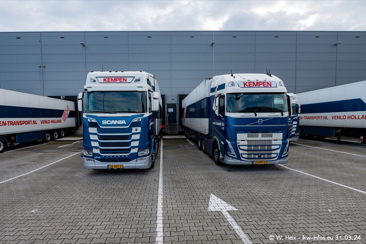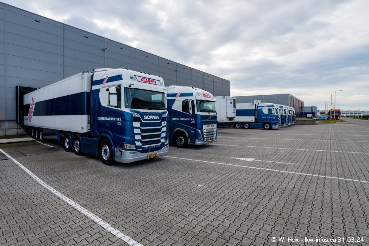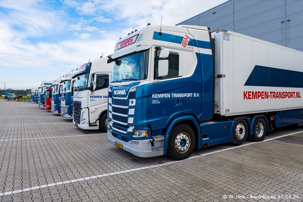 In diesem Jahr sind schon insgesamt mindestens 10 neue LKW in den Fuhrpark gekommen. Alle neuen LKW sind seit 2024 daran zu erkennen, dass aon der Fromt oben am Dach der Kempen-Schriftzug jetzt weiß ist in einem blauen Feld. Bisher war dieser immer rot auf weiß. Es waren so gut wie alle LKW zuzhause und standen auch wieder auf den Nachbargrundstücken. Diesmal konnte ich keinen SCANIA R Streamline und keinen DAF XF mehr sehen bis auf den neuen blauen DAF XG+ natürlich. Vermutlich sind jetzt alle alten SCANIA und DAF ersetzt durch VOLVO FH 5 und SCANIA R/S NextGen. Es sind natürlich auch wieder Bilder von den Chatern (Subunternehmern) in den Galerien enthalten. Auch hier tut sich immer wieder mal was.