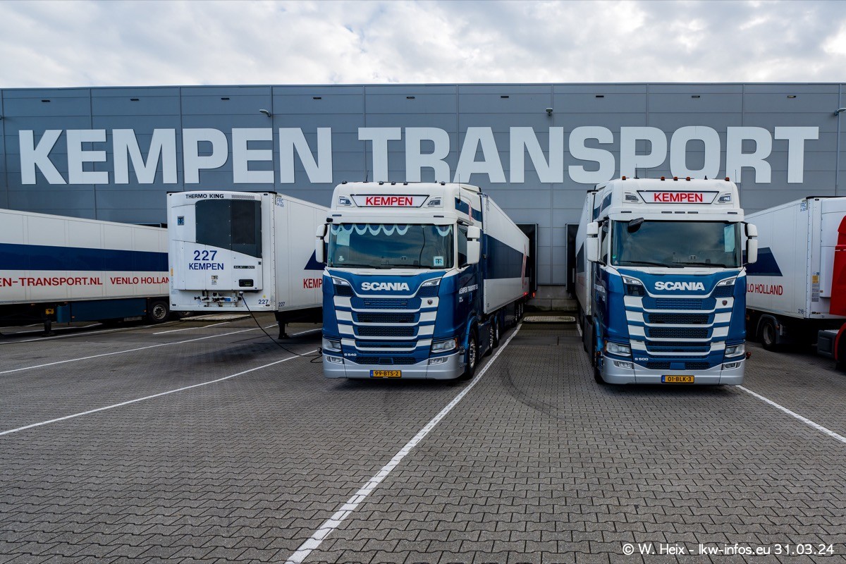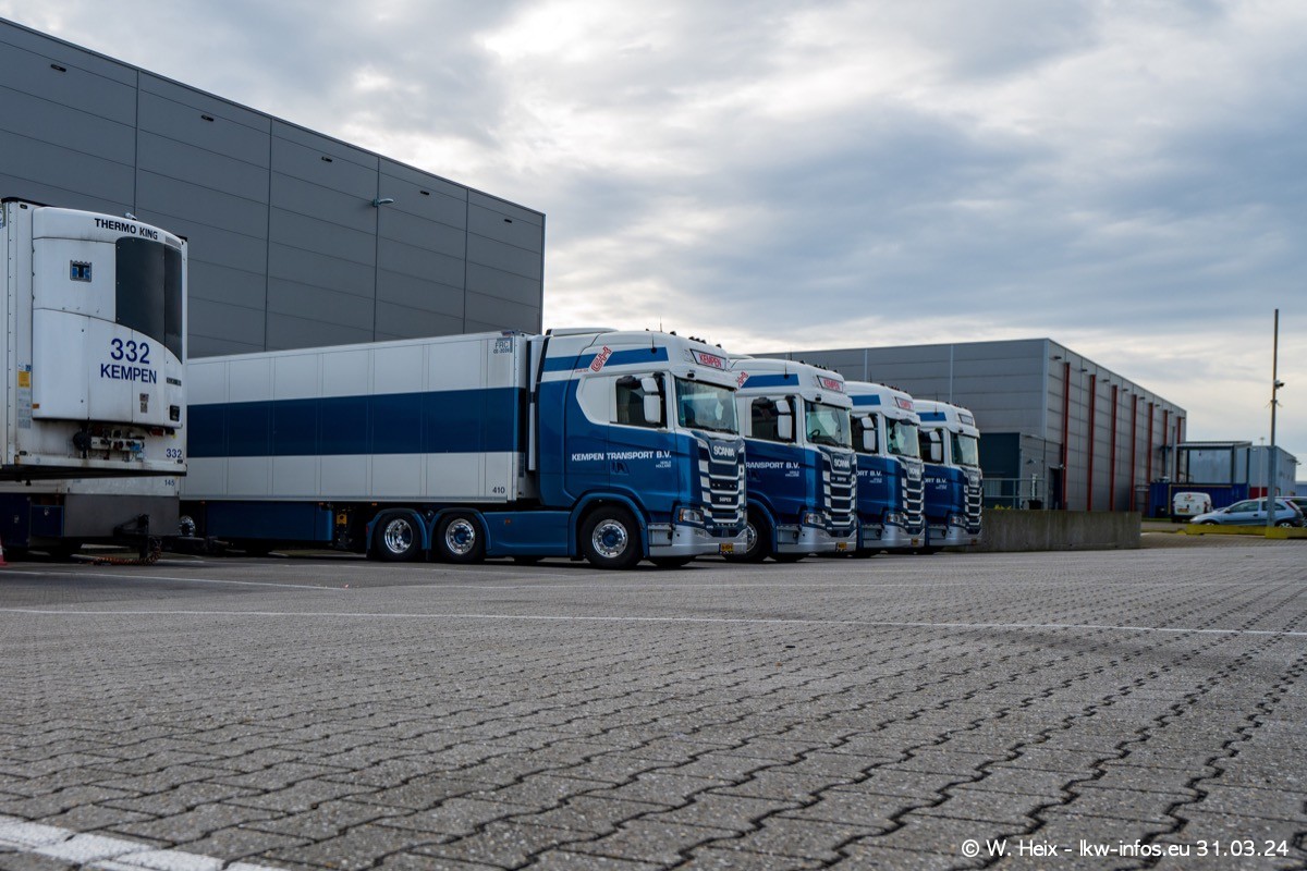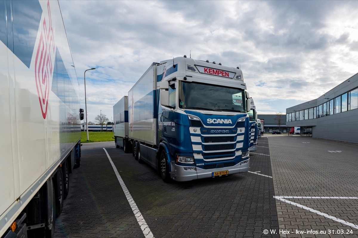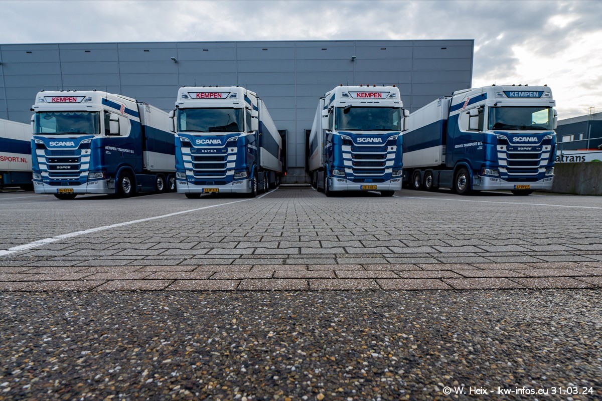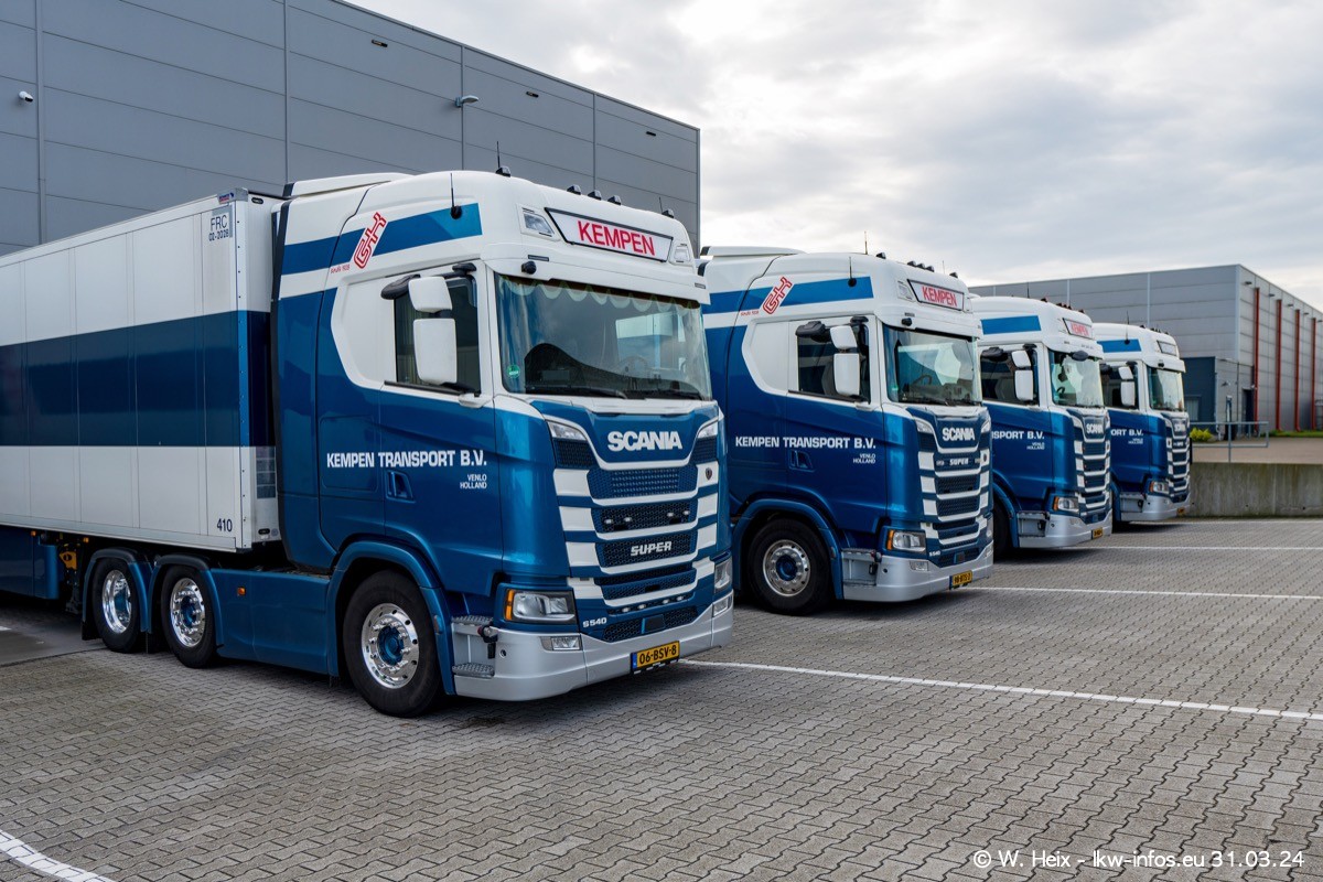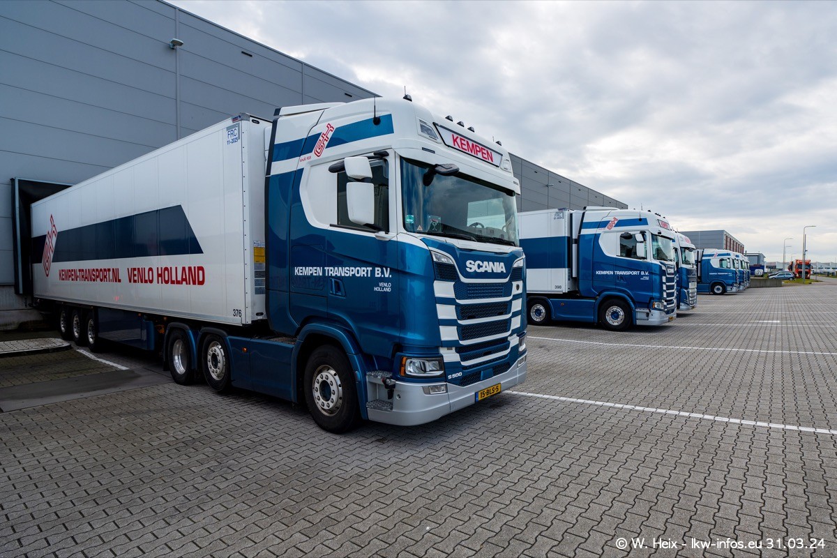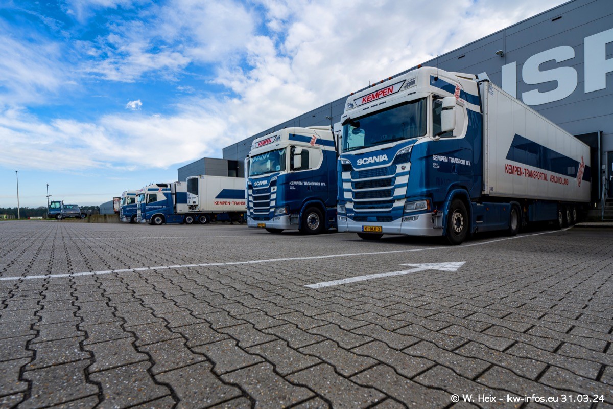 In diesem Jahr sind schon insgesamt mindestens 10 neue LKW in den Fuhrpark gekommen. Alle neuen LKW sind seit 2024 daran zu erkennen, dass aon der Fromt oben am Dach der Kempen-Schriftzug jetzt weiß ist in einem blauen Feld. Bisher war dieser immer rot auf weiß. Es waren so gut wie alle LKW zuzhause und standen auch wieder auf den Nachbargrundstücken. Diesmal konnte ich keinen SCANIA R Streamline und keinen DAF XF mehr sehen bis auf den neuen blauen DAF XG+ natürlich. Vermutlich sind jetzt alle alten SCANIA und DAF ersetzt durch VOLVO FH 5 und SCANIA R/S NextGen. Es sind natürlich auch wieder Bilder von den Chatern (Subunternehmern) in den Galerien enthalten. Auch hier tut sich immer wieder mal was.
