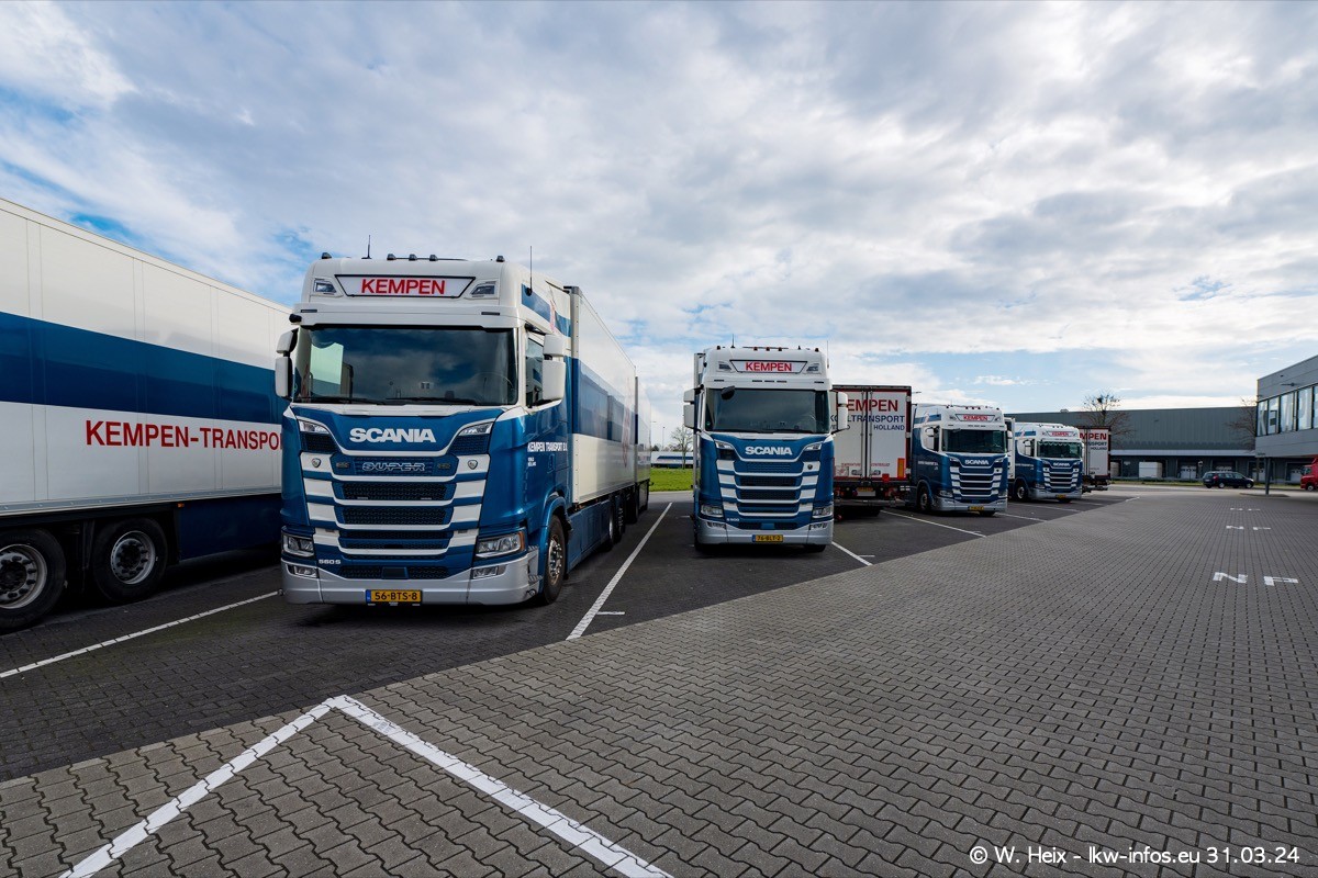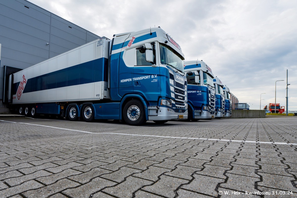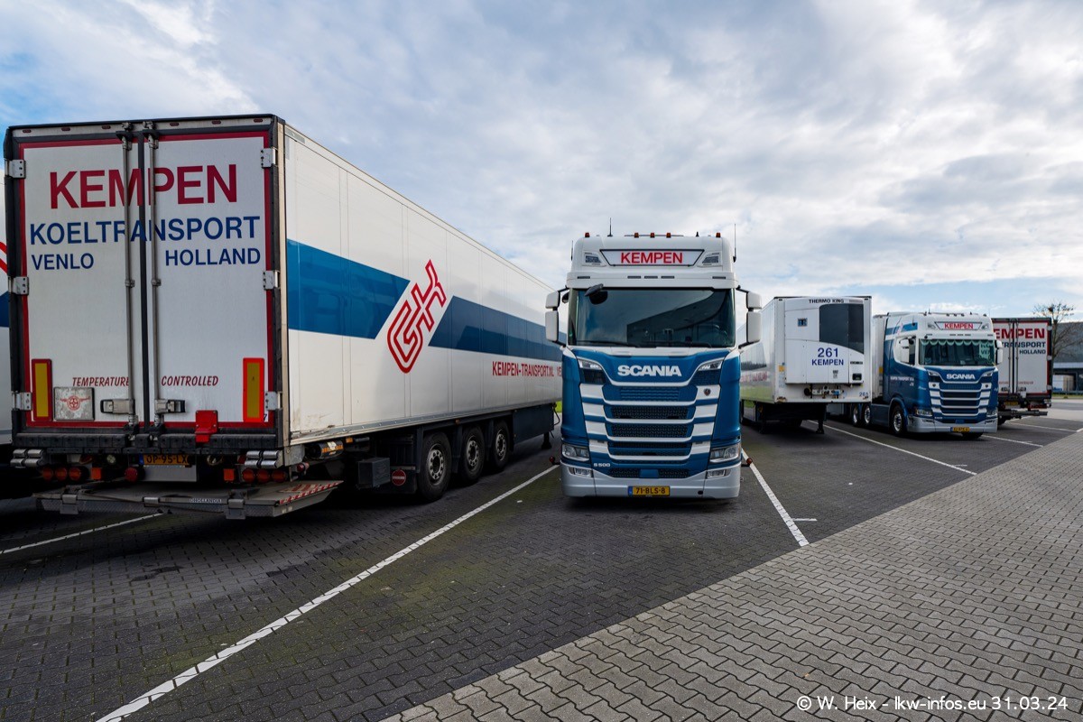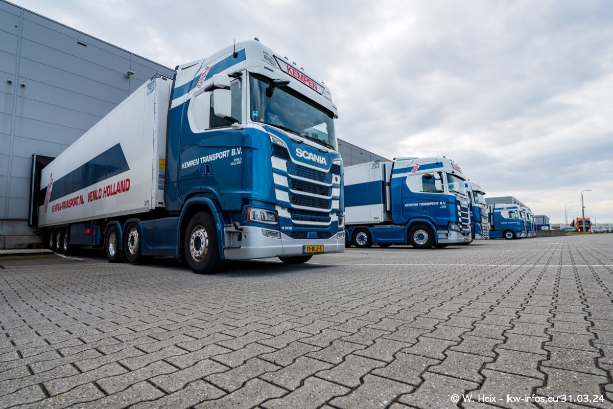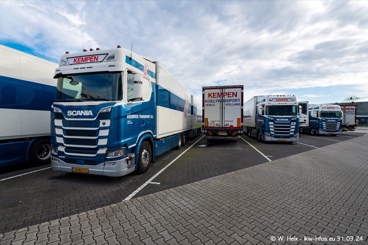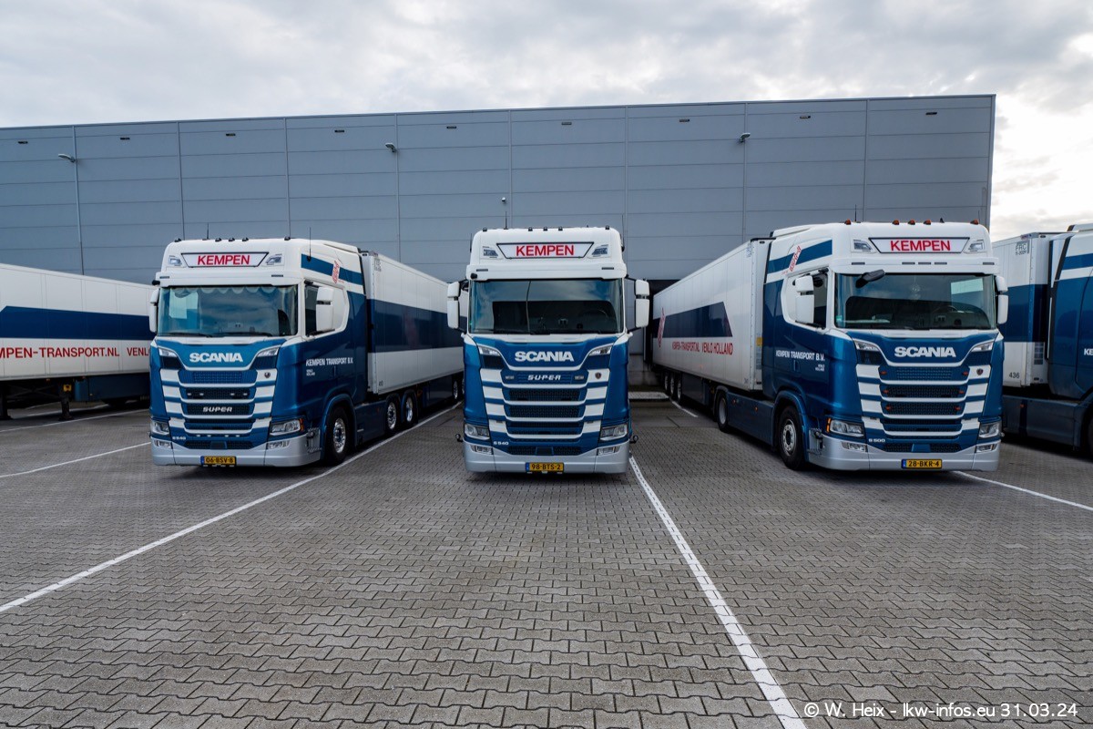 In diesem Jahr sind schon insgesamt mindestens 10 neue LKW in den Fuhrpark gekommen. Alle neuen LKW sind seit 2024 daran zu erkennen, dass aon der Fromt oben am Dach der Kempen-Schriftzug jetzt weiß ist in einem blauen Feld. Bisher war dieser immer rot auf weiß. Es waren so gut wie alle LKW zuzhause und standen auch wieder auf den Nachbargrundstücken. Diesmal konnte ich keinen SCANIA R Streamline und keinen DAF XF mehr sehen bis auf den neuen blauen DAF XG+ natürlich. Vermutlich sind jetzt alle alten SCANIA und DAF ersetzt durch VOLVO FH 5 und SCANIA R/S NextGen. Es sind natürlich auch wieder Bilder von den Chatern (Subunternehmern) in den Galerien enthalten. Auch hier tut sich immer wieder mal was.