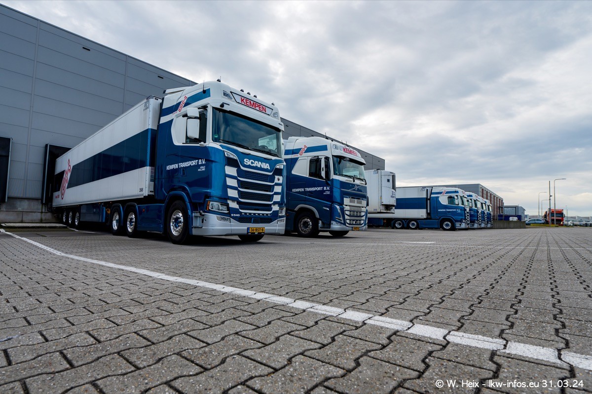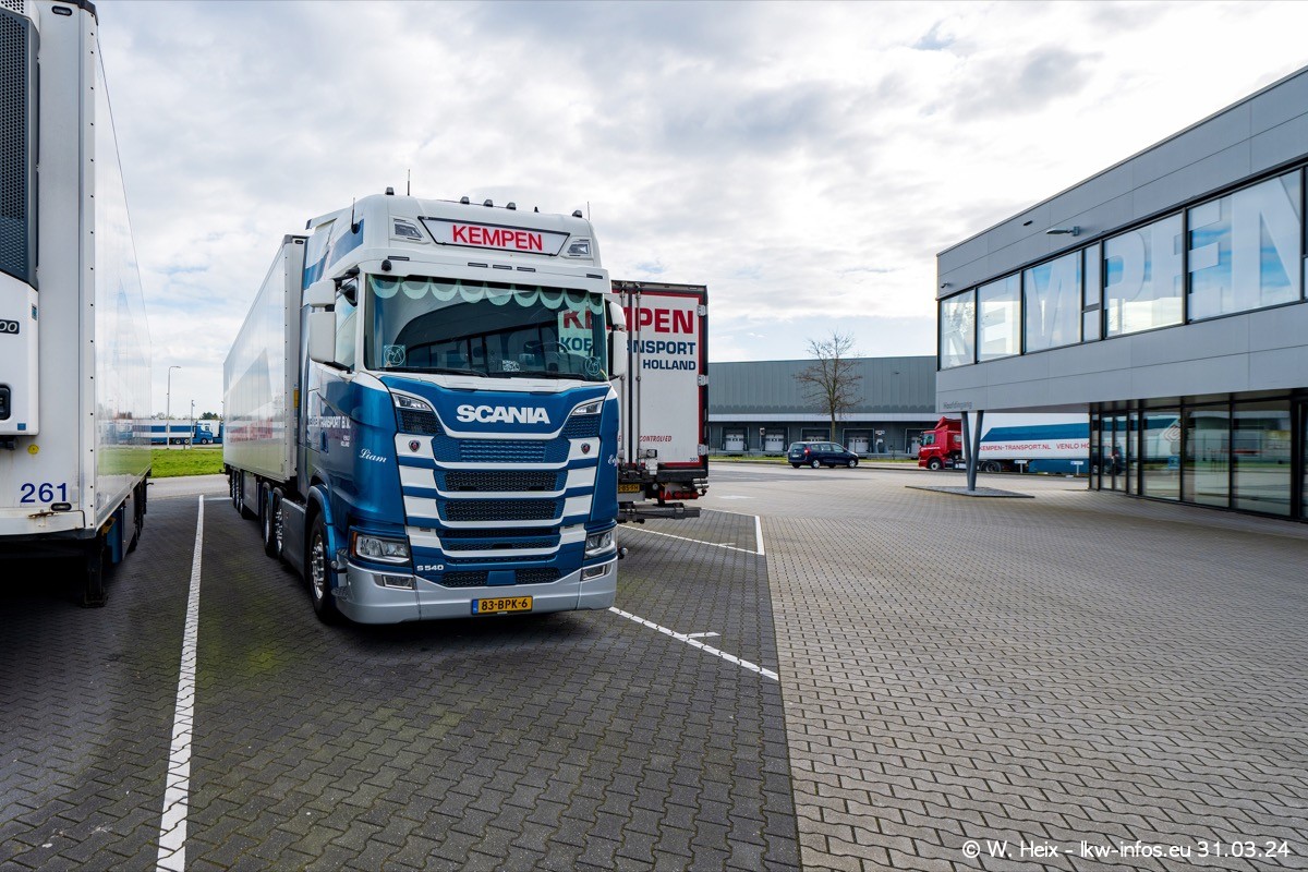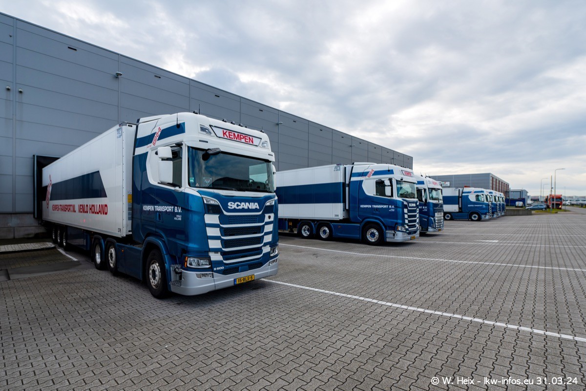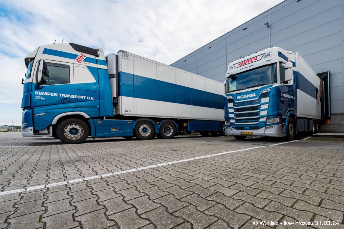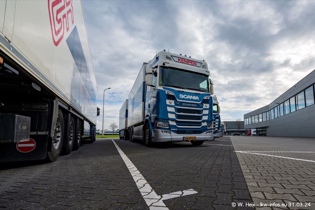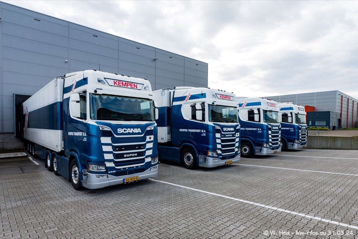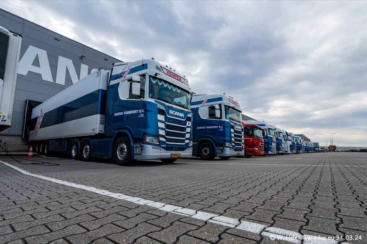 In diesem Jahr sind schon insgesamt mindestens 10 neue LKW in den Fuhrpark gekommen. Alle neuen LKW sind seit 2024 daran zu erkennen, dass aon der Fromt oben am Dach der Kempen-Schriftzug jetzt weiß ist in einem blauen Feld. Bisher war dieser immer rot auf weiß. Es waren so gut wie alle LKW zuzhause und standen auch wieder auf den Nachbargrundstücken. Diesmal konnte ich keinen SCANIA R Streamline und keinen DAF XF mehr sehen bis auf den neuen blauen DAF XG+ natürlich. Vermutlich sind jetzt alle alten SCANIA und DAF ersetzt durch VOLVO FH 5 und SCANIA R/S NextGen. Es sind natürlich auch wieder Bilder von den Chatern (Subunternehmern) in den Galerien enthalten. Auch hier tut sich immer wieder mal was.