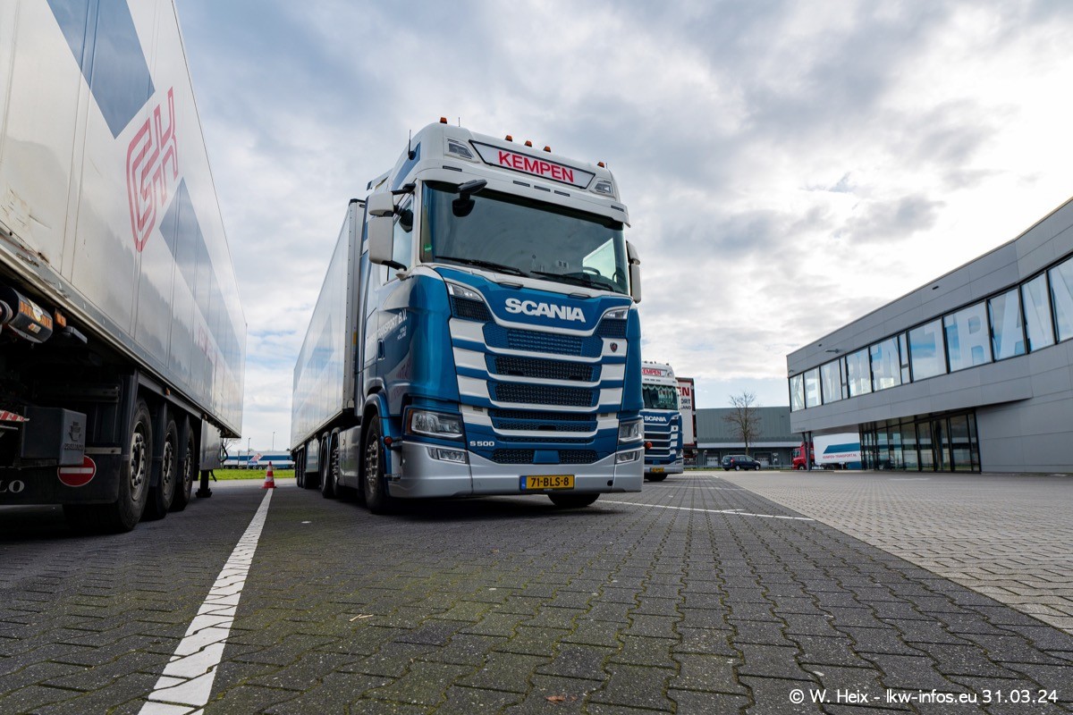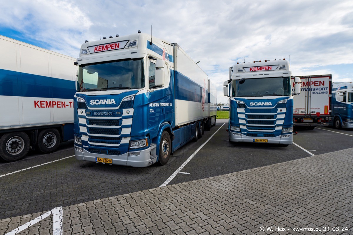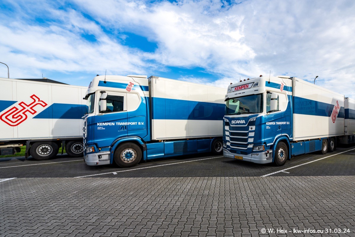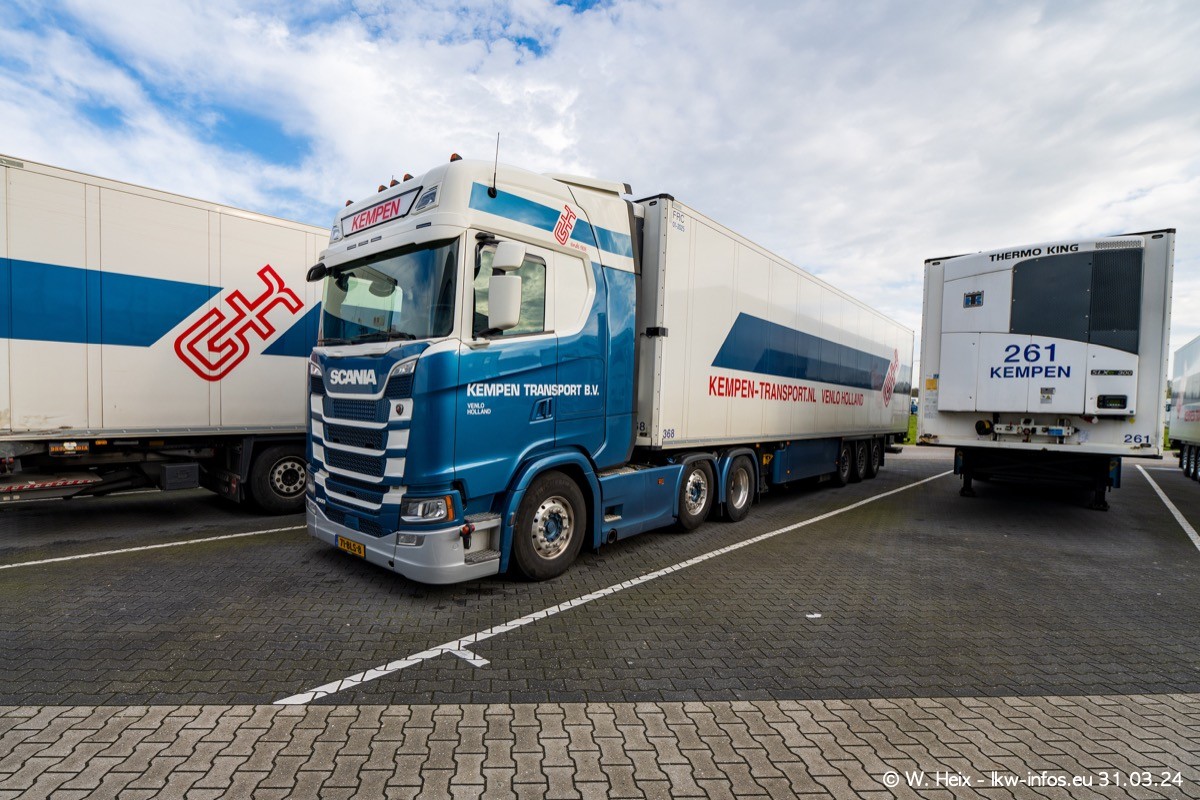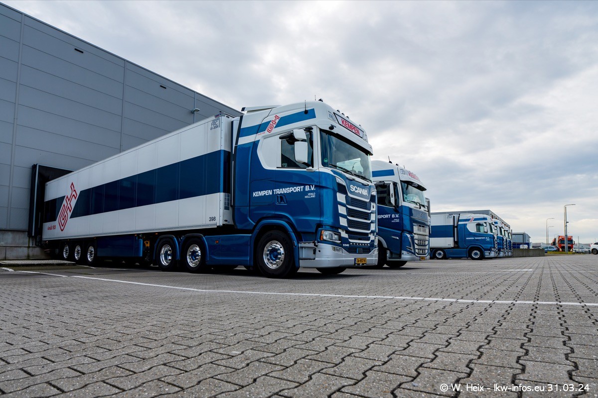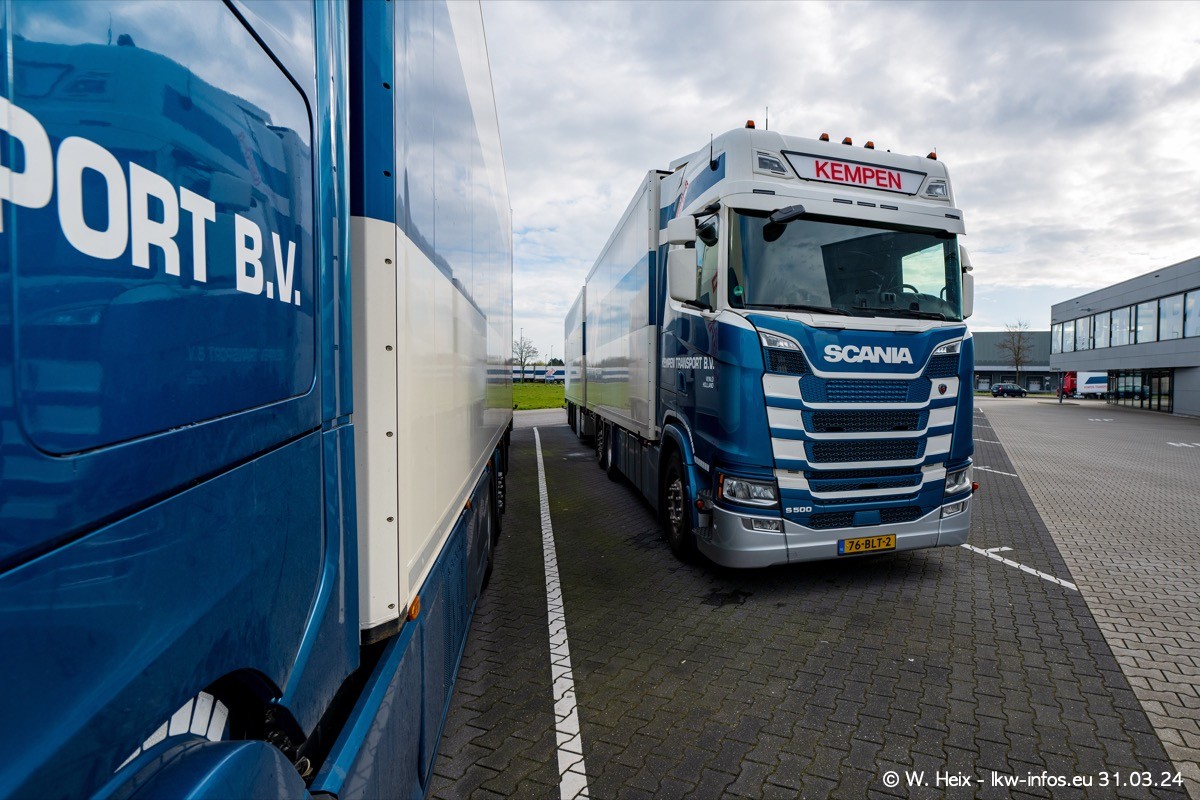 In diesem Jahr sind schon insgesamt mindestens 10 neue LKW in den Fuhrpark gekommen. Alle neuen LKW sind seit 2024 daran zu erkennen, dass aon der Fromt oben am Dach der Kempen-Schriftzug jetzt weiß ist in einem blauen Feld. Bisher war dieser immer rot auf weiß. Es waren so gut wie alle LKW zuzhause und standen auch wieder auf den Nachbargrundstücken. Diesmal konnte ich keinen SCANIA R Streamline und keinen DAF XF mehr sehen bis auf den neuen blauen DAF XG+ natürlich. Vermutlich sind jetzt alle alten SCANIA und DAF ersetzt durch VOLVO FH 5 und SCANIA R/S NextGen. Es sind natürlich auch wieder Bilder von den Chatern (Subunternehmern) in den Galerien enthalten. Auch hier tut sich immer wieder mal was.