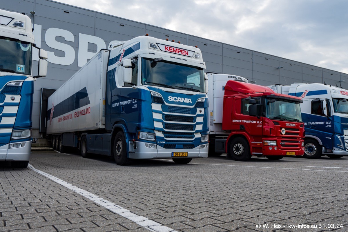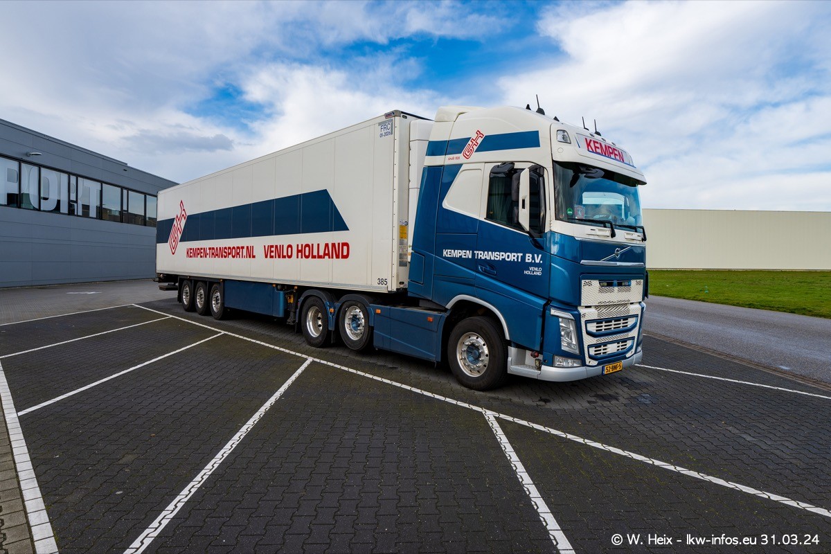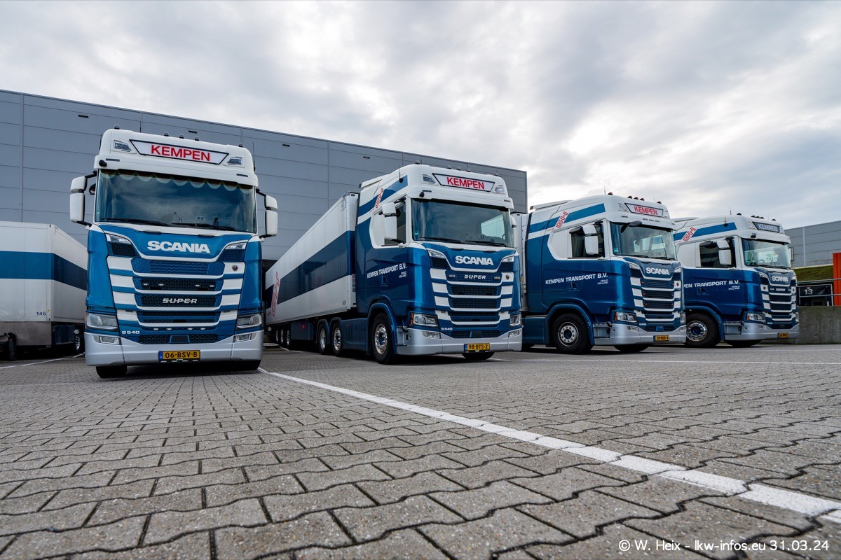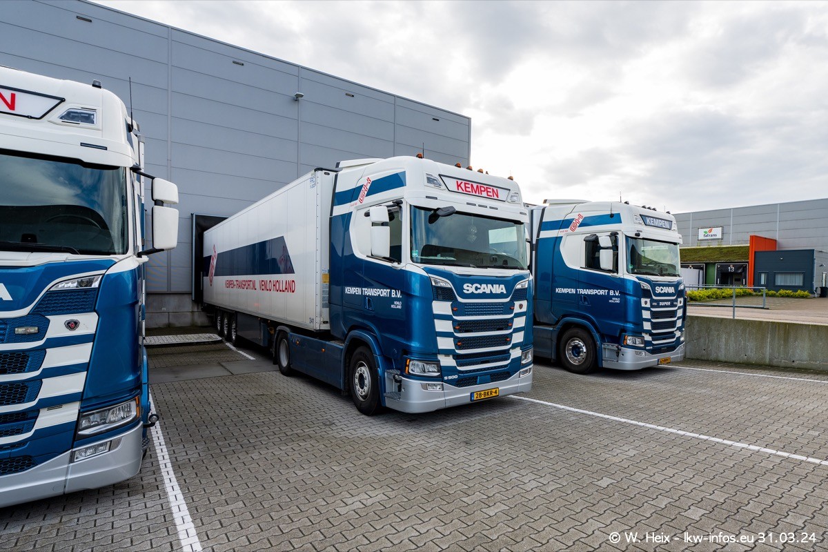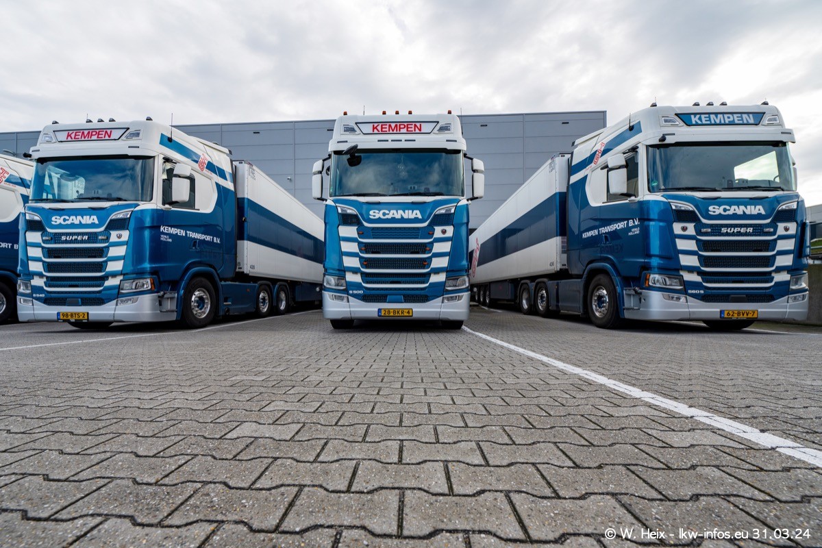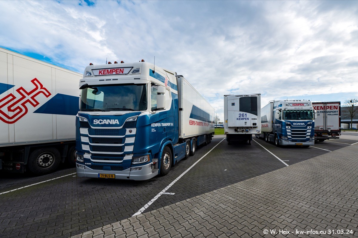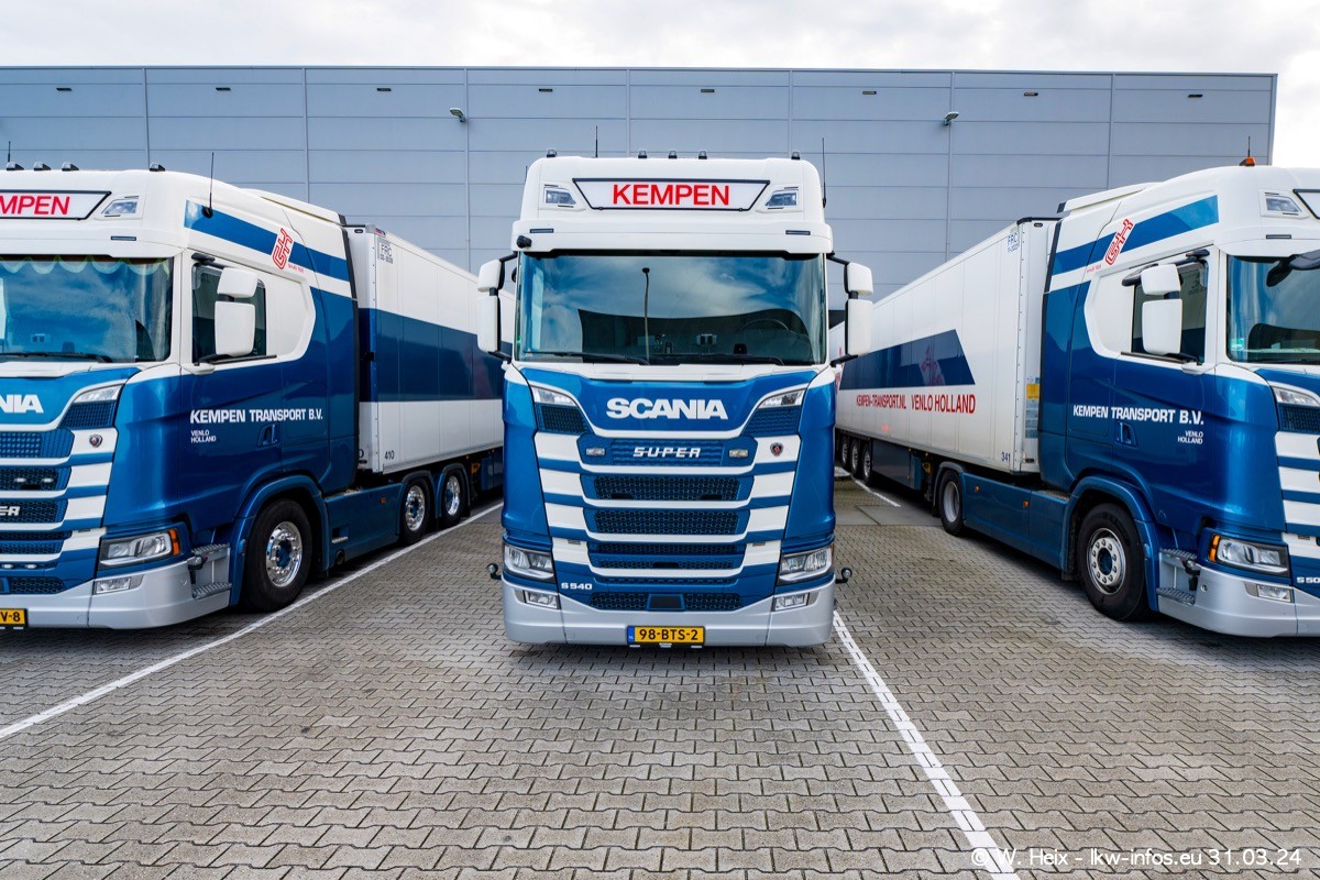 In diesem Jahr sind schon insgesamt mindestens 10 neue LKW in den Fuhrpark gekommen. Alle neuen LKW sind seit 2024 daran zu erkennen, dass aon der Fromt oben am Dach der Kempen-Schriftzug jetzt weiß ist in einem blauen Feld. Bisher war dieser immer rot auf weiß. Es waren so gut wie alle LKW zuzhause und standen auch wieder auf den Nachbargrundstücken. Diesmal konnte ich keinen SCANIA R Streamline und keinen DAF XF mehr sehen bis auf den neuen blauen DAF XG+ natürlich. Vermutlich sind jetzt alle alten SCANIA und DAF ersetzt durch VOLVO FH 5 und SCANIA R/S NextGen. Es sind natürlich auch wieder Bilder von den Chatern (Subunternehmern) in den Galerien enthalten. Auch hier tut sich immer wieder mal was.