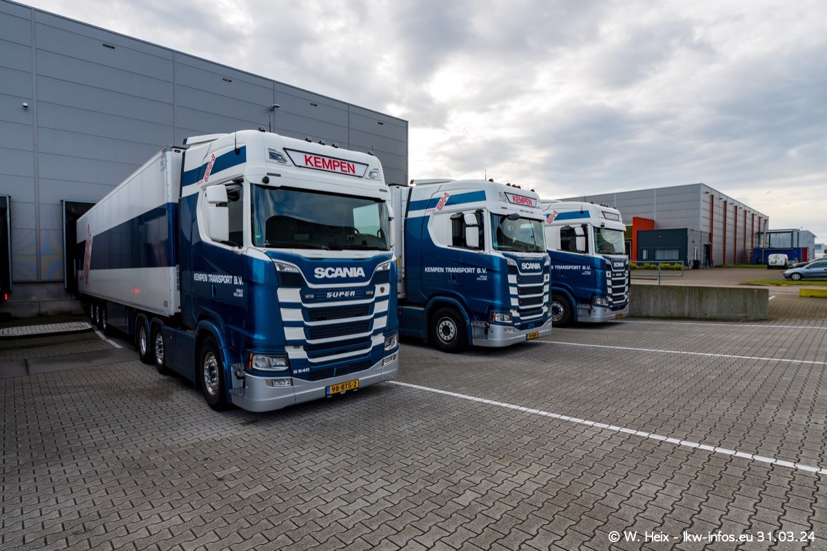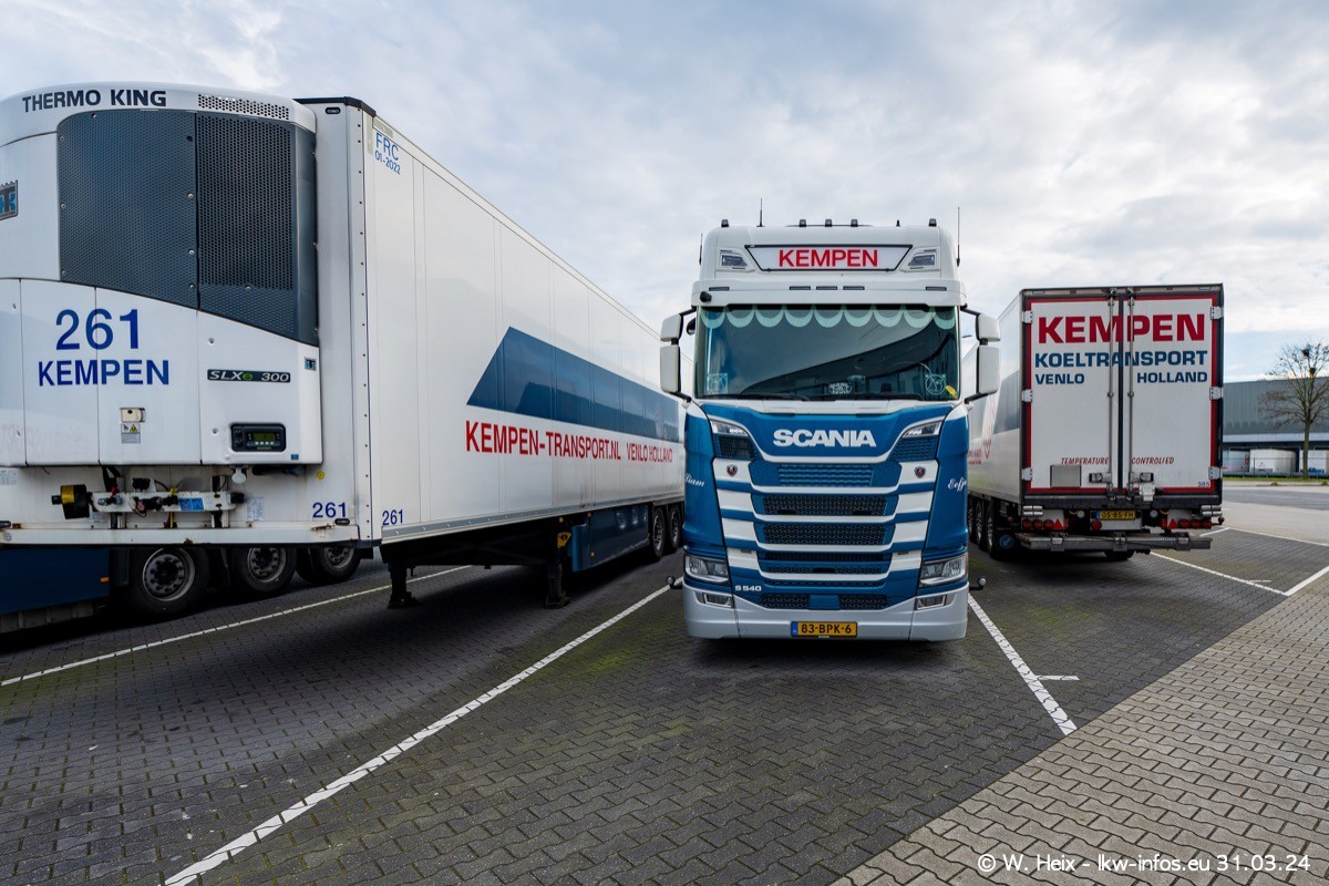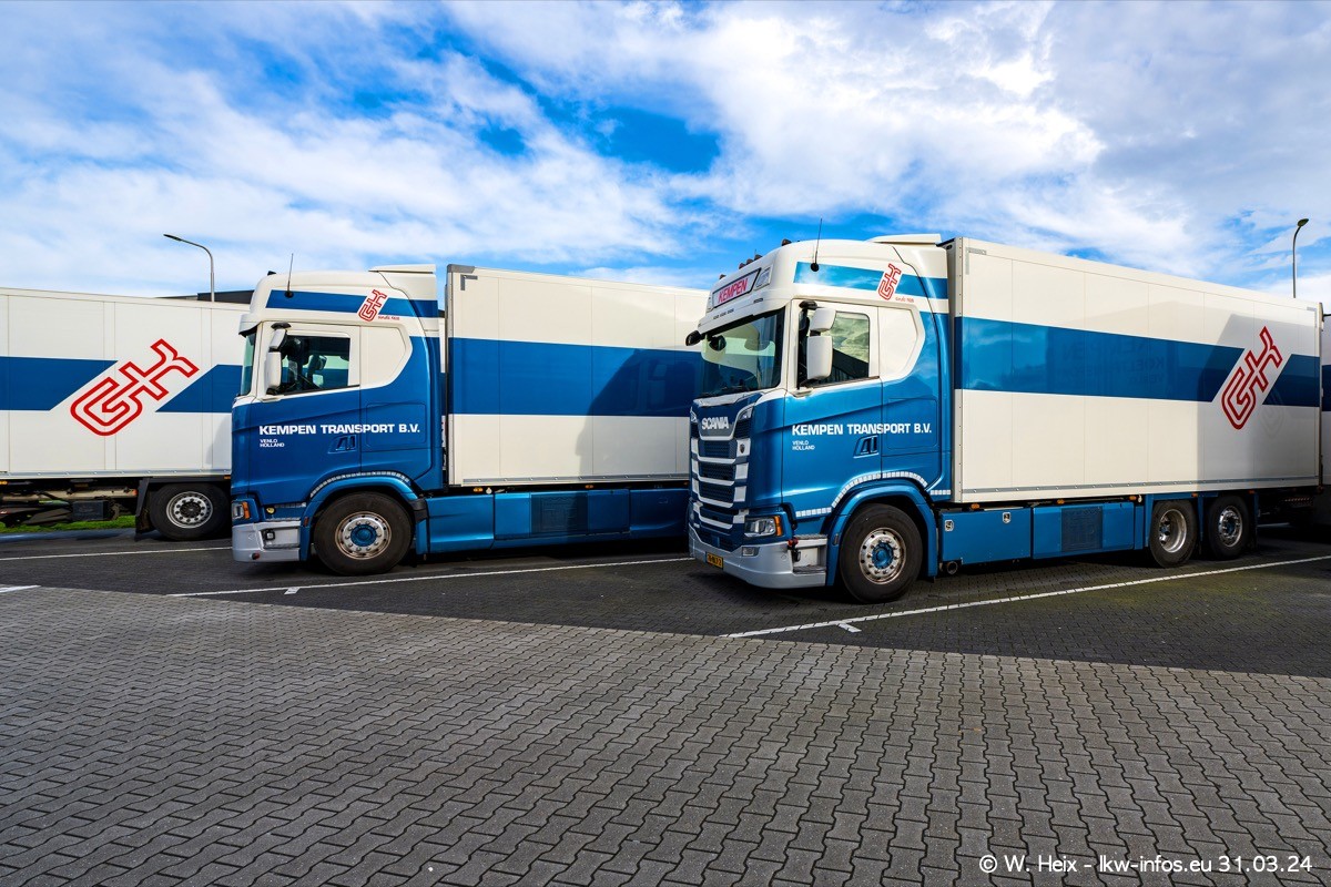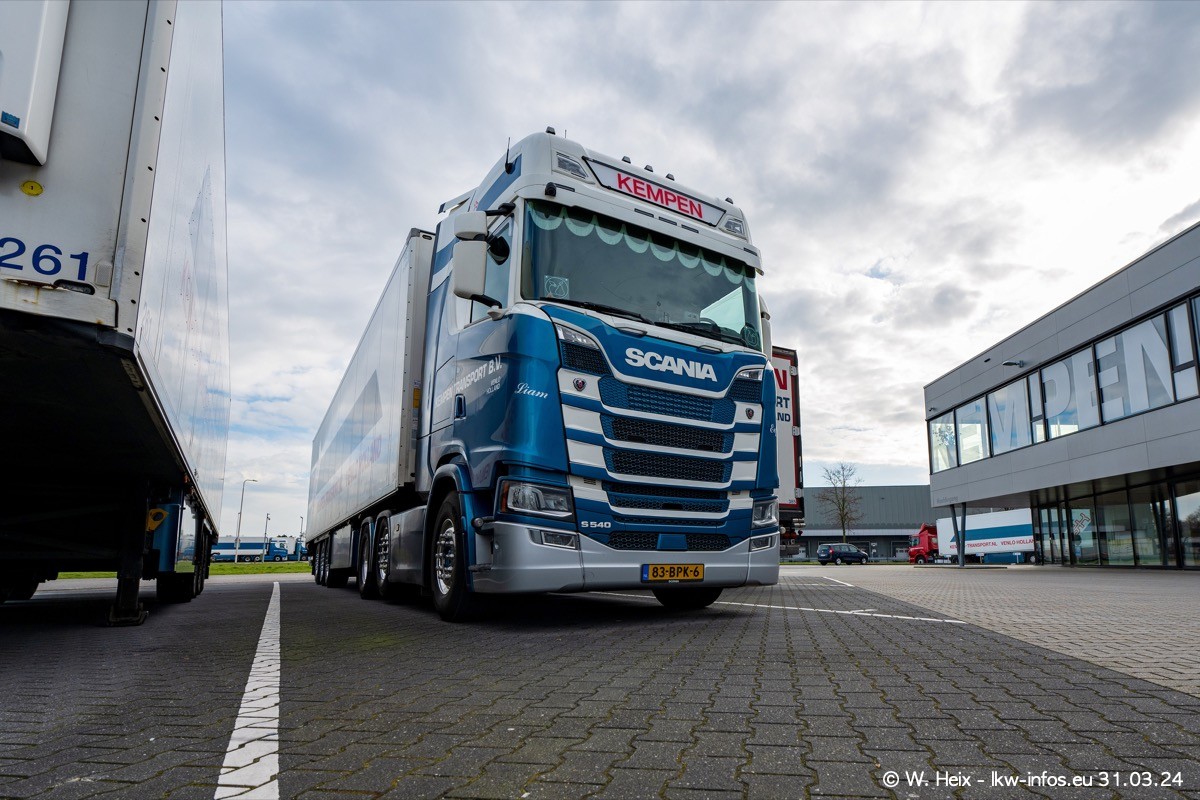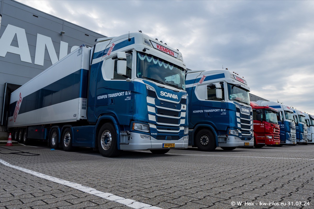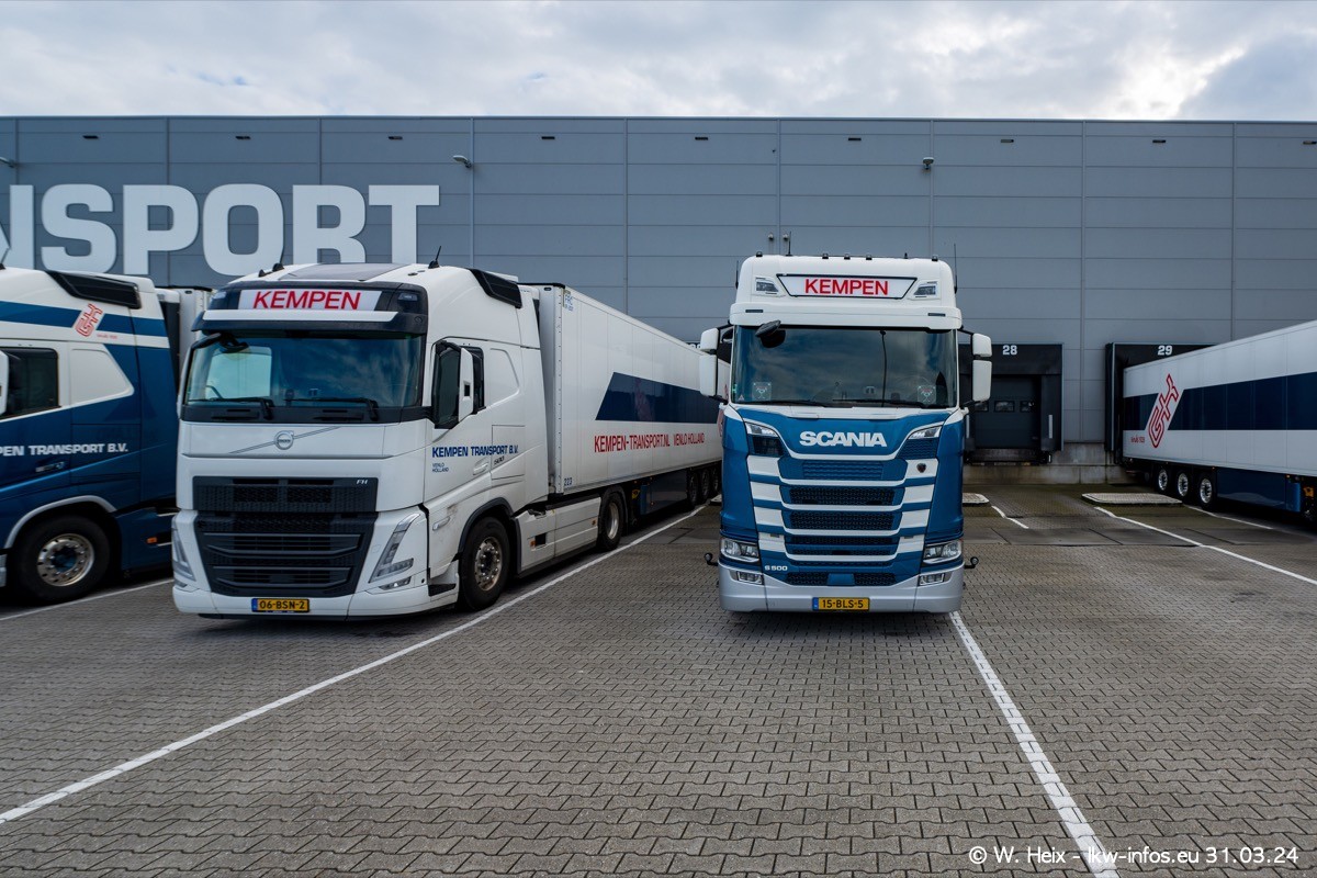In diesem Jahr sind schon insgesamt mindestens 10 neue LKW in den Fuhrpark gekommen. Alle neuen LKW sind seit 2024 daran zu erkennen, dass aon der Fromt oben am Dach der Kempen-Schriftzug jetzt weiß ist in einem blauen Feld. Bisher war dieser immer rot auf weiß. Es waren so gut wie alle LKW zuzhause und standen auch wieder auf den Nachbargrundstücken. Diesmal konnte ich keinen SCANIA R Streamline und keinen DAF XF mehr sehen bis auf den neuen blauen DAF XG+ natürlich. Vermutlich sind jetzt alle alten SCANIA und DAF ersetzt durch VOLVO FH 5 und SCANIA R/S NextGen. Es sind natürlich auch wieder Bilder von den Chatern (Subunternehmern) in den Galerien enthalten. Auch hier tut sich immer wieder mal was.