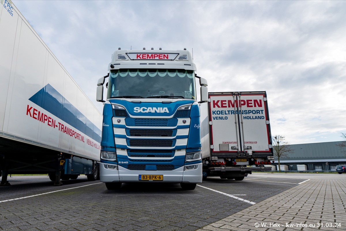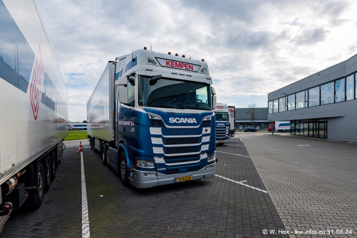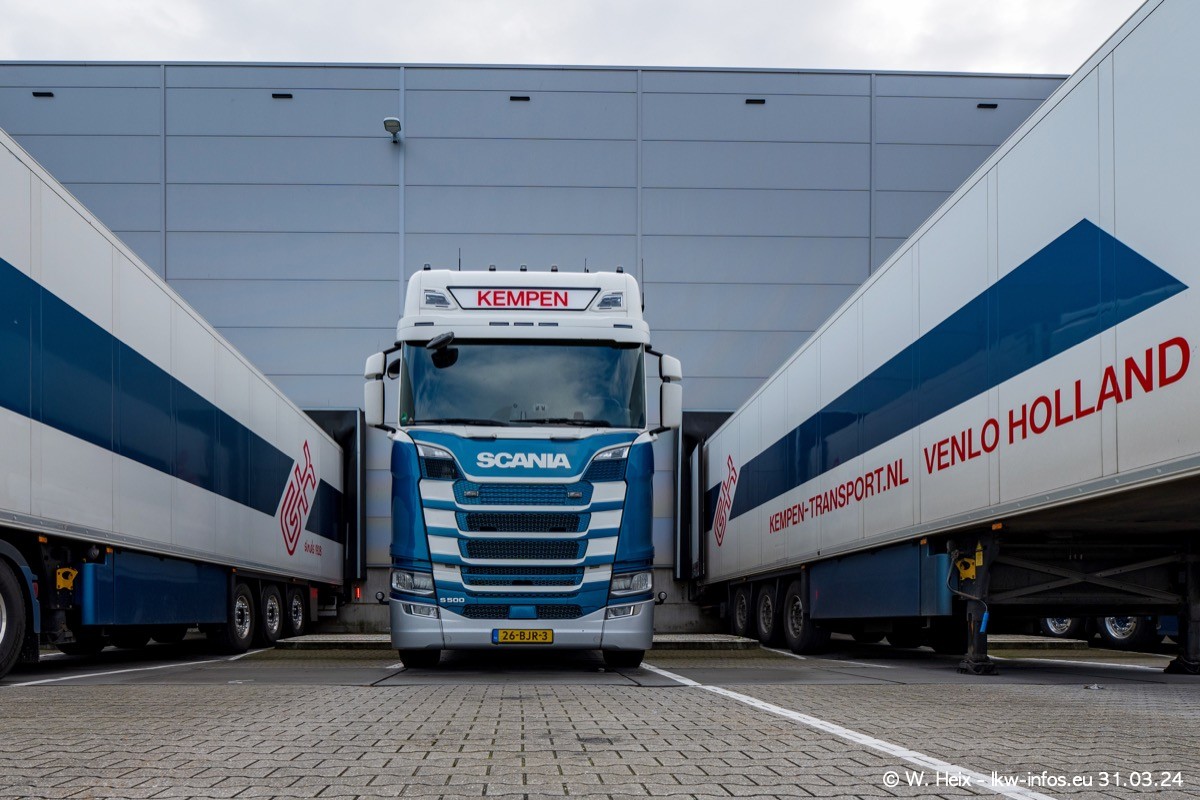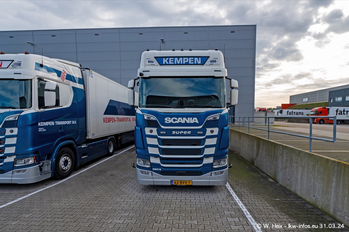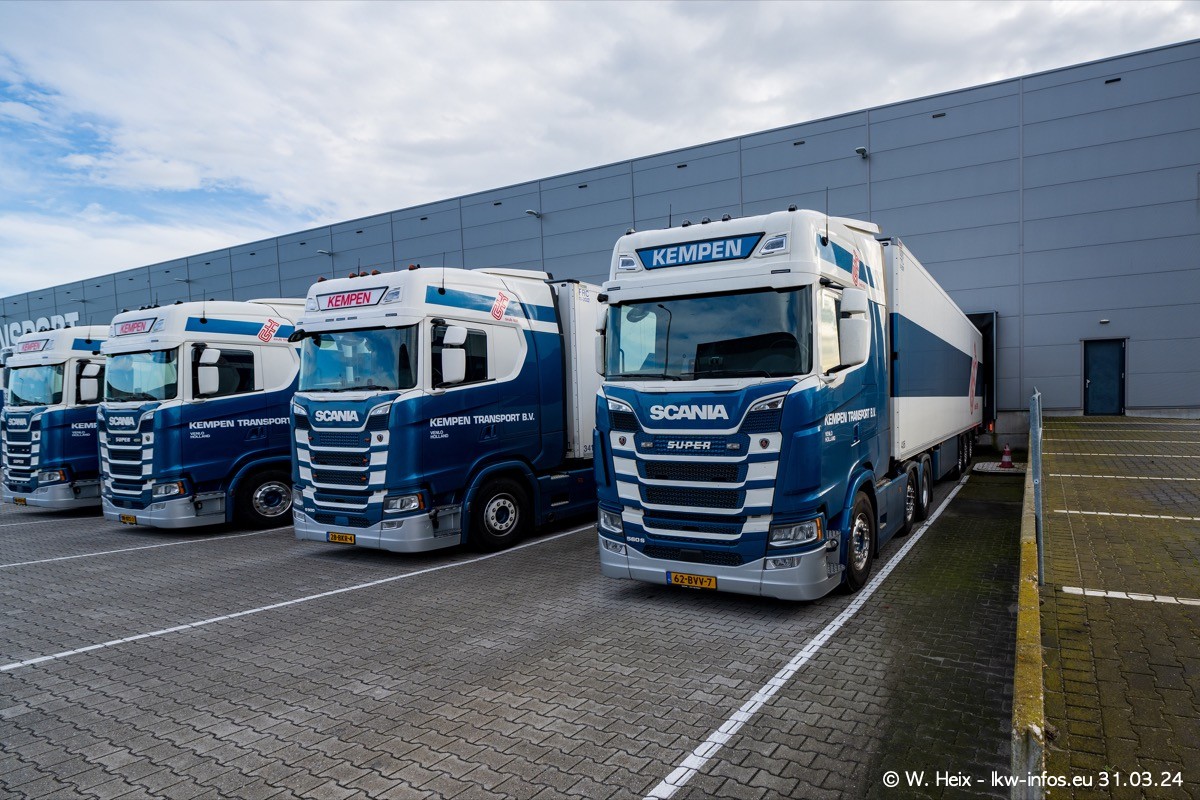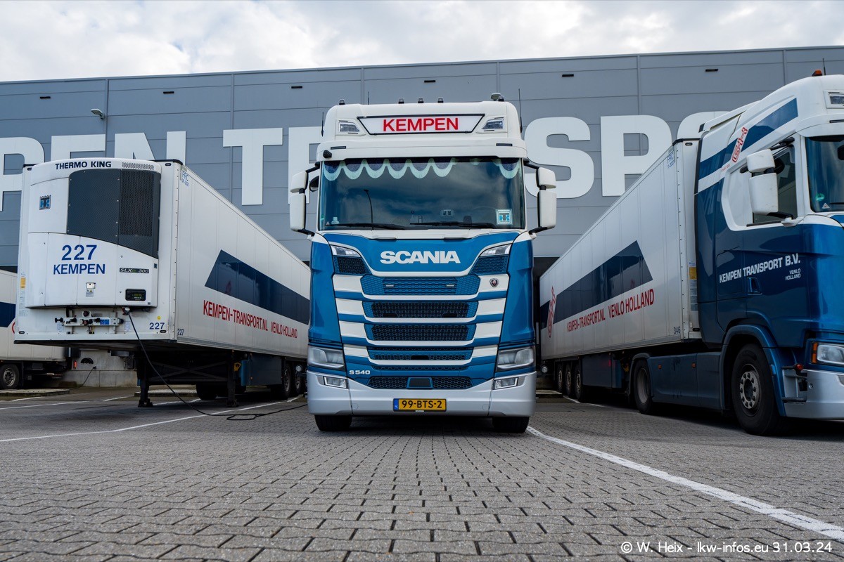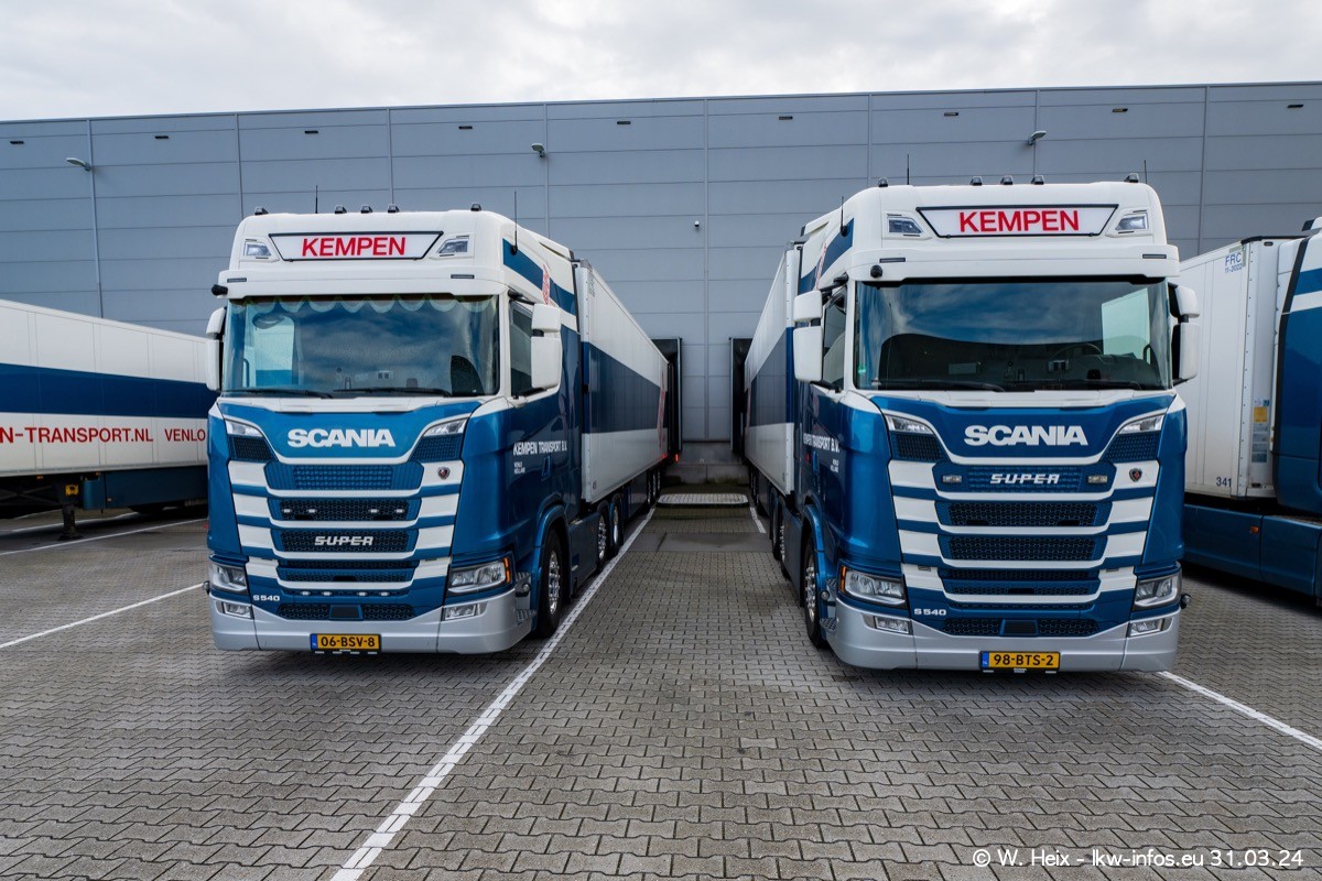 In diesem Jahr sind schon insgesamt mindestens 10 neue LKW in den Fuhrpark gekommen. Alle neuen LKW sind seit 2024 daran zu erkennen, dass aon der Fromt oben am Dach der Kempen-Schriftzug jetzt weiß ist in einem blauen Feld. Bisher war dieser immer rot auf weiß. Es waren so gut wie alle LKW zuzhause und standen auch wieder auf den Nachbargrundstücken. Diesmal konnte ich keinen SCANIA R Streamline und keinen DAF XF mehr sehen bis auf den neuen blauen DAF XG+ natürlich. Vermutlich sind jetzt alle alten SCANIA und DAF ersetzt durch VOLVO FH 5 und SCANIA R/S NextGen. Es sind natürlich auch wieder Bilder von den Chatern (Subunternehmern) in den Galerien enthalten. Auch hier tut sich immer wieder mal was.
