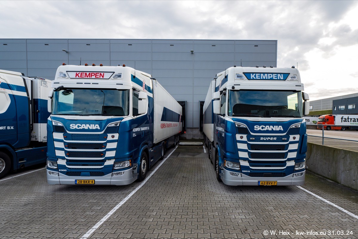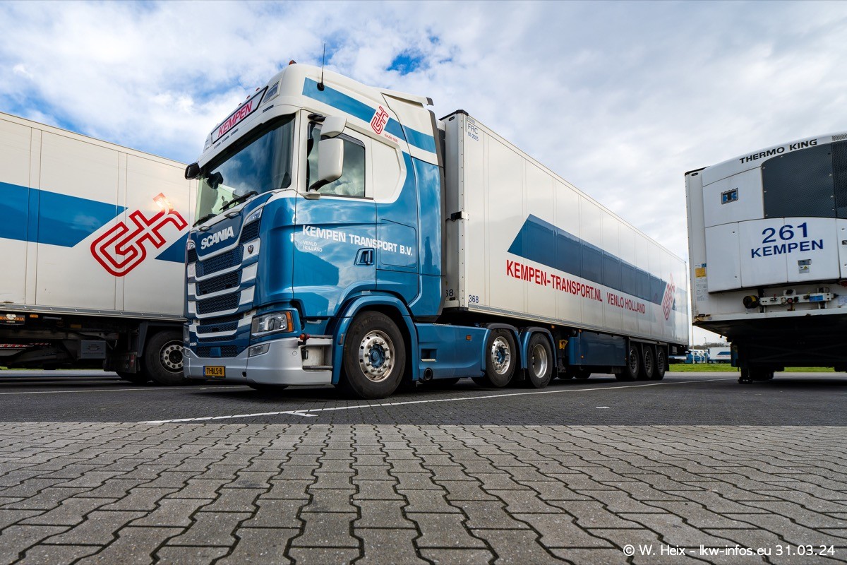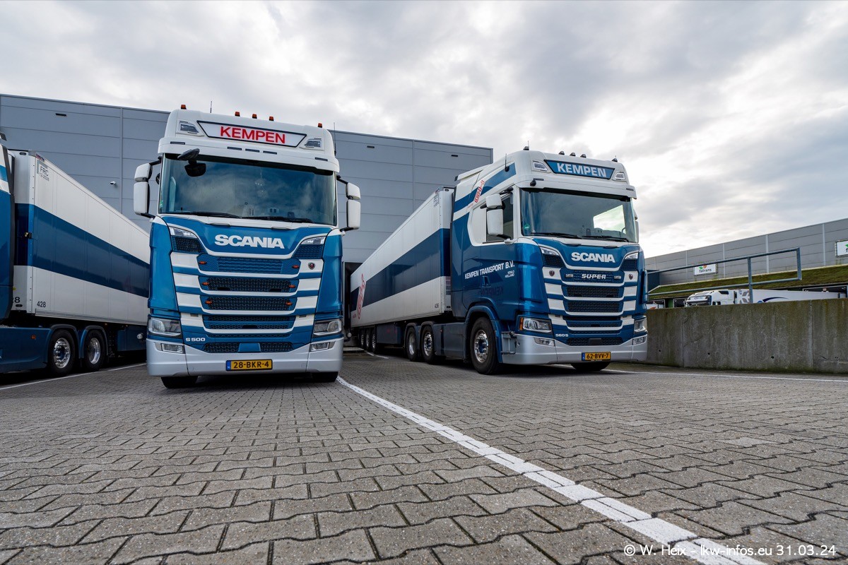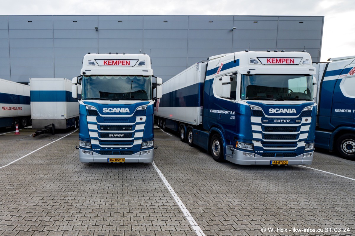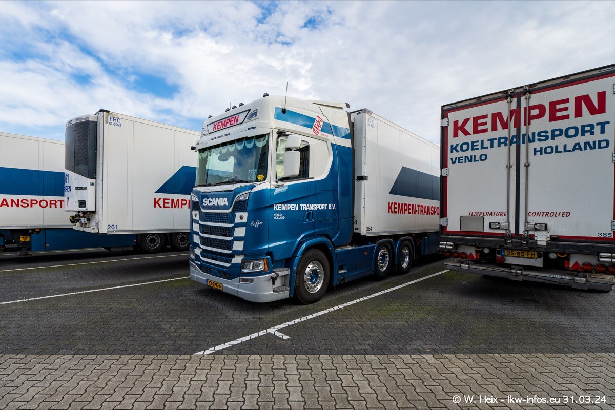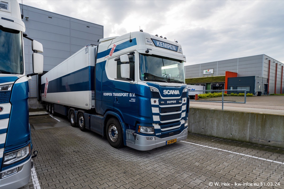 In diesem Jahr sind schon insgesamt mindestens 10 neue LKW in den Fuhrpark gekommen. Alle neuen LKW sind seit 2024 daran zu erkennen, dass aon der Fromt oben am Dach der Kempen-Schriftzug jetzt weiß ist in einem blauen Feld. Bisher war dieser immer rot auf weiß. Es waren so gut wie alle LKW zuzhause und standen auch wieder auf den Nachbargrundstücken. Diesmal konnte ich keinen SCANIA R Streamline und keinen DAF XF mehr sehen bis auf den neuen blauen DAF XG+ natürlich. Vermutlich sind jetzt alle alten SCANIA und DAF ersetzt durch VOLVO FH 5 und SCANIA R/S NextGen. Es sind natürlich auch wieder Bilder von den Chatern (Subunternehmern) in den Galerien enthalten. Auch hier tut sich immer wieder mal was.