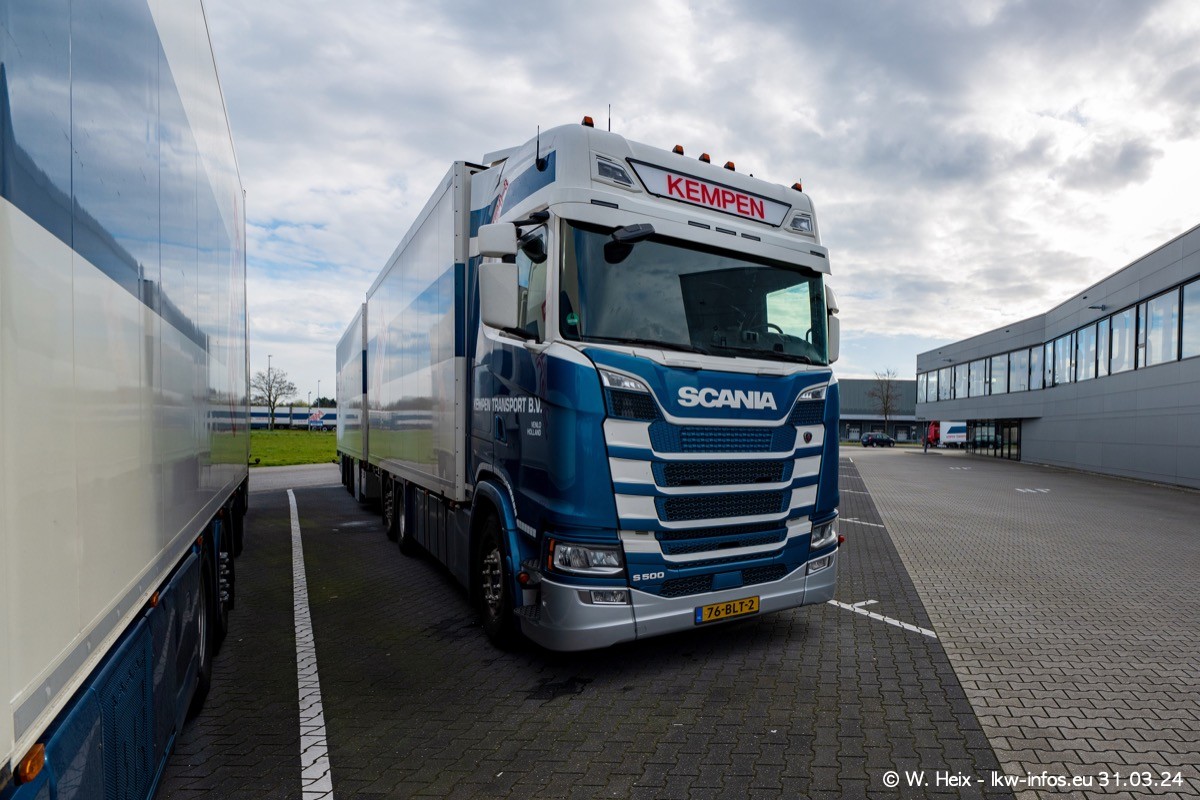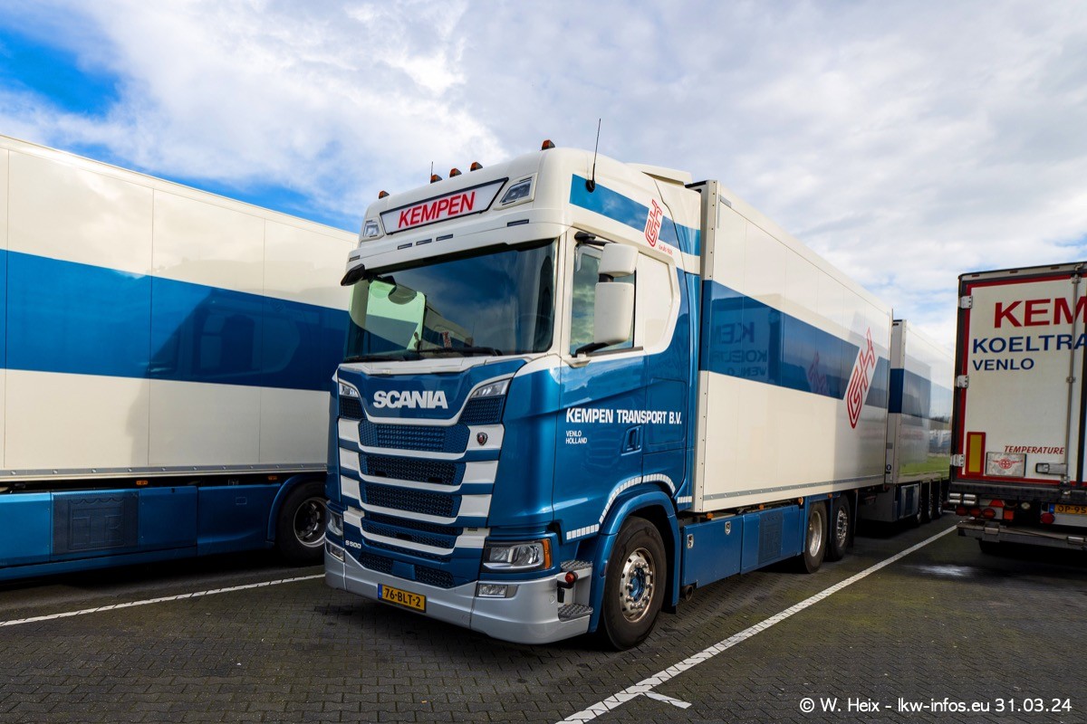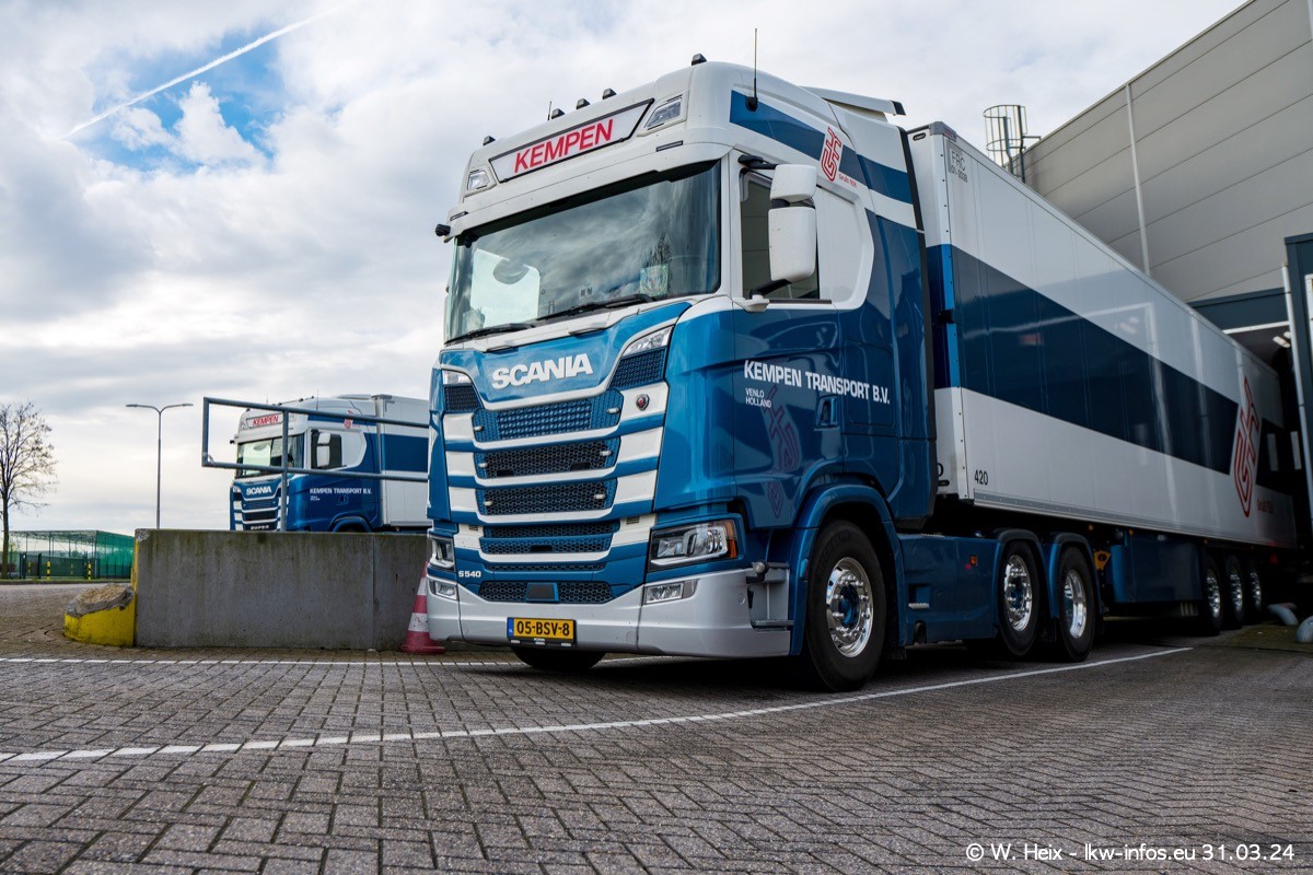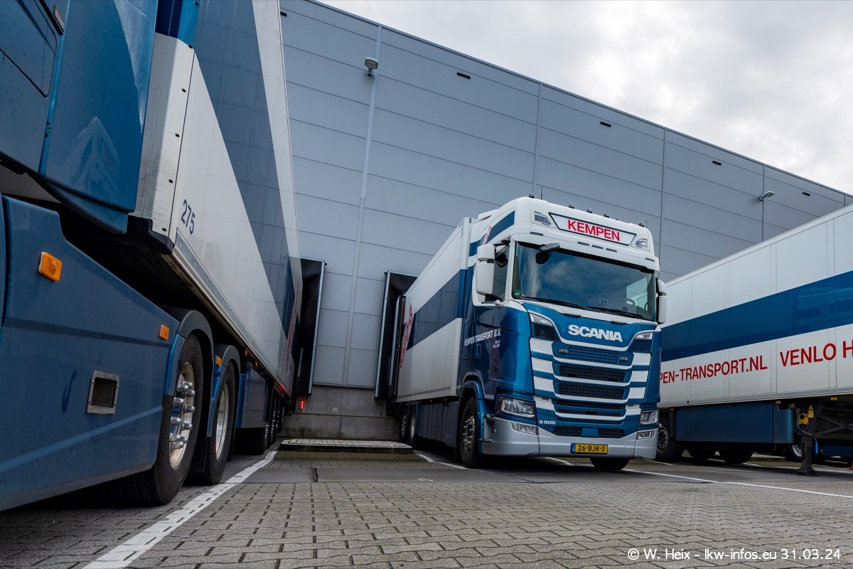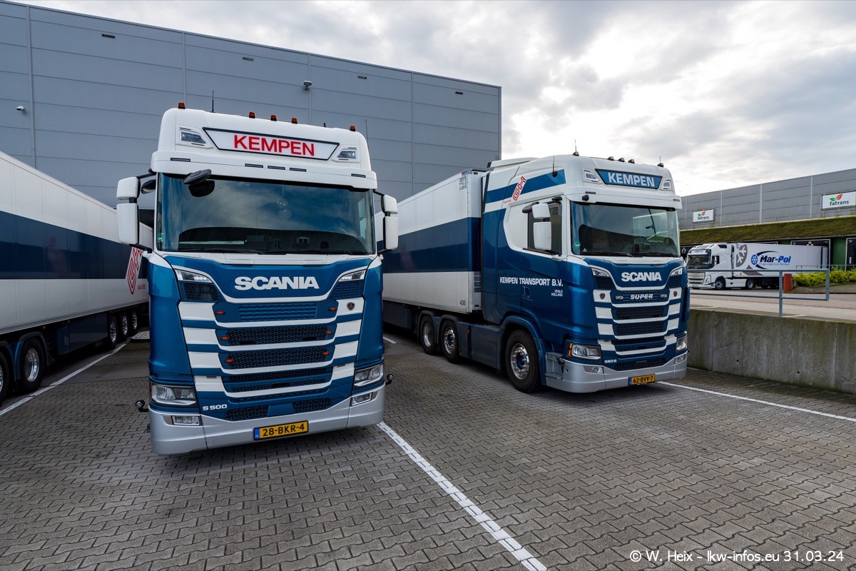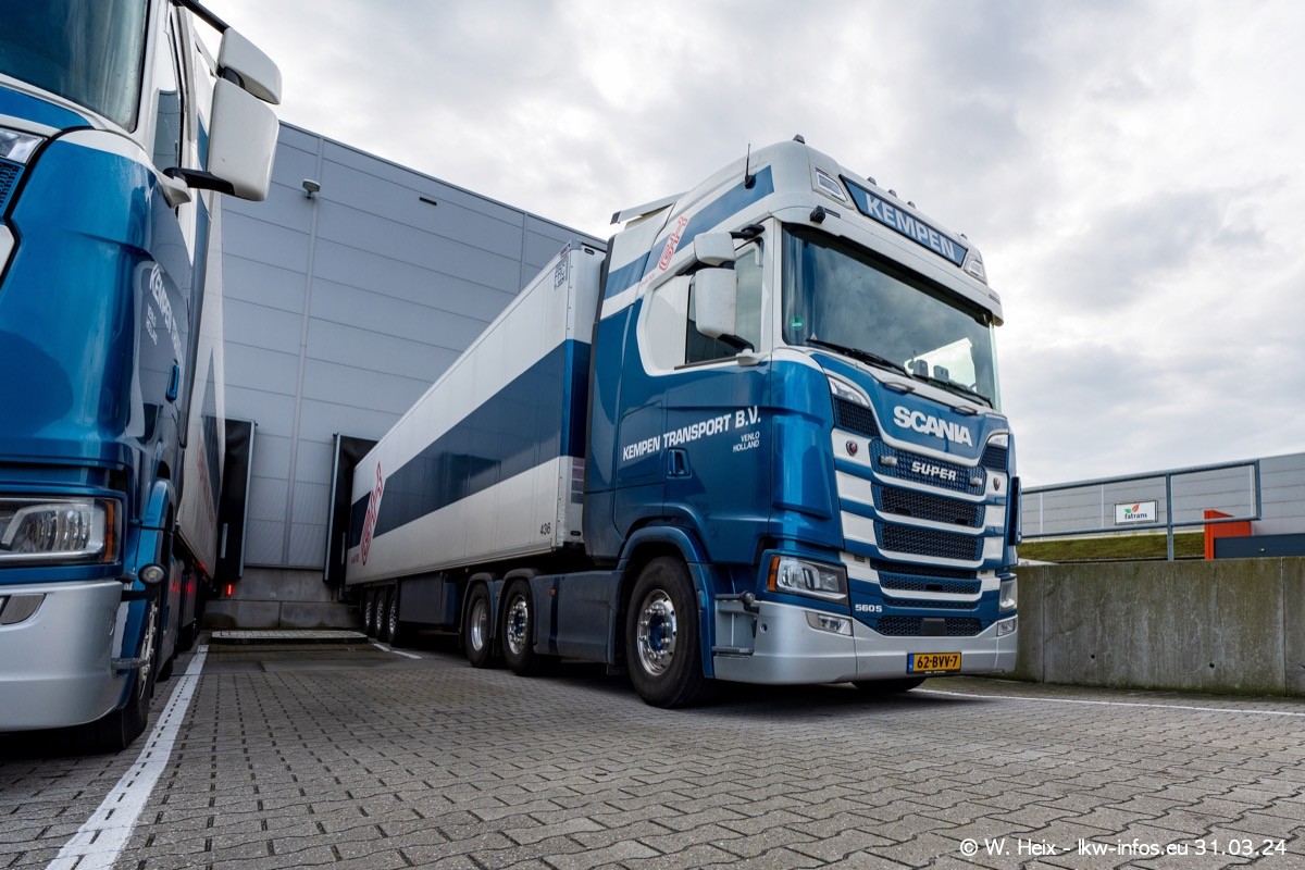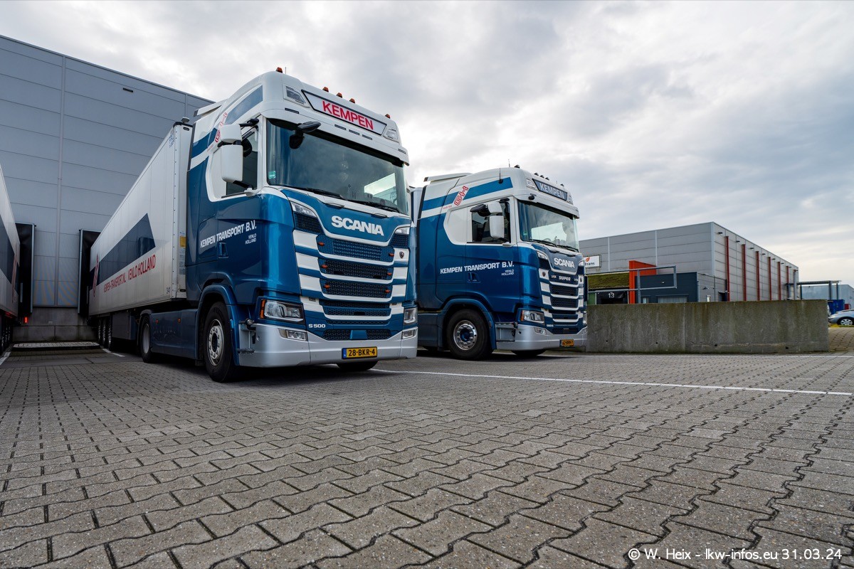 In diesem Jahr sind schon insgesamt mindestens 10 neue LKW in den Fuhrpark gekommen. Alle neuen LKW sind seit 2024 daran zu erkennen, dass aon der Fromt oben am Dach der Kempen-Schriftzug jetzt weiß ist in einem blauen Feld. Bisher war dieser immer rot auf weiß. Es waren so gut wie alle LKW zuzhause und standen auch wieder auf den Nachbargrundstücken. Diesmal konnte ich keinen SCANIA R Streamline und keinen DAF XF mehr sehen bis auf den neuen blauen DAF XG+ natürlich. Vermutlich sind jetzt alle alten SCANIA und DAF ersetzt durch VOLVO FH 5 und SCANIA R/S NextGen. Es sind natürlich auch wieder Bilder von den Chatern (Subunternehmern) in den Galerien enthalten. Auch hier tut sich immer wieder mal was.