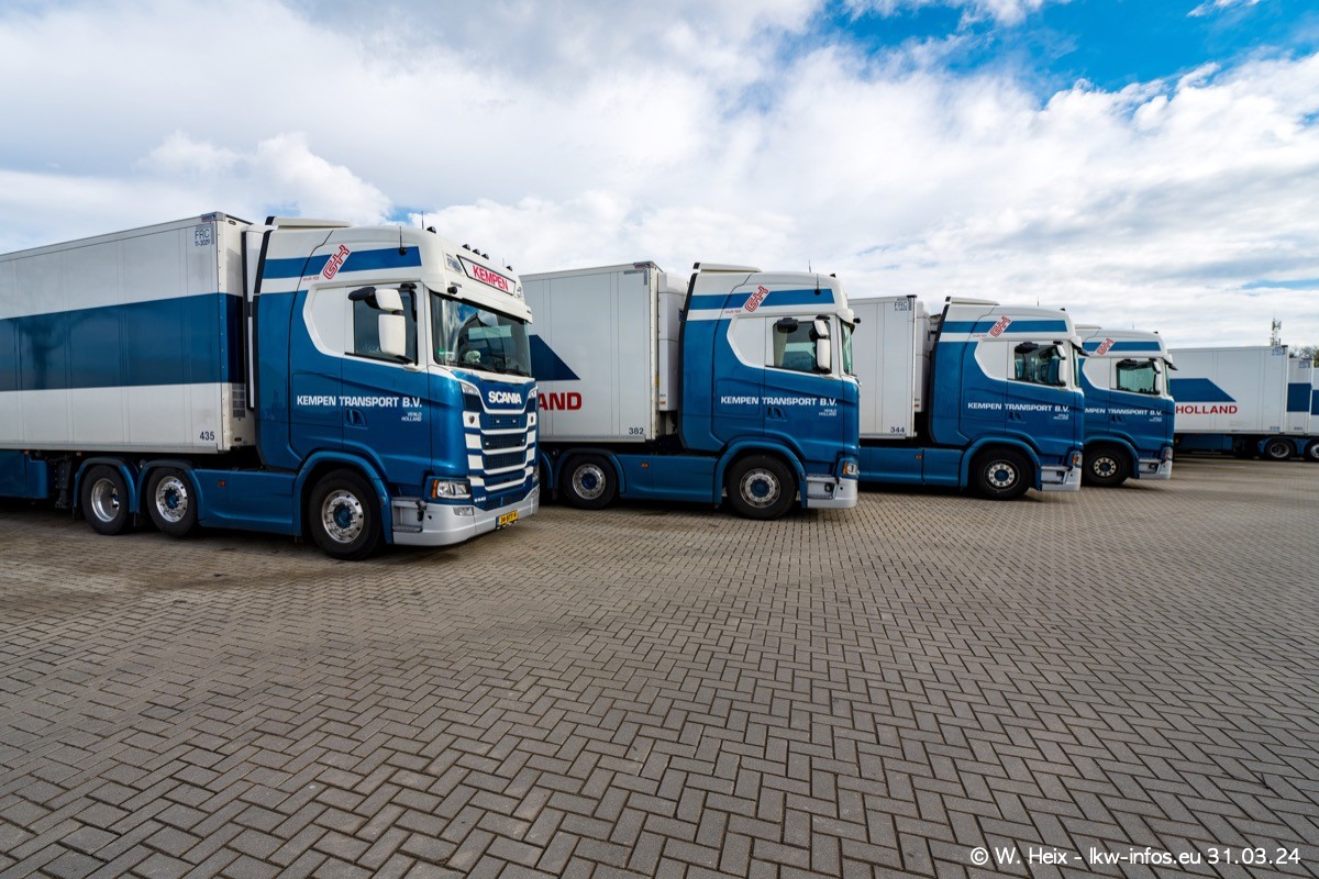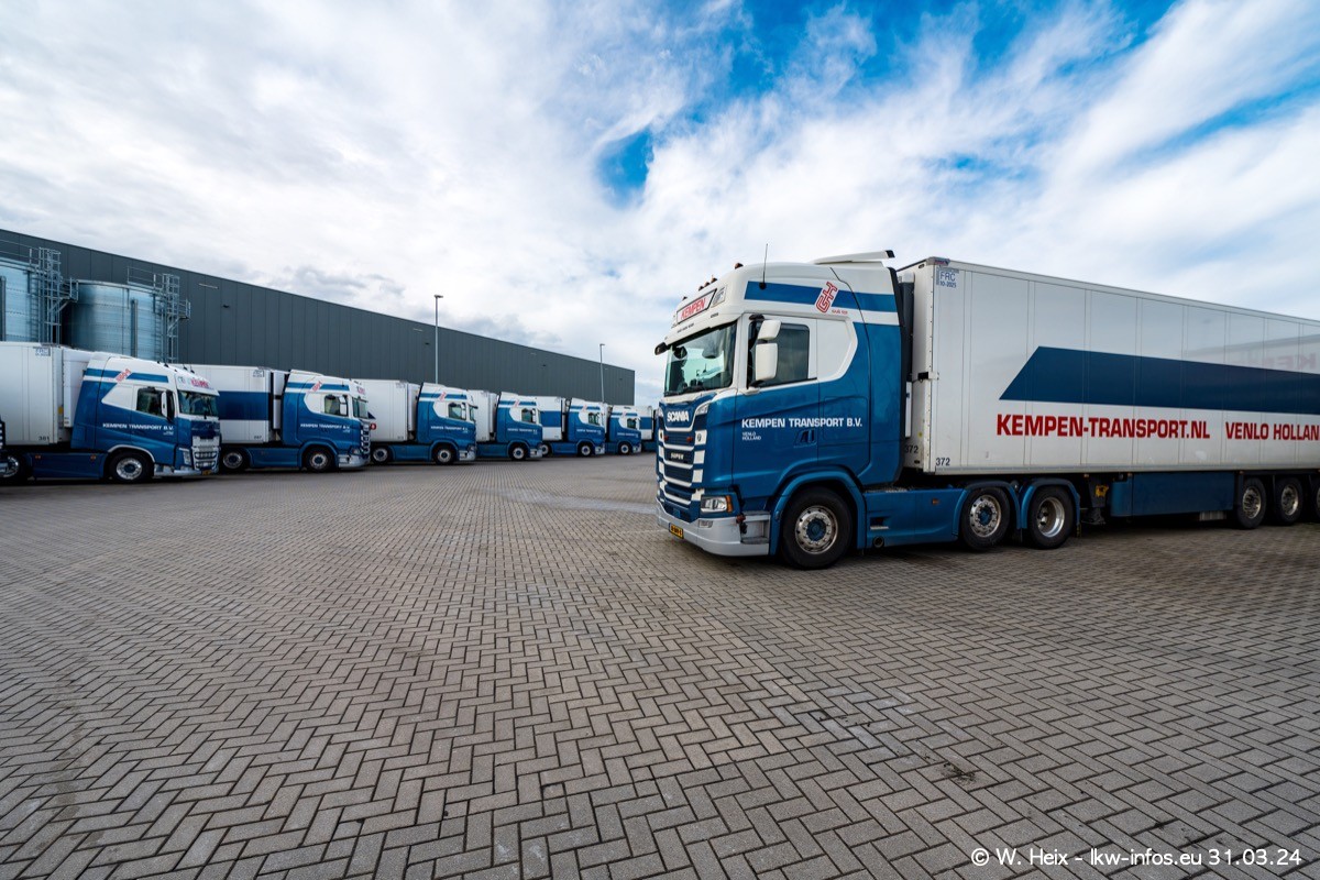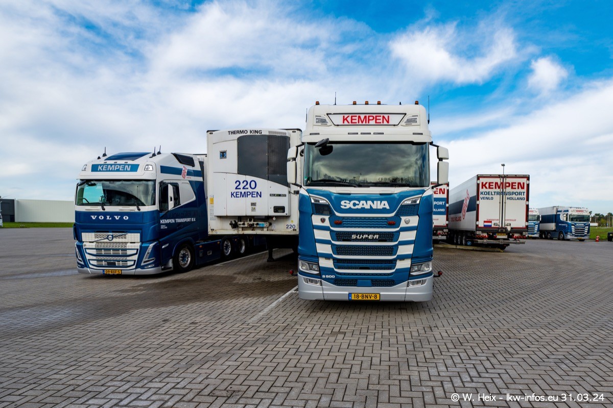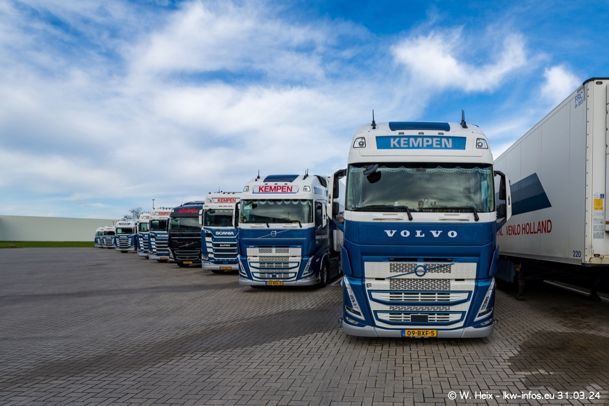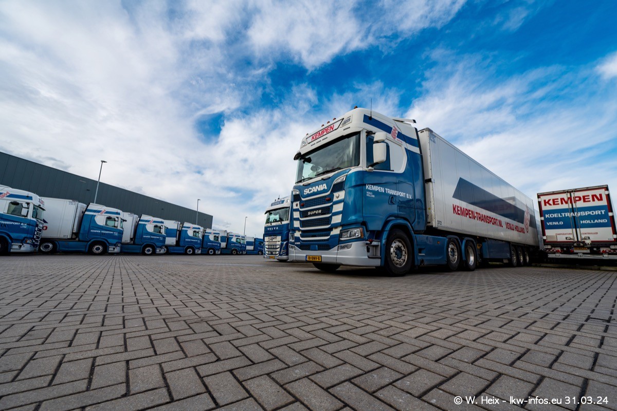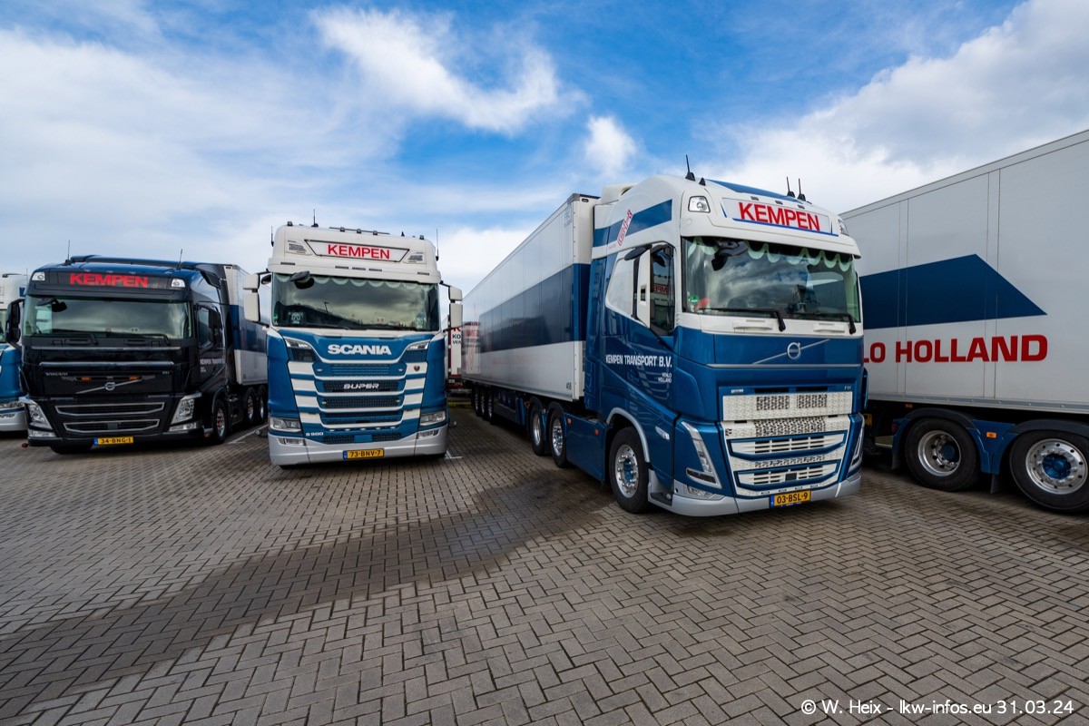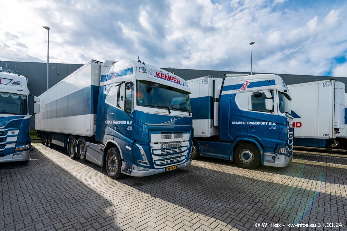 In diesem Jahr sind schon insgesamt mindestens 10 neue LKW in den Fuhrpark gekommen. Alle neuen LKW sind seit 2024 daran zu erkennen, dass aon der Fromt oben am Dach der Kempen-Schriftzug jetzt weiß ist in einem blauen Feld. Bisher war dieser immer rot auf weiß. Es waren so gut wie alle LKW zuzhause und standen auch wieder auf den Nachbargrundstücken. Diesmal konnte ich keinen SCANIA R Streamline und keinen DAF XF mehr sehen bis auf den neuen blauen DAF XG+ natürlich. Vermutlich sind jetzt alle alten SCANIA und DAF ersetzt durch VOLVO FH 5 und SCANIA R/S NextGen. Es sind natürlich auch wieder Bilder von den Chatern (Subunternehmern) in den Galerien enthalten. Auch hier tut sich immer wieder mal was.