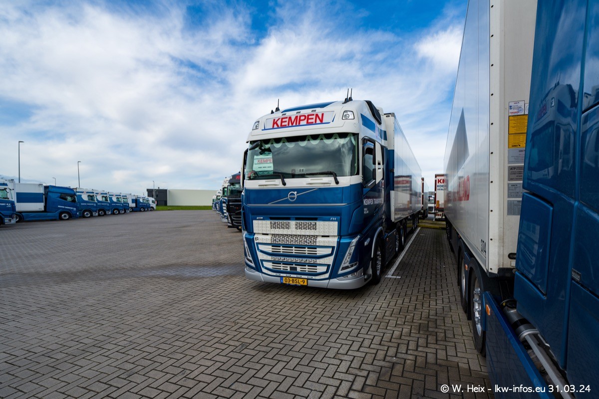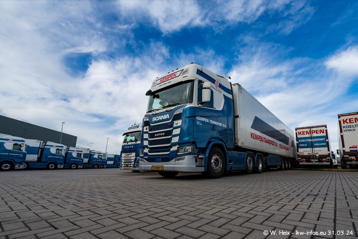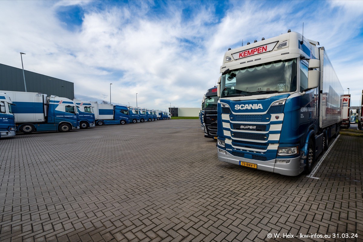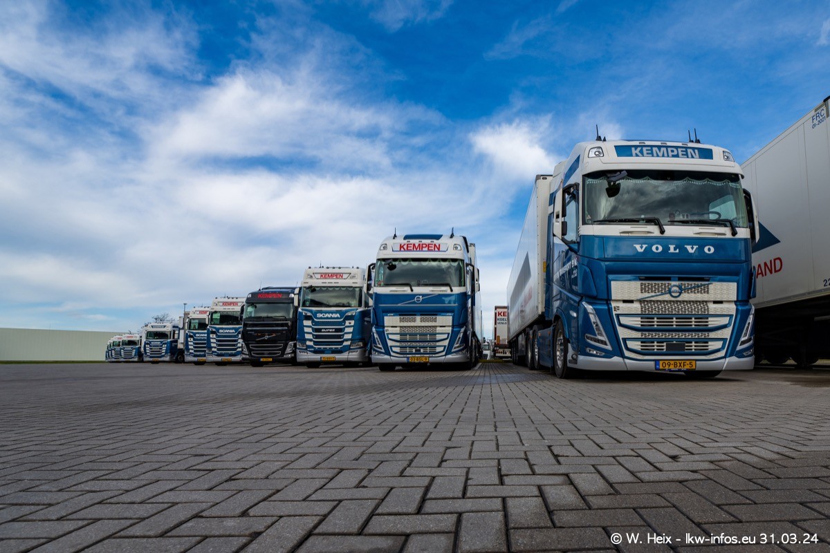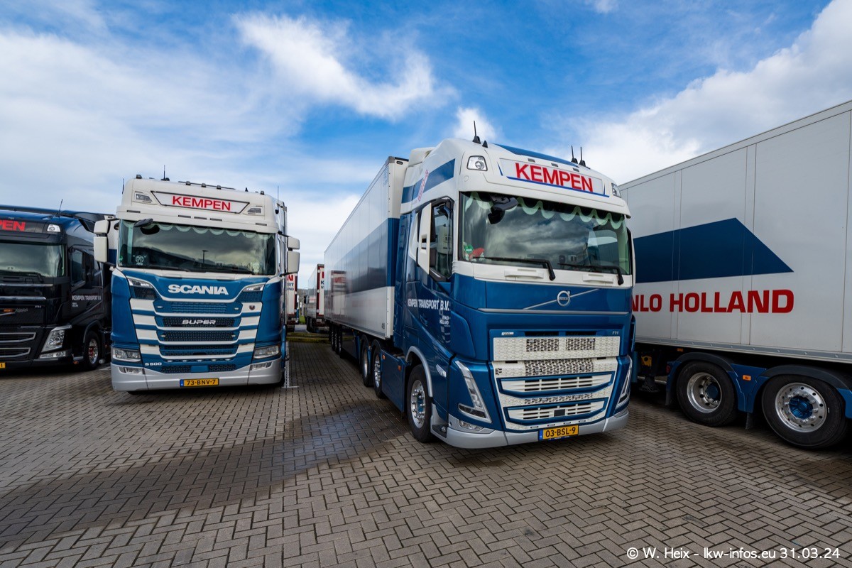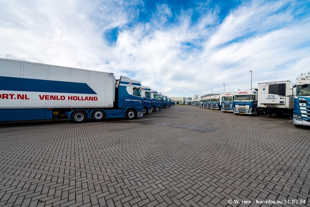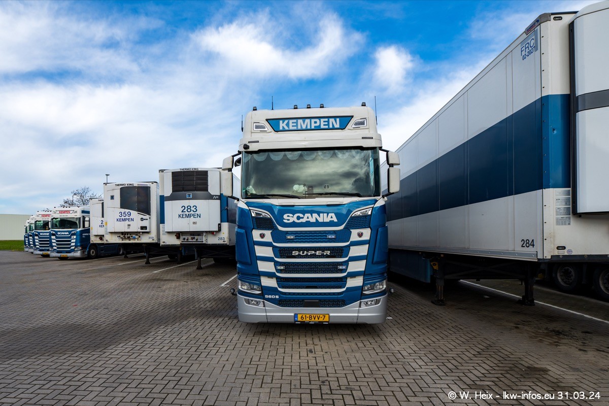 In diesem Jahr sind schon insgesamt mindestens 10 neue LKW in den Fuhrpark gekommen. Alle neuen LKW sind seit 2024 daran zu erkennen, dass aon der Fromt oben am Dach der Kempen-Schriftzug jetzt weiß ist in einem blauen Feld. Bisher war dieser immer rot auf weiß. Es waren so gut wie alle LKW zuzhause und standen auch wieder auf den Nachbargrundstücken. Diesmal konnte ich keinen SCANIA R Streamline und keinen DAF XF mehr sehen bis auf den neuen blauen DAF XG+ natürlich. Vermutlich sind jetzt alle alten SCANIA und DAF ersetzt durch VOLVO FH 5 und SCANIA R/S NextGen. Es sind natürlich auch wieder Bilder von den Chatern (Subunternehmern) in den Galerien enthalten. Auch hier tut sich immer wieder mal was.