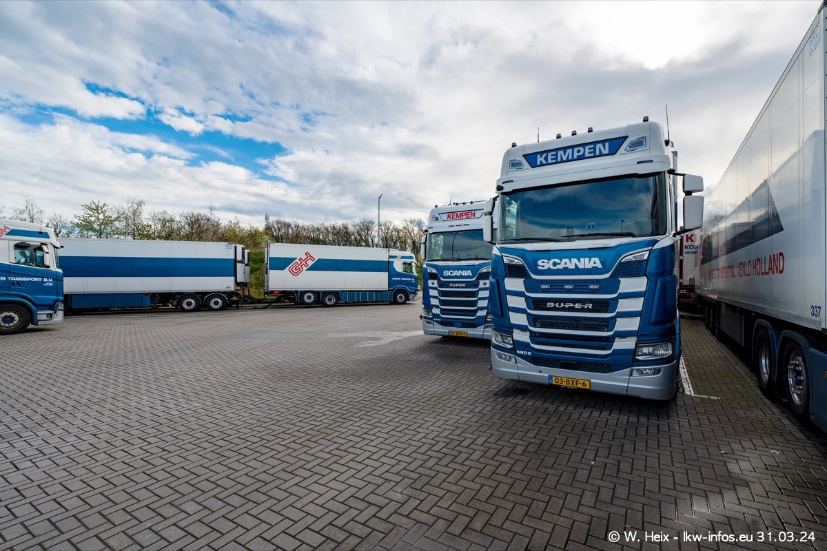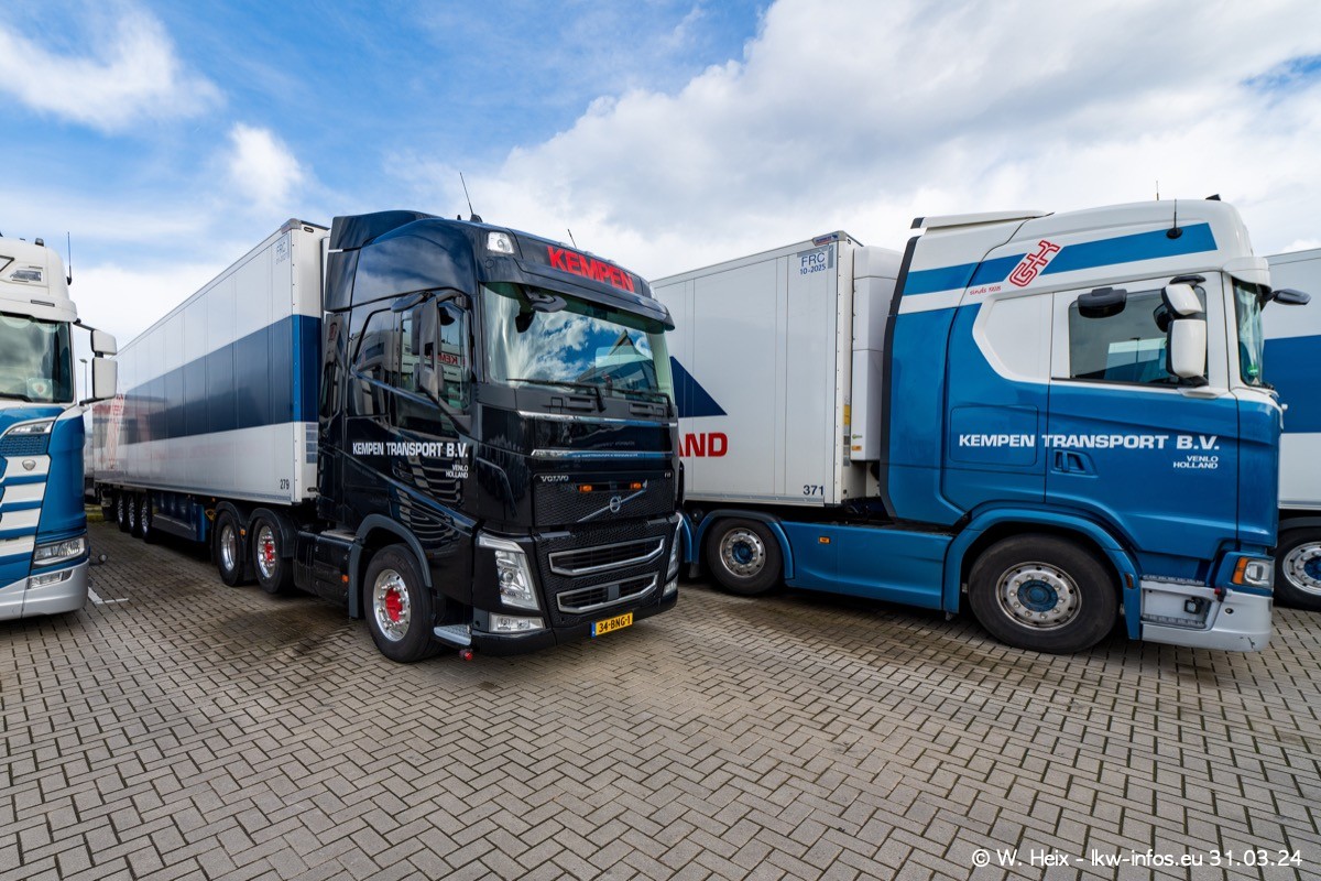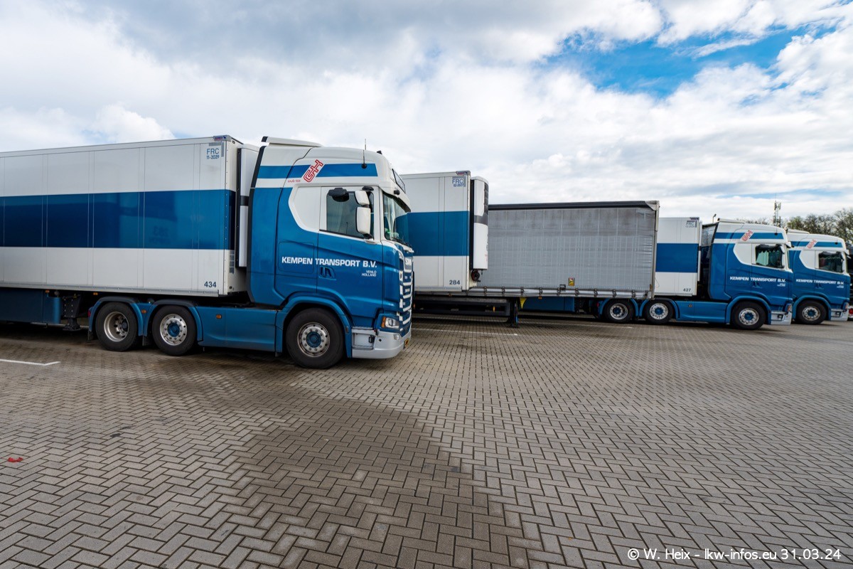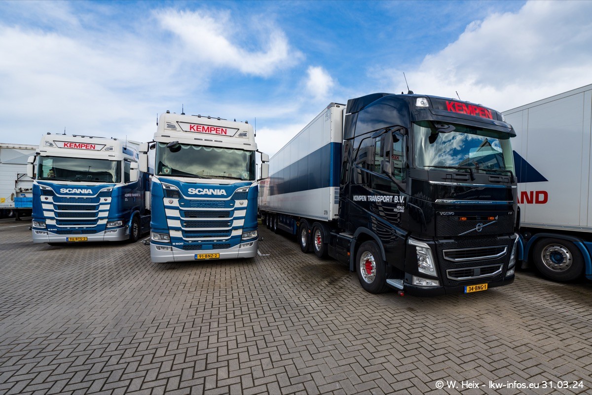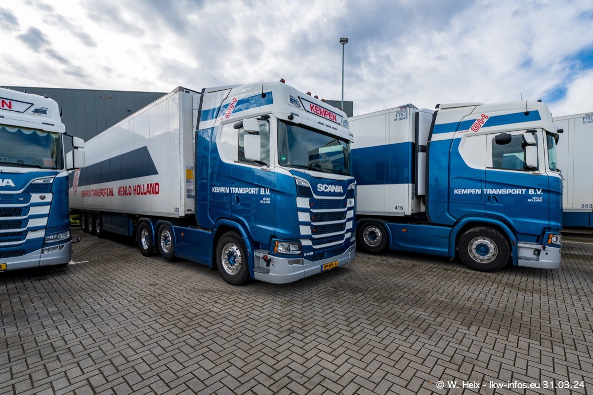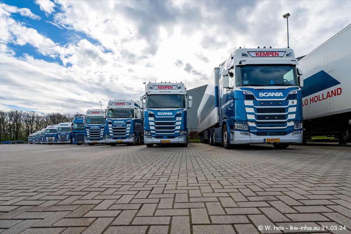 In diesem Jahr sind schon insgesamt mindestens 10 neue LKW in den Fuhrpark gekommen. Alle neuen LKW sind seit 2024 daran zu erkennen, dass aon der Fromt oben am Dach der Kempen-Schriftzug jetzt weiß ist in einem blauen Feld. Bisher war dieser immer rot auf weiß. Es waren so gut wie alle LKW zuzhause und standen auch wieder auf den Nachbargrundstücken. Diesmal konnte ich keinen SCANIA R Streamline und keinen DAF XF mehr sehen bis auf den neuen blauen DAF XG+ natürlich. Vermutlich sind jetzt alle alten SCANIA und DAF ersetzt durch VOLVO FH 5 und SCANIA R/S NextGen. Es sind natürlich auch wieder Bilder von den Chatern (Subunternehmern) in den Galerien enthalten. Auch hier tut sich immer wieder mal was.