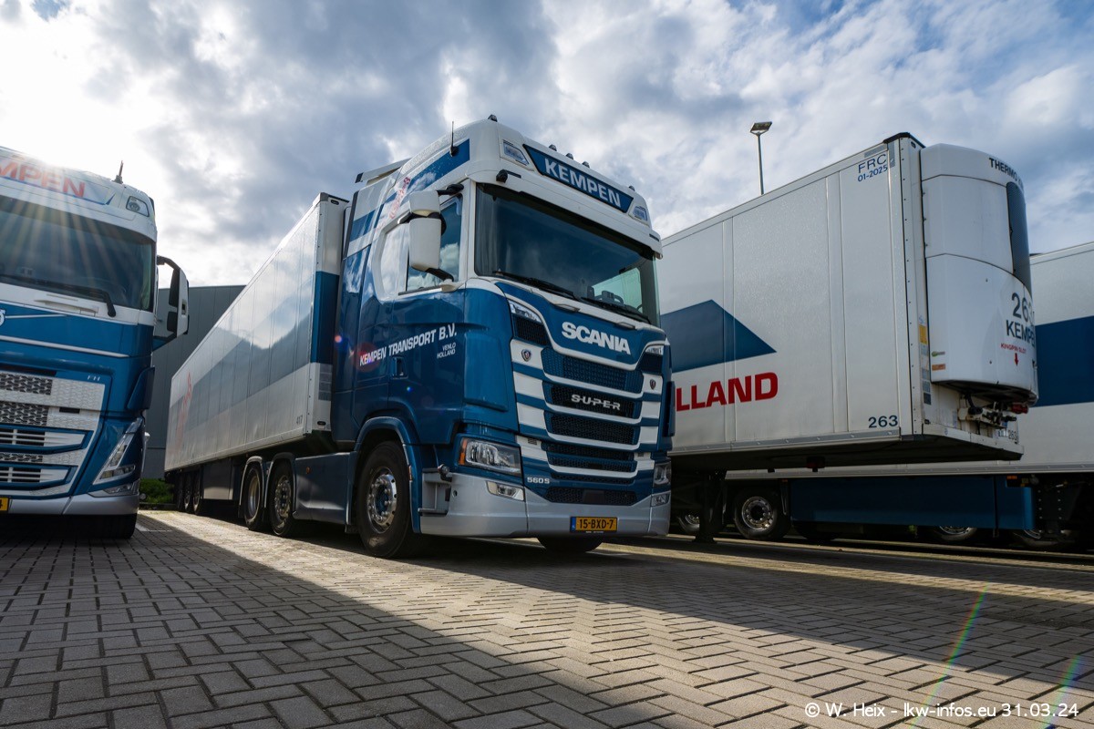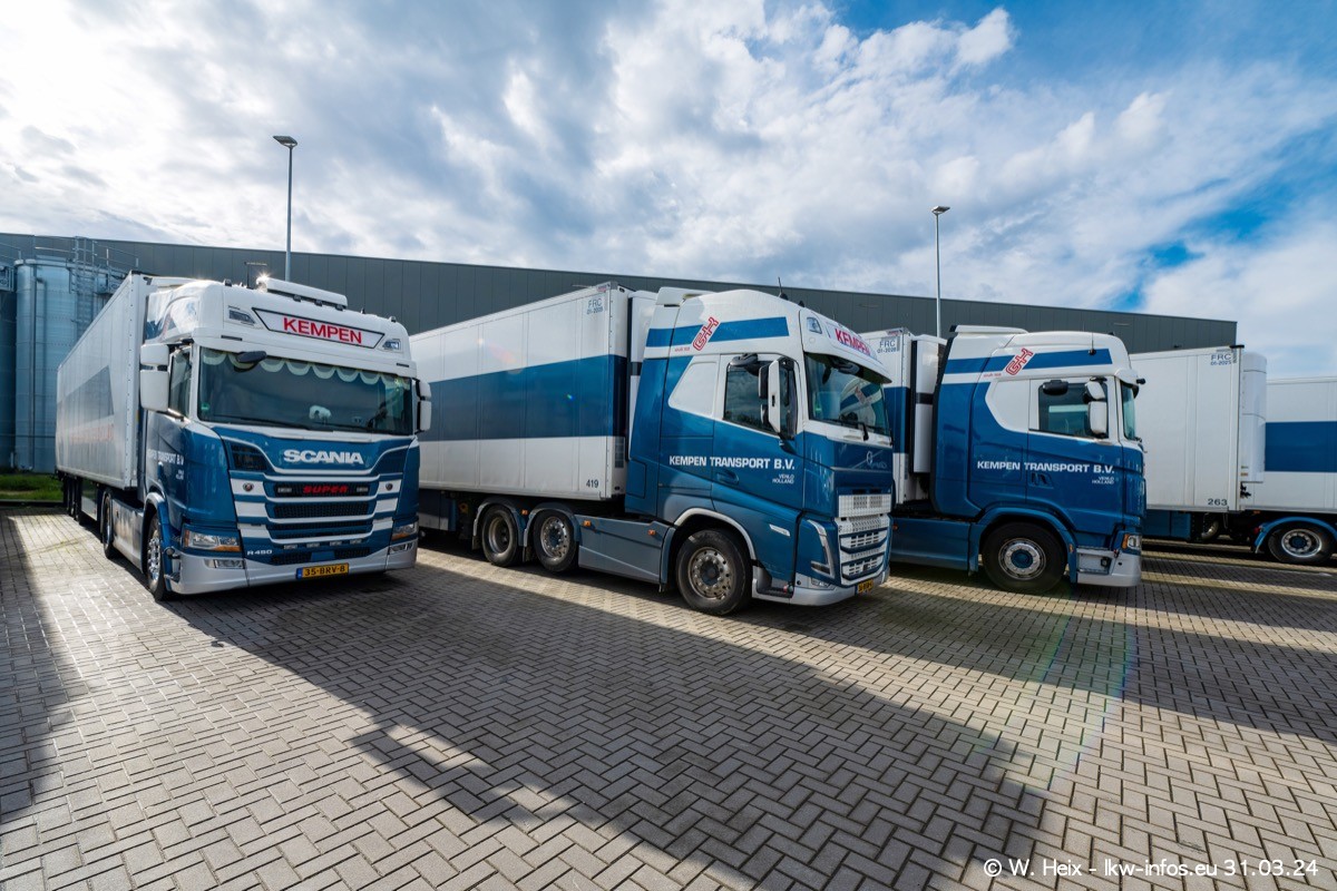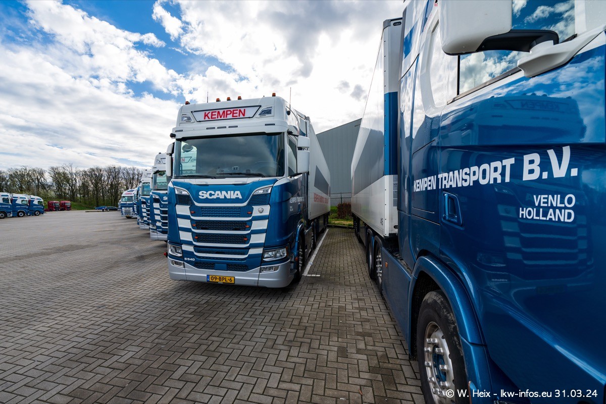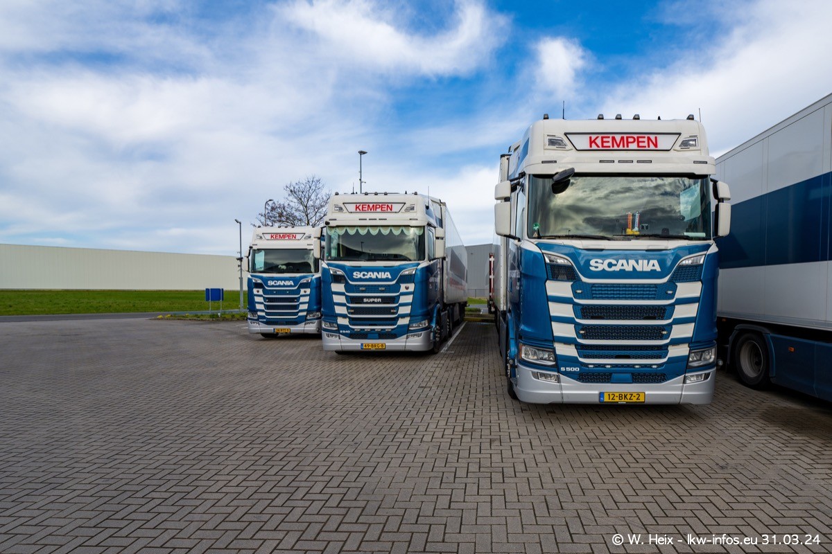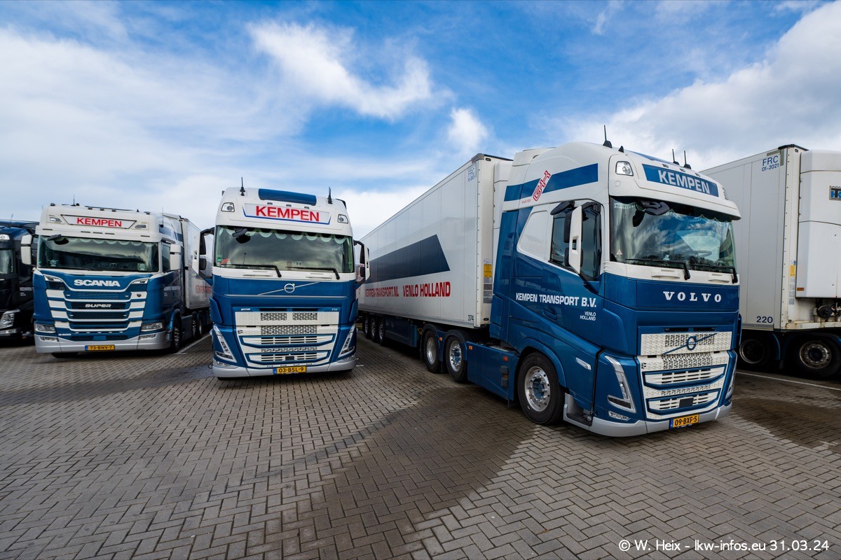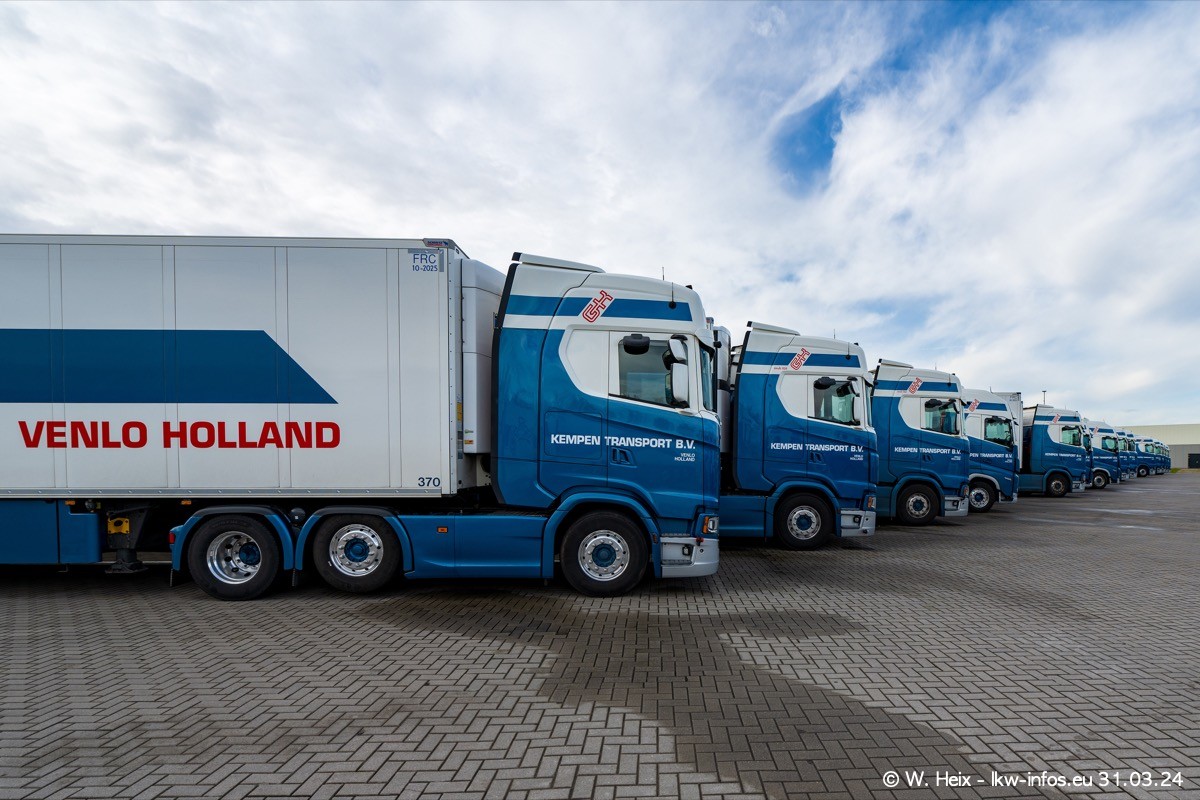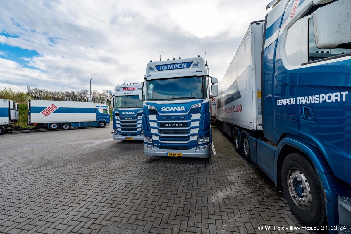 In diesem Jahr sind schon insgesamt mindestens 10 neue LKW in den Fuhrpark gekommen. Alle neuen LKW sind seit 2024 daran zu erkennen, dass aon der Fromt oben am Dach der Kempen-Schriftzug jetzt weiß ist in einem blauen Feld. Bisher war dieser immer rot auf weiß. Es waren so gut wie alle LKW zuzhause und standen auch wieder auf den Nachbargrundstücken. Diesmal konnte ich keinen SCANIA R Streamline und keinen DAF XF mehr sehen bis auf den neuen blauen DAF XG+ natürlich. Vermutlich sind jetzt alle alten SCANIA und DAF ersetzt durch VOLVO FH 5 und SCANIA R/S NextGen. Es sind natürlich auch wieder Bilder von den Chatern (Subunternehmern) in den Galerien enthalten. Auch hier tut sich immer wieder mal was.