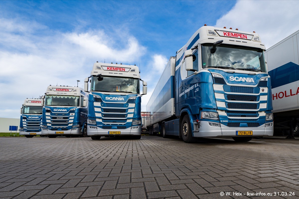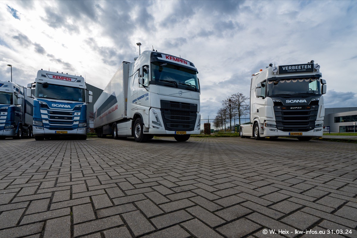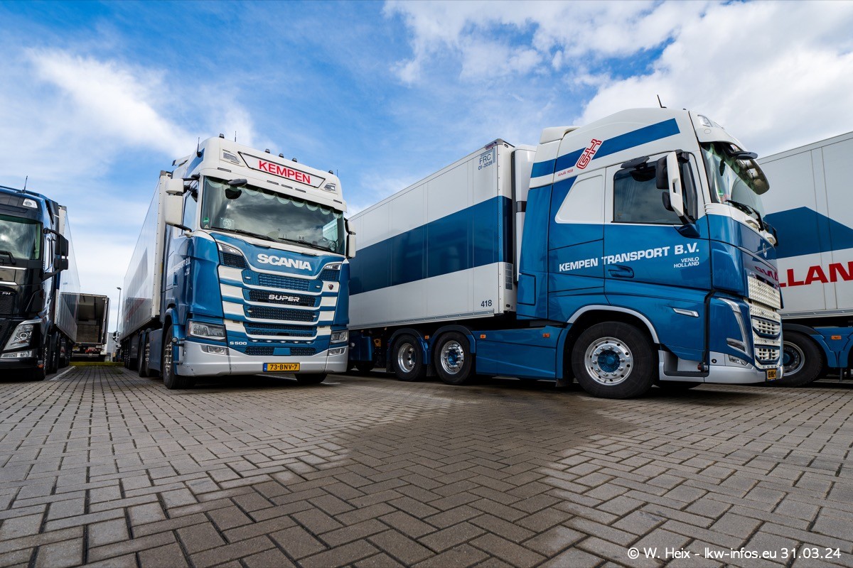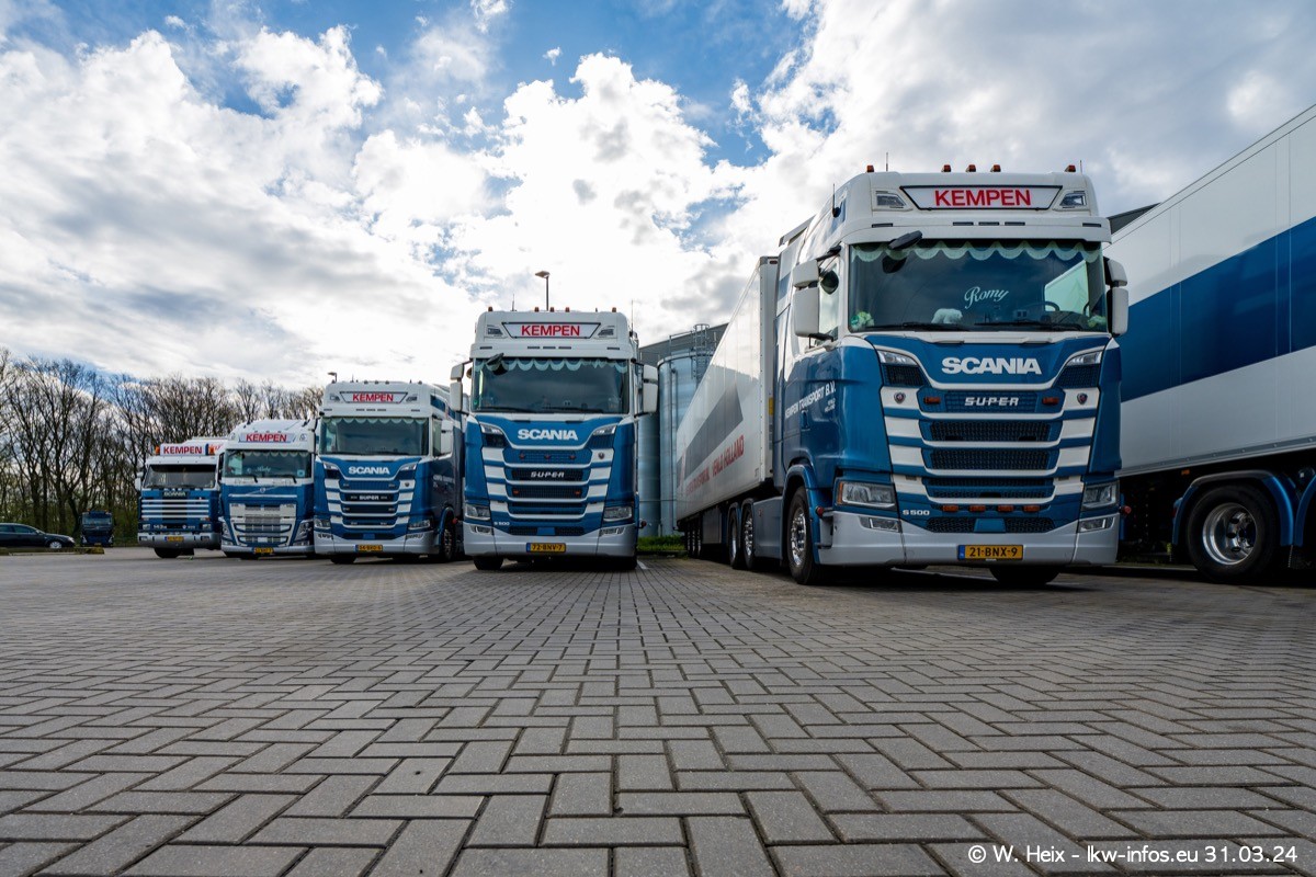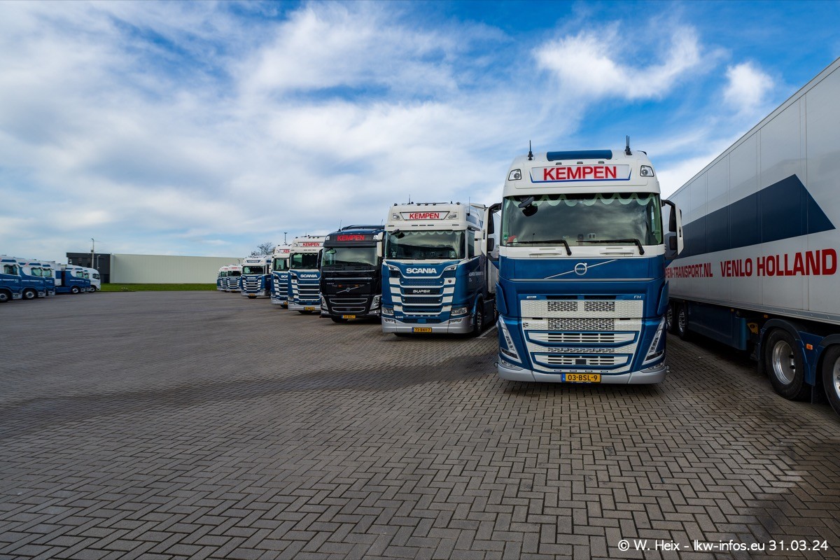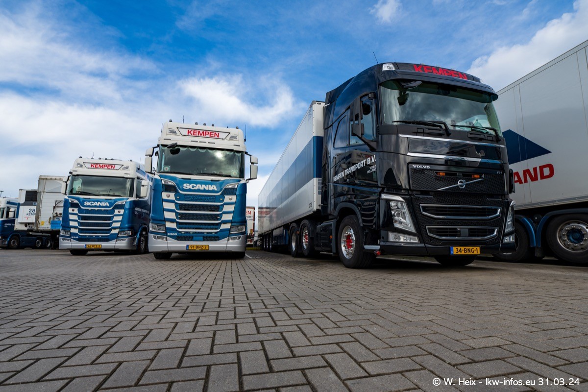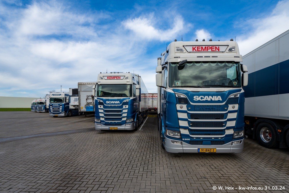 In diesem Jahr sind schon insgesamt mindestens 10 neue LKW in den Fuhrpark gekommen. Alle neuen LKW sind seit 2024 daran zu erkennen, dass aon der Fromt oben am Dach der Kempen-Schriftzug jetzt weiß ist in einem blauen Feld. Bisher war dieser immer rot auf weiß. Es waren so gut wie alle LKW zuzhause und standen auch wieder auf den Nachbargrundstücken. Diesmal konnte ich keinen SCANIA R Streamline und keinen DAF XF mehr sehen bis auf den neuen blauen DAF XG+ natürlich. Vermutlich sind jetzt alle alten SCANIA und DAF ersetzt durch VOLVO FH 5 und SCANIA R/S NextGen. Es sind natürlich auch wieder Bilder von den Chatern (Subunternehmern) in den Galerien enthalten. Auch hier tut sich immer wieder mal was.