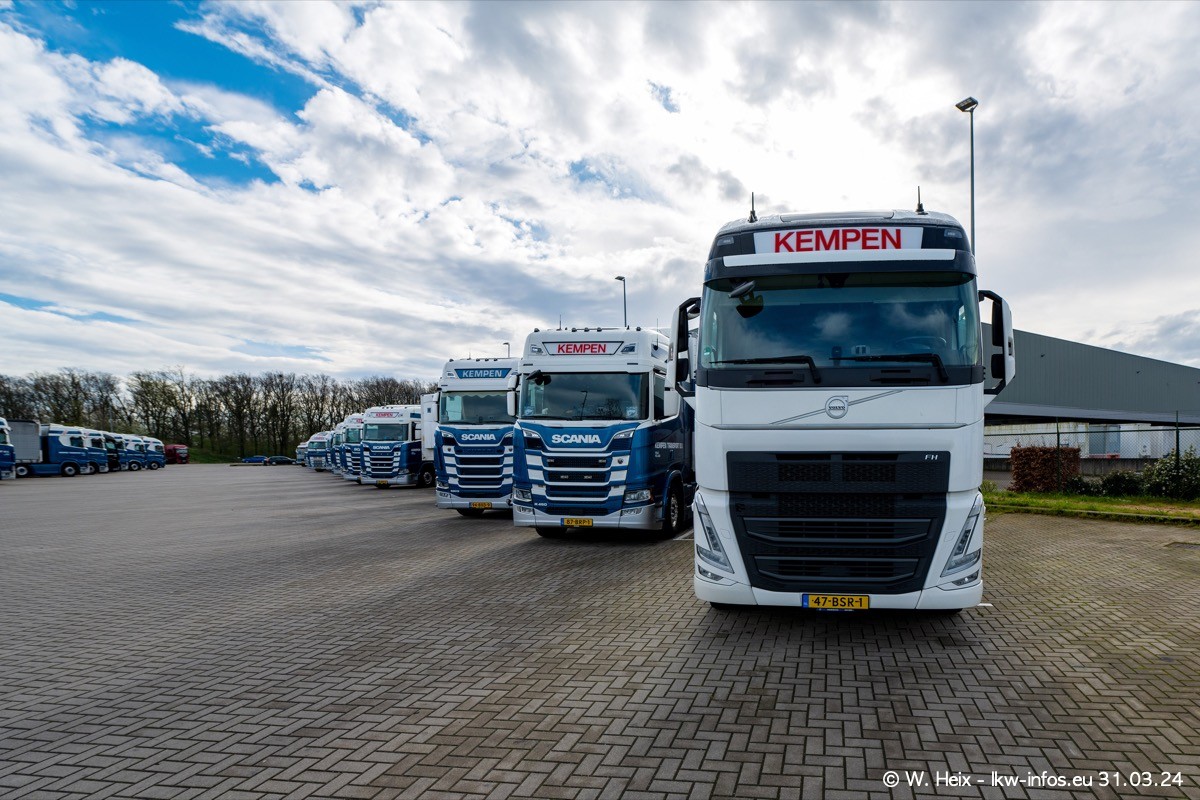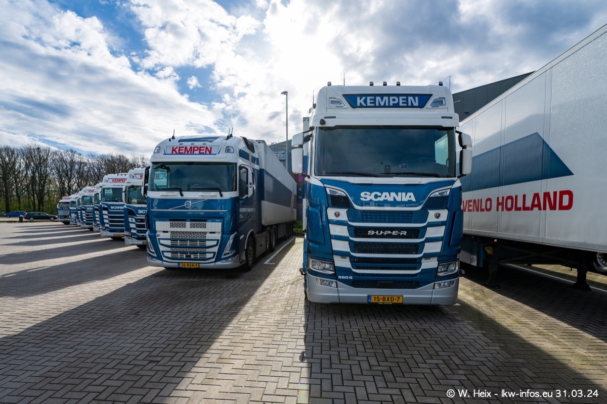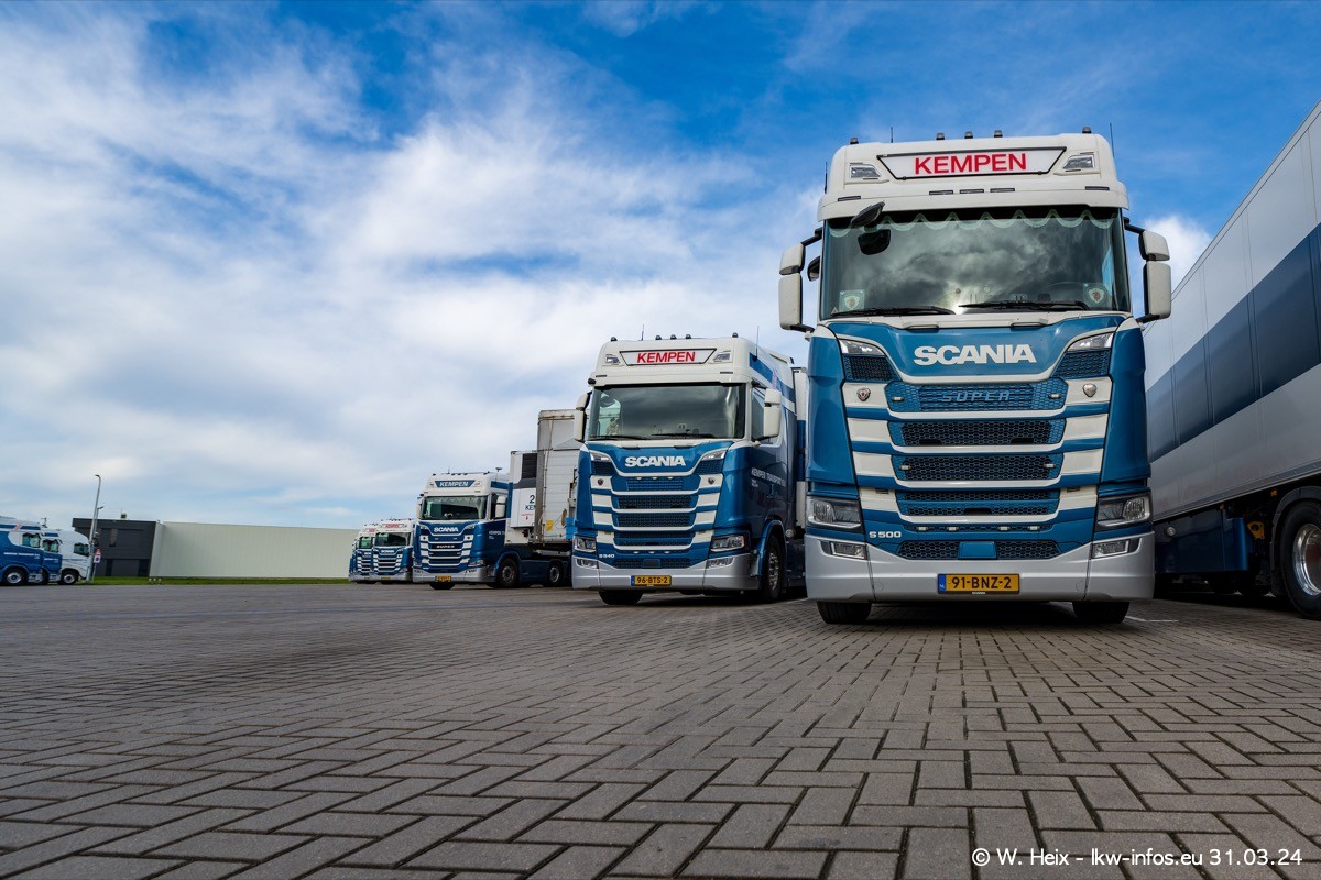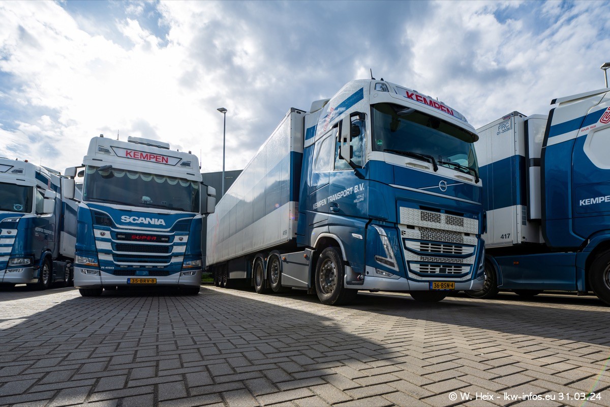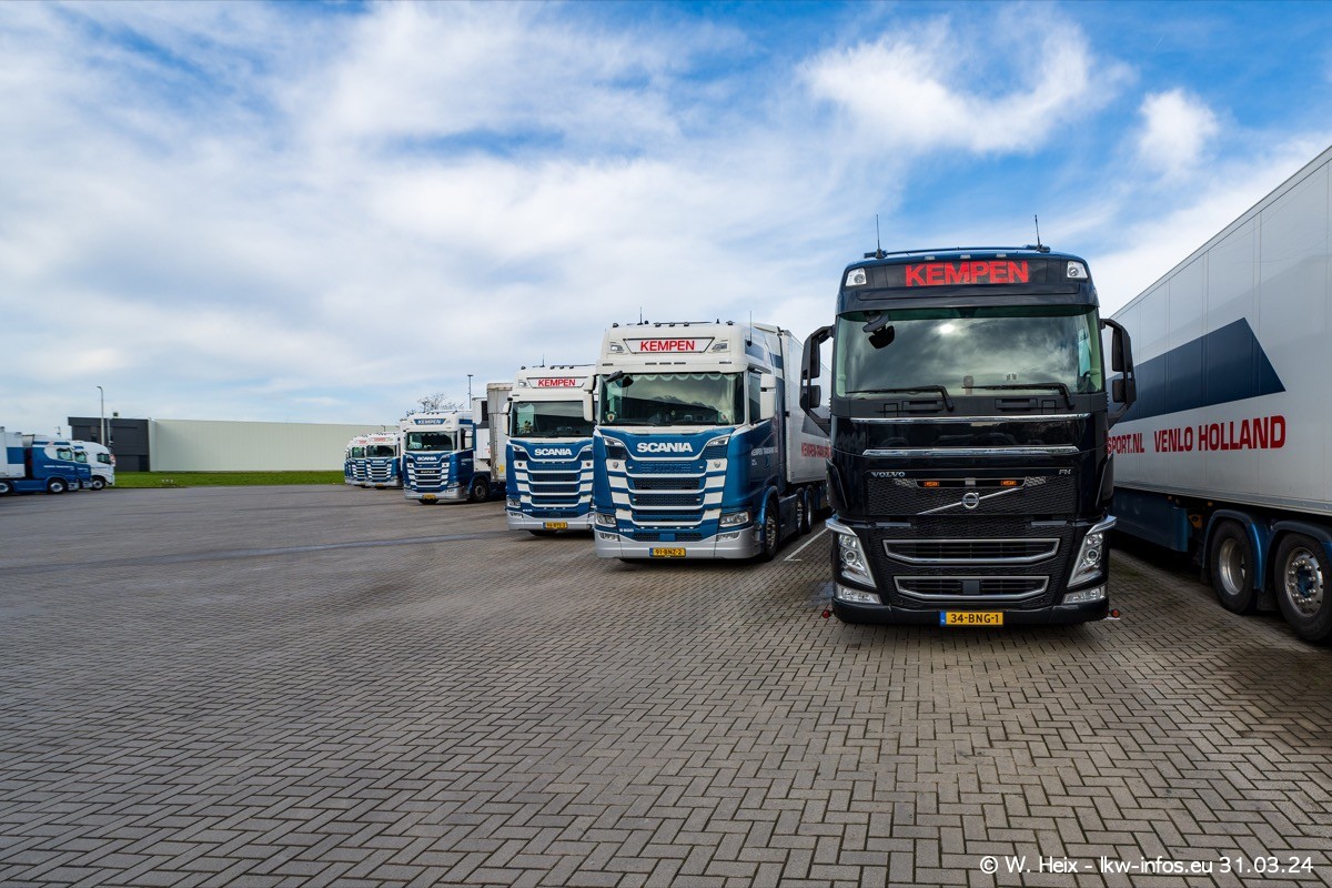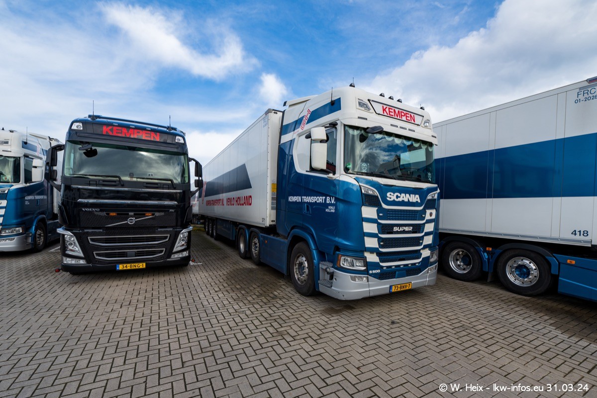 In diesem Jahr sind schon insgesamt mindestens 10 neue LKW in den Fuhrpark gekommen. Alle neuen LKW sind seit 2024 daran zu erkennen, dass aon der Fromt oben am Dach der Kempen-Schriftzug jetzt weiß ist in einem blauen Feld. Bisher war dieser immer rot auf weiß. Es waren so gut wie alle LKW zuzhause und standen auch wieder auf den Nachbargrundstücken. Diesmal konnte ich keinen SCANIA R Streamline und keinen DAF XF mehr sehen bis auf den neuen blauen DAF XG+ natürlich. Vermutlich sind jetzt alle alten SCANIA und DAF ersetzt durch VOLVO FH 5 und SCANIA R/S NextGen. Es sind natürlich auch wieder Bilder von den Chatern (Subunternehmern) in den Galerien enthalten. Auch hier tut sich immer wieder mal was.
