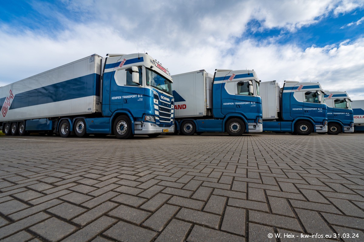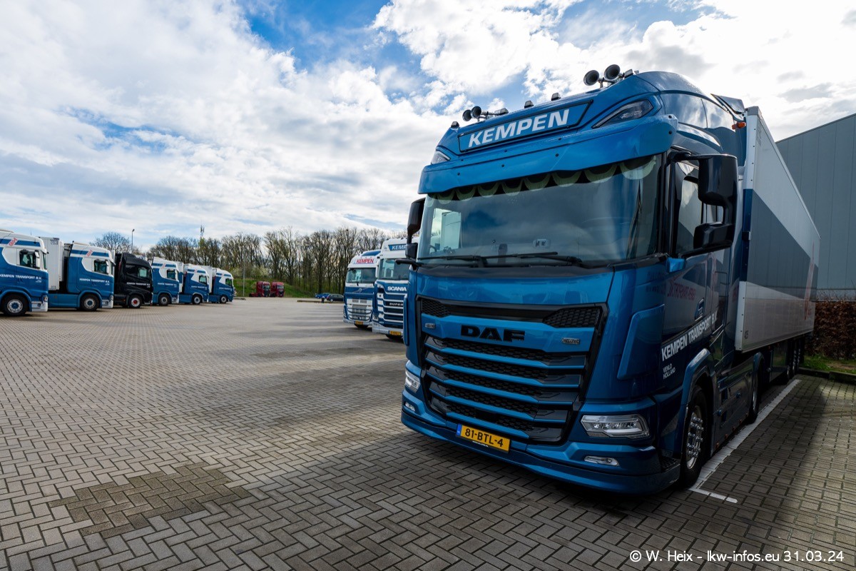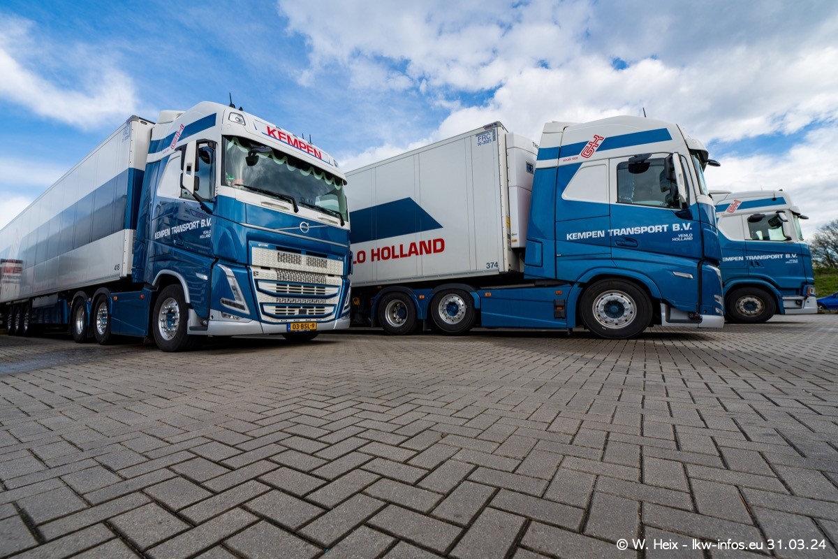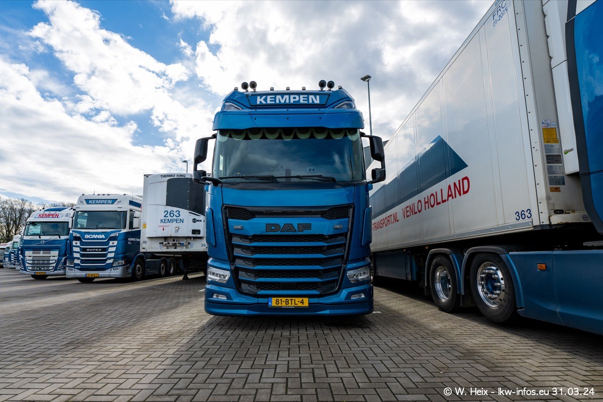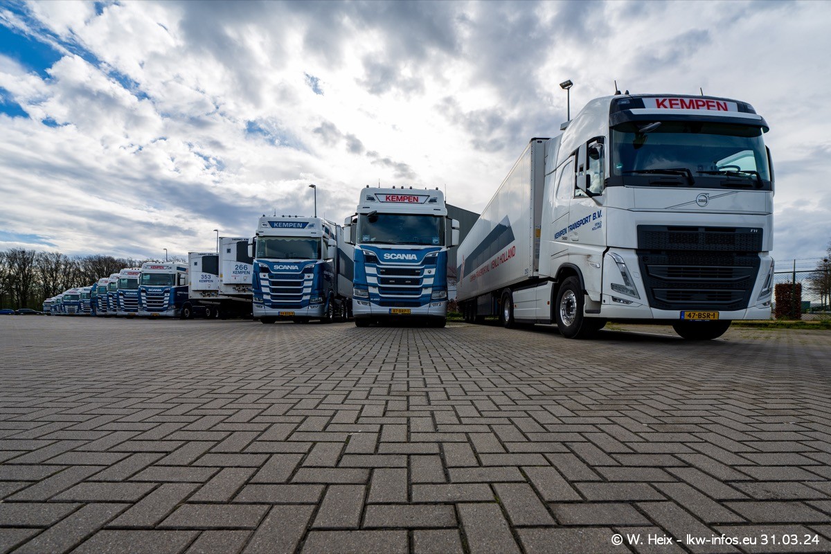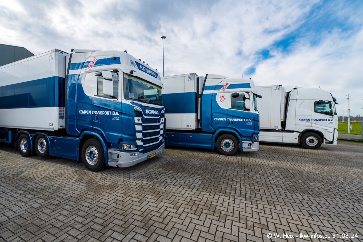In diesem Jahr sind schon insgesamt mindestens 10 neue LKW in den Fuhrpark gekommen. Alle neuen LKW sind seit 2024 daran zu erkennen, dass aon der Fromt oben am Dach der Kempen-Schriftzug jetzt weiß ist in einem blauen Feld. Bisher war dieser immer rot auf weiß. Es waren so gut wie alle LKW zuzhause und standen auch wieder auf den Nachbargrundstücken. Diesmal konnte ich keinen SCANIA R Streamline und keinen DAF XF mehr sehen bis auf den neuen blauen DAF XG+ natürlich. Vermutlich sind jetzt alle alten SCANIA und DAF ersetzt durch VOLVO FH 5 und SCANIA R/S NextGen. Es sind natürlich auch wieder Bilder von den Chatern (Subunternehmern) in den Galerien enthalten. Auch hier tut sich immer wieder mal was.