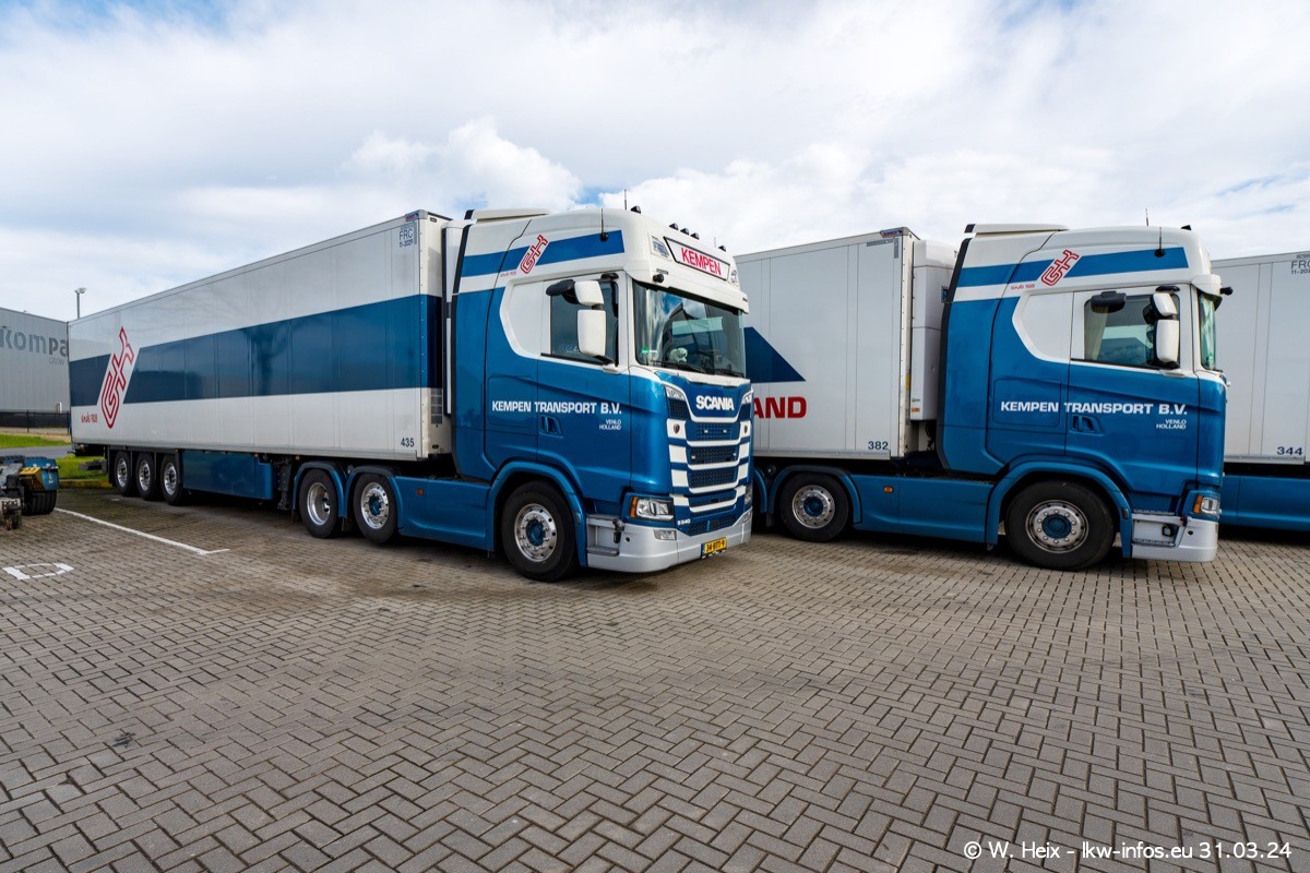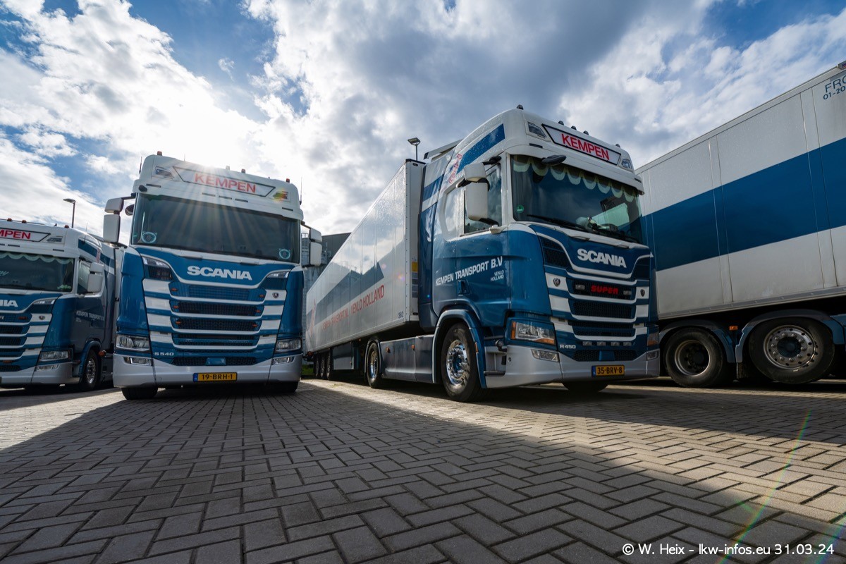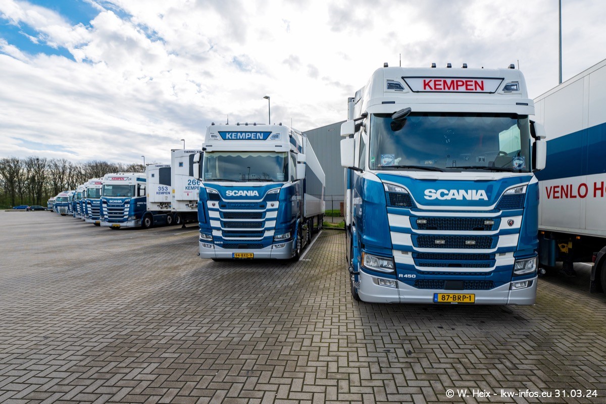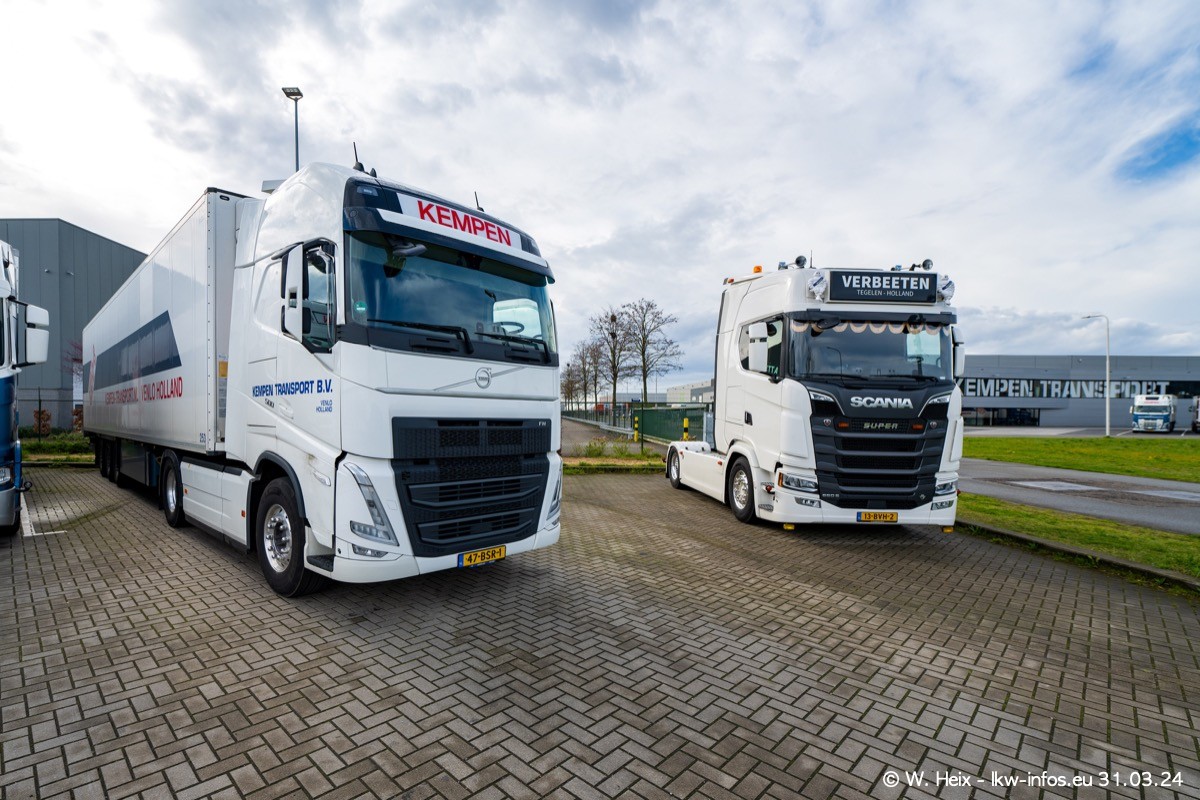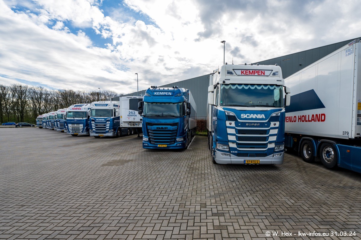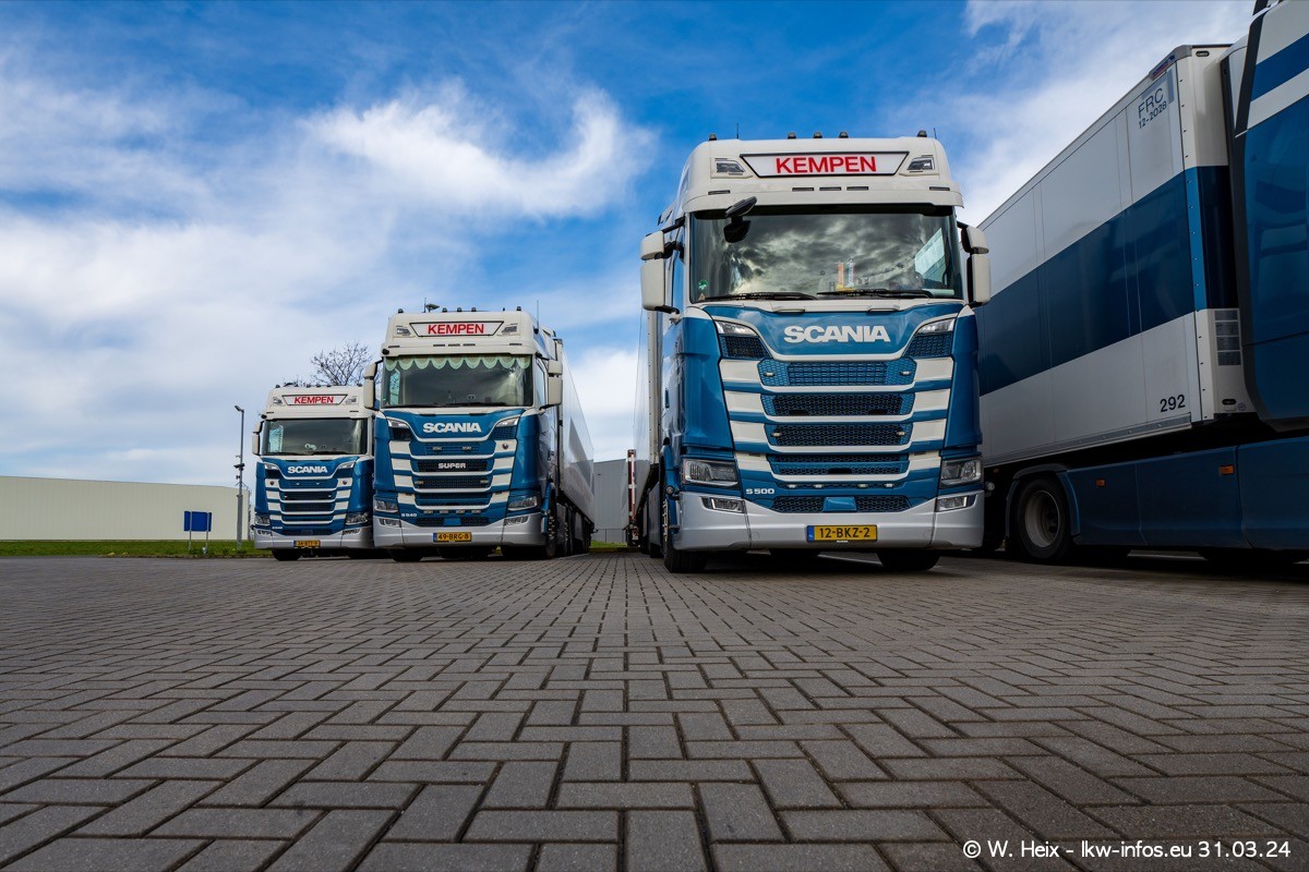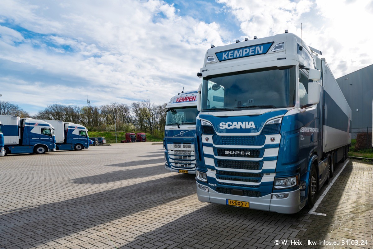 In diesem Jahr sind schon insgesamt mindestens 10 neue LKW in den Fuhrpark gekommen. Alle neuen LKW sind seit 2024 daran zu erkennen, dass aon der Fromt oben am Dach der Kempen-Schriftzug jetzt weiß ist in einem blauen Feld. Bisher war dieser immer rot auf weiß. Es waren so gut wie alle LKW zuzhause und standen auch wieder auf den Nachbargrundstücken. Diesmal konnte ich keinen SCANIA R Streamline und keinen DAF XF mehr sehen bis auf den neuen blauen DAF XG+ natürlich. Vermutlich sind jetzt alle alten SCANIA und DAF ersetzt durch VOLVO FH 5 und SCANIA R/S NextGen. Es sind natürlich auch wieder Bilder von den Chatern (Subunternehmern) in den Galerien enthalten. Auch hier tut sich immer wieder mal was.