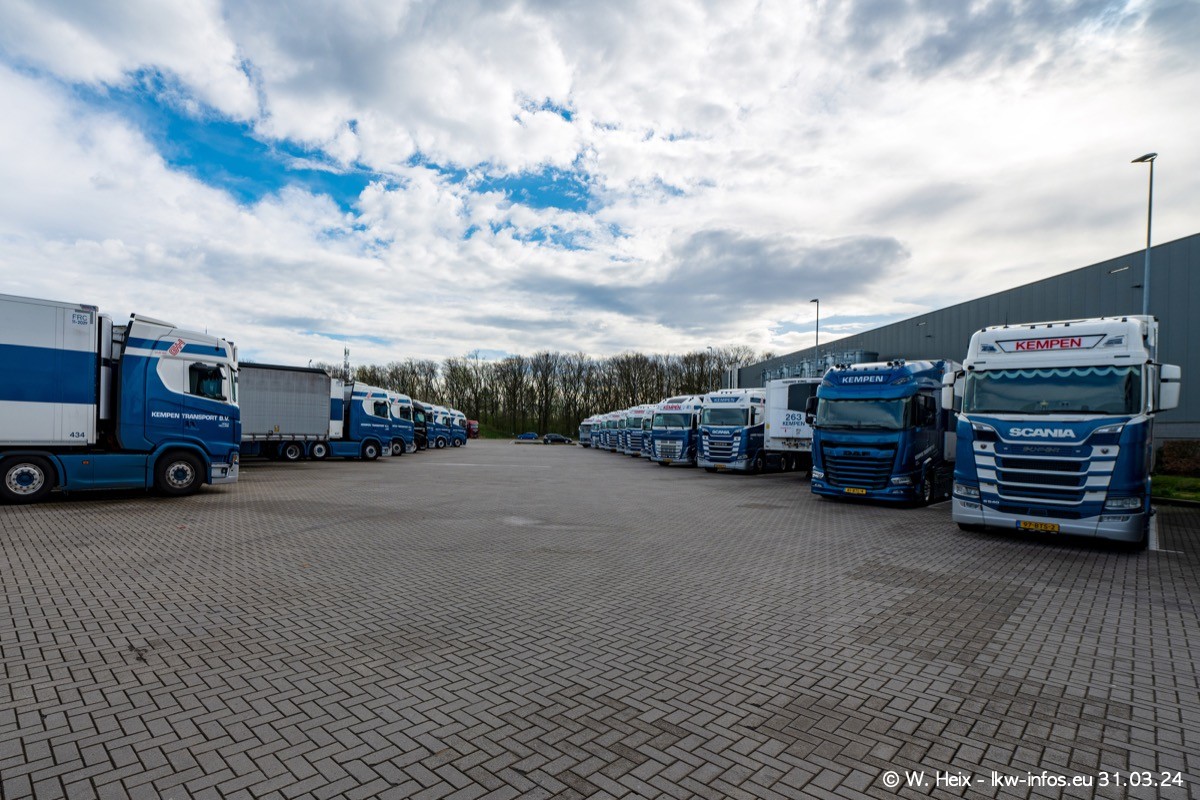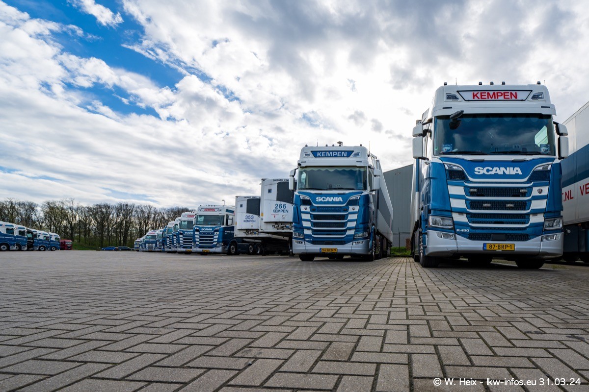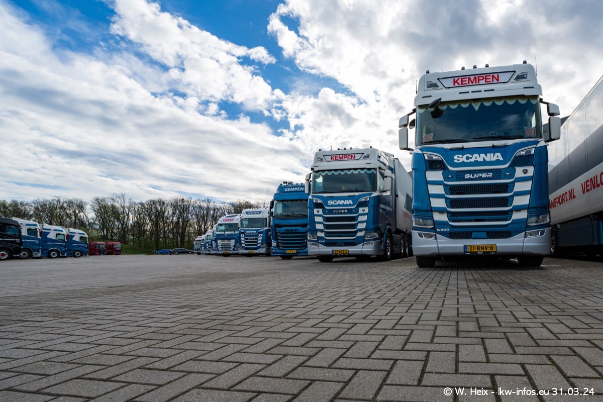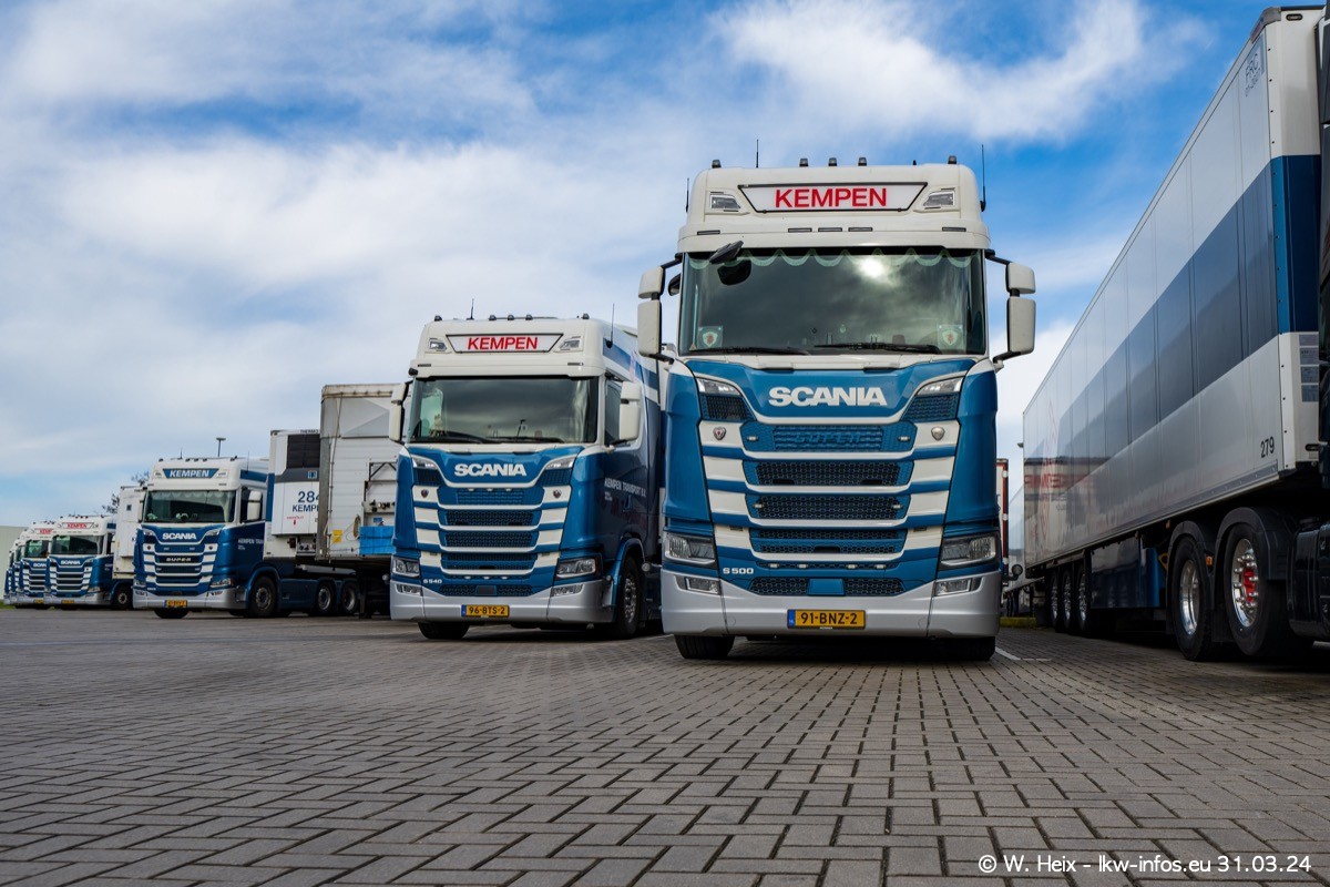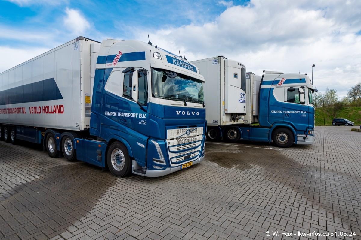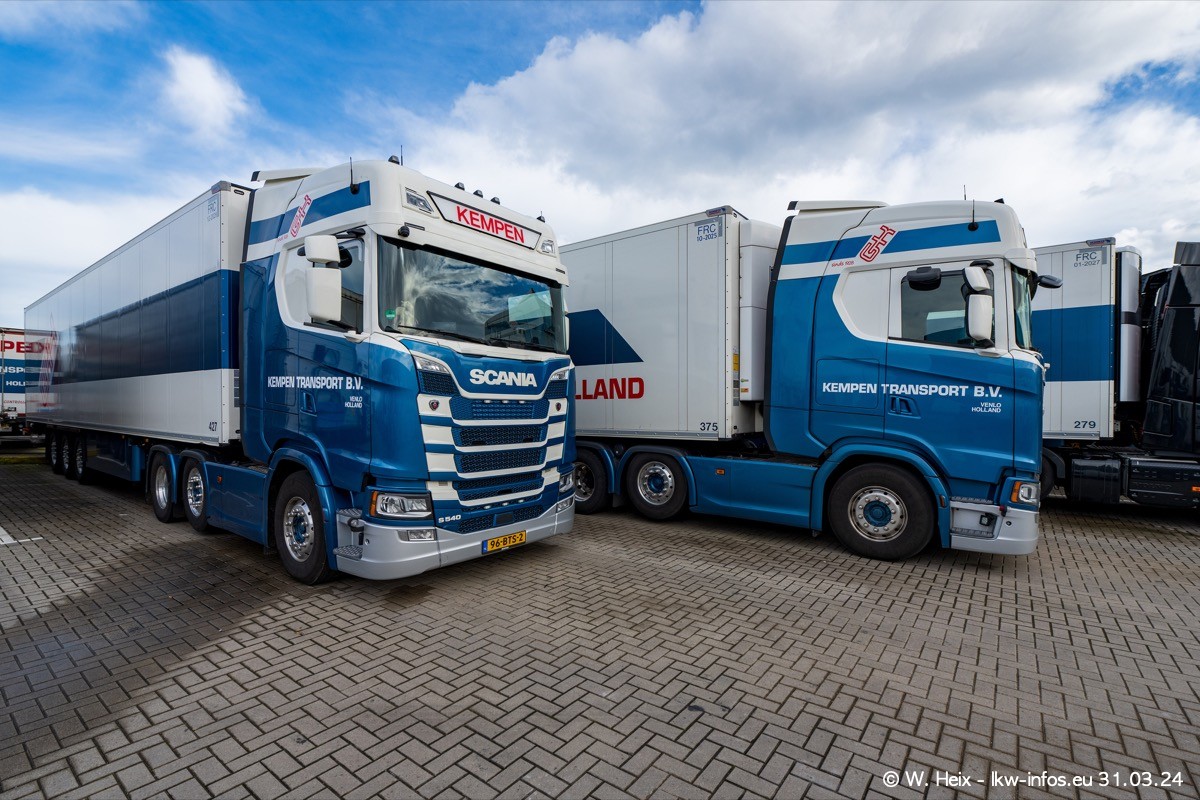 In diesem Jahr sind schon insgesamt mindestens 10 neue LKW in den Fuhrpark gekommen. Alle neuen LKW sind seit 2024 daran zu erkennen, dass aon der Fromt oben am Dach der Kempen-Schriftzug jetzt weiß ist in einem blauen Feld. Bisher war dieser immer rot auf weiß. Es waren so gut wie alle LKW zuzhause und standen auch wieder auf den Nachbargrundstücken. Diesmal konnte ich keinen SCANIA R Streamline und keinen DAF XF mehr sehen bis auf den neuen blauen DAF XG+ natürlich. Vermutlich sind jetzt alle alten SCANIA und DAF ersetzt durch VOLVO FH 5 und SCANIA R/S NextGen. Es sind natürlich auch wieder Bilder von den Chatern (Subunternehmern) in den Galerien enthalten. Auch hier tut sich immer wieder mal was.