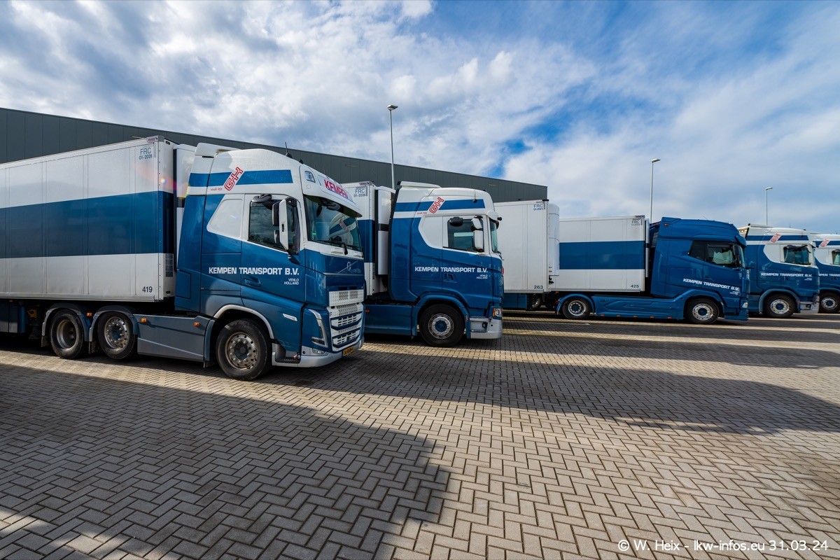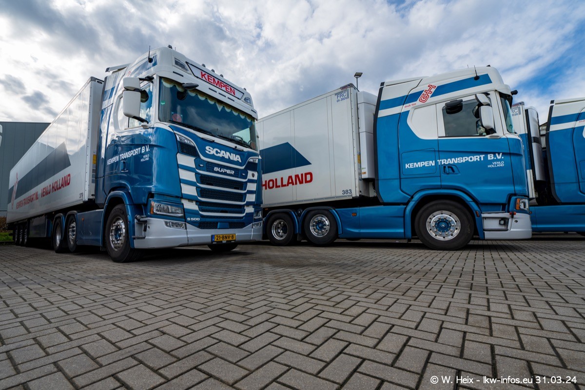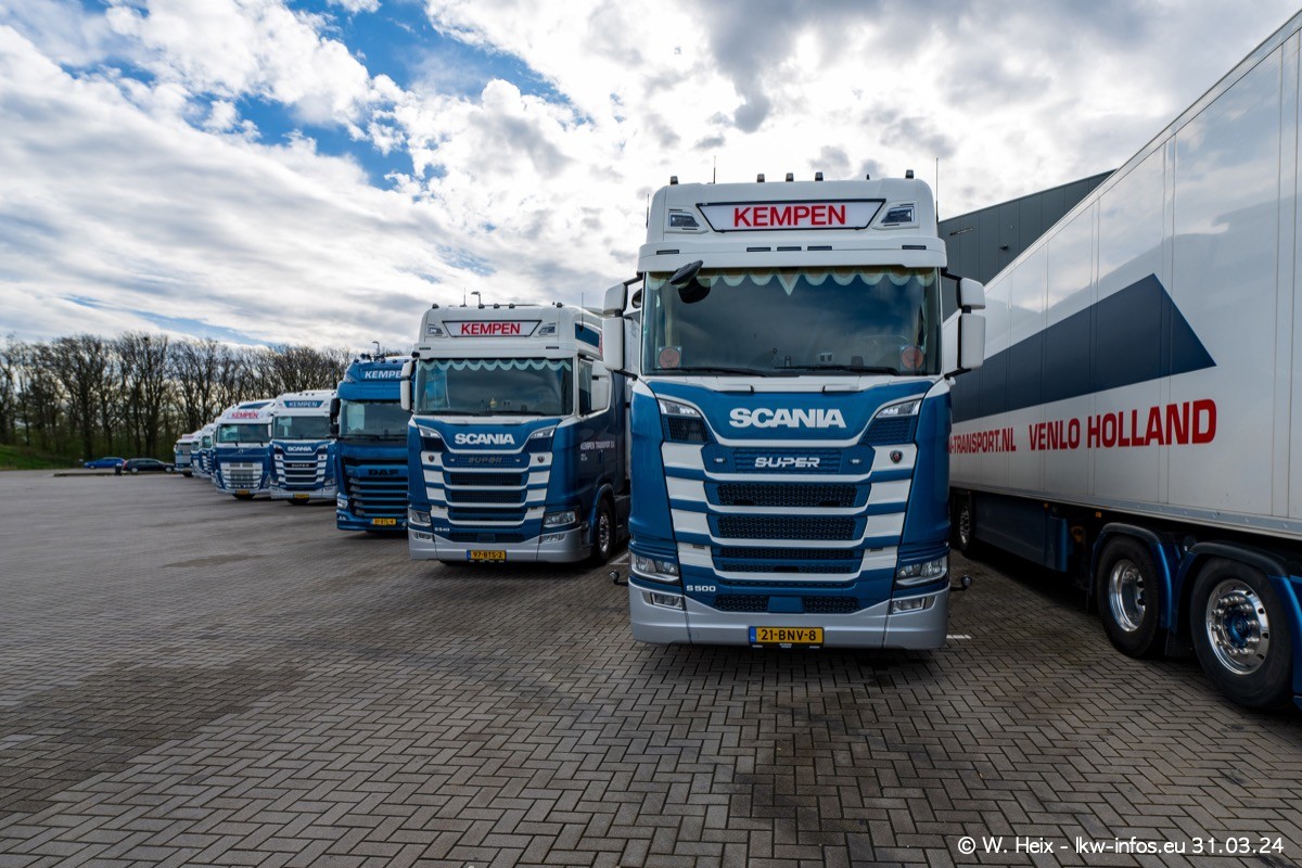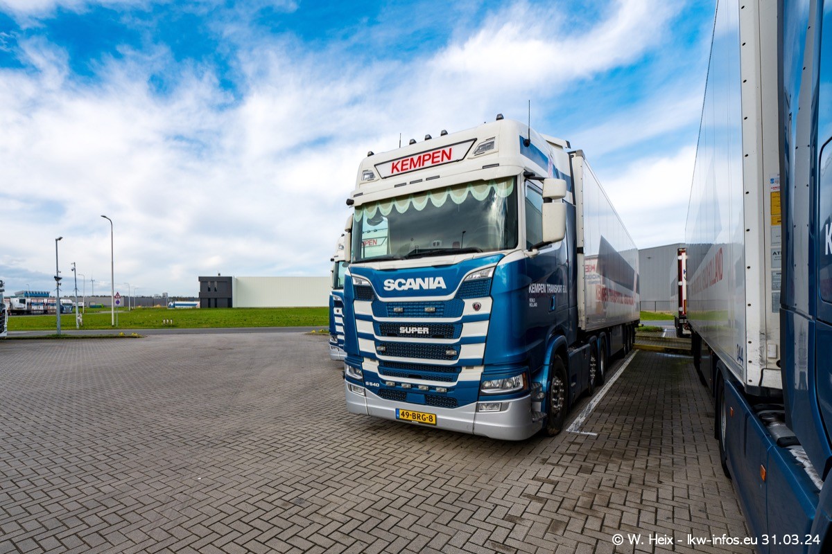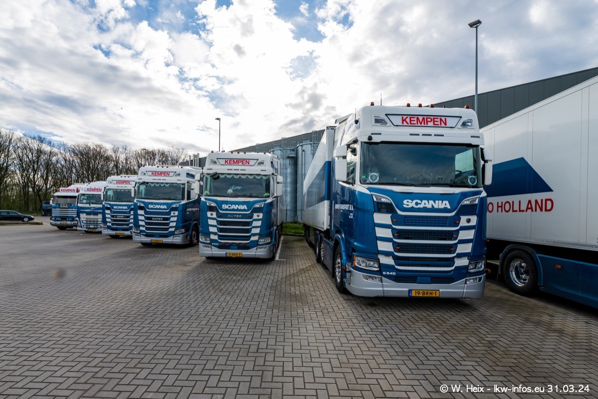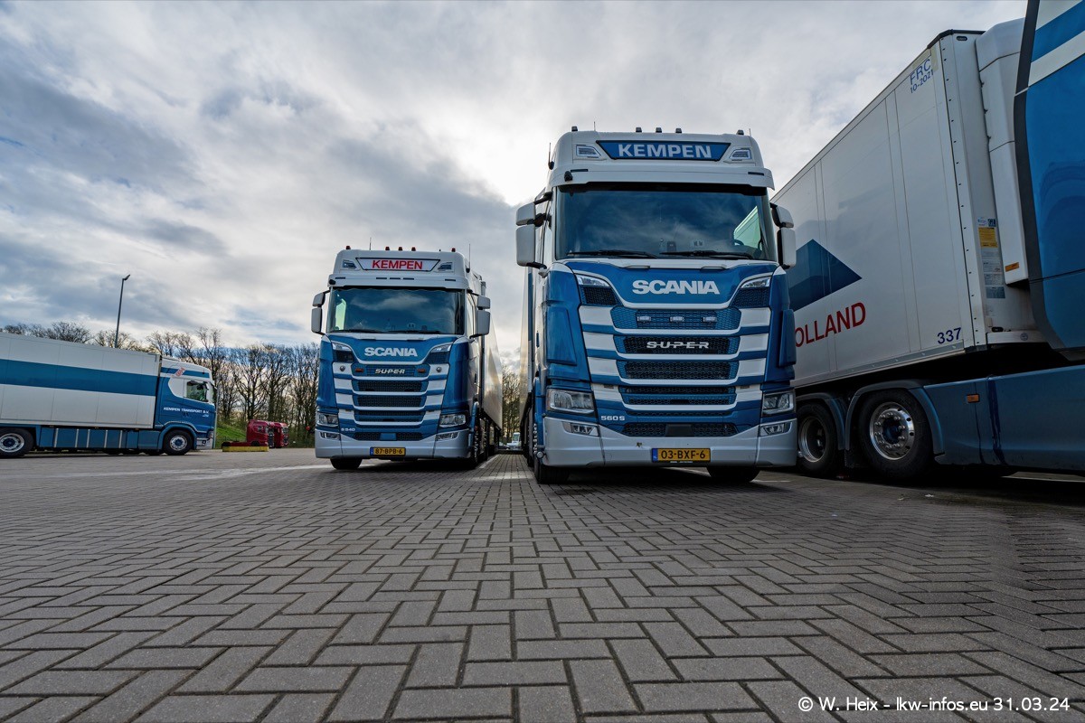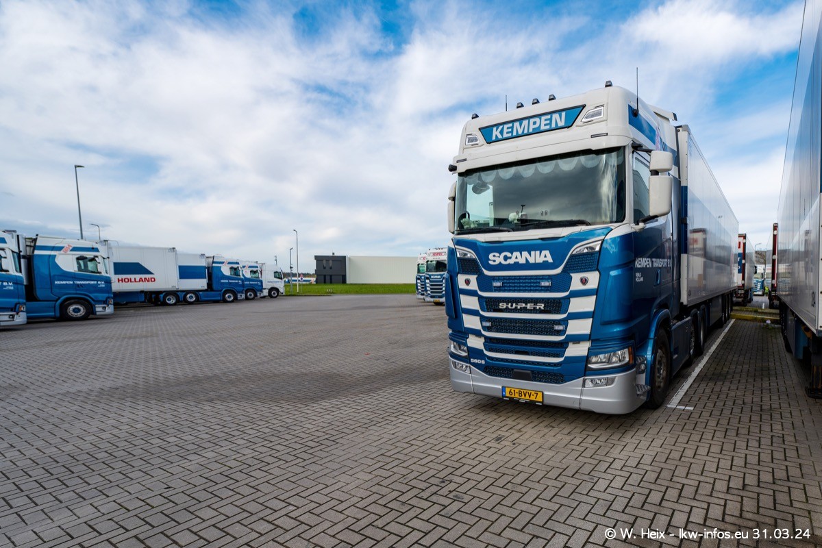 In diesem Jahr sind schon insgesamt mindestens 10 neue LKW in den Fuhrpark gekommen. Alle neuen LKW sind seit 2024 daran zu erkennen, dass aon der Fromt oben am Dach der Kempen-Schriftzug jetzt weiß ist in einem blauen Feld. Bisher war dieser immer rot auf weiß. Es waren so gut wie alle LKW zuzhause und standen auch wieder auf den Nachbargrundstücken. Diesmal konnte ich keinen SCANIA R Streamline und keinen DAF XF mehr sehen bis auf den neuen blauen DAF XG+ natürlich. Vermutlich sind jetzt alle alten SCANIA und DAF ersetzt durch VOLVO FH 5 und SCANIA R/S NextGen. Es sind natürlich auch wieder Bilder von den Chatern (Subunternehmern) in den Galerien enthalten. Auch hier tut sich immer wieder mal was.