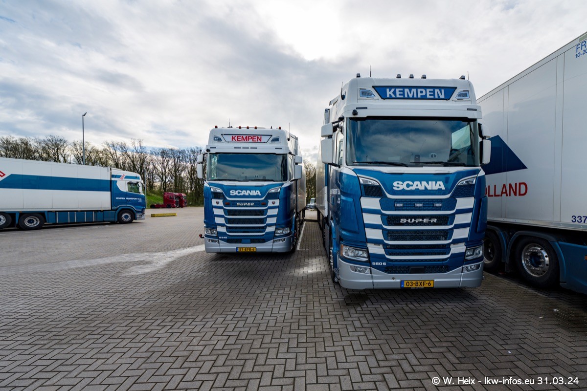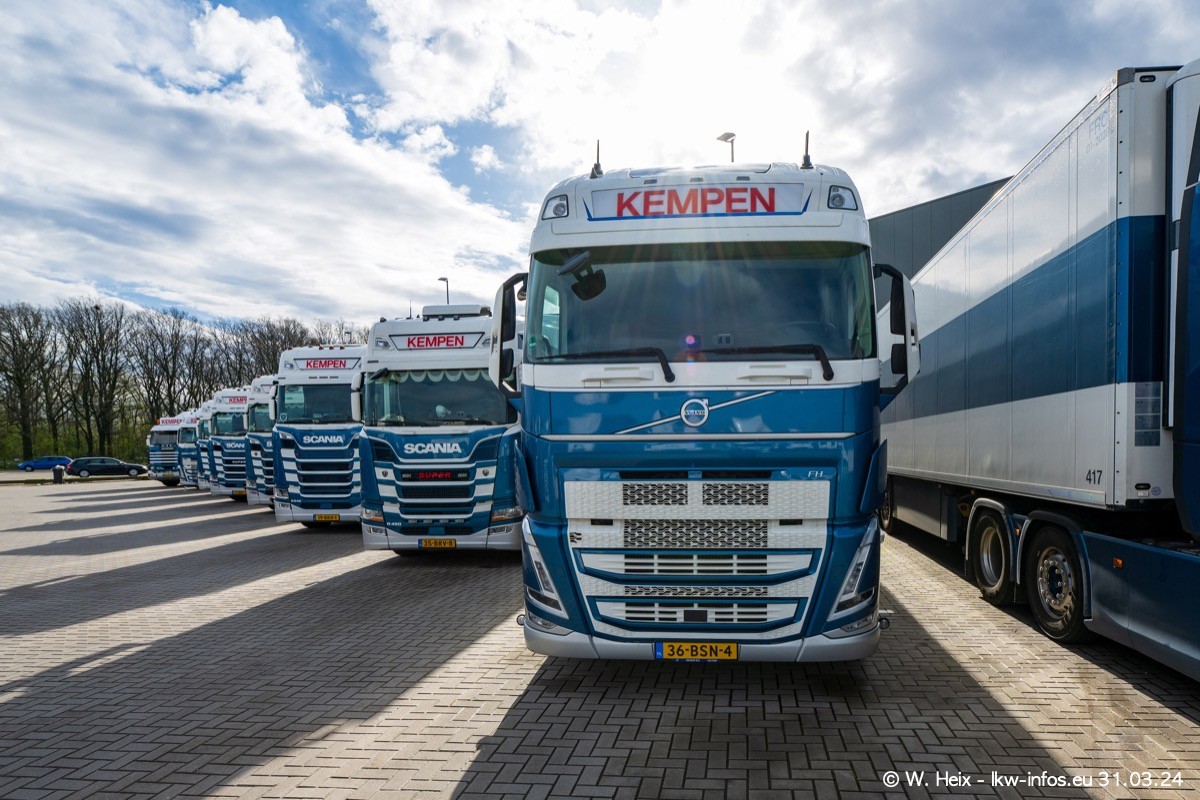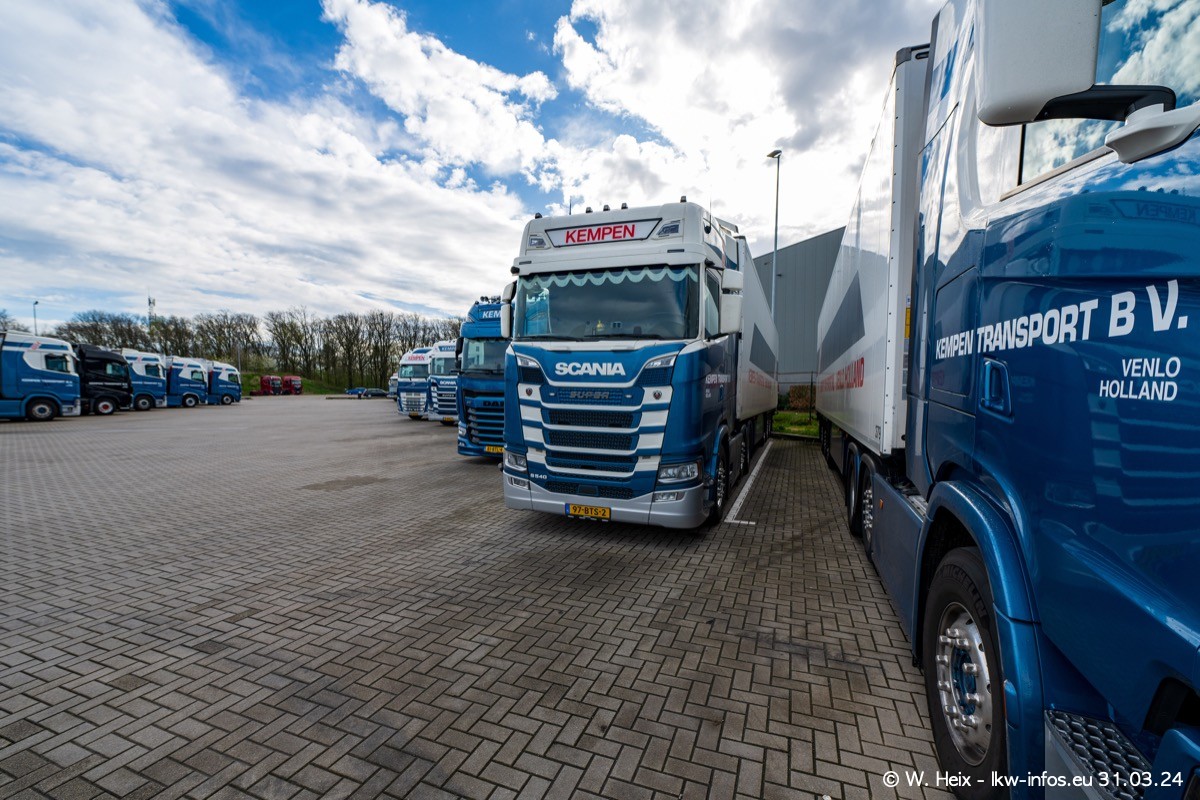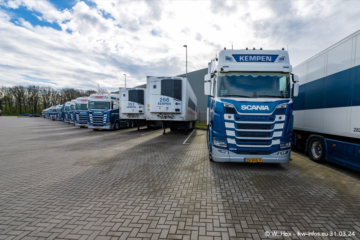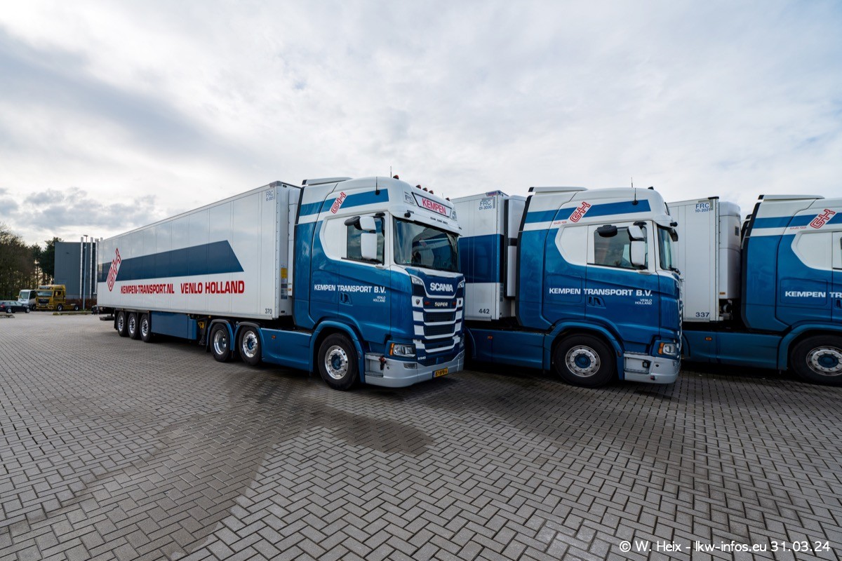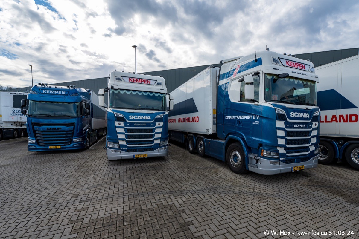 In diesem Jahr sind schon insgesamt mindestens 10 neue LKW in den Fuhrpark gekommen. Alle neuen LKW sind seit 2024 daran zu erkennen, dass aon der Fromt oben am Dach der Kempen-Schriftzug jetzt weiß ist in einem blauen Feld. Bisher war dieser immer rot auf weiß. Es waren so gut wie alle LKW zuzhause und standen auch wieder auf den Nachbargrundstücken. Diesmal konnte ich keinen SCANIA R Streamline und keinen DAF XF mehr sehen bis auf den neuen blauen DAF XG+ natürlich. Vermutlich sind jetzt alle alten SCANIA und DAF ersetzt durch VOLVO FH 5 und SCANIA R/S NextGen. Es sind natürlich auch wieder Bilder von den Chatern (Subunternehmern) in den Galerien enthalten. Auch hier tut sich immer wieder mal was.