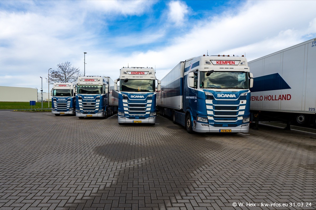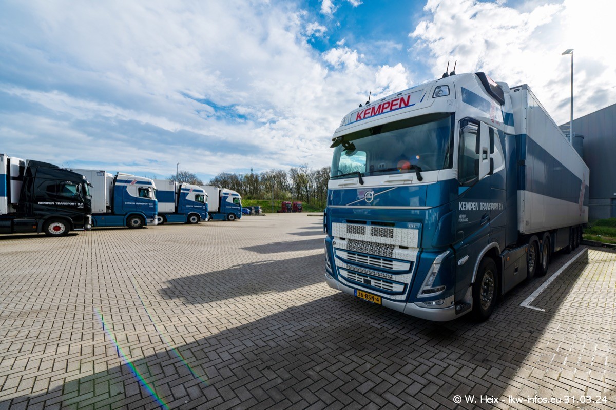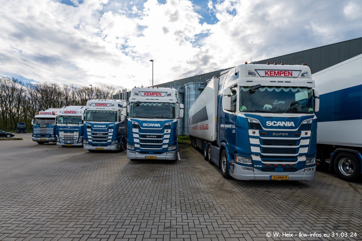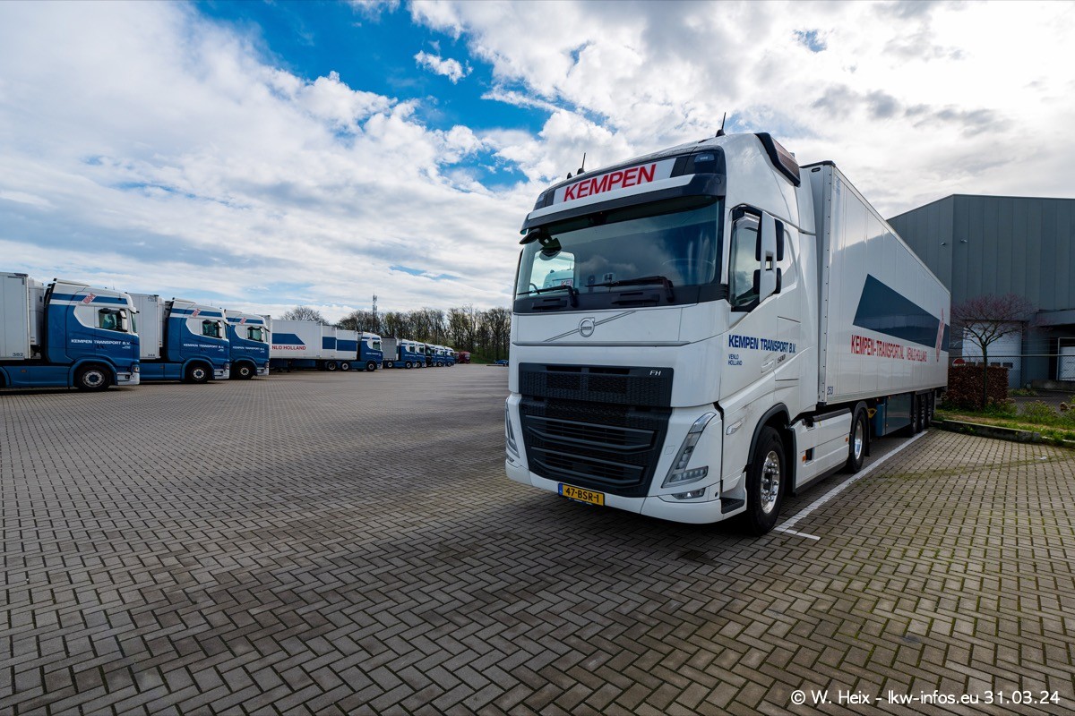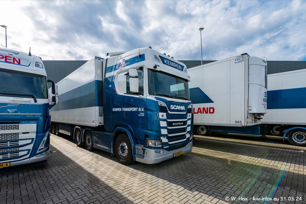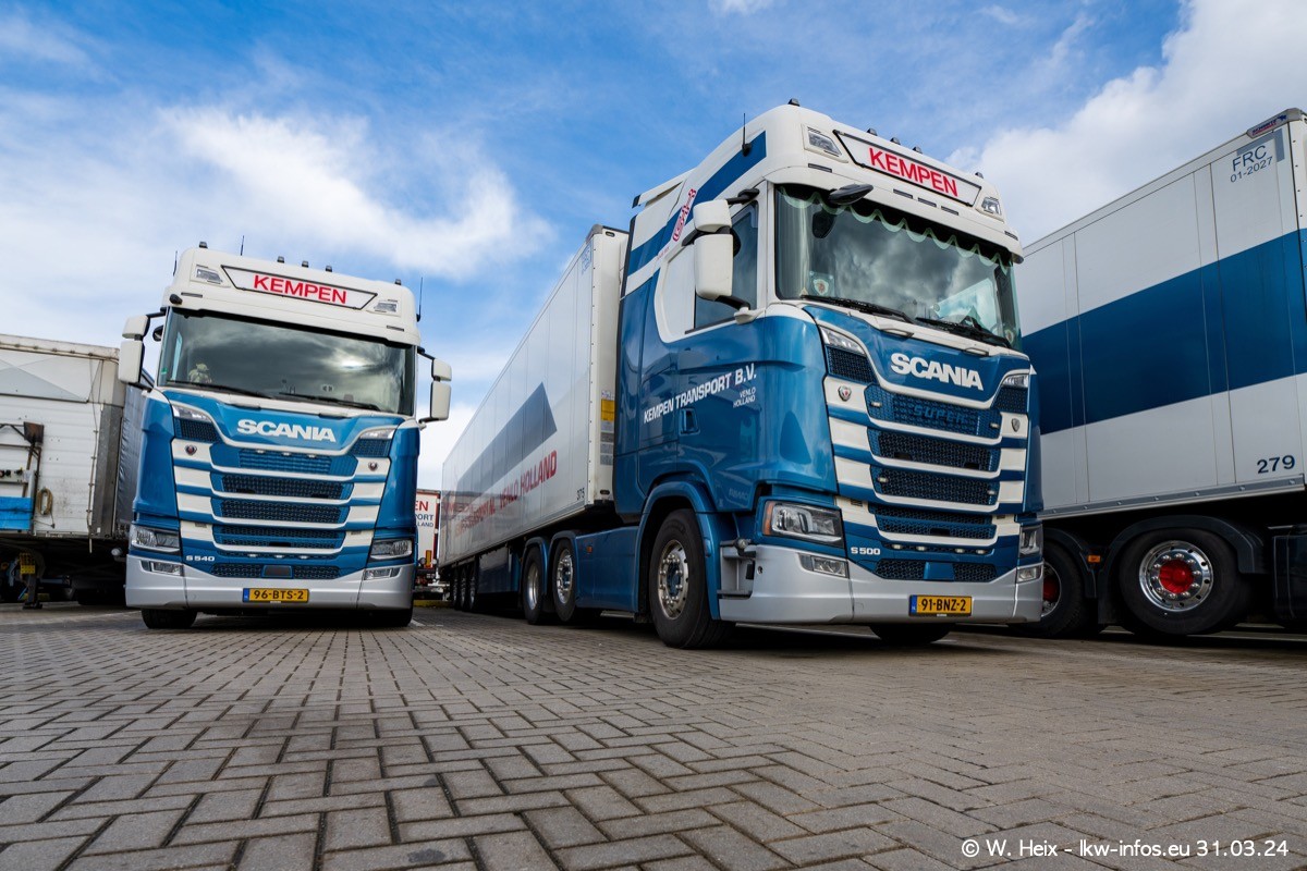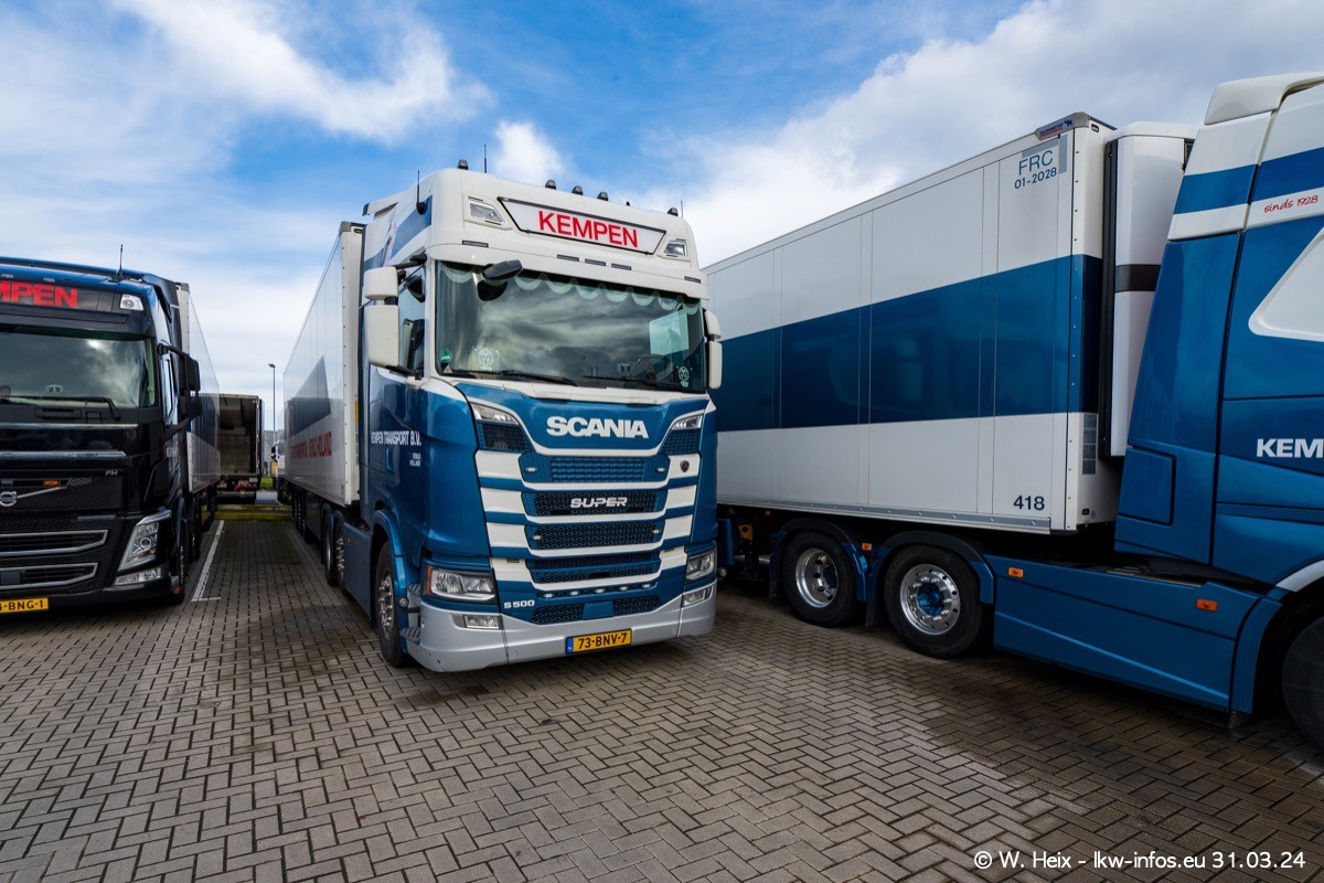 In diesem Jahr sind schon insgesamt mindestens 10 neue LKW in den Fuhrpark gekommen. Alle neuen LKW sind seit 2024 daran zu erkennen, dass aon der Fromt oben am Dach der Kempen-Schriftzug jetzt weiß ist in einem blauen Feld. Bisher war dieser immer rot auf weiß. Es waren so gut wie alle LKW zuzhause und standen auch wieder auf den Nachbargrundstücken. Diesmal konnte ich keinen SCANIA R Streamline und keinen DAF XF mehr sehen bis auf den neuen blauen DAF XG+ natürlich. Vermutlich sind jetzt alle alten SCANIA und DAF ersetzt durch VOLVO FH 5 und SCANIA R/S NextGen. Es sind natürlich auch wieder Bilder von den Chatern (Subunternehmern) in den Galerien enthalten. Auch hier tut sich immer wieder mal was.