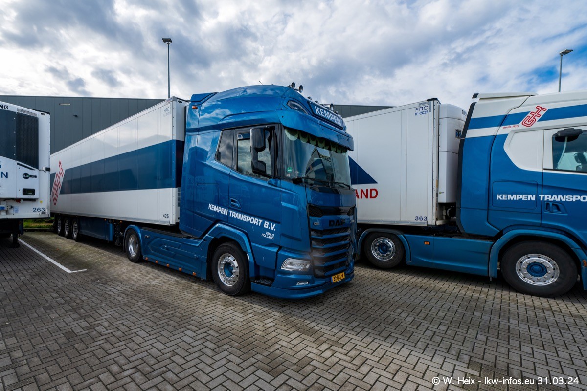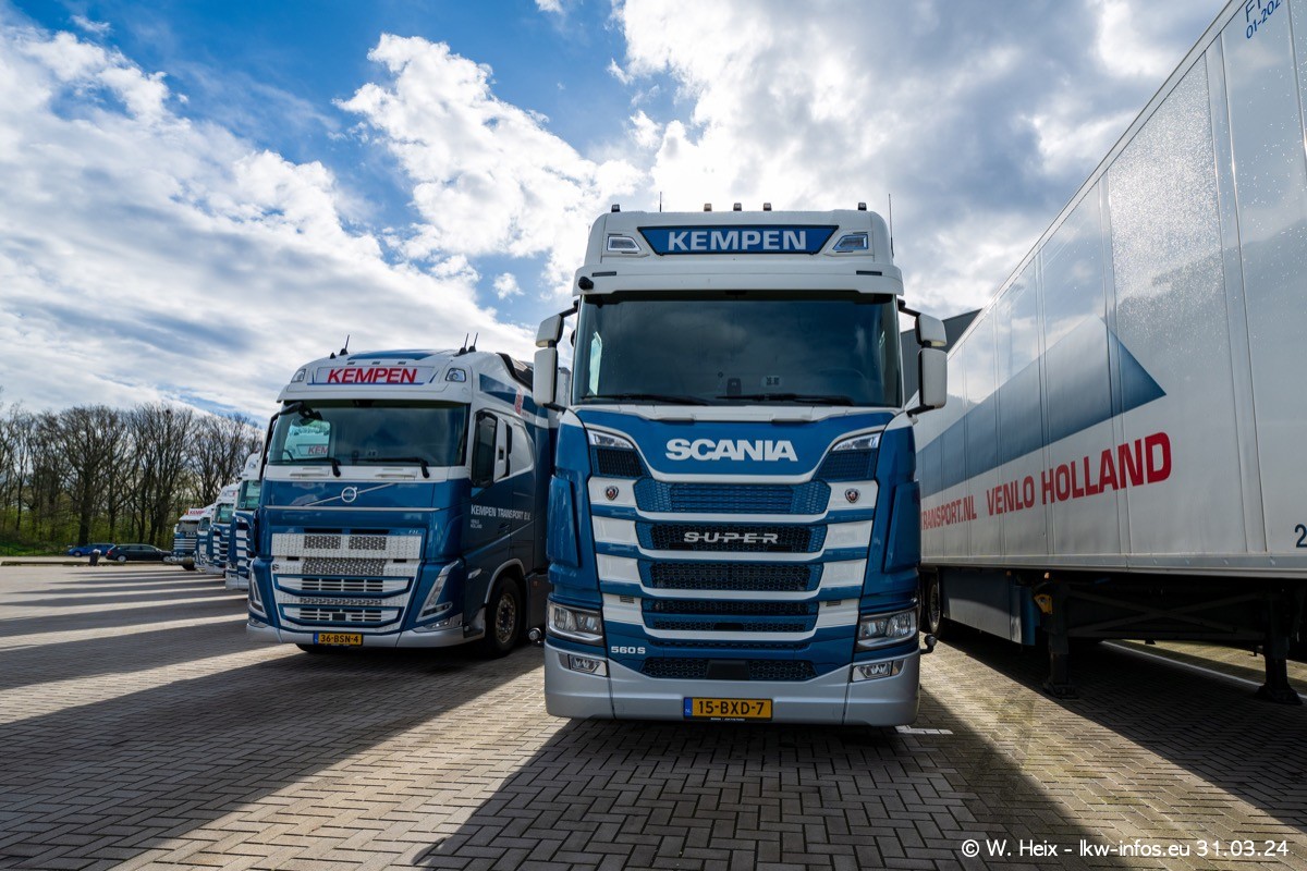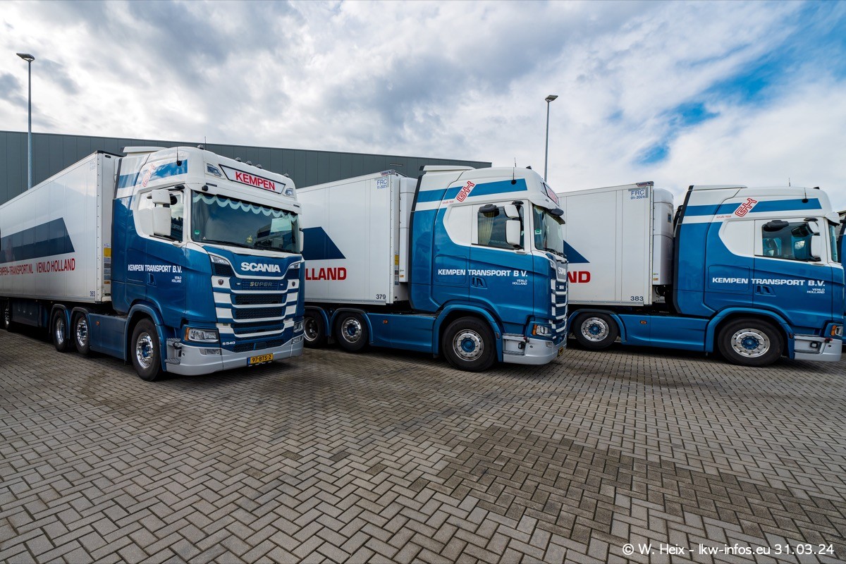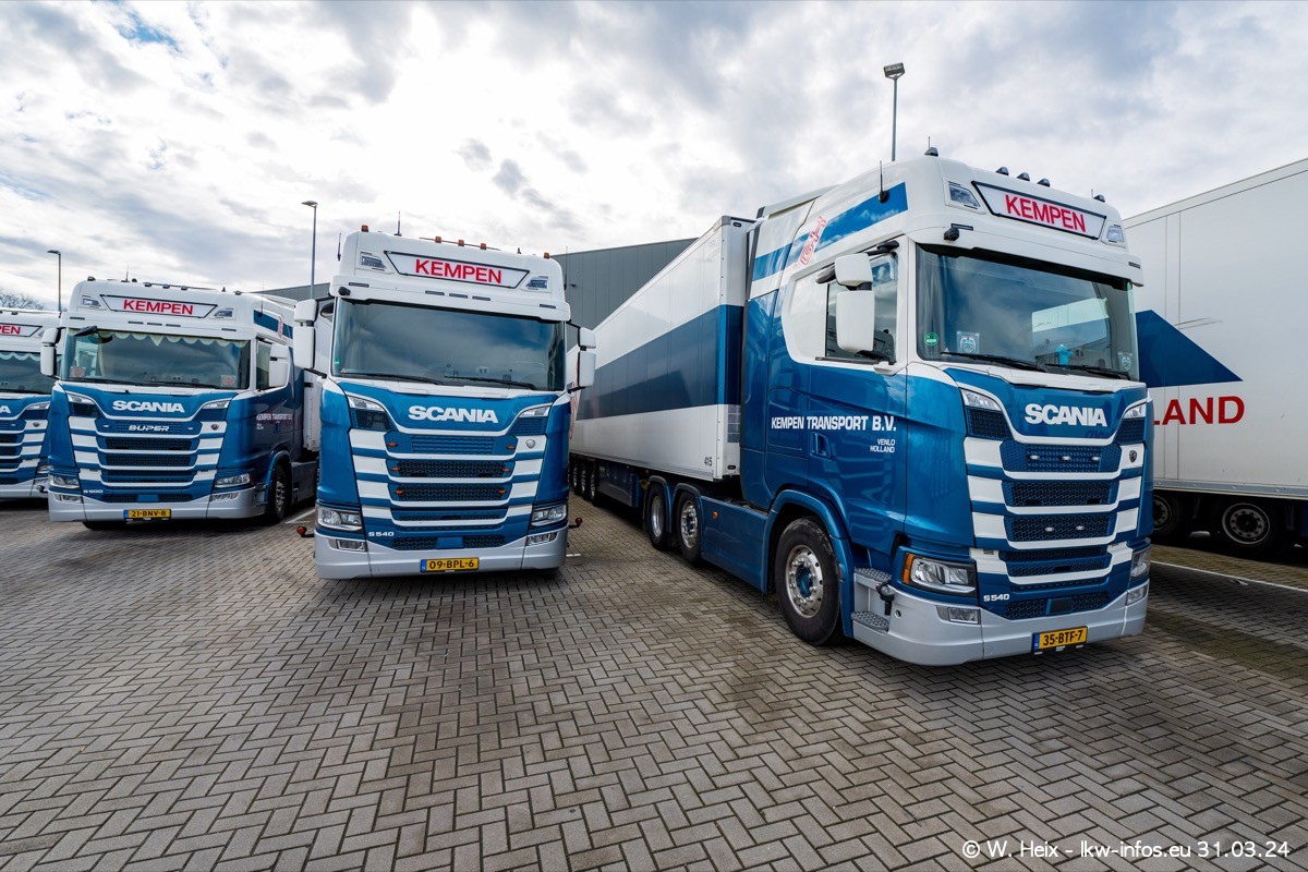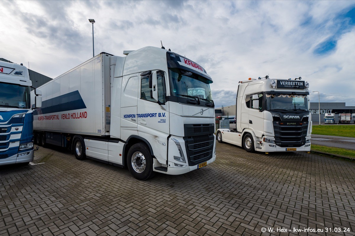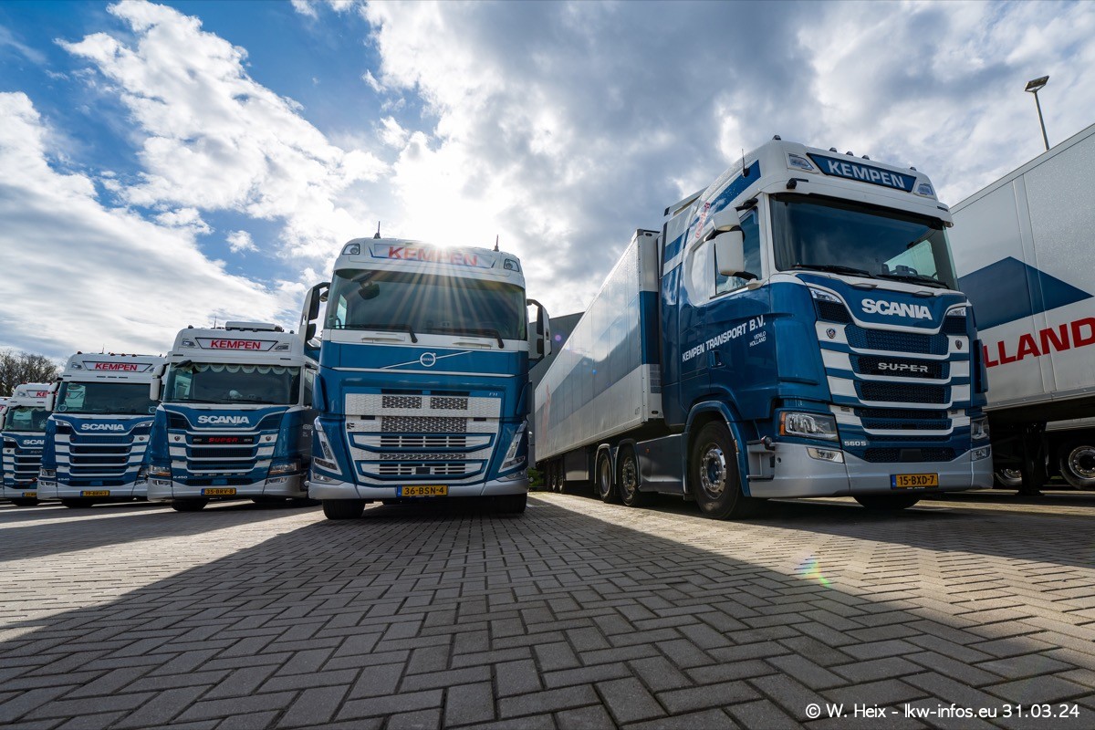 In diesem Jahr sind schon insgesamt mindestens 10 neue LKW in den Fuhrpark gekommen. Alle neuen LKW sind seit 2024 daran zu erkennen, dass aon der Fromt oben am Dach der Kempen-Schriftzug jetzt weiß ist in einem blauen Feld. Bisher war dieser immer rot auf weiß. Es waren so gut wie alle LKW zuzhause und standen auch wieder auf den Nachbargrundstücken. Diesmal konnte ich keinen SCANIA R Streamline und keinen DAF XF mehr sehen bis auf den neuen blauen DAF XG+ natürlich. Vermutlich sind jetzt alle alten SCANIA und DAF ersetzt durch VOLVO FH 5 und SCANIA R/S NextGen. Es sind natürlich auch wieder Bilder von den Chatern (Subunternehmern) in den Galerien enthalten. Auch hier tut sich immer wieder mal was.