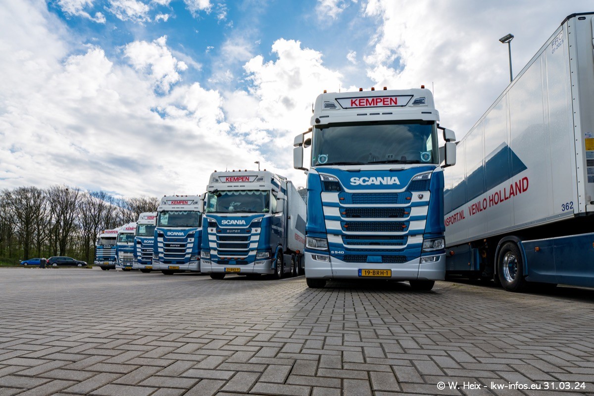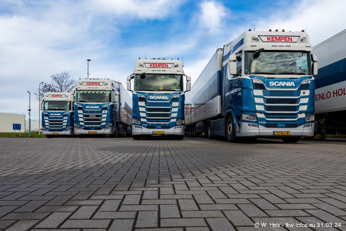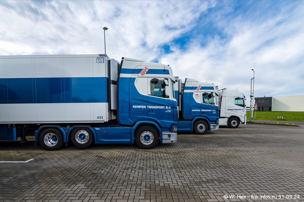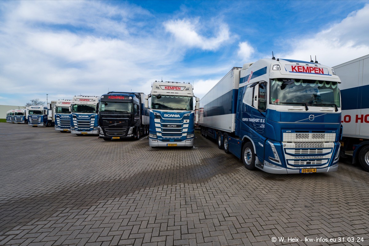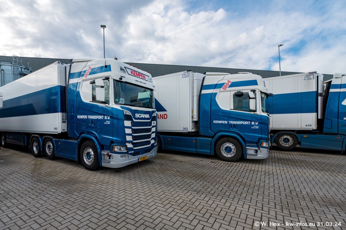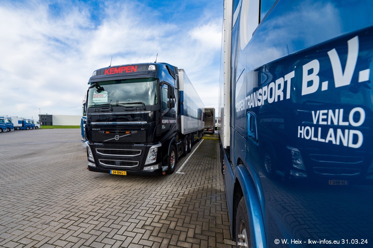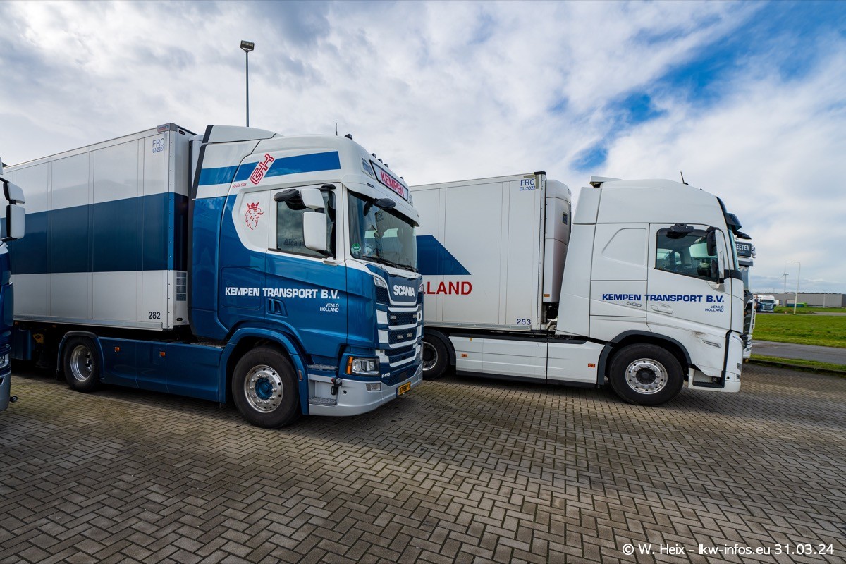 In diesem Jahr sind schon insgesamt mindestens 10 neue LKW in den Fuhrpark gekommen. Alle neuen LKW sind seit 2024 daran zu erkennen, dass aon der Fromt oben am Dach der Kempen-Schriftzug jetzt weiß ist in einem blauen Feld. Bisher war dieser immer rot auf weiß. Es waren so gut wie alle LKW zuzhause und standen auch wieder auf den Nachbargrundstücken. Diesmal konnte ich keinen SCANIA R Streamline und keinen DAF XF mehr sehen bis auf den neuen blauen DAF XG+ natürlich. Vermutlich sind jetzt alle alten SCANIA und DAF ersetzt durch VOLVO FH 5 und SCANIA R/S NextGen. Es sind natürlich auch wieder Bilder von den Chatern (Subunternehmern) in den Galerien enthalten. Auch hier tut sich immer wieder mal was.