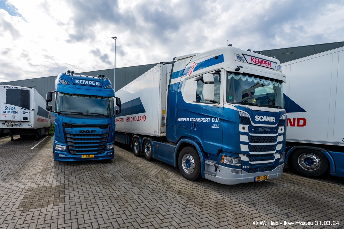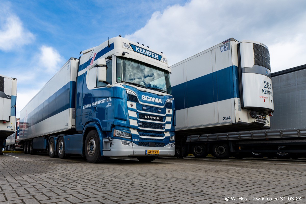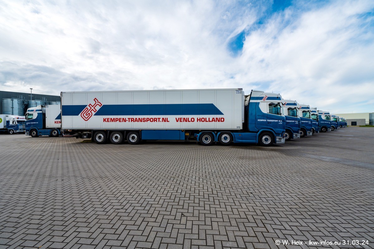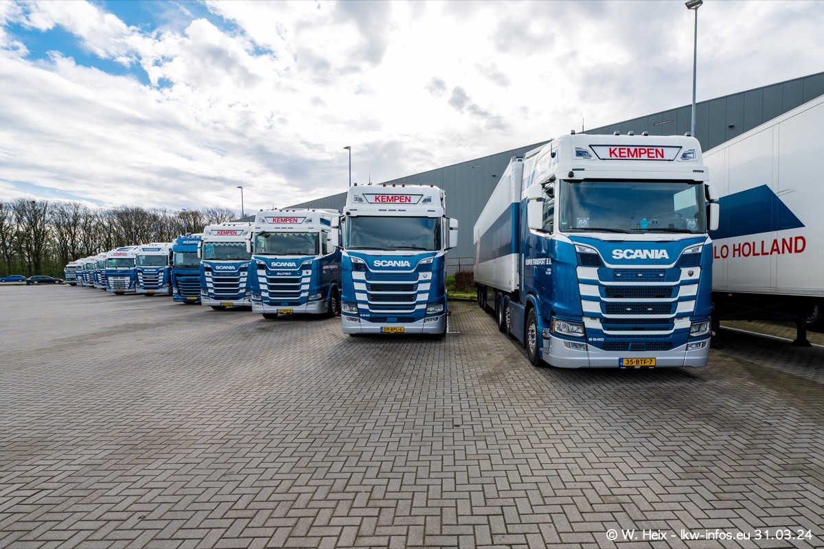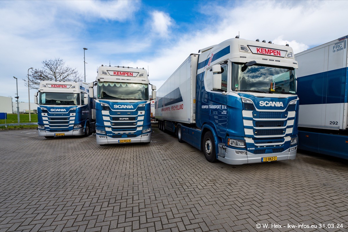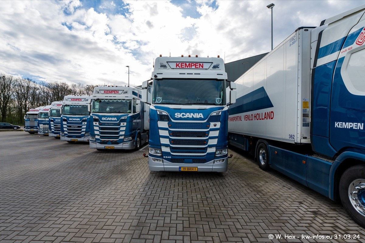In diesem Jahr sind schon insgesamt mindestens 10 neue LKW in den Fuhrpark gekommen. Alle neuen LKW sind seit 2024 daran zu erkennen, dass aon der Fromt oben am Dach der Kempen-Schriftzug jetzt weiß ist in einem blauen Feld. Bisher war dieser immer rot auf weiß. Es waren so gut wie alle LKW zuzhause und standen auch wieder auf den Nachbargrundstücken. Diesmal konnte ich keinen SCANIA R Streamline und keinen DAF XF mehr sehen bis auf den neuen blauen DAF XG+ natürlich. Vermutlich sind jetzt alle alten SCANIA und DAF ersetzt durch VOLVO FH 5 und SCANIA R/S NextGen. Es sind natürlich auch wieder Bilder von den Chatern (Subunternehmern) in den Galerien enthalten. Auch hier tut sich immer wieder mal was.