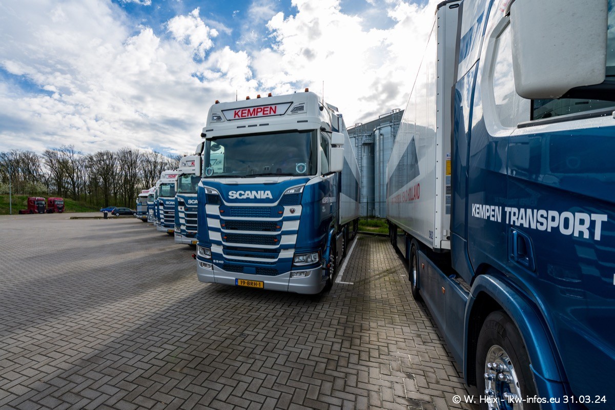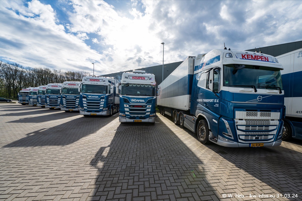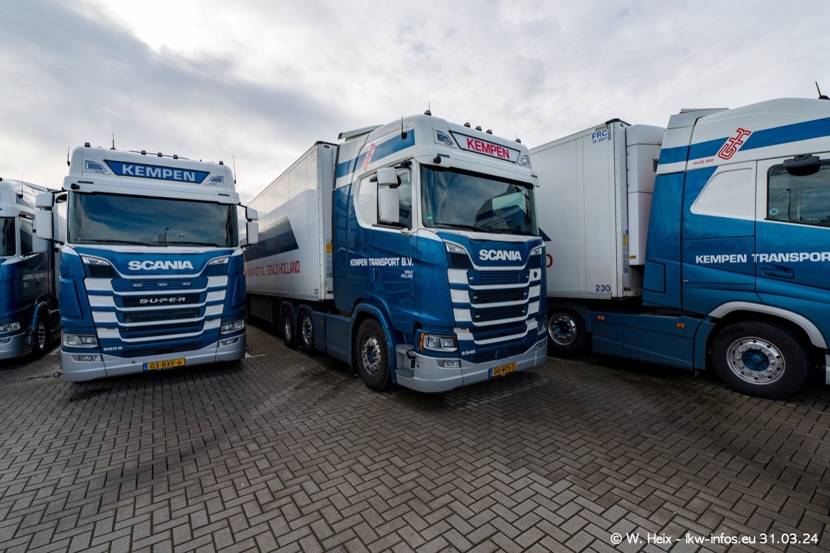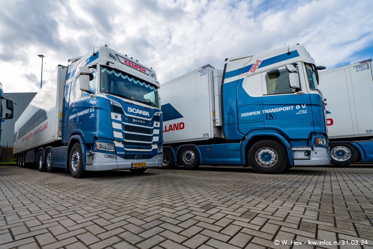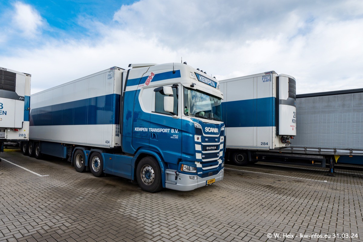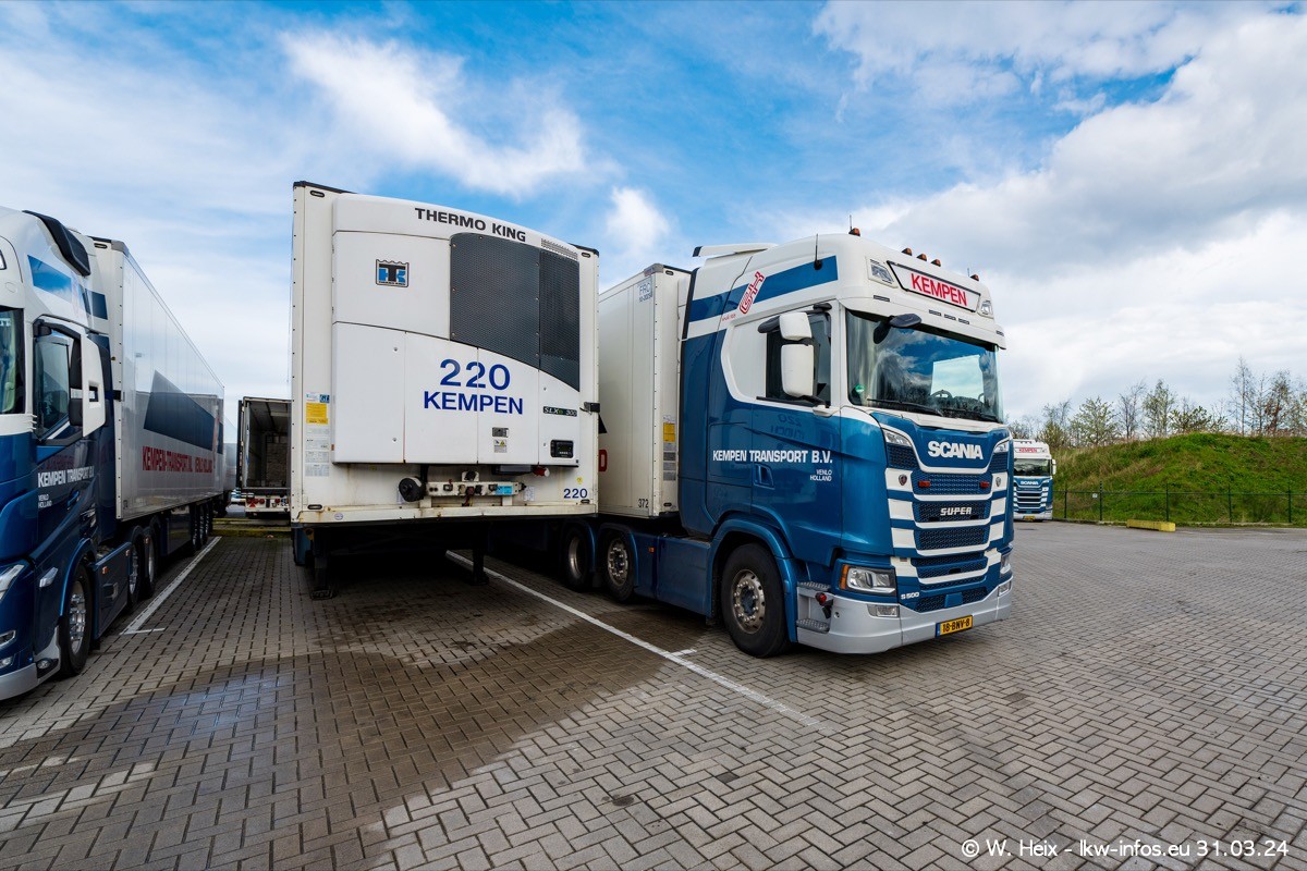In diesem Jahr sind schon insgesamt mindestens 10 neue LKW in den Fuhrpark gekommen. Alle neuen LKW sind seit 2024 daran zu erkennen, dass aon der Fromt oben am Dach der Kempen-Schriftzug jetzt weiß ist in einem blauen Feld. Bisher war dieser immer rot auf weiß. Es waren so gut wie alle LKW zuzhause und standen auch wieder auf den Nachbargrundstücken. Diesmal konnte ich keinen SCANIA R Streamline und keinen DAF XF mehr sehen bis auf den neuen blauen DAF XG+ natürlich. Vermutlich sind jetzt alle alten SCANIA und DAF ersetzt durch VOLVO FH 5 und SCANIA R/S NextGen. Es sind natürlich auch wieder Bilder von den Chatern (Subunternehmern) in den Galerien enthalten. Auch hier tut sich immer wieder mal was.