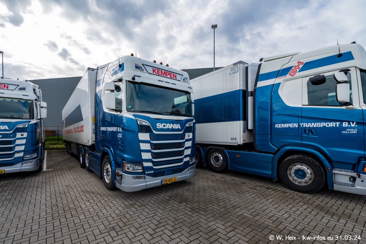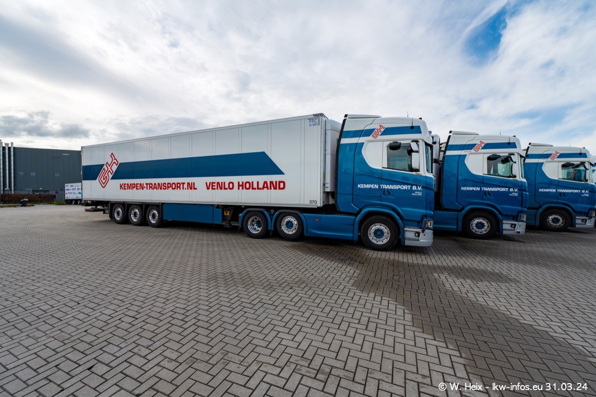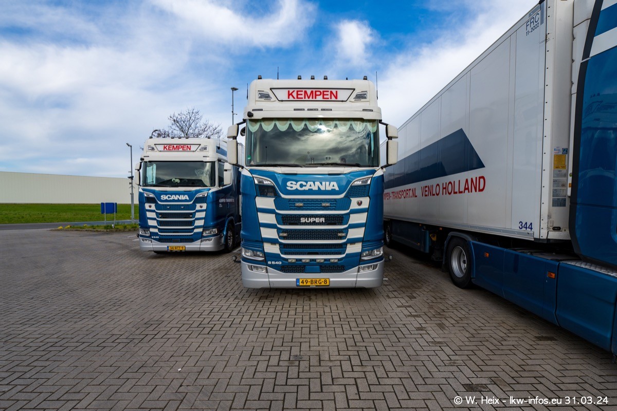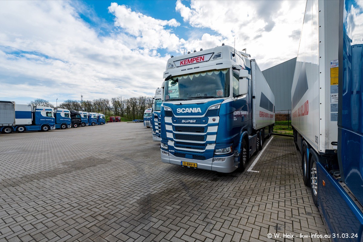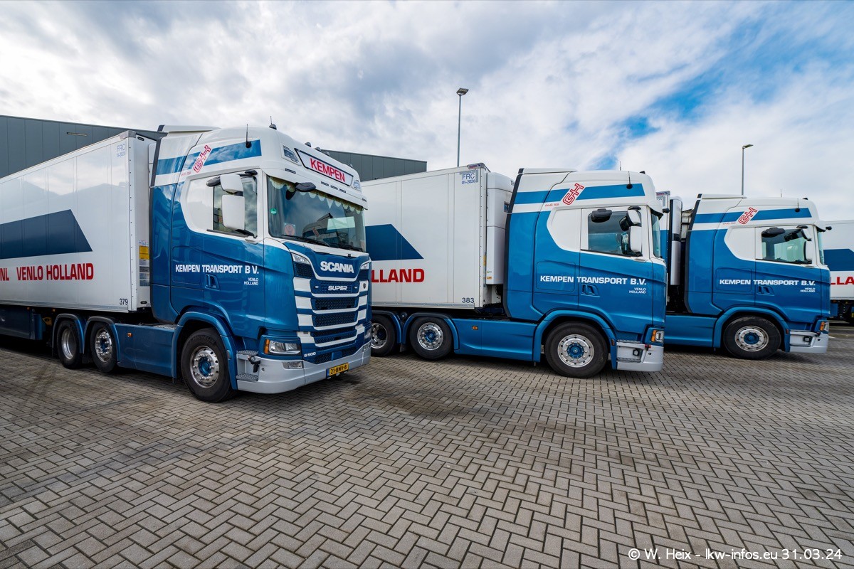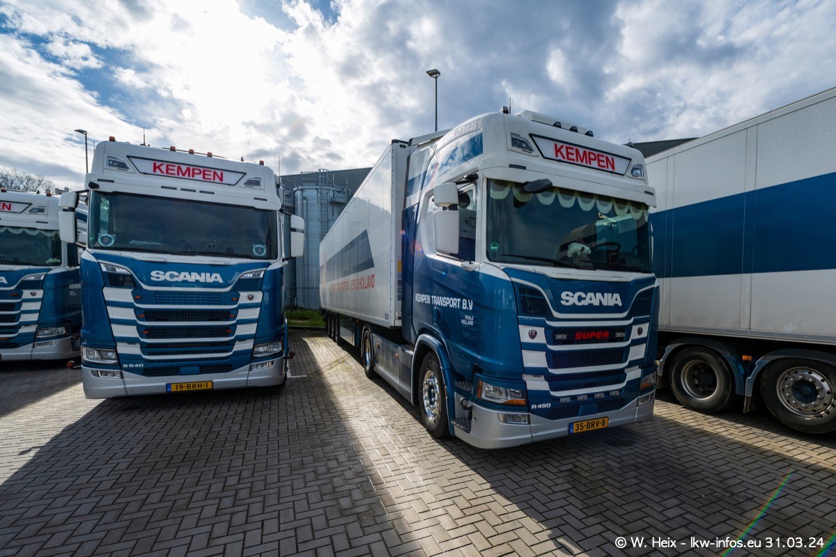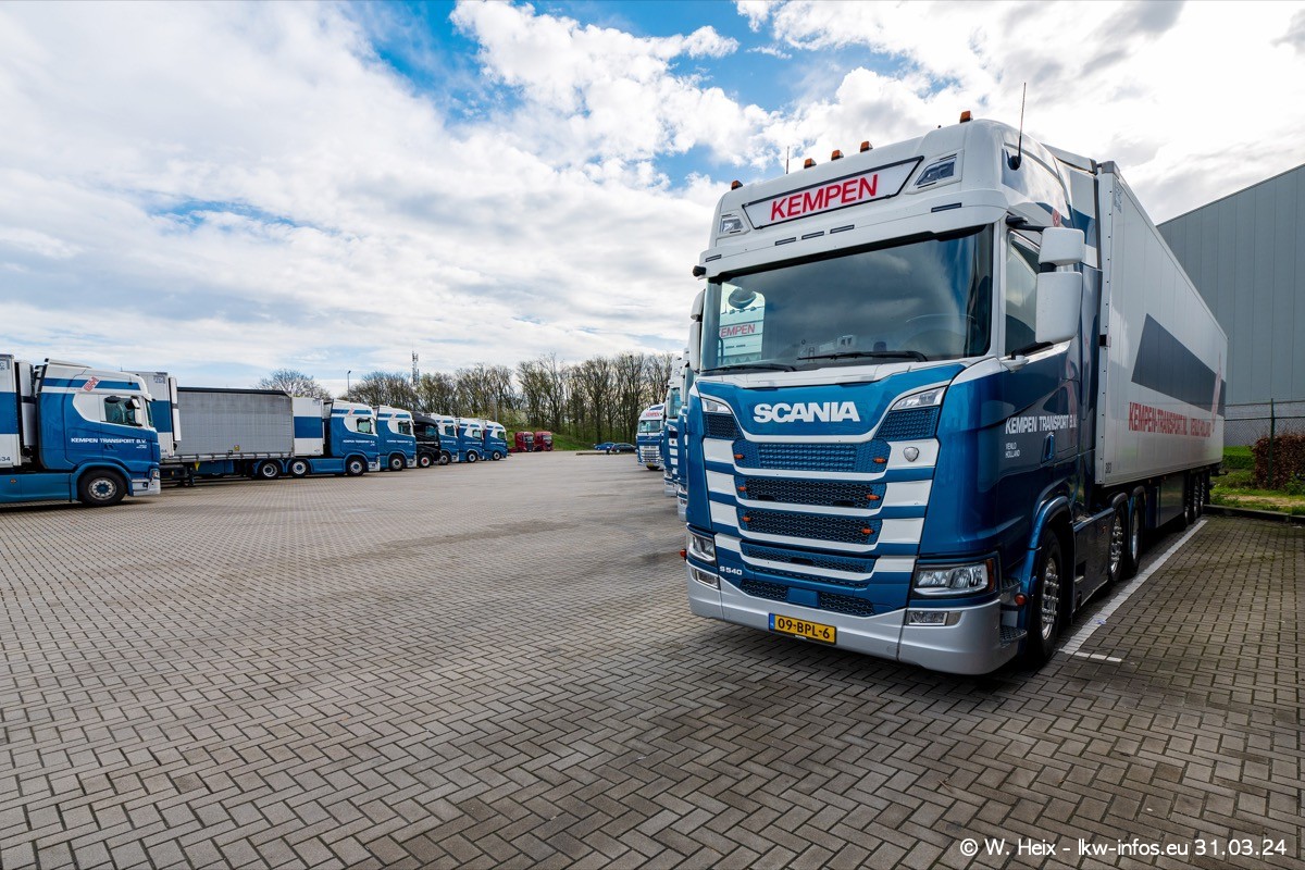 In diesem Jahr sind schon insgesamt mindestens 10 neue LKW in den Fuhrpark gekommen. Alle neuen LKW sind seit 2024 daran zu erkennen, dass aon der Fromt oben am Dach der Kempen-Schriftzug jetzt weiß ist in einem blauen Feld. Bisher war dieser immer rot auf weiß. Es waren so gut wie alle LKW zuzhause und standen auch wieder auf den Nachbargrundstücken. Diesmal konnte ich keinen SCANIA R Streamline und keinen DAF XF mehr sehen bis auf den neuen blauen DAF XG+ natürlich. Vermutlich sind jetzt alle alten SCANIA und DAF ersetzt durch VOLVO FH 5 und SCANIA R/S NextGen. Es sind natürlich auch wieder Bilder von den Chatern (Subunternehmern) in den Galerien enthalten. Auch hier tut sich immer wieder mal was.