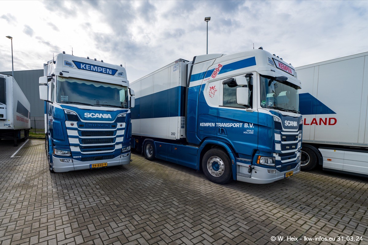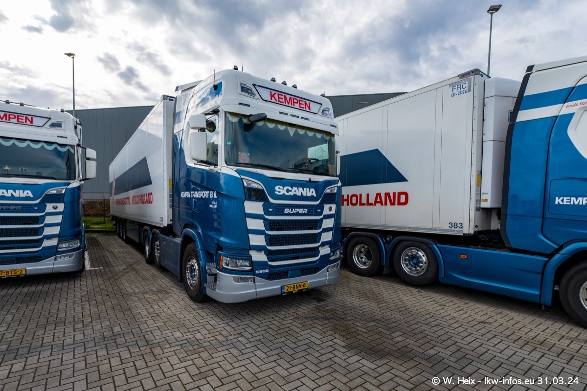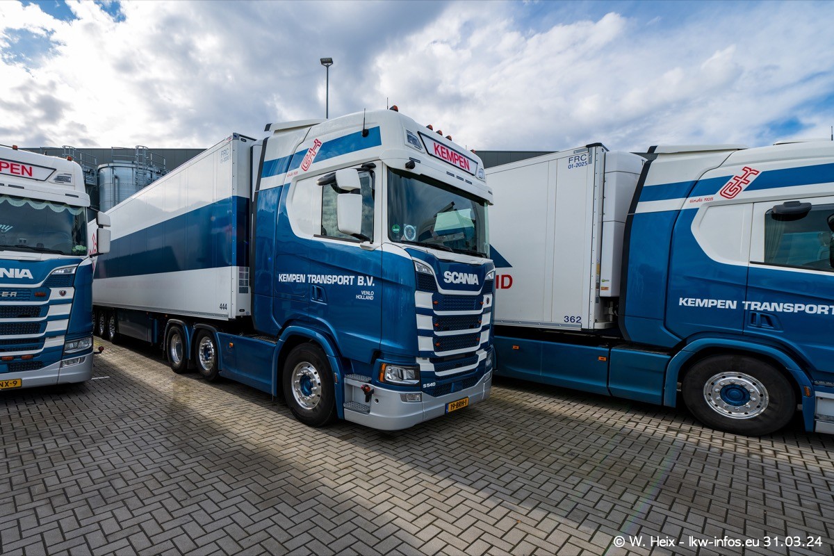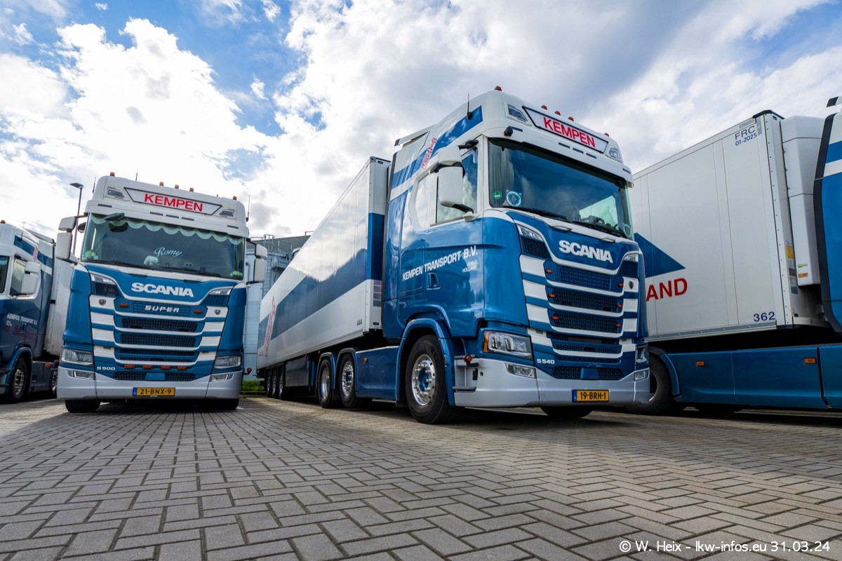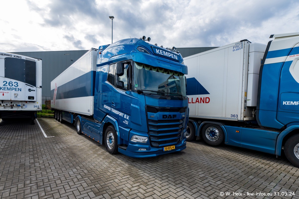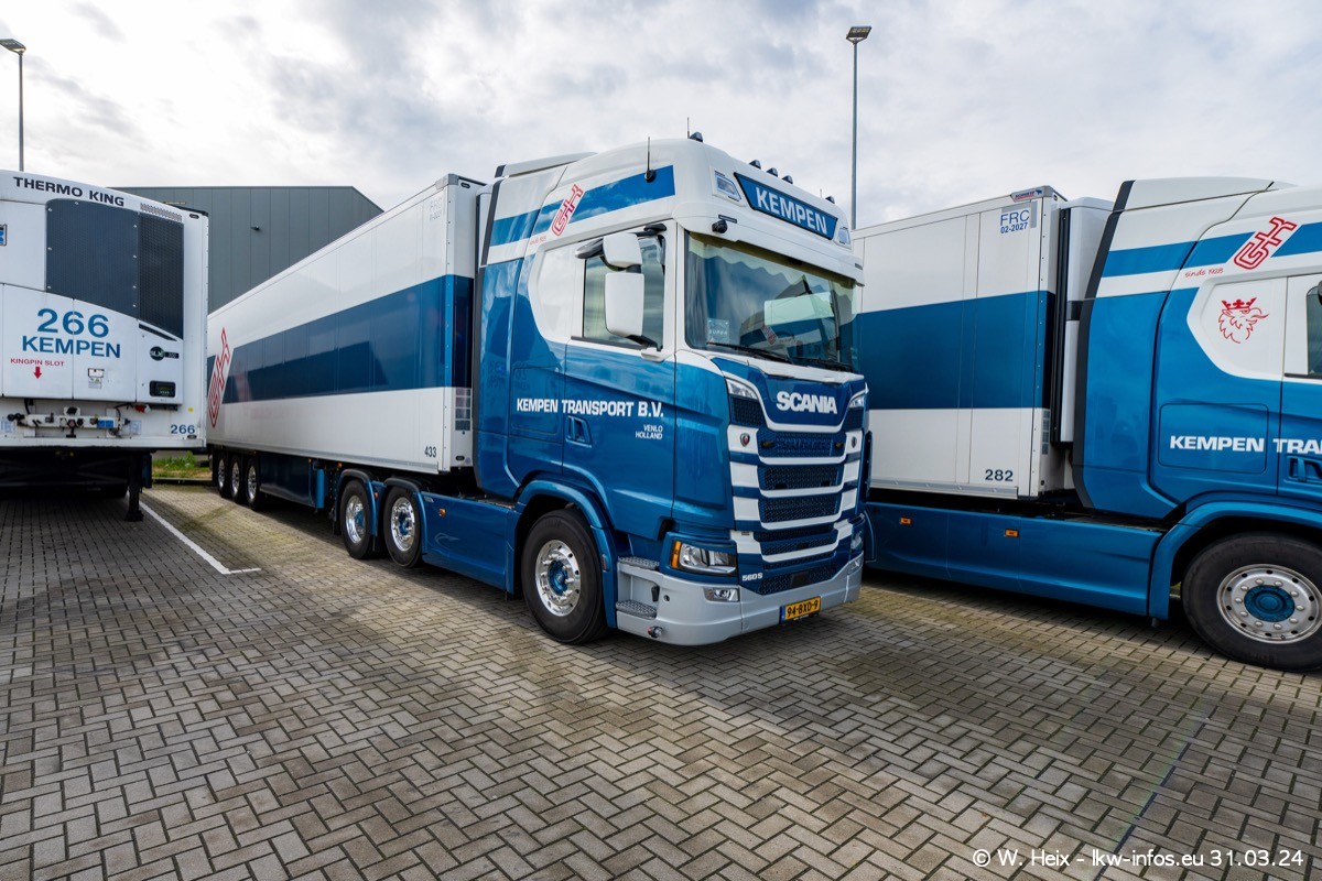 In diesem Jahr sind schon insgesamt mindestens 10 neue LKW in den Fuhrpark gekommen. Alle neuen LKW sind seit 2024 daran zu erkennen, dass aon der Fromt oben am Dach der Kempen-Schriftzug jetzt weiß ist in einem blauen Feld. Bisher war dieser immer rot auf weiß. Es waren so gut wie alle LKW zuzhause und standen auch wieder auf den Nachbargrundstücken. Diesmal konnte ich keinen SCANIA R Streamline und keinen DAF XF mehr sehen bis auf den neuen blauen DAF XG+ natürlich. Vermutlich sind jetzt alle alten SCANIA und DAF ersetzt durch VOLVO FH 5 und SCANIA R/S NextGen. Es sind natürlich auch wieder Bilder von den Chatern (Subunternehmern) in den Galerien enthalten. Auch hier tut sich immer wieder mal was.