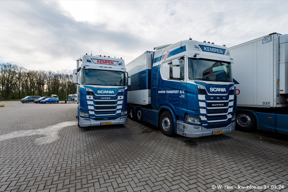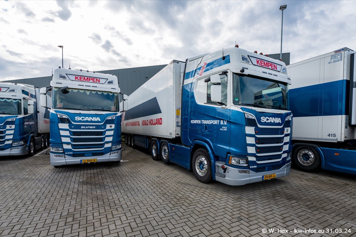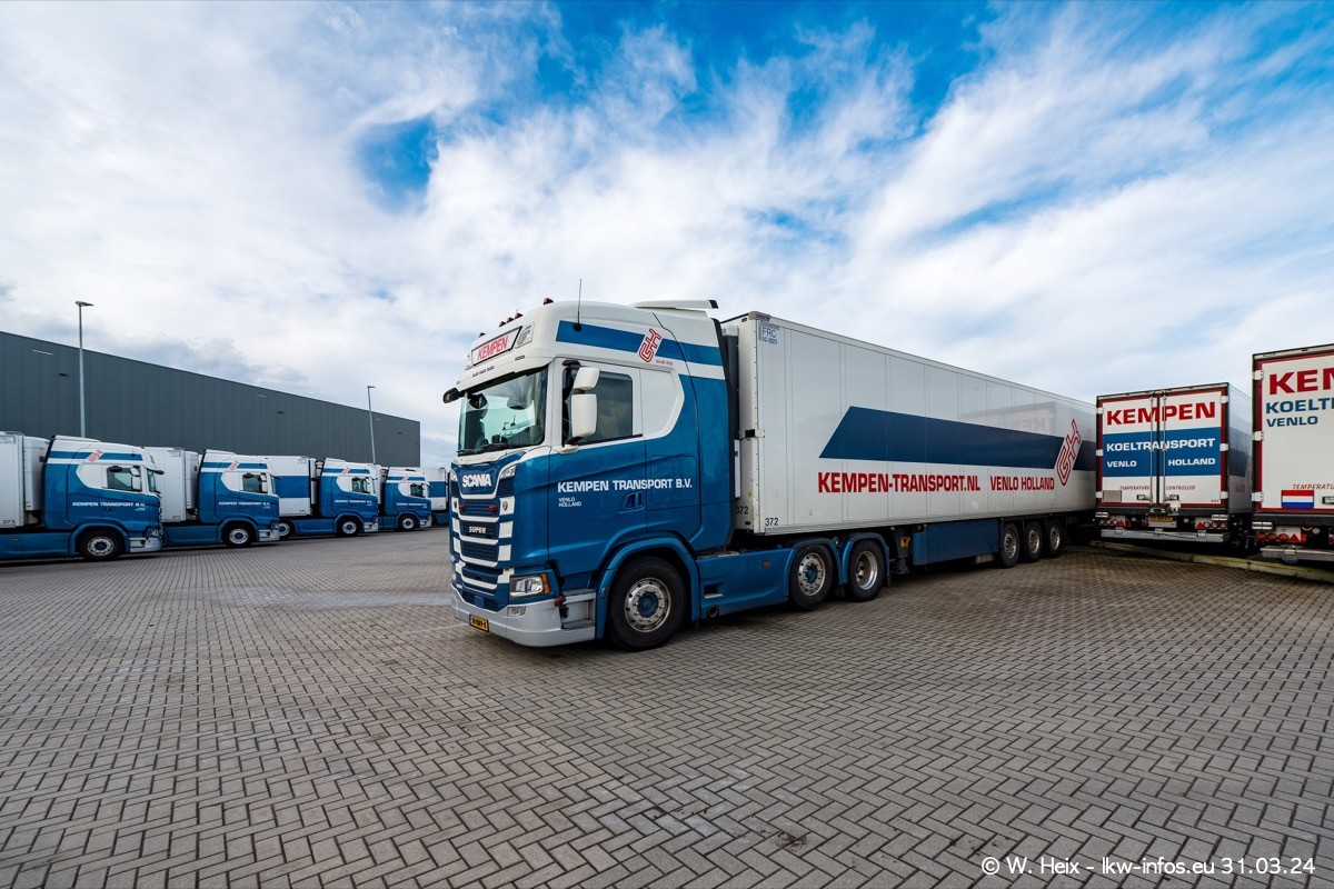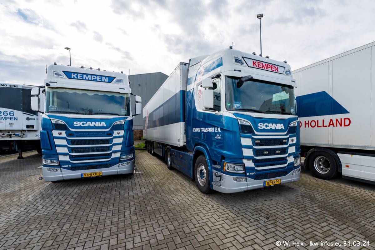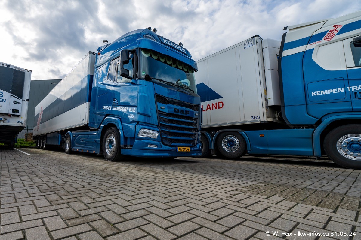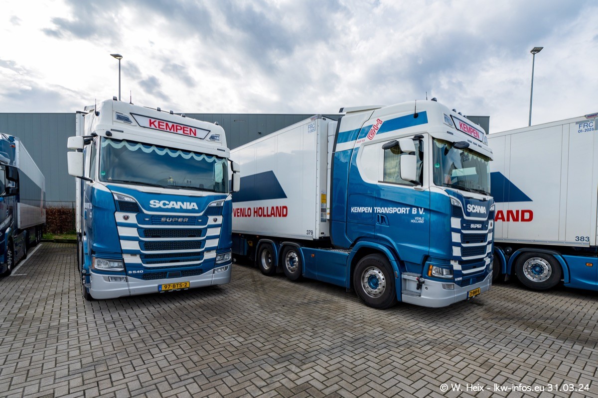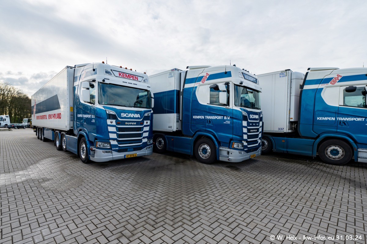 In diesem Jahr sind schon insgesamt mindestens 10 neue LKW in den Fuhrpark gekommen. Alle neuen LKW sind seit 2024 daran zu erkennen, dass aon der Fromt oben am Dach der Kempen-Schriftzug jetzt weiß ist in einem blauen Feld. Bisher war dieser immer rot auf weiß. Es waren so gut wie alle LKW zuzhause und standen auch wieder auf den Nachbargrundstücken. Diesmal konnte ich keinen SCANIA R Streamline und keinen DAF XF mehr sehen bis auf den neuen blauen DAF XG+ natürlich. Vermutlich sind jetzt alle alten SCANIA und DAF ersetzt durch VOLVO FH 5 und SCANIA R/S NextGen. Es sind natürlich auch wieder Bilder von den Chatern (Subunternehmern) in den Galerien enthalten. Auch hier tut sich immer wieder mal was.