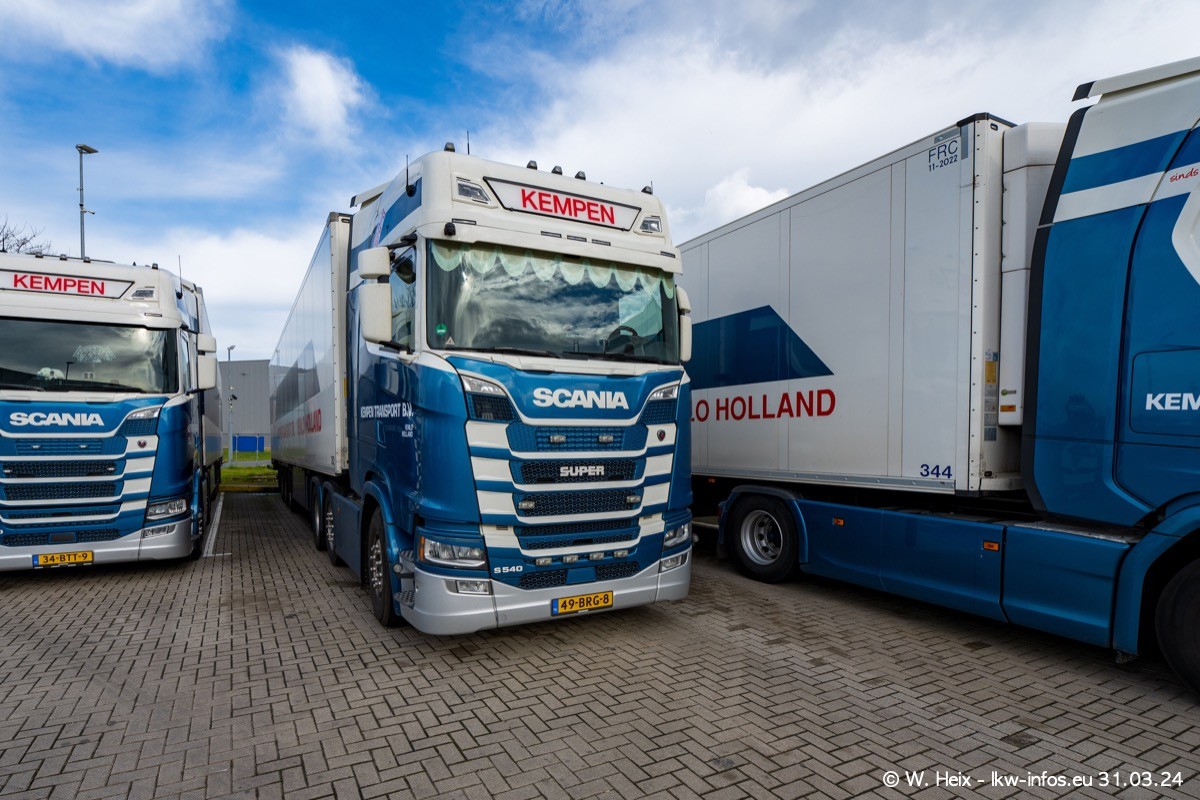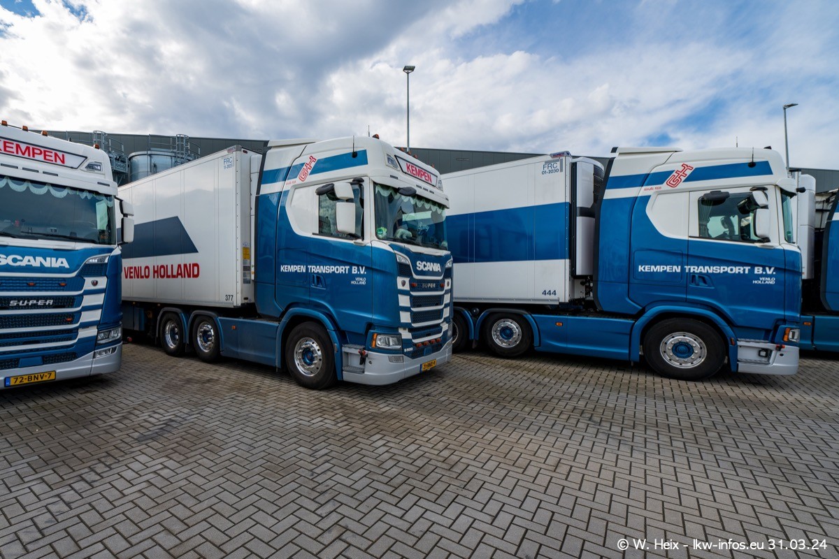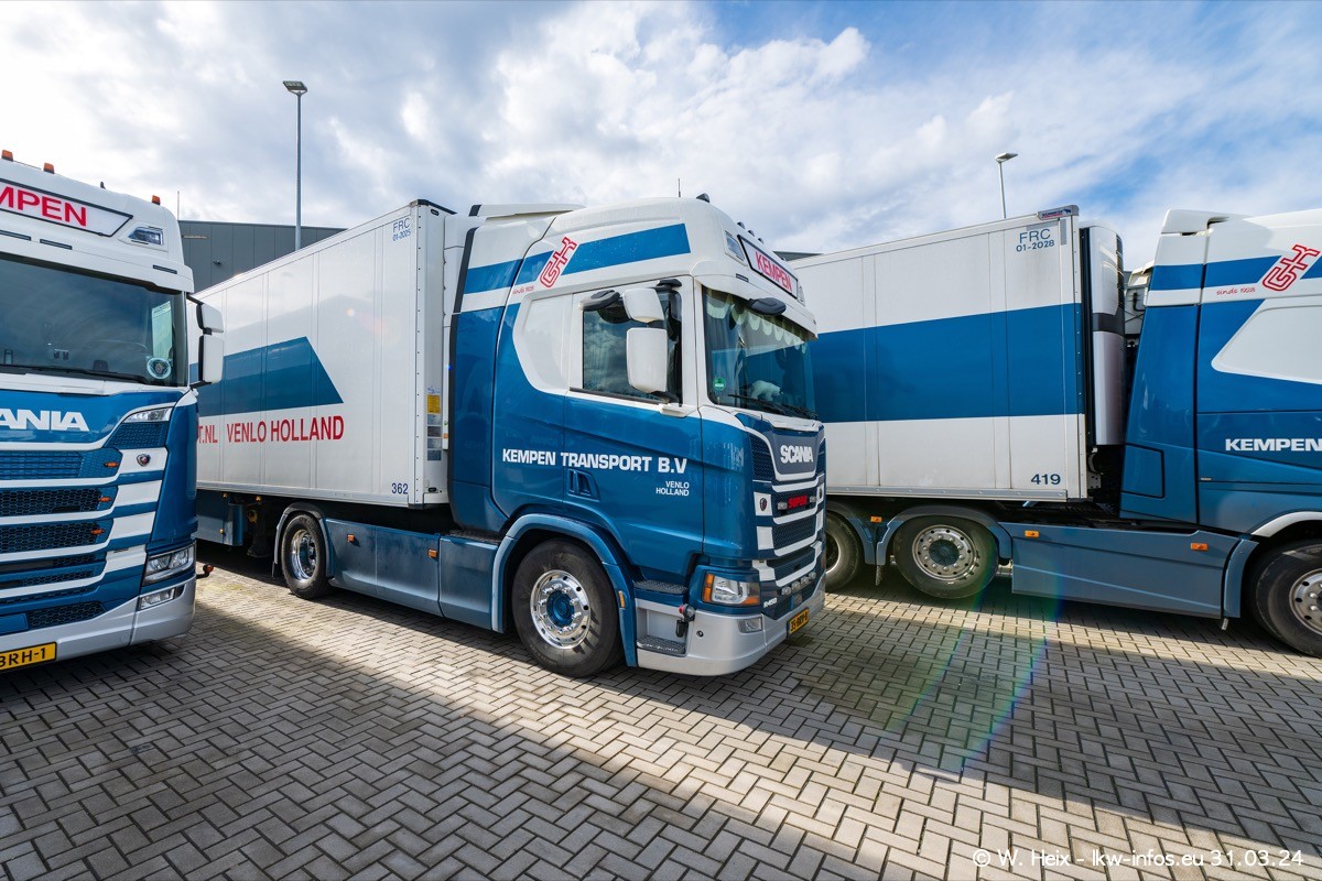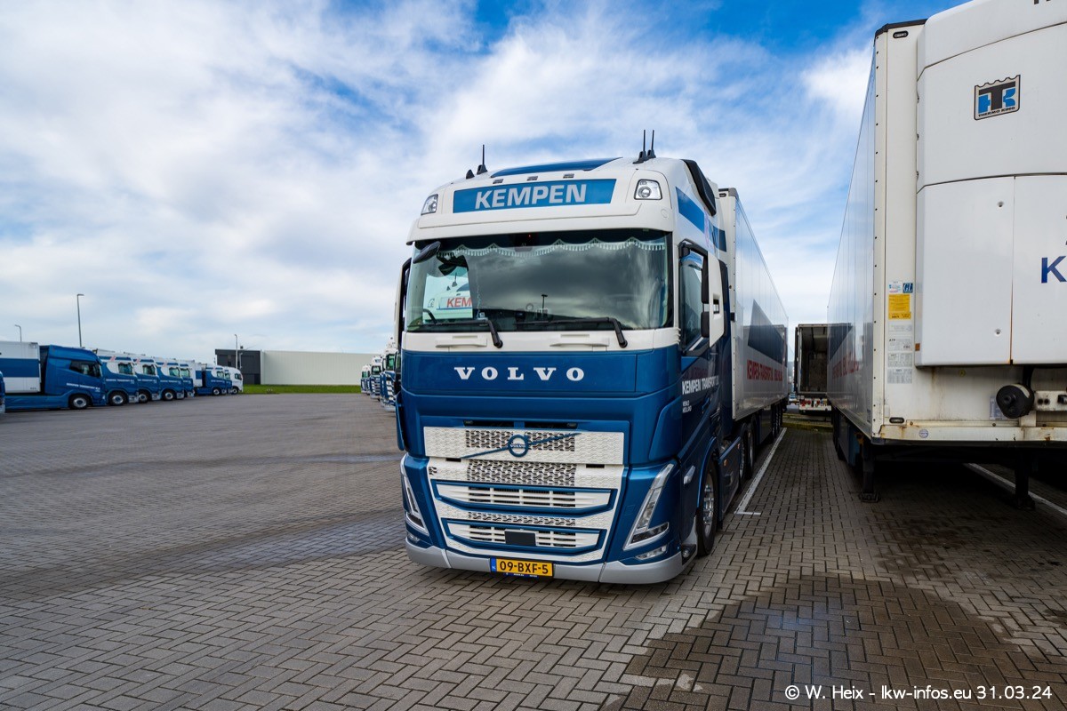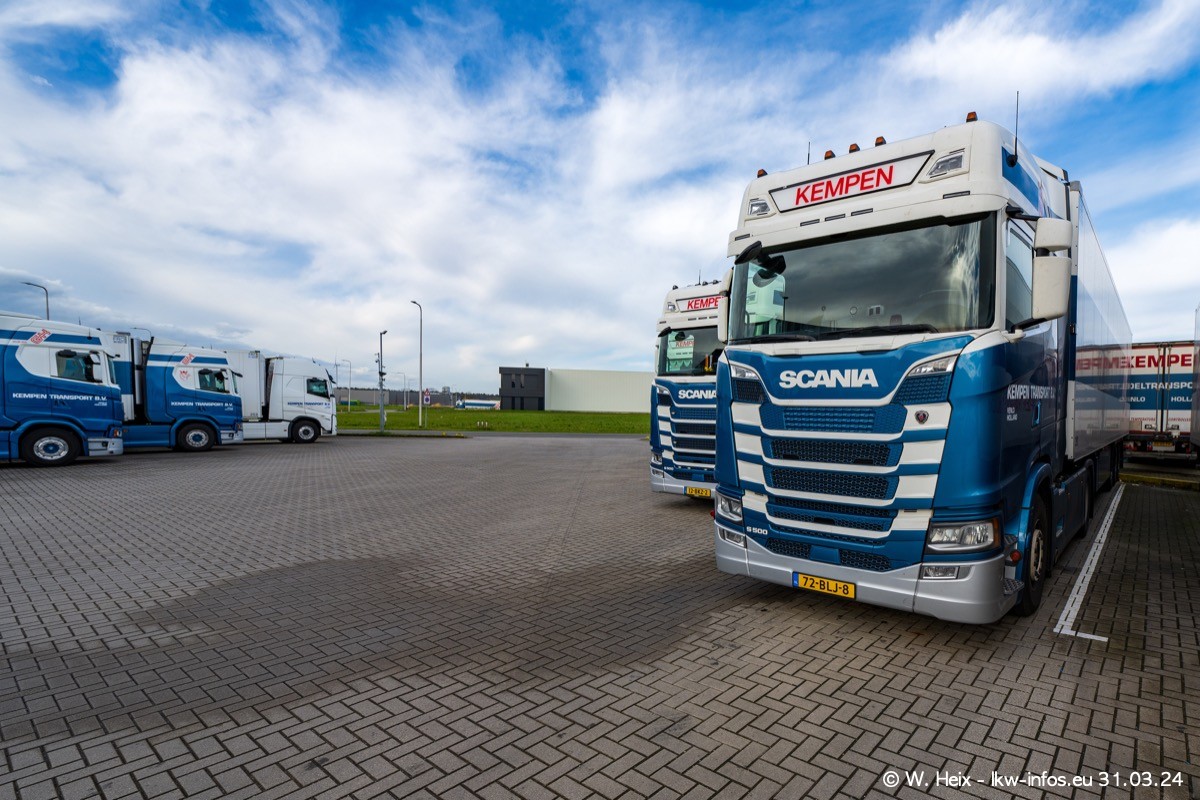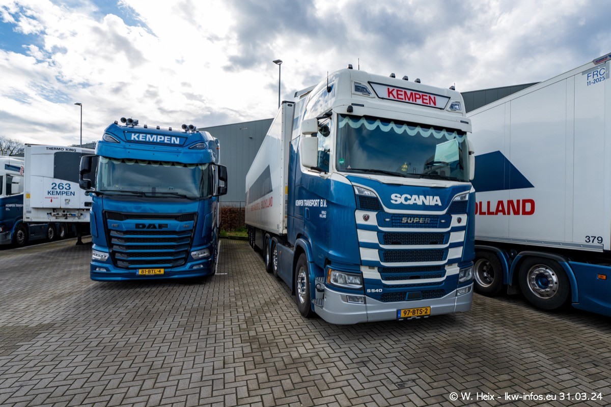 In diesem Jahr sind schon insgesamt mindestens 10 neue LKW in den Fuhrpark gekommen. Alle neuen LKW sind seit 2024 daran zu erkennen, dass aon der Fromt oben am Dach der Kempen-Schriftzug jetzt weiß ist in einem blauen Feld. Bisher war dieser immer rot auf weiß. Es waren so gut wie alle LKW zuzhause und standen auch wieder auf den Nachbargrundstücken. Diesmal konnte ich keinen SCANIA R Streamline und keinen DAF XF mehr sehen bis auf den neuen blauen DAF XG+ natürlich. Vermutlich sind jetzt alle alten SCANIA und DAF ersetzt durch VOLVO FH 5 und SCANIA R/S NextGen. Es sind natürlich auch wieder Bilder von den Chatern (Subunternehmern) in den Galerien enthalten. Auch hier tut sich immer wieder mal was.