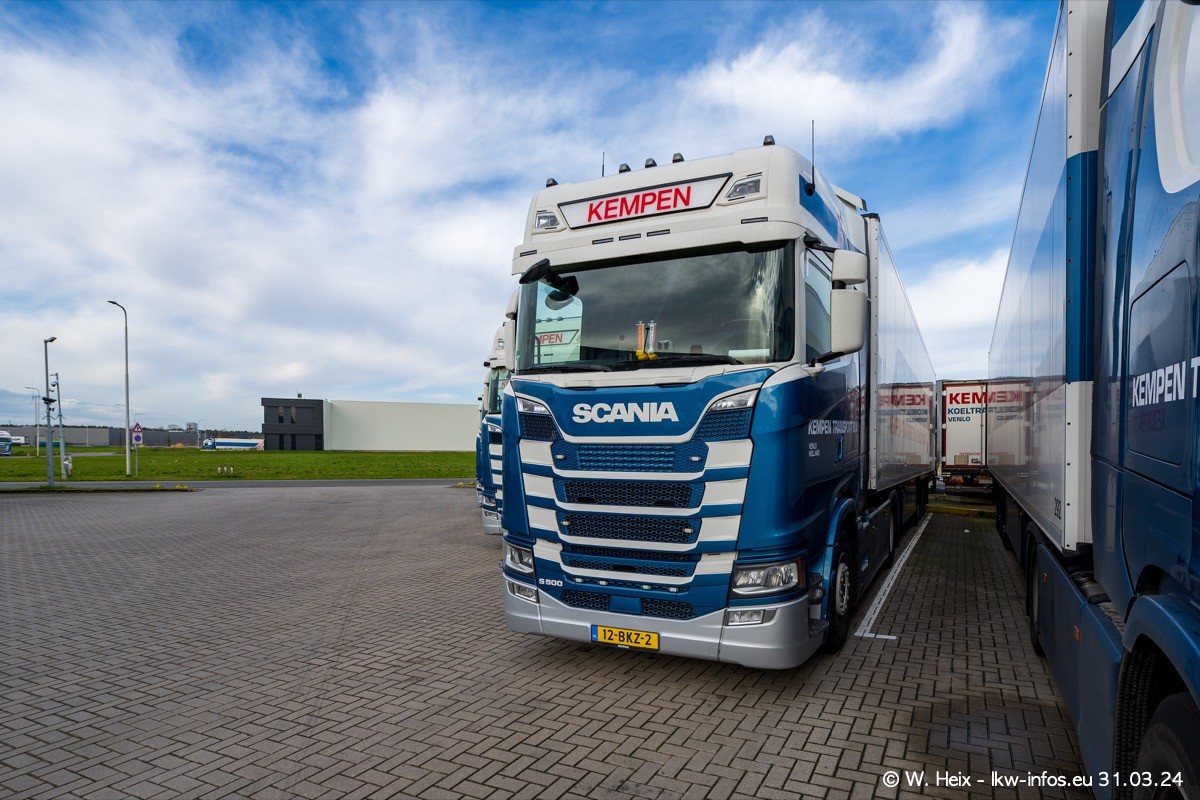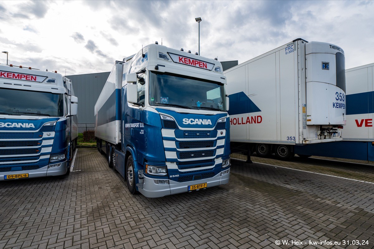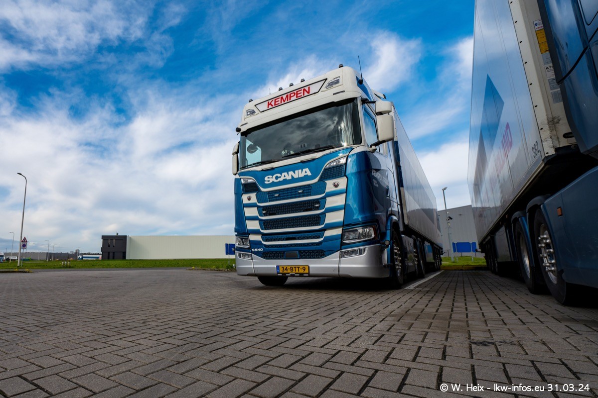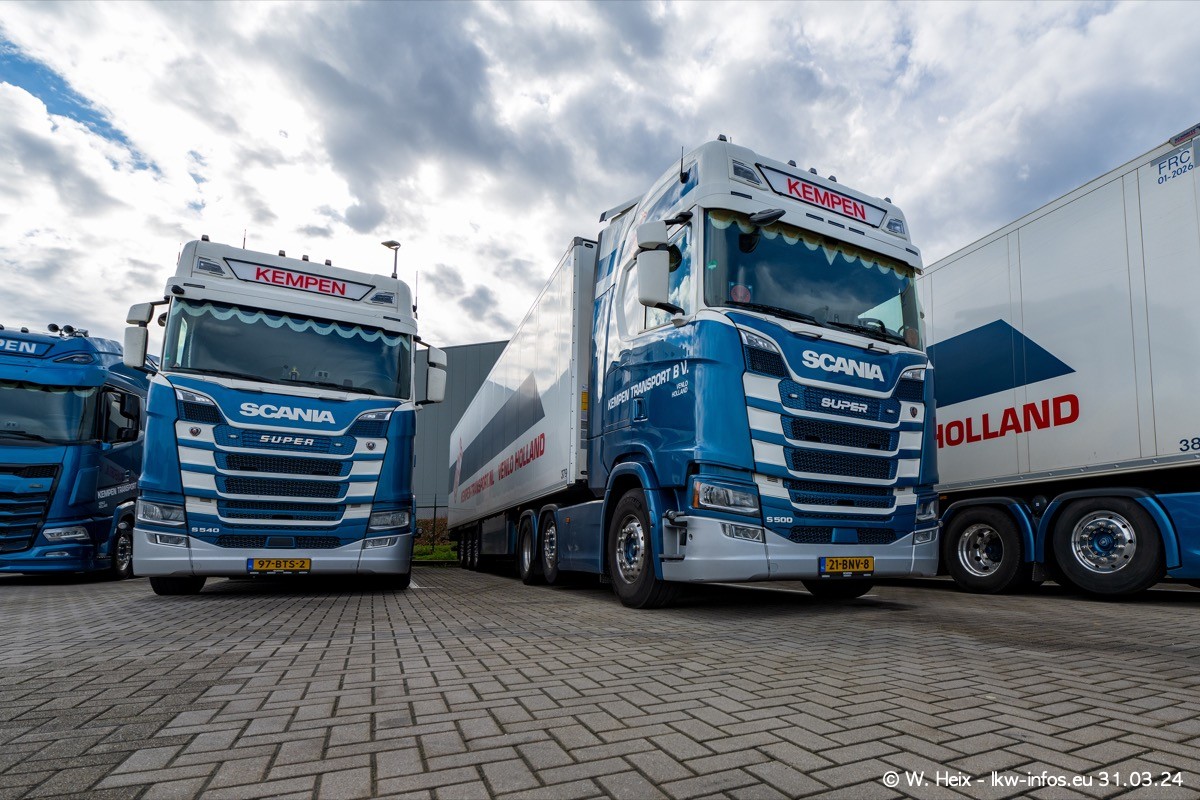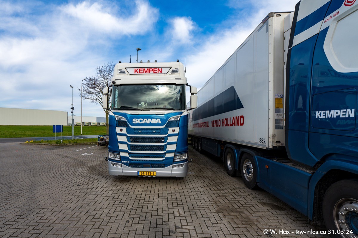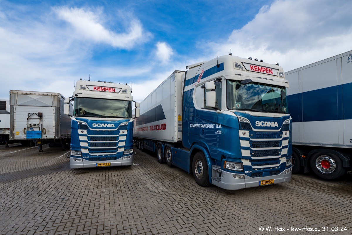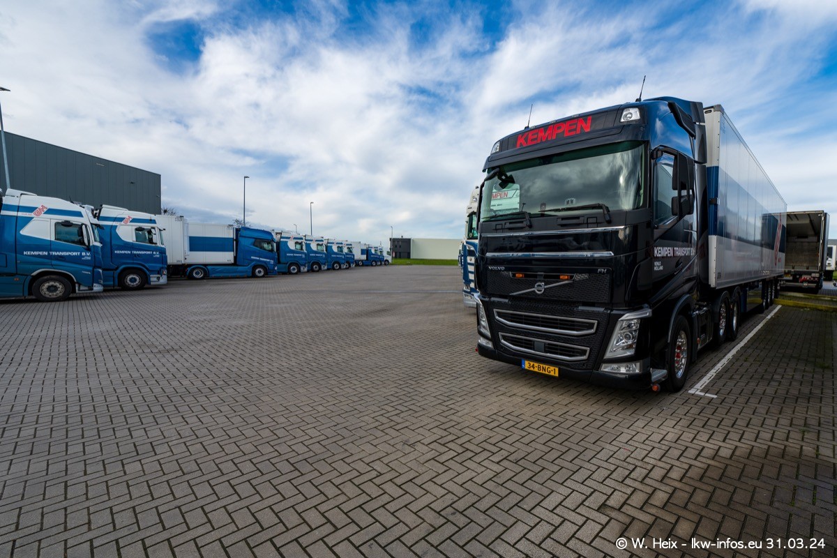 In diesem Jahr sind schon insgesamt mindestens 10 neue LKW in den Fuhrpark gekommen. Alle neuen LKW sind seit 2024 daran zu erkennen, dass aon der Fromt oben am Dach der Kempen-Schriftzug jetzt weiß ist in einem blauen Feld. Bisher war dieser immer rot auf weiß. Es waren so gut wie alle LKW zuzhause und standen auch wieder auf den Nachbargrundstücken. Diesmal konnte ich keinen SCANIA R Streamline und keinen DAF XF mehr sehen bis auf den neuen blauen DAF XG+ natürlich. Vermutlich sind jetzt alle alten SCANIA und DAF ersetzt durch VOLVO FH 5 und SCANIA R/S NextGen. Es sind natürlich auch wieder Bilder von den Chatern (Subunternehmern) in den Galerien enthalten. Auch hier tut sich immer wieder mal was.