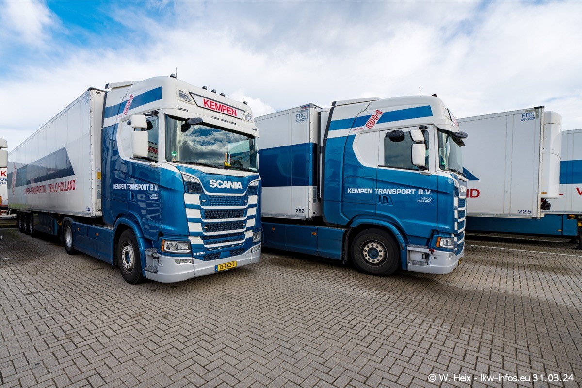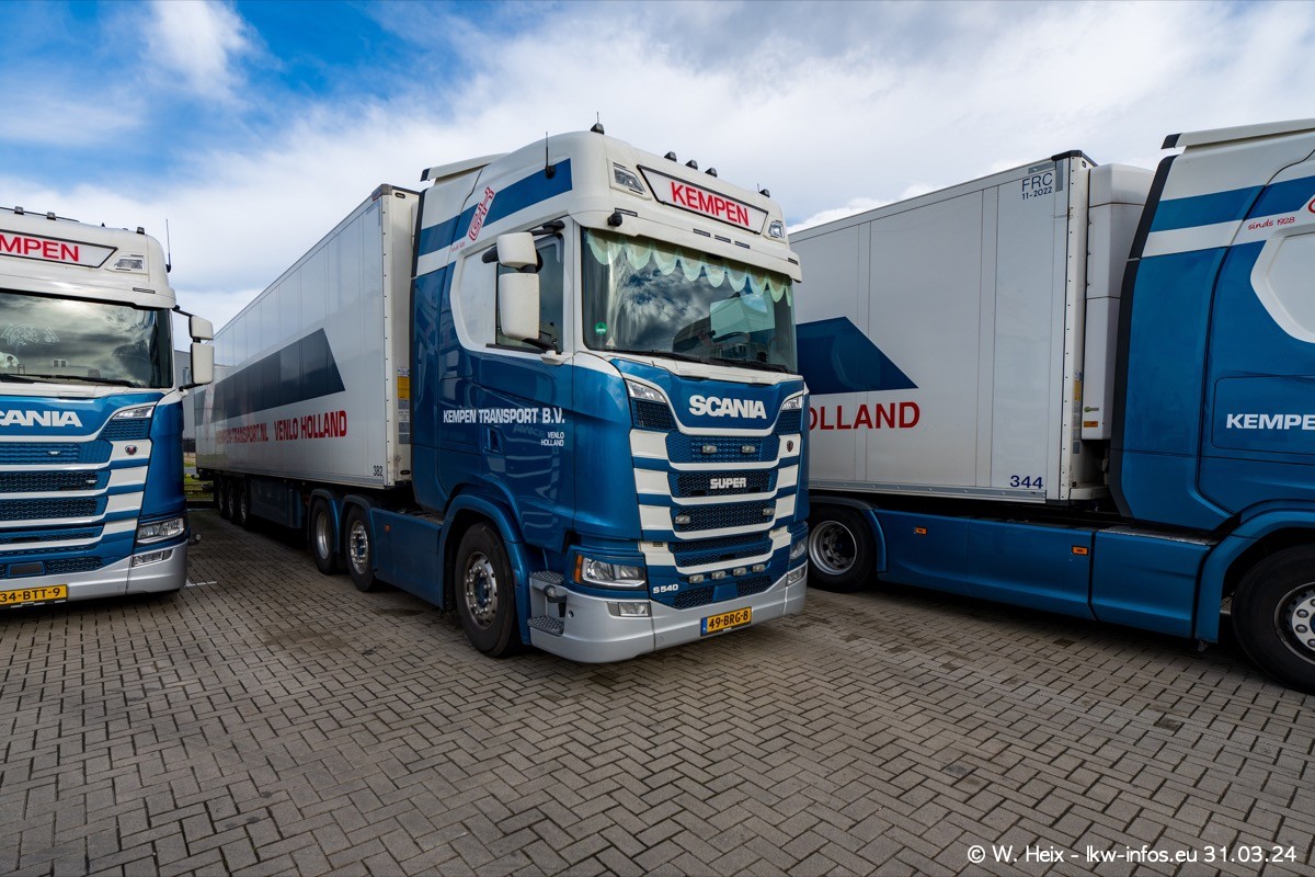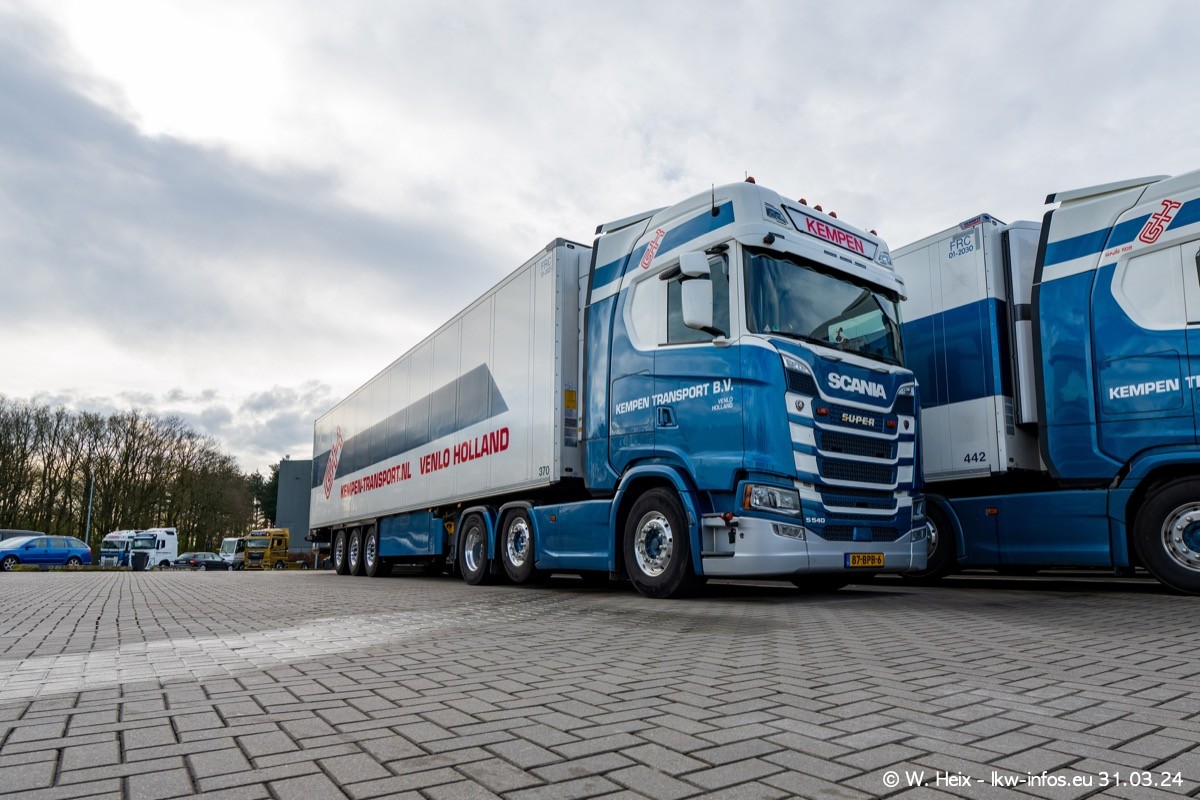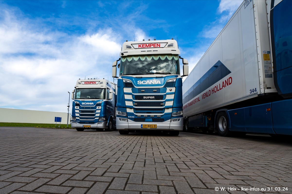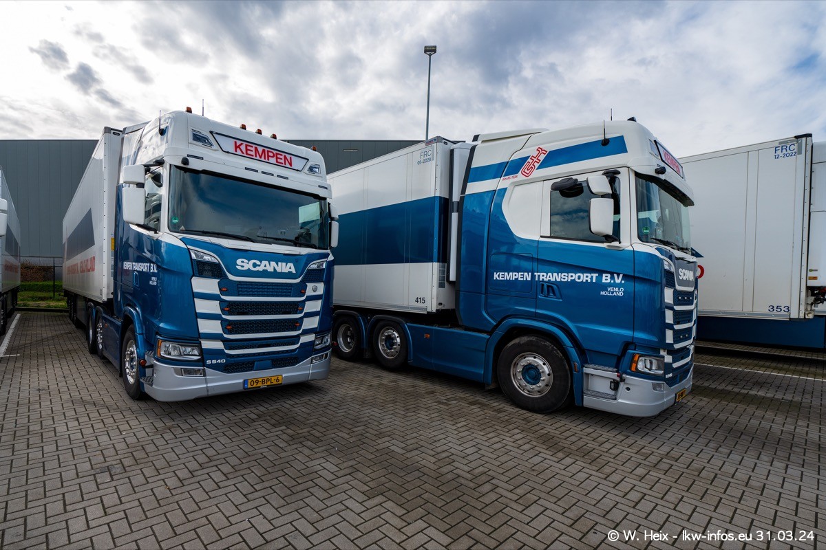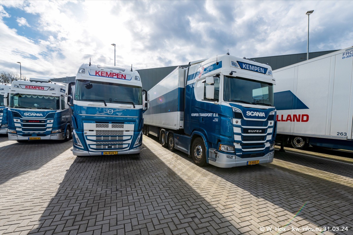 In diesem Jahr sind schon insgesamt mindestens 10 neue LKW in den Fuhrpark gekommen. Alle neuen LKW sind seit 2024 daran zu erkennen, dass aon der Fromt oben am Dach der Kempen-Schriftzug jetzt weiß ist in einem blauen Feld. Bisher war dieser immer rot auf weiß. Es waren so gut wie alle LKW zuzhause und standen auch wieder auf den Nachbargrundstücken. Diesmal konnte ich keinen SCANIA R Streamline und keinen DAF XF mehr sehen bis auf den neuen blauen DAF XG+ natürlich. Vermutlich sind jetzt alle alten SCANIA und DAF ersetzt durch VOLVO FH 5 und SCANIA R/S NextGen. Es sind natürlich auch wieder Bilder von den Chatern (Subunternehmern) in den Galerien enthalten. Auch hier tut sich immer wieder mal was.