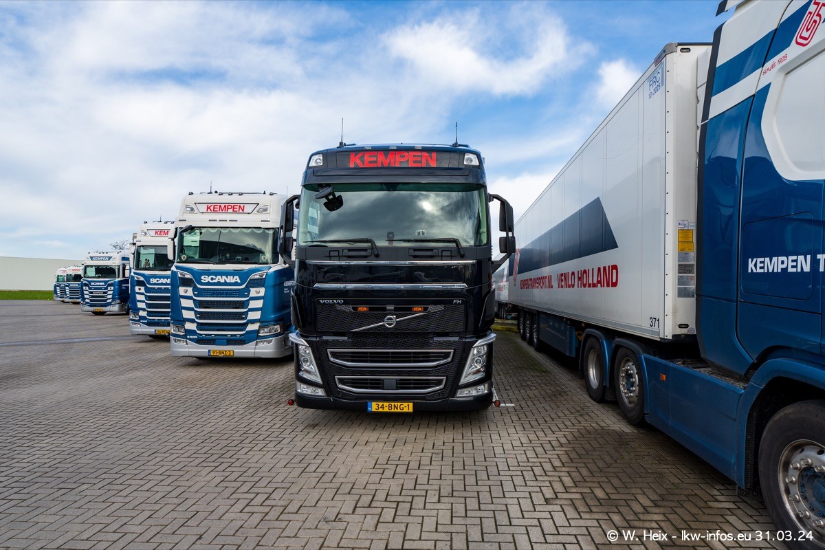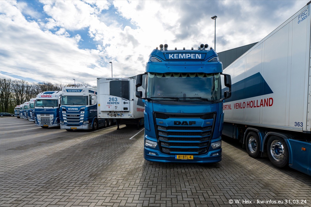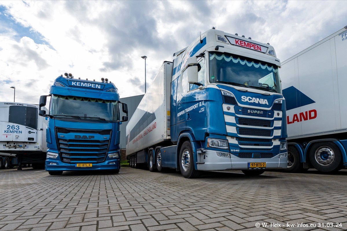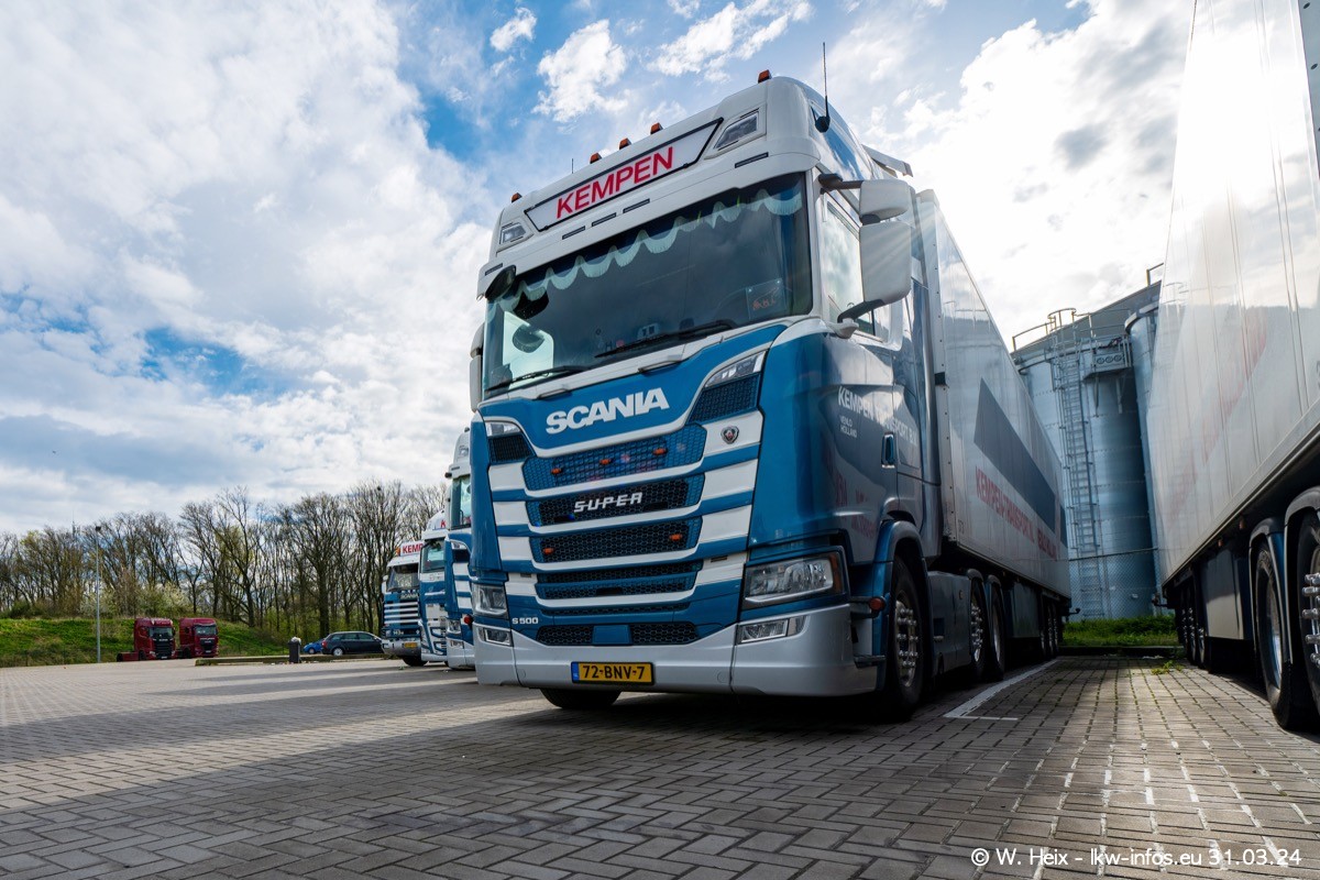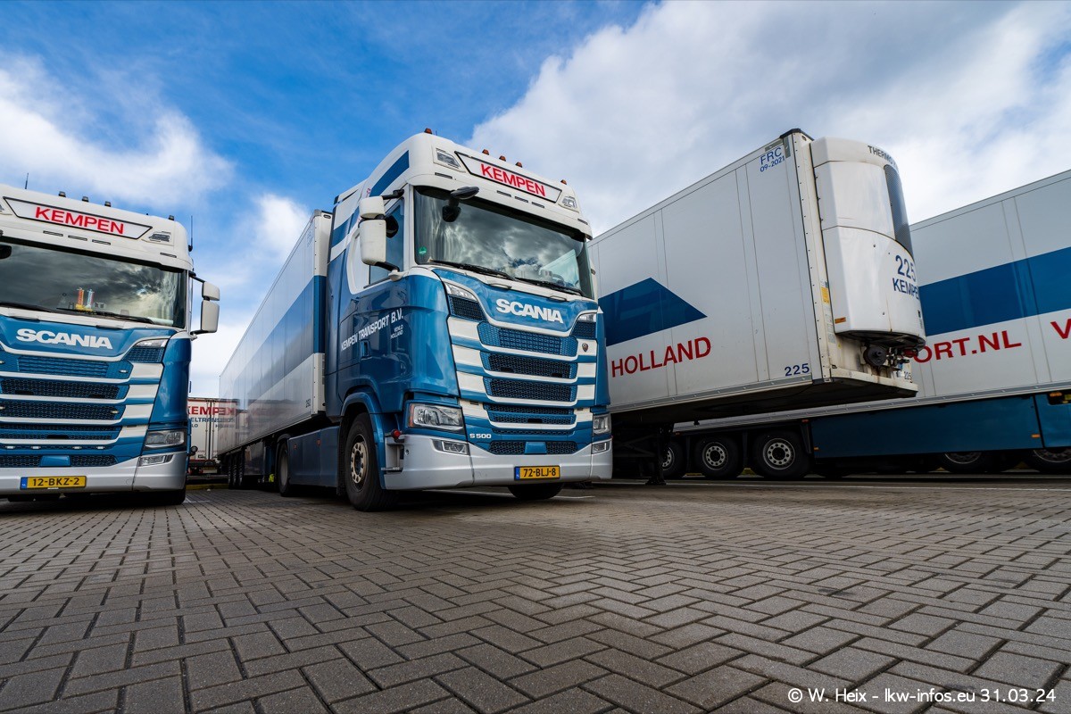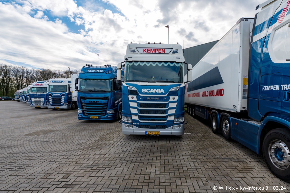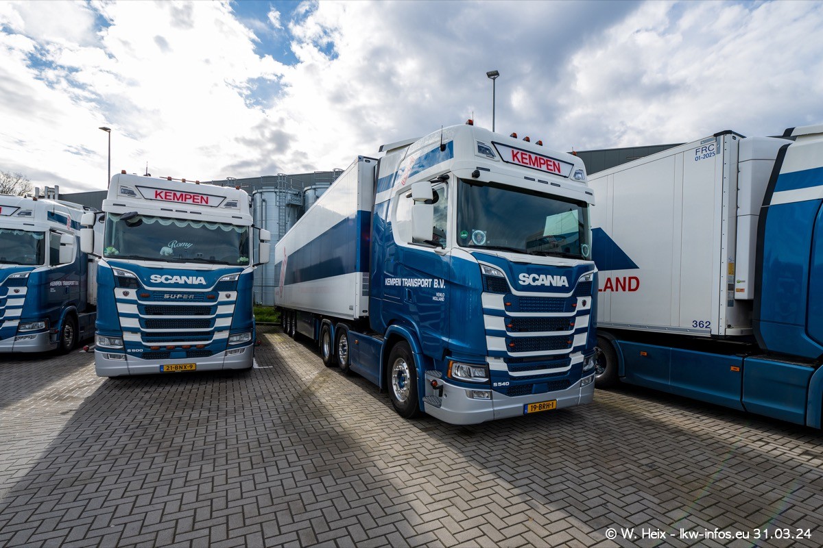 In diesem Jahr sind schon insgesamt mindestens 10 neue LKW in den Fuhrpark gekommen. Alle neuen LKW sind seit 2024 daran zu erkennen, dass aon der Fromt oben am Dach der Kempen-Schriftzug jetzt weiß ist in einem blauen Feld. Bisher war dieser immer rot auf weiß. Es waren so gut wie alle LKW zuzhause und standen auch wieder auf den Nachbargrundstücken. Diesmal konnte ich keinen SCANIA R Streamline und keinen DAF XF mehr sehen bis auf den neuen blauen DAF XG+ natürlich. Vermutlich sind jetzt alle alten SCANIA und DAF ersetzt durch VOLVO FH 5 und SCANIA R/S NextGen. Es sind natürlich auch wieder Bilder von den Chatern (Subunternehmern) in den Galerien enthalten. Auch hier tut sich immer wieder mal was.
