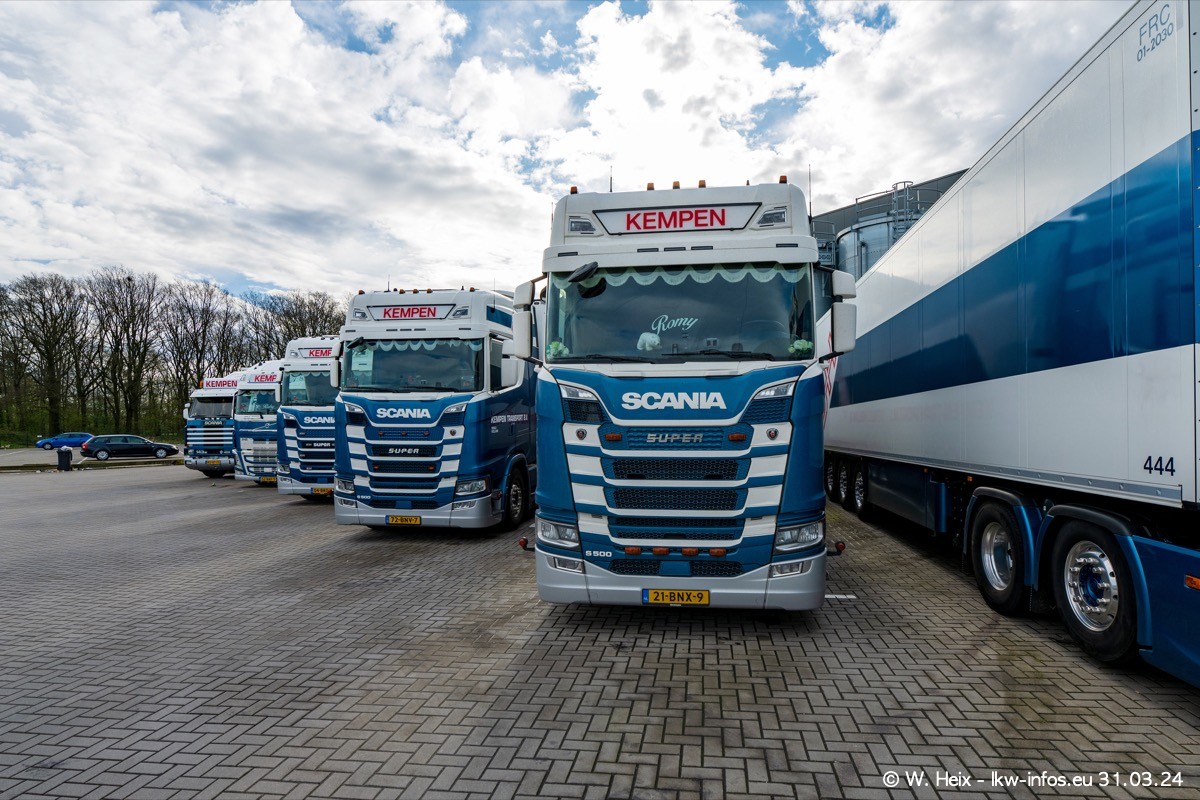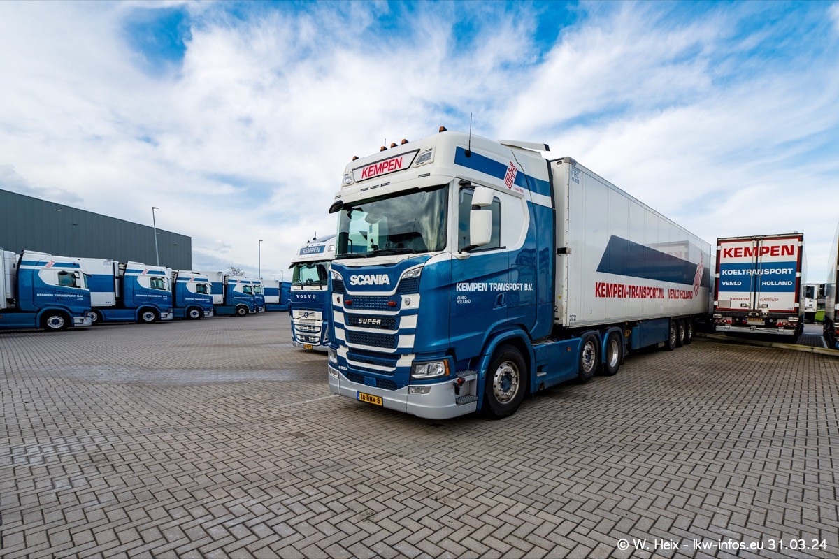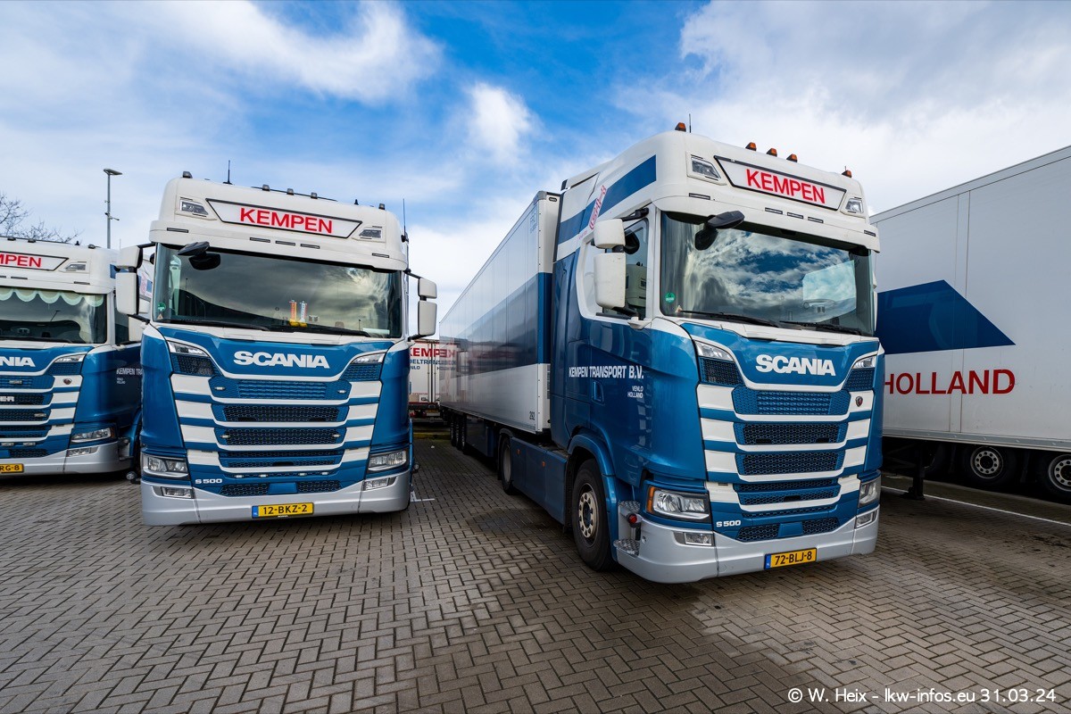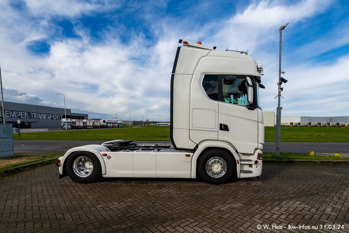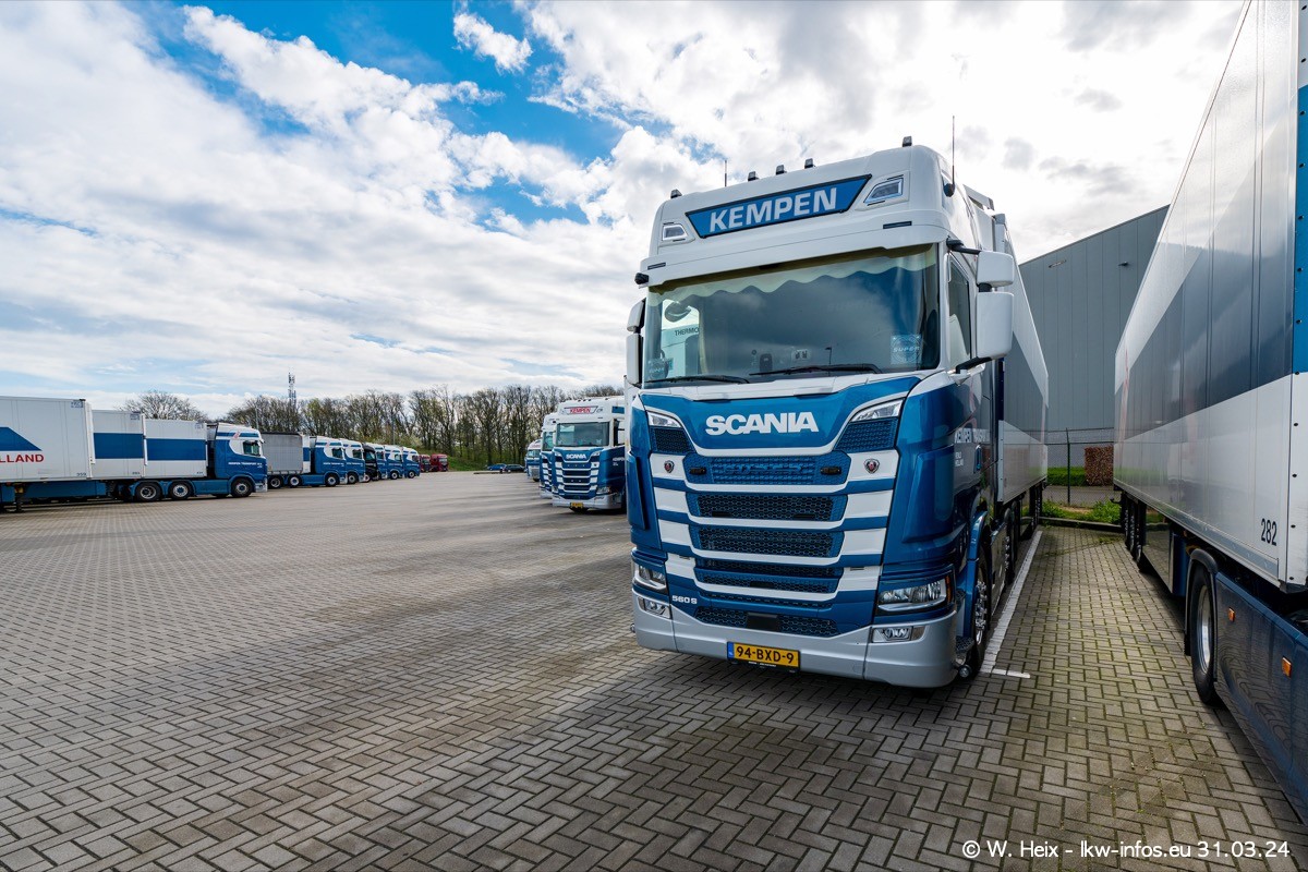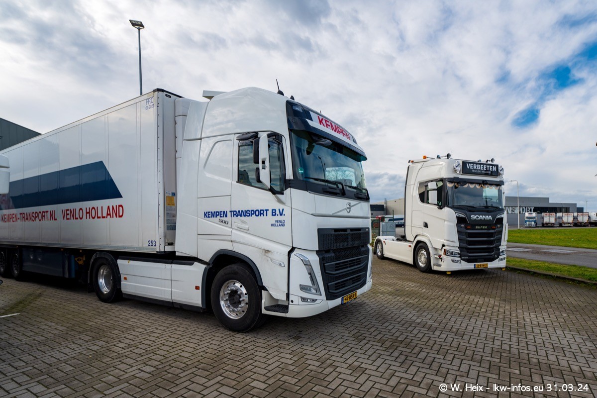In diesem Jahr sind schon insgesamt mindestens 10 neue LKW in den Fuhrpark gekommen. Alle neuen LKW sind seit 2024 daran zu erkennen, dass aon der Fromt oben am Dach der Kempen-Schriftzug jetzt weiß ist in einem blauen Feld. Bisher war dieser immer rot auf weiß. Es waren so gut wie alle LKW zuzhause und standen auch wieder auf den Nachbargrundstücken. Diesmal konnte ich keinen SCANIA R Streamline und keinen DAF XF mehr sehen bis auf den neuen blauen DAF XG+ natürlich. Vermutlich sind jetzt alle alten SCANIA und DAF ersetzt durch VOLVO FH 5 und SCANIA R/S NextGen. Es sind natürlich auch wieder Bilder von den Chatern (Subunternehmern) in den Galerien enthalten. Auch hier tut sich immer wieder mal was.