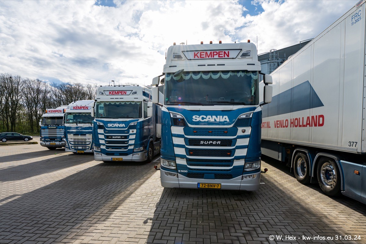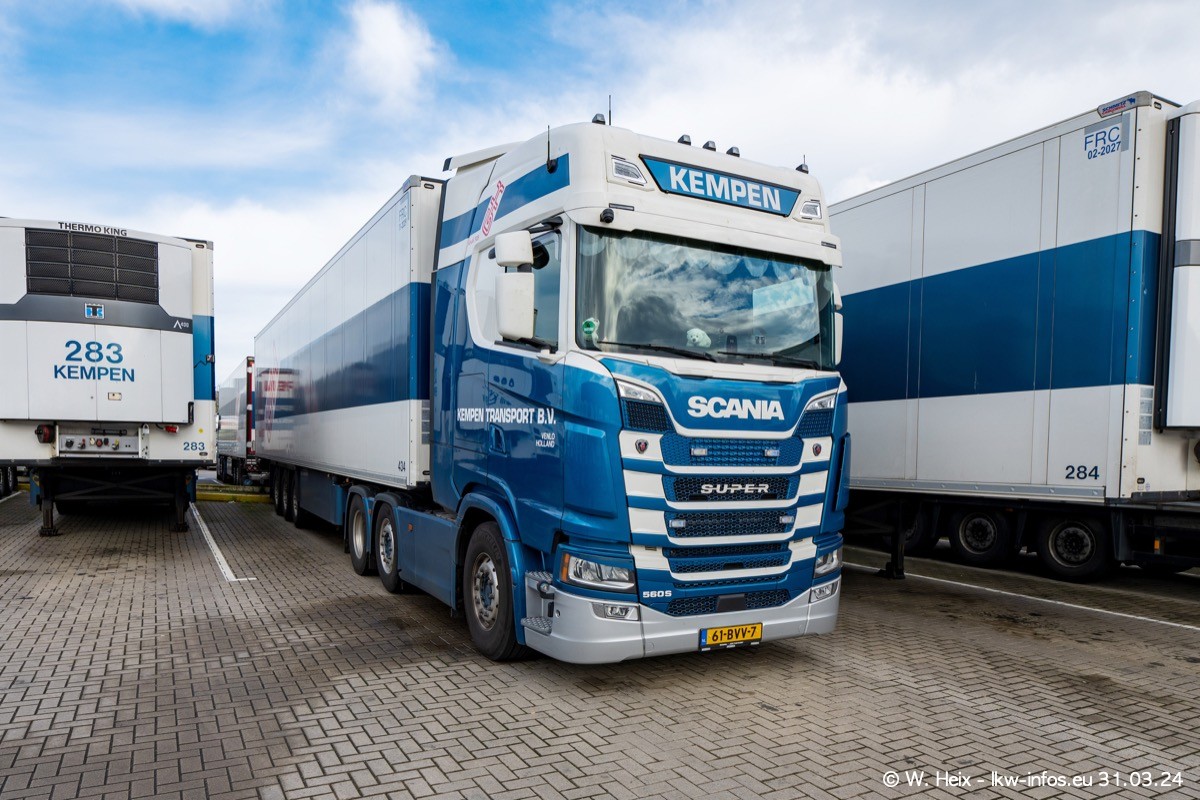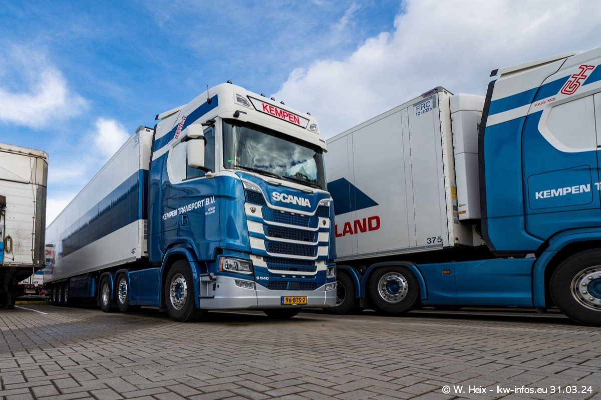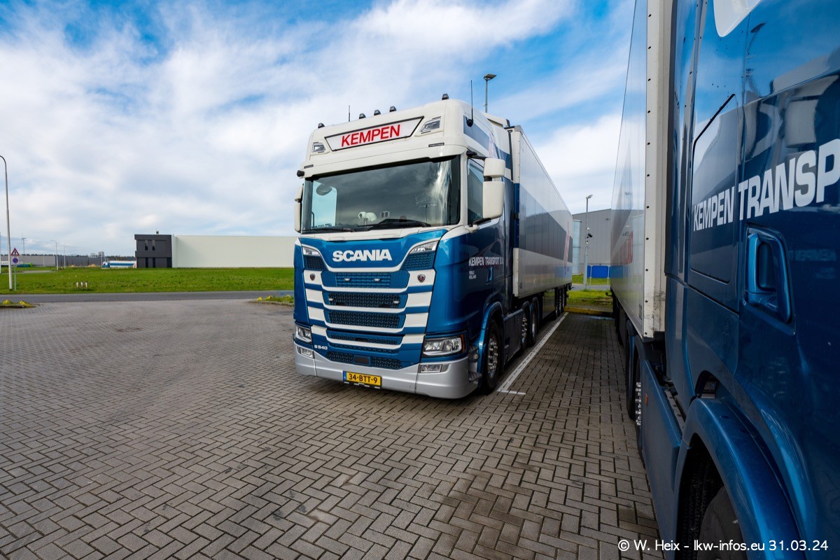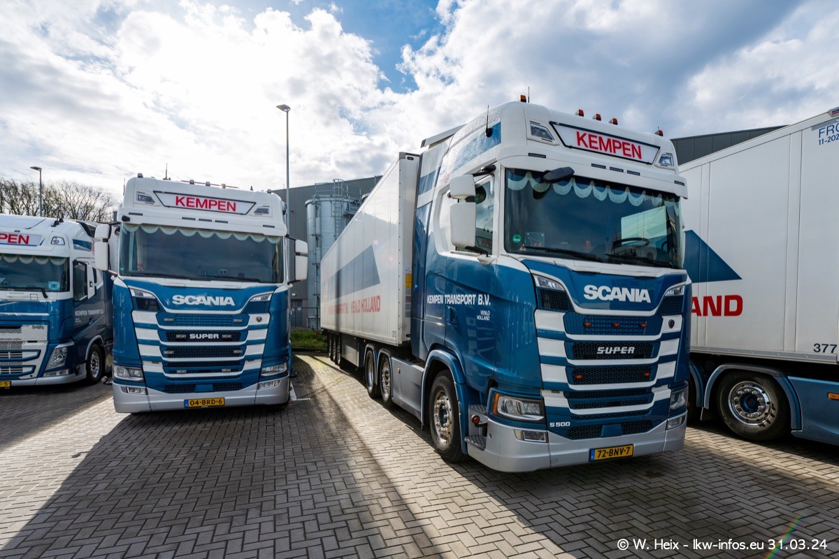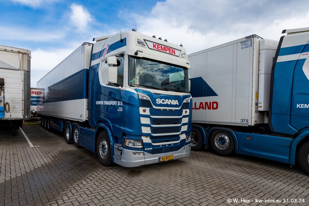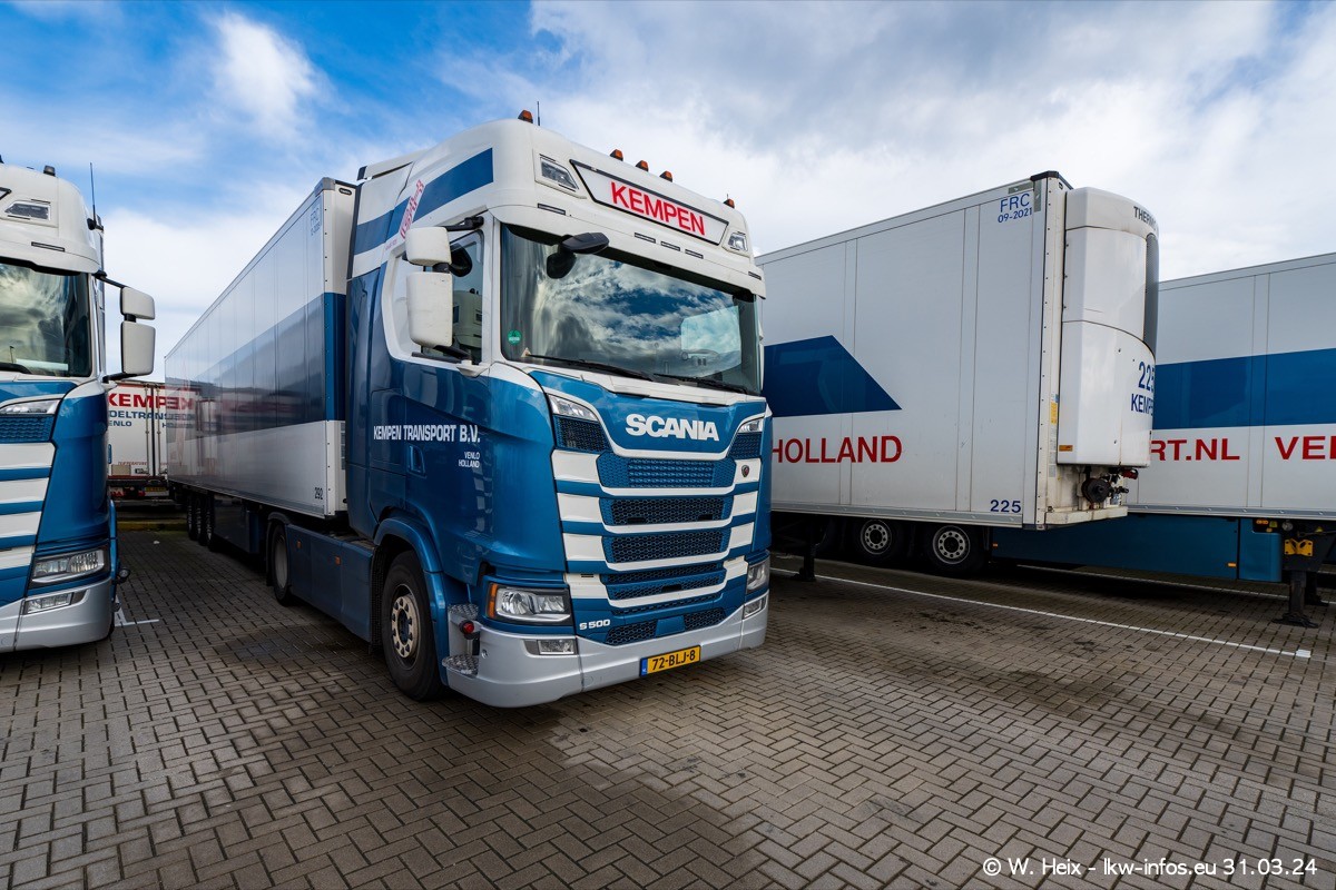 In diesem Jahr sind schon insgesamt mindestens 10 neue LKW in den Fuhrpark gekommen. Alle neuen LKW sind seit 2024 daran zu erkennen, dass aon der Fromt oben am Dach der Kempen-Schriftzug jetzt weiß ist in einem blauen Feld. Bisher war dieser immer rot auf weiß. Es waren so gut wie alle LKW zuzhause und standen auch wieder auf den Nachbargrundstücken. Diesmal konnte ich keinen SCANIA R Streamline und keinen DAF XF mehr sehen bis auf den neuen blauen DAF XG+ natürlich. Vermutlich sind jetzt alle alten SCANIA und DAF ersetzt durch VOLVO FH 5 und SCANIA R/S NextGen. Es sind natürlich auch wieder Bilder von den Chatern (Subunternehmern) in den Galerien enthalten. Auch hier tut sich immer wieder mal was.