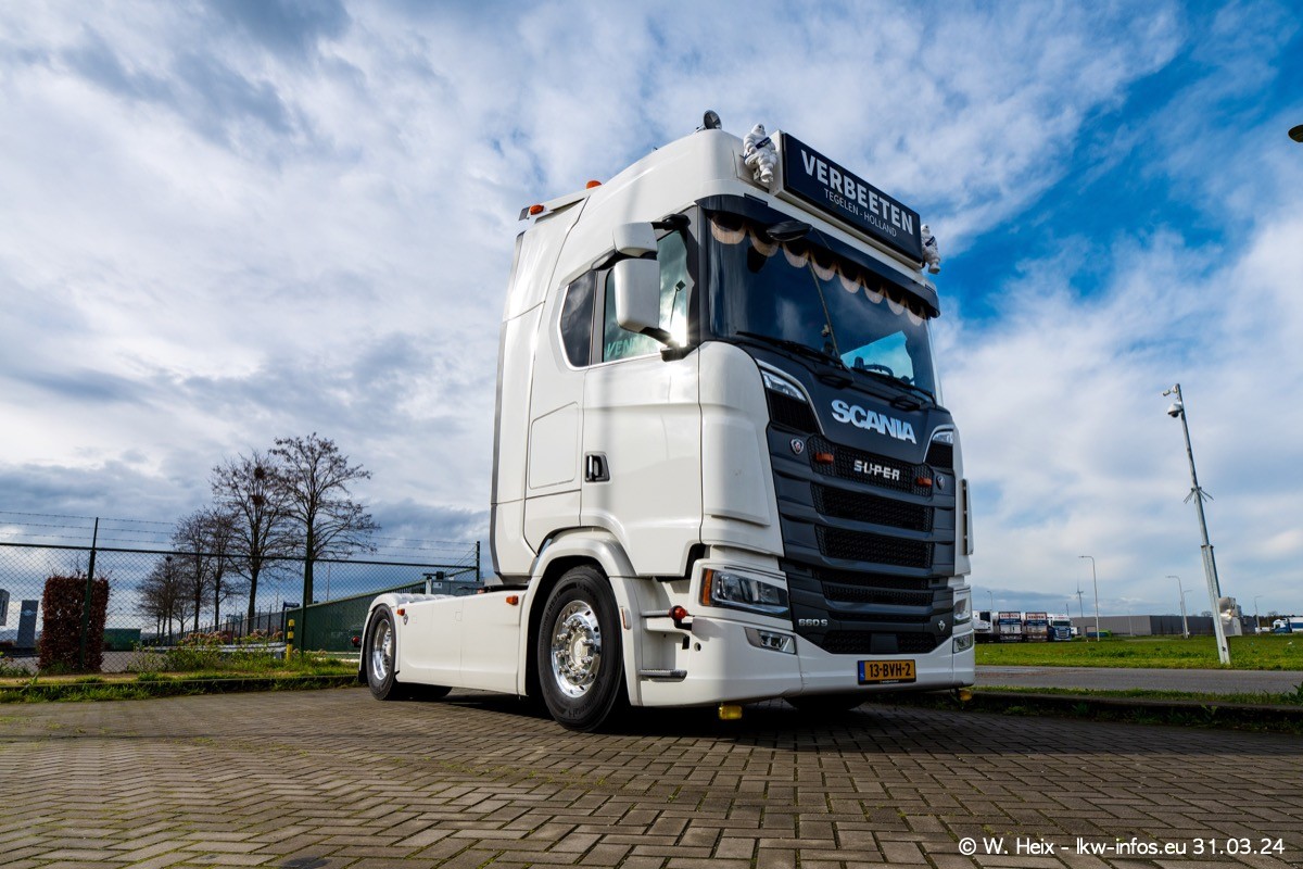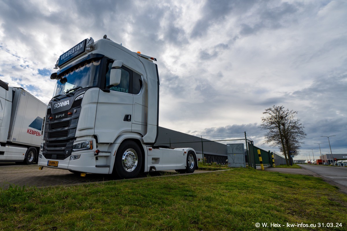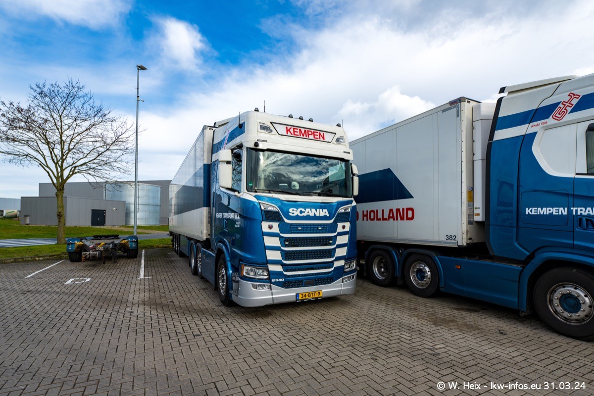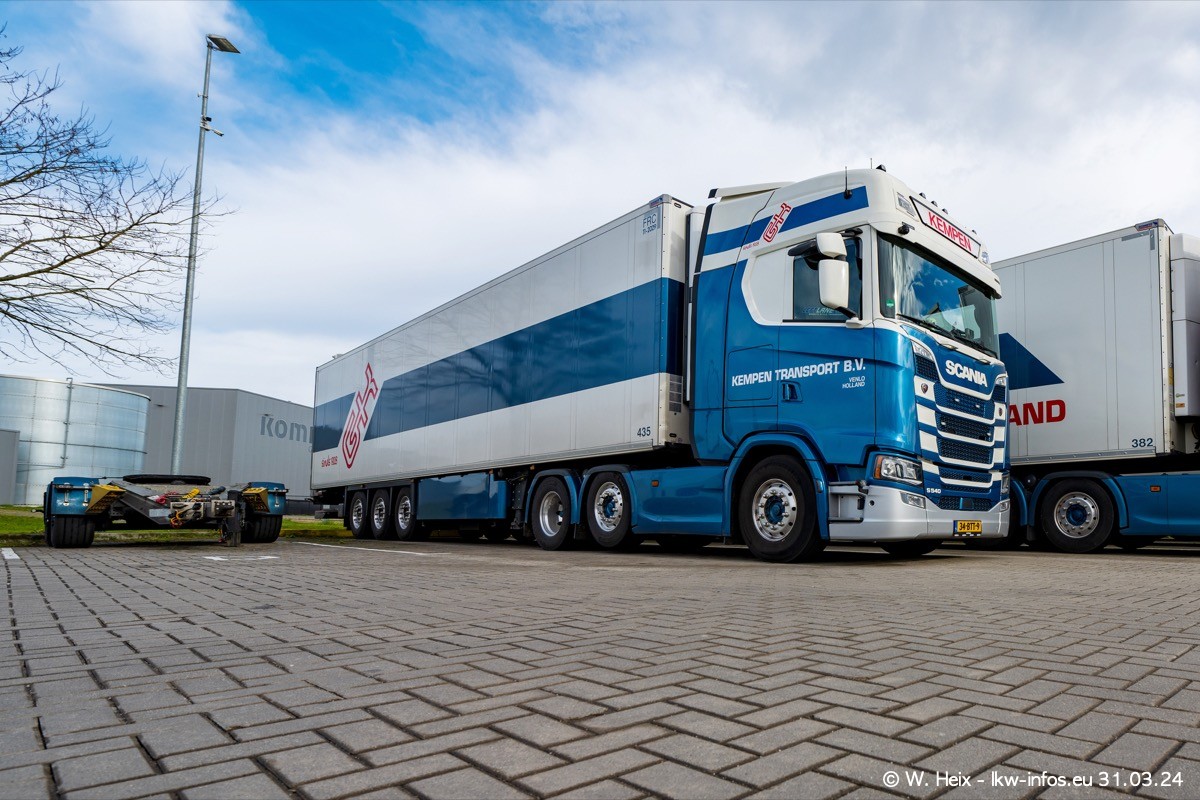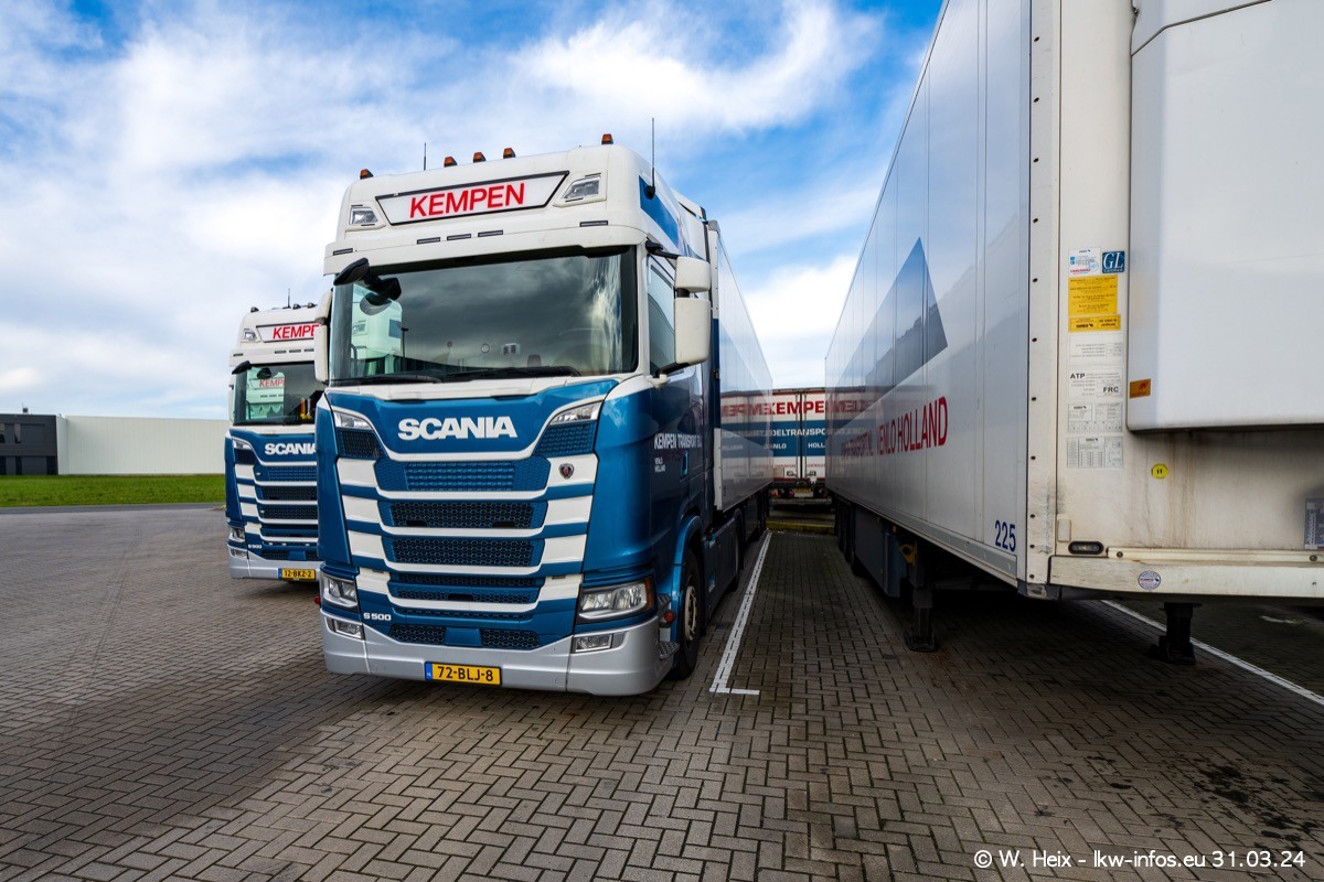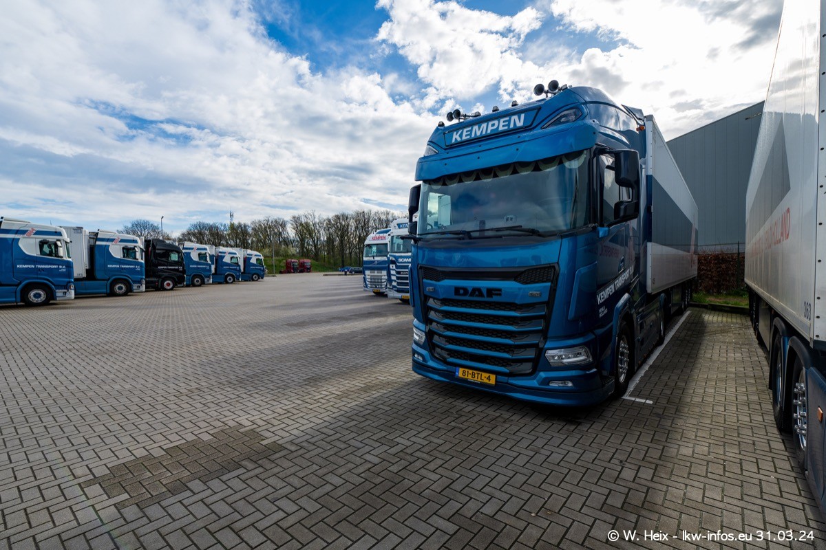 In diesem Jahr sind schon insgesamt mindestens 10 neue LKW in den Fuhrpark gekommen. Alle neuen LKW sind seit 2024 daran zu erkennen, dass aon der Fromt oben am Dach der Kempen-Schriftzug jetzt weiß ist in einem blauen Feld. Bisher war dieser immer rot auf weiß. Es waren so gut wie alle LKW zuzhause und standen auch wieder auf den Nachbargrundstücken. Diesmal konnte ich keinen SCANIA R Streamline und keinen DAF XF mehr sehen bis auf den neuen blauen DAF XG+ natürlich. Vermutlich sind jetzt alle alten SCANIA und DAF ersetzt durch VOLVO FH 5 und SCANIA R/S NextGen. Es sind natürlich auch wieder Bilder von den Chatern (Subunternehmern) in den Galerien enthalten. Auch hier tut sich immer wieder mal was.