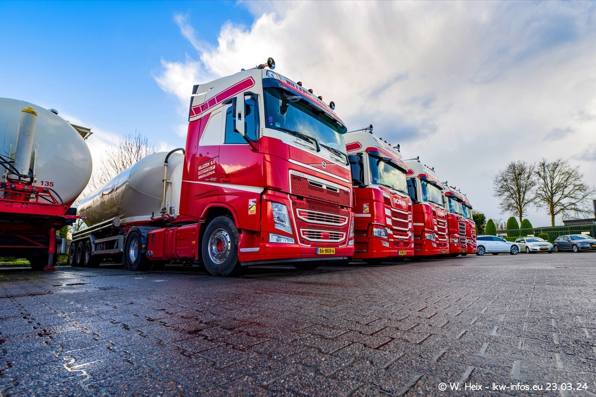 Es gibt einige neue LKW im Fuhpark. Das sind die beiden fotografierten VOLVO FH 5 sowie mehrere SCANIA 460 R NextGen. Inzwischen sind alle neuen SCANIA 460 R NexrtGen im Einsatz. Die neuen sind an den Kennzeichen mit den Buchstabenkombinatinen BV.. und BX zu erkennen.