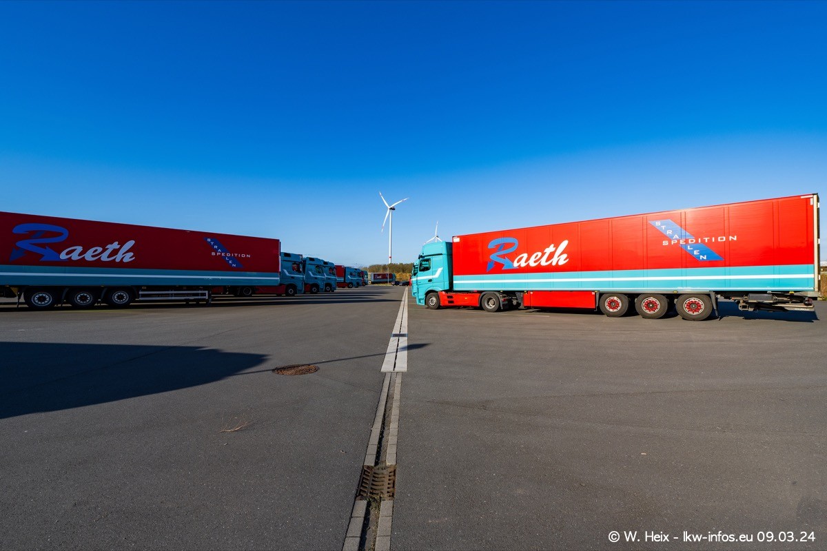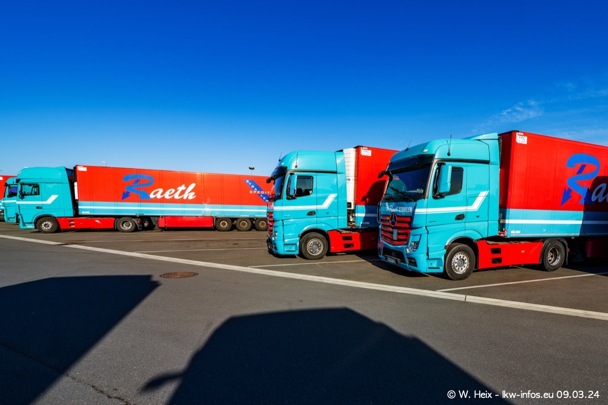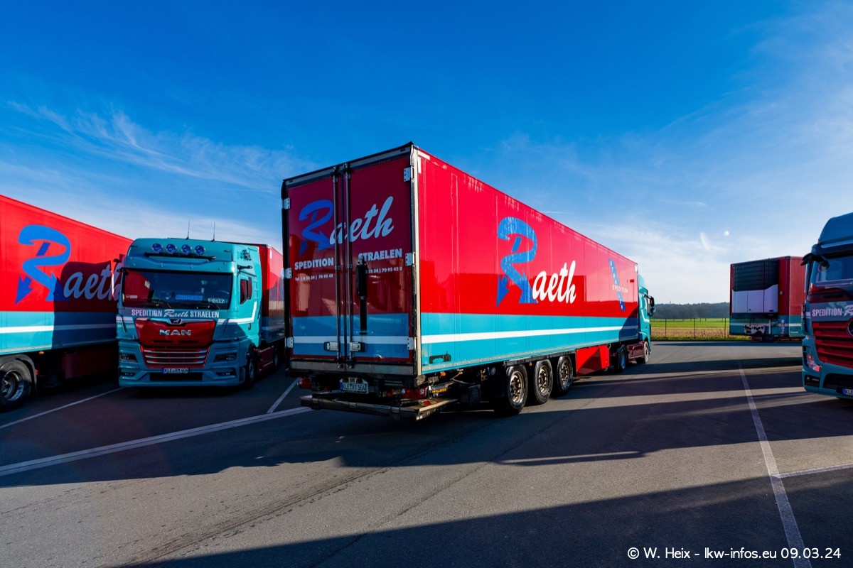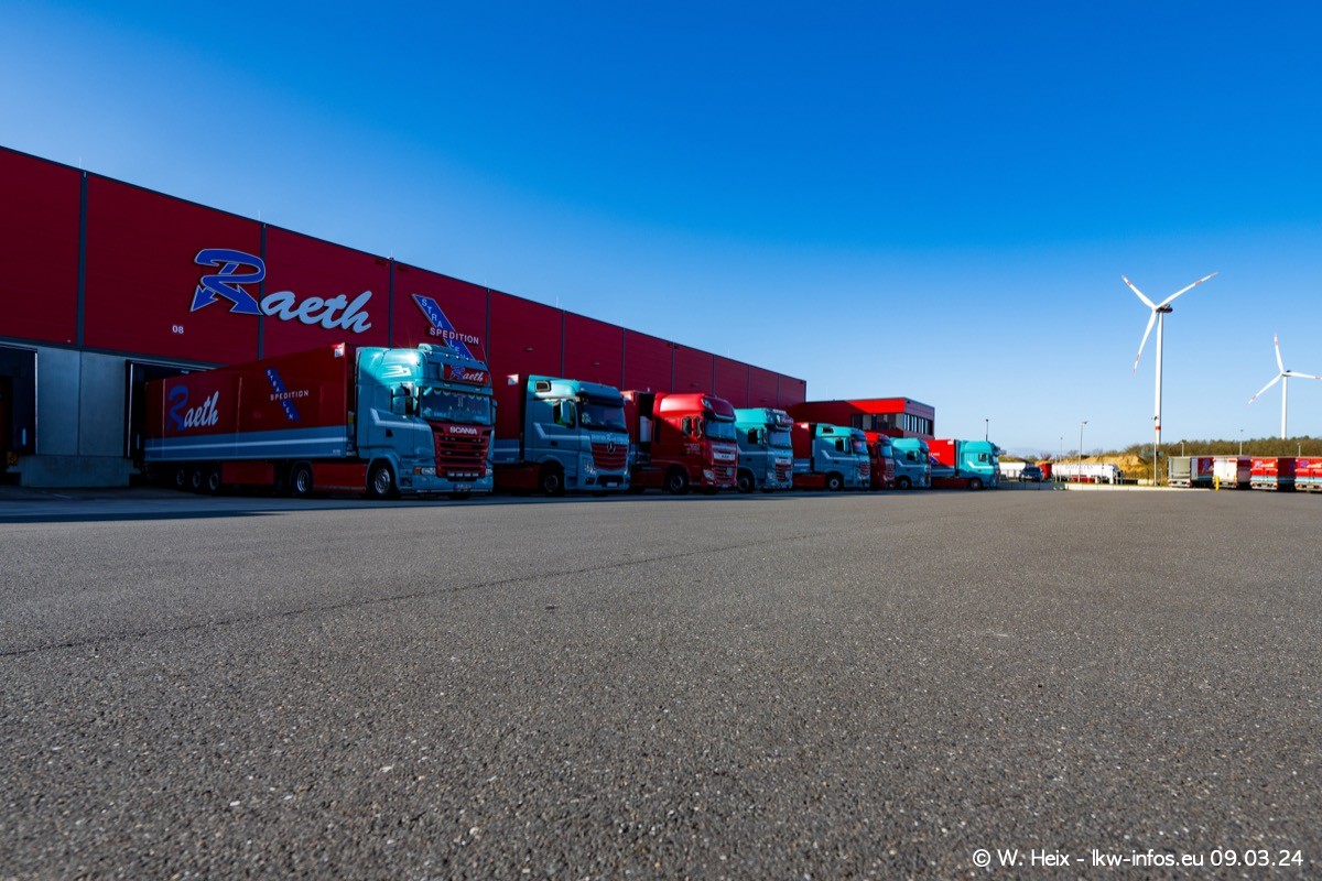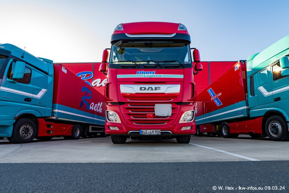 Im letzten Jahr gab es weder neue Fotos noch den sonst üblichen Weihnachtsbesuch bei Raeth. Aber jetzt hat es wieder geklappt und es gibt einige neue LKW im Fuhrpark. Seit Anfang März gibt es erstmals seit über 22 Jahren wieder LKW von MAN in Fuhrpark, das sind aktuell vier MAN TGX GX. Drei davon konnte ich fotografieren. Neu ist auch ein weiterer DAF XG. Diesmal sind in den Bildergalerien auch die Fahrzeuge von Plant Logistik. Die Firme gehört ja bekanntlich seit eingien Jahren zu Raeth und einige Fahrzeuge standen auch kombiniert mit Aufliegern von Raeth auf dem Firmengelände.