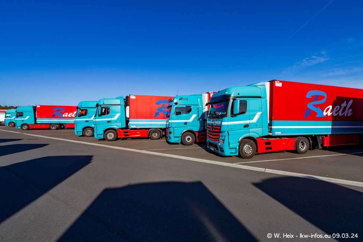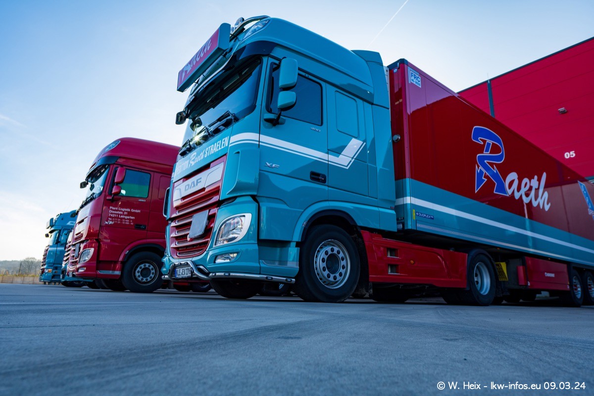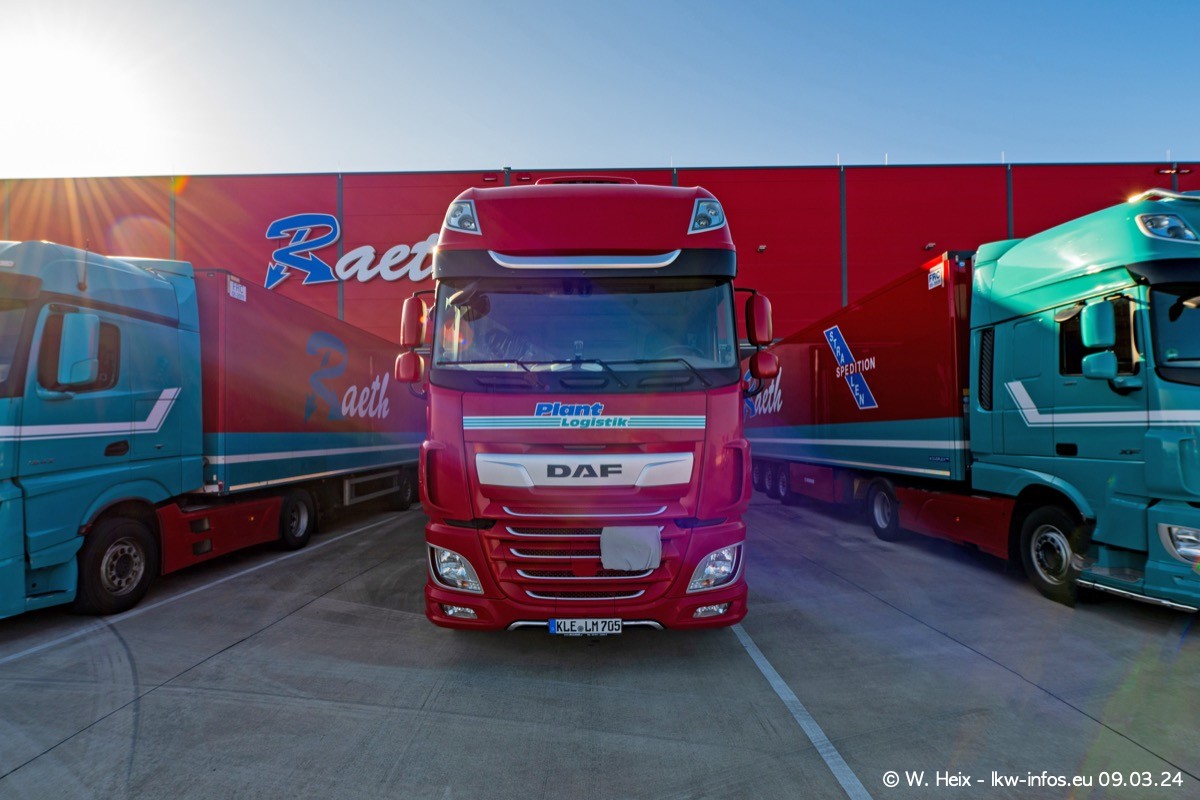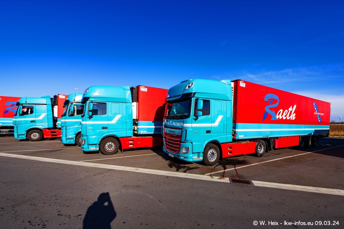 Im letzten Jahr gab es weder neue Fotos noch den sonst üblichen Weihnachtsbesuch bei Raeth. Aber jetzt hat es wieder geklappt und es gibt einige neue LKW im Fuhrpark. Seit Anfang März gibt es erstmals seit über 22 Jahren wieder LKW von MAN in Fuhrpark, das sind aktuell vier MAN TGX GX. Drei davon konnte ich fotografieren. Neu ist auch ein weiterer DAF XG. Diesmal sind in den Bildergalerien auch die Fahrzeuge von Plant Logistik. Die Firme gehört ja bekanntlich seit eingien Jahren zu Raeth und einige Fahrzeuge standen auch kombiniert mit Aufliegern von Raeth auf dem Firmengelände.