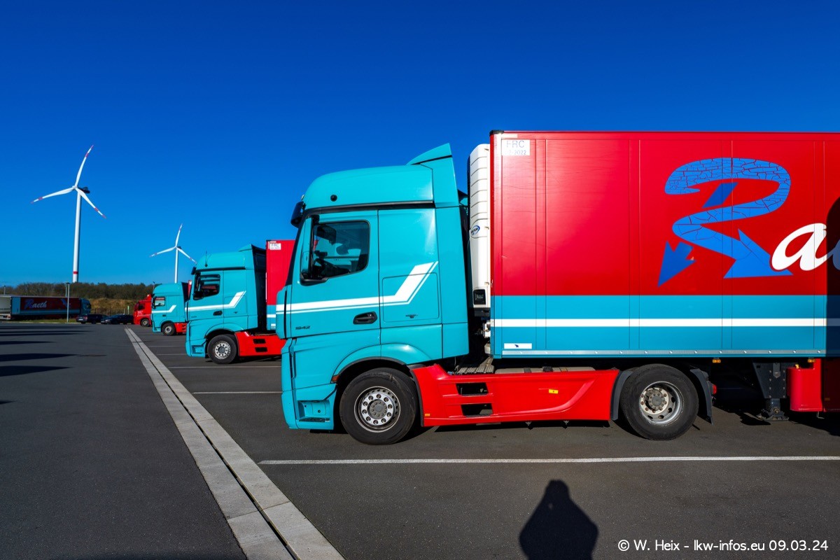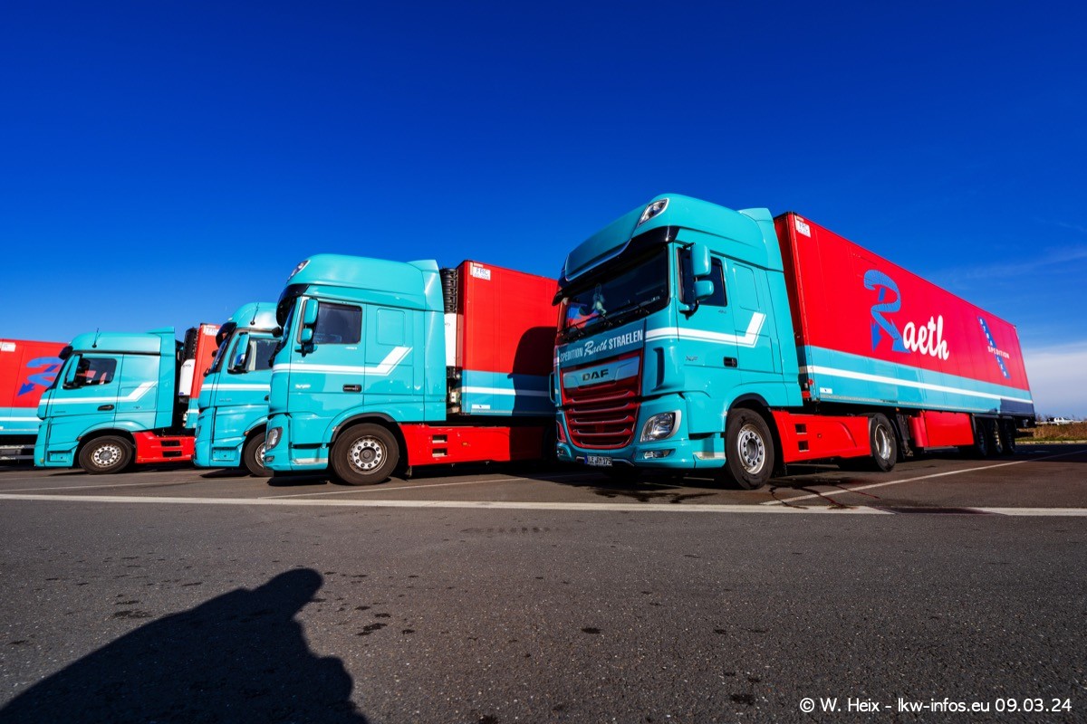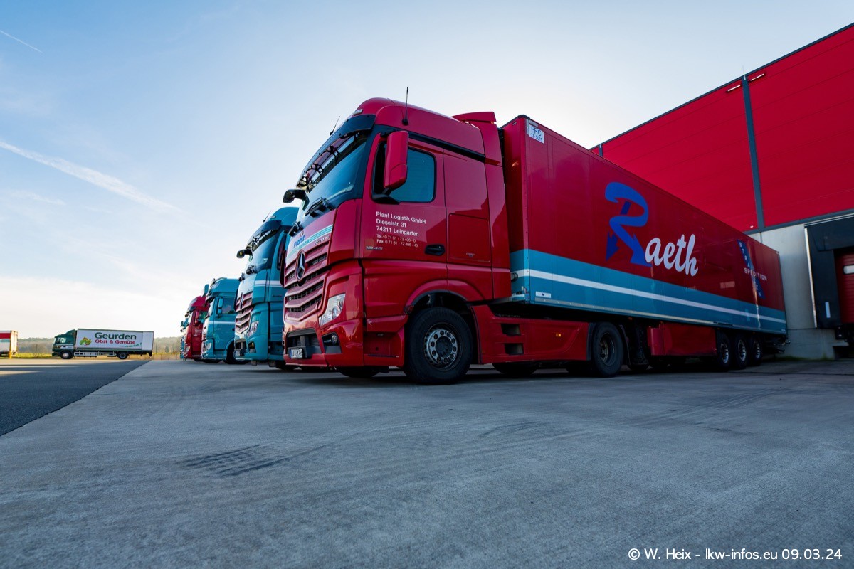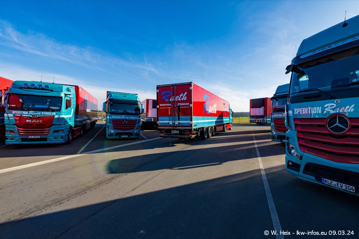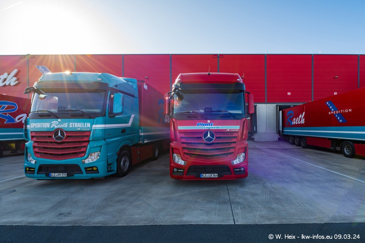 Im letzten Jahr gab es weder neue Fotos noch den sonst üblichen Weihnachtsbesuch bei Raeth. Aber jetzt hat es wieder geklappt und es gibt einige neue LKW im Fuhrpark. Seit Anfang März gibt es erstmals seit über 22 Jahren wieder LKW von MAN in Fuhrpark, das sind aktuell vier MAN TGX GX. Drei davon konnte ich fotografieren. Neu ist auch ein weiterer DAF XG. Diesmal sind in den Bildergalerien auch die Fahrzeuge von Plant Logistik. Die Firme gehört ja bekanntlich seit eingien Jahren zu Raeth und einige Fahrzeuge standen auch kombiniert mit Aufliegern von Raeth auf dem Firmengelände.