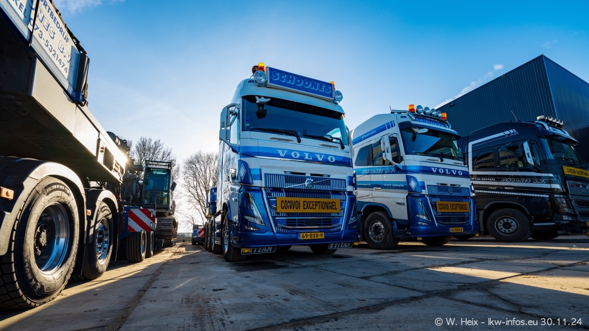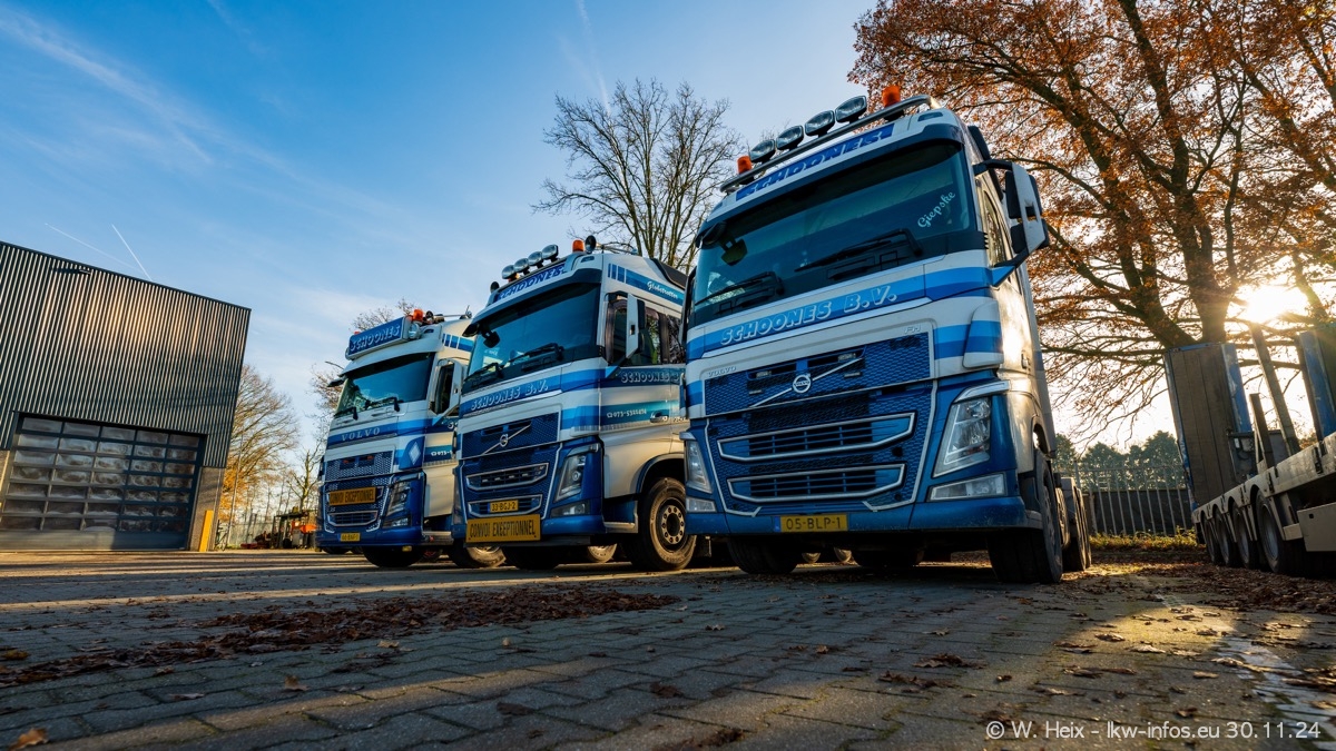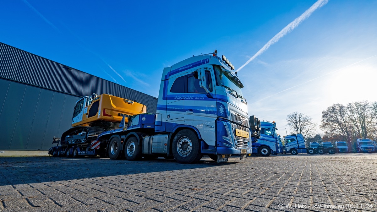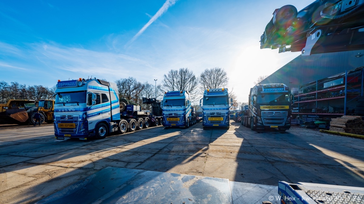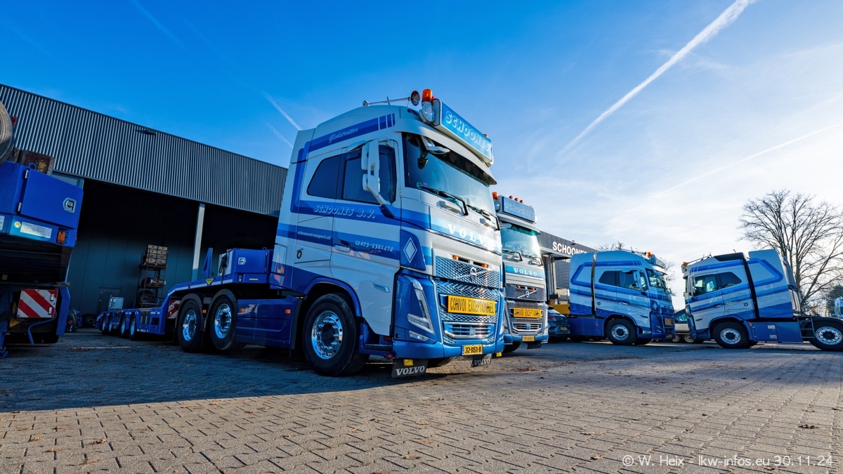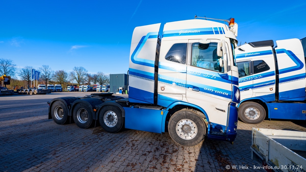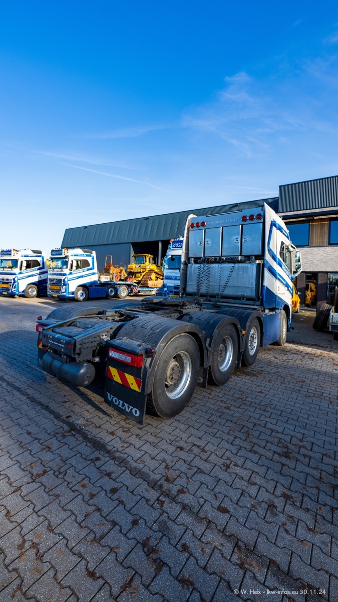 Seit meinem letzten Besuch im Februar sind einige neue LKW in den Fuhrpark gekommen. Das sind einige VOLVO FH 5 sowie fünf VOLVO FH16 (vier Vierachser und ein Fünfachser). Ein sehr großer Teil der LKW war diesmal zuhause. Und das schon winterliche Wetter passte auch.