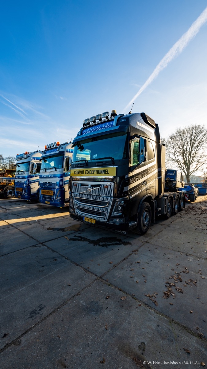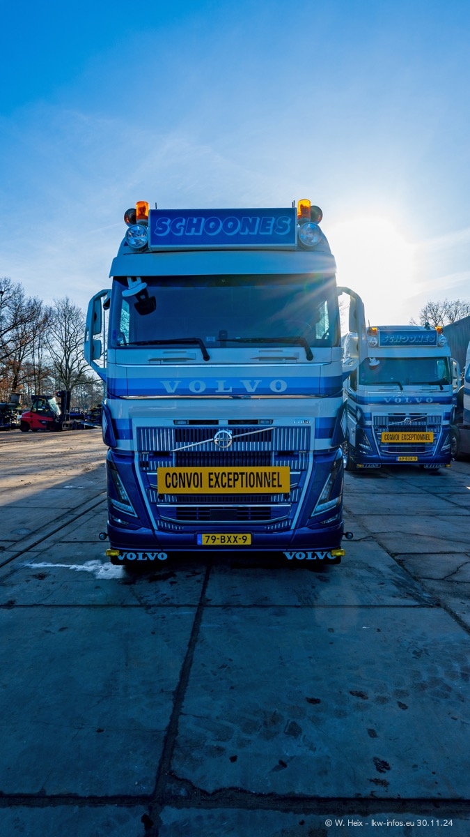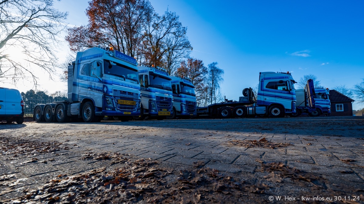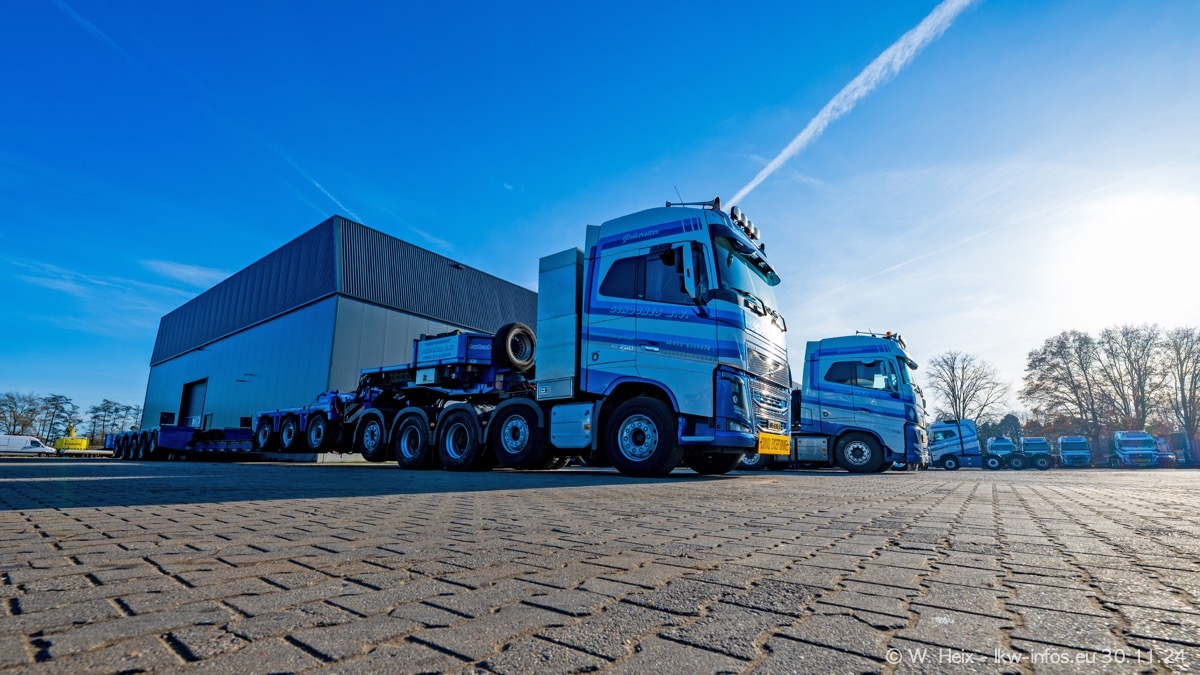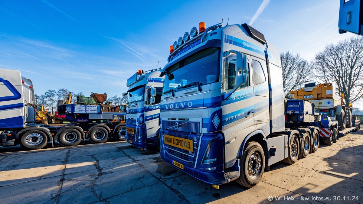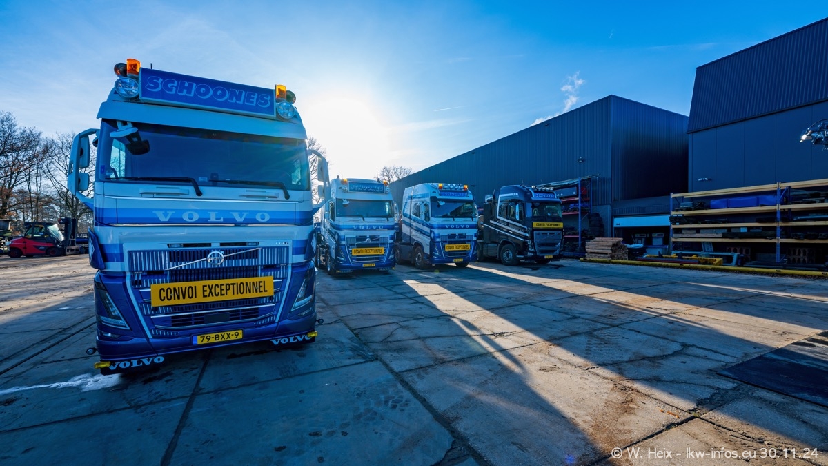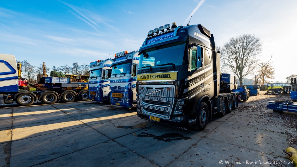 Seit meinem letzten Besuch im Februar sind einige neue LKW in den Fuhrpark gekommen. Das sind einige VOLVO FH 5 sowie fünf VOLVO FH16 (vier Vierachser und ein Fünfachser). Ein sehr großer Teil der LKW war diesmal zuhause. Und das schon winterliche Wetter passte auch.