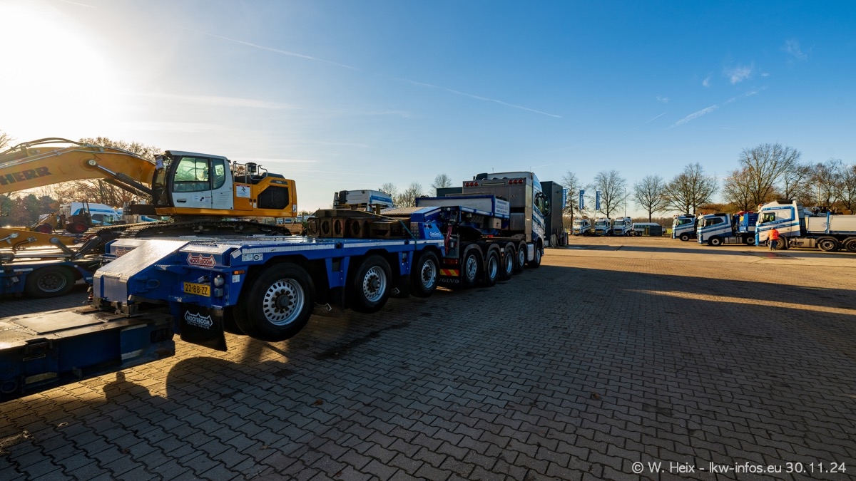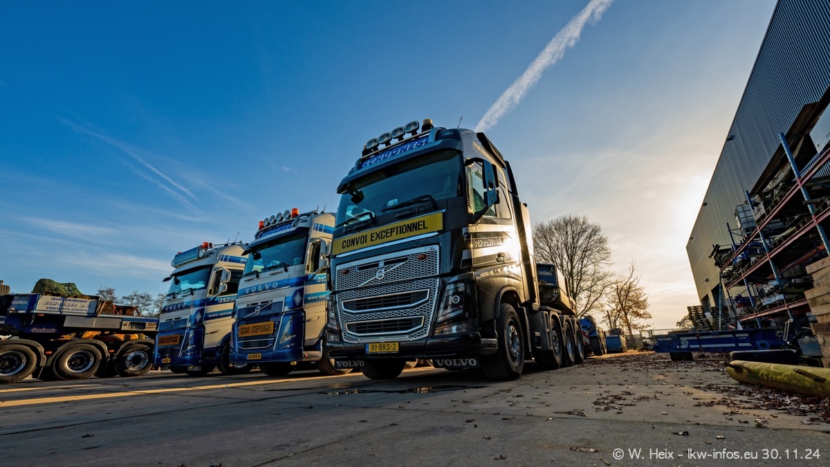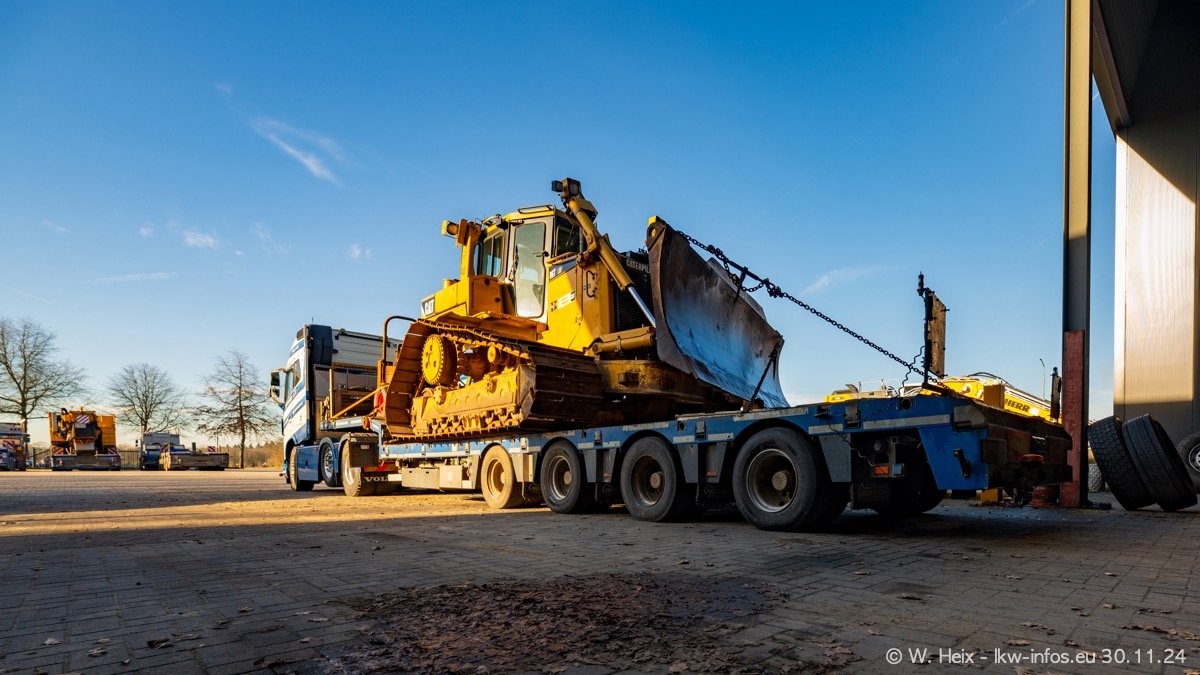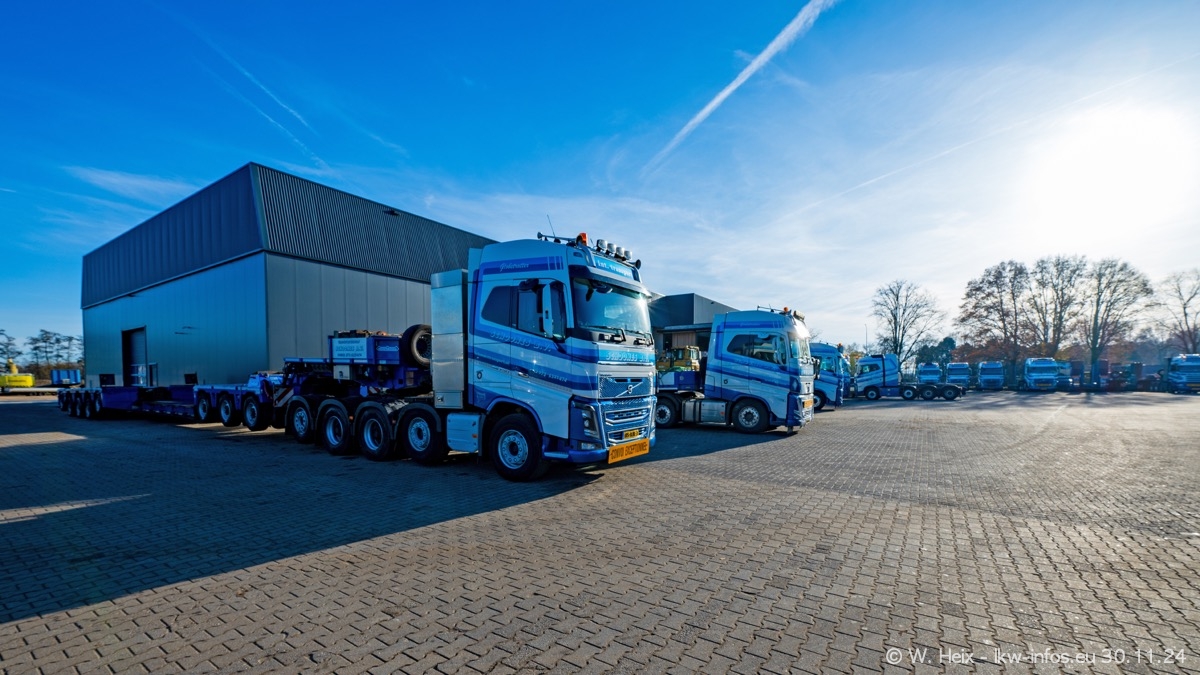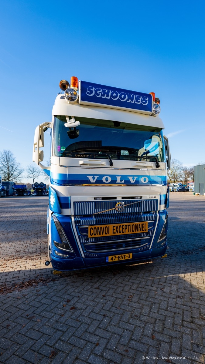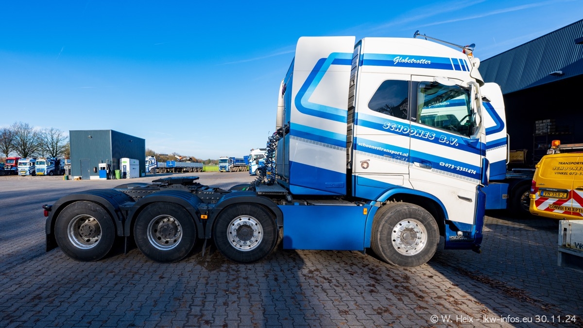 Seit meinem letzten Besuch im Februar sind einige neue LKW in den Fuhrpark gekommen. Das sind einige VOLVO FH 5 sowie fünf VOLVO FH16 (vier Vierachser und ein Fünfachser). Ein sehr großer Teil der LKW war diesmal zuhause. Und das schon winterliche Wetter passte auch.