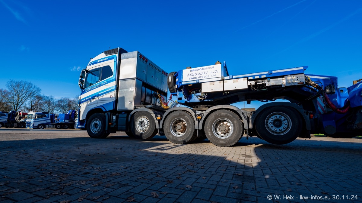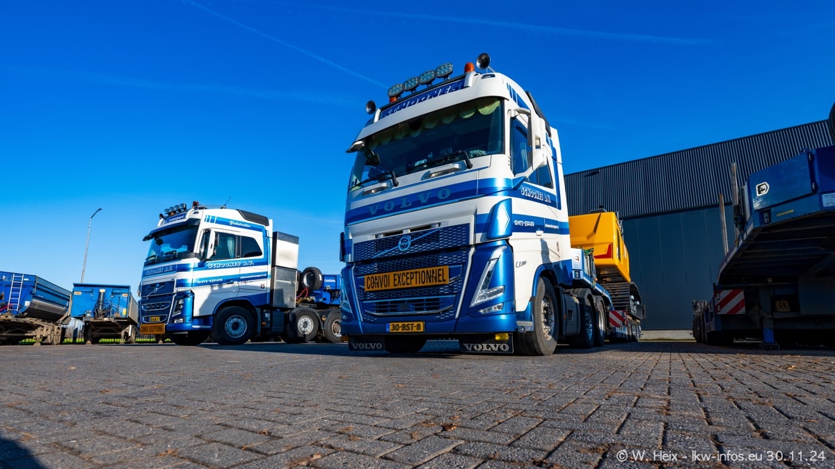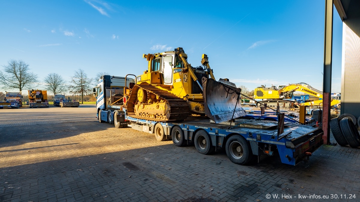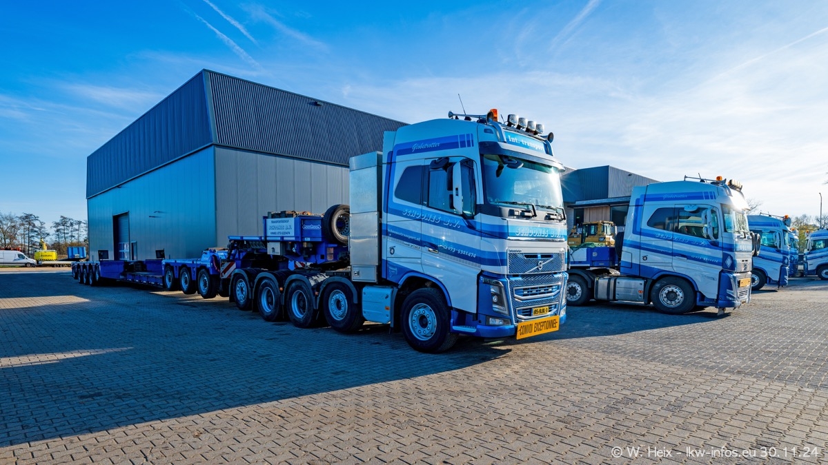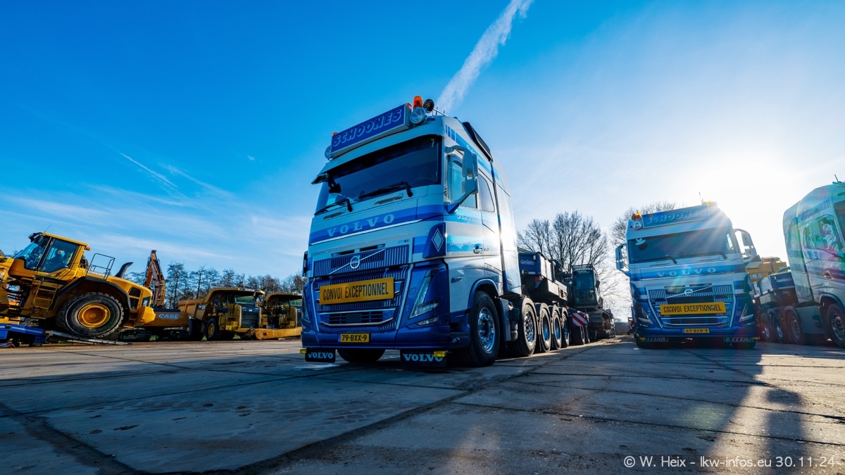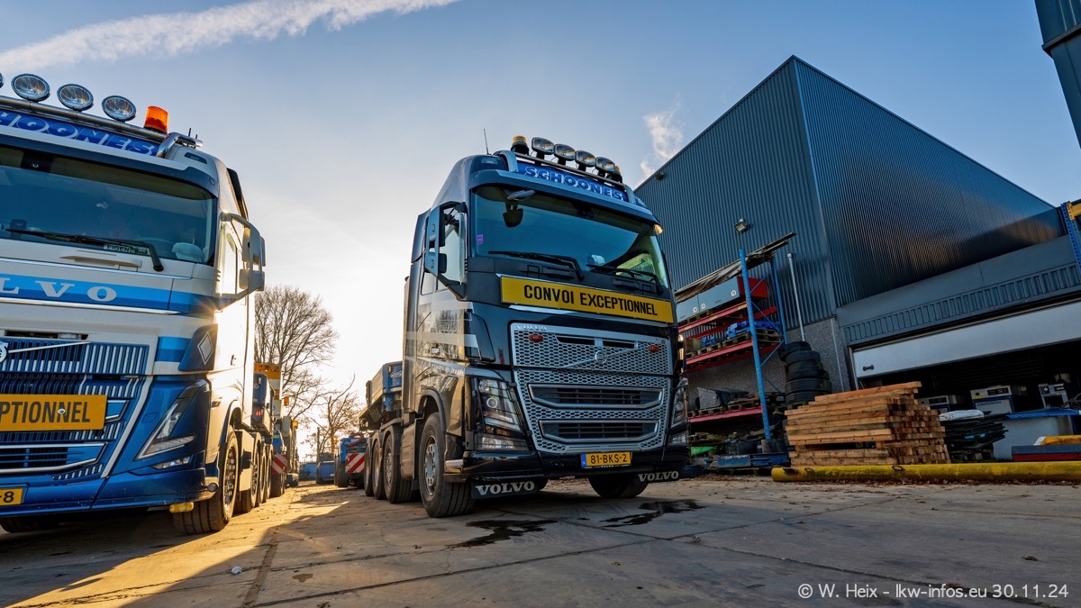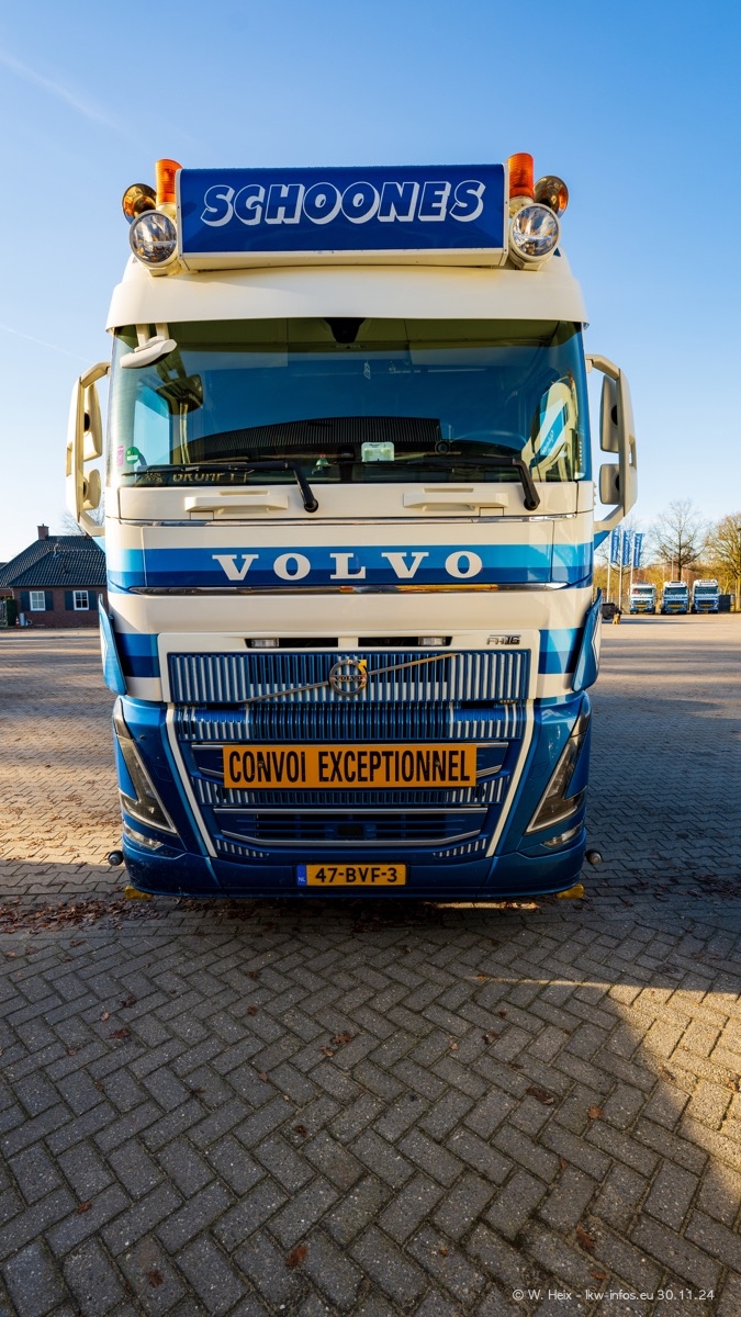 Seit meinem letzten Besuch im Februar sind einige neue LKW in den Fuhrpark gekommen. Das sind einige VOLVO FH 5 sowie fünf VOLVO FH16 (vier Vierachser und ein Fünfachser). Ein sehr großer Teil der LKW war diesmal zuhause. Und das schon winterliche Wetter passte auch.