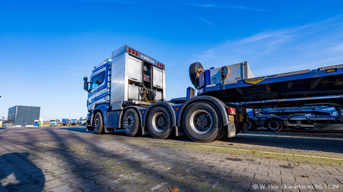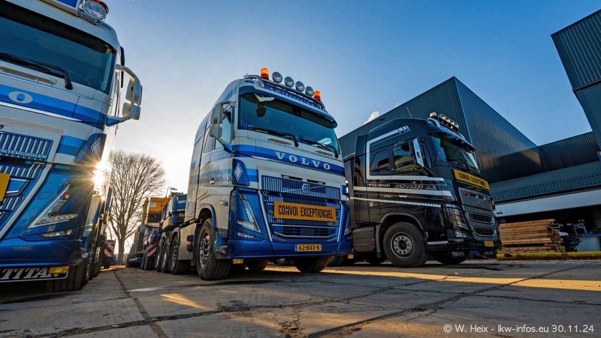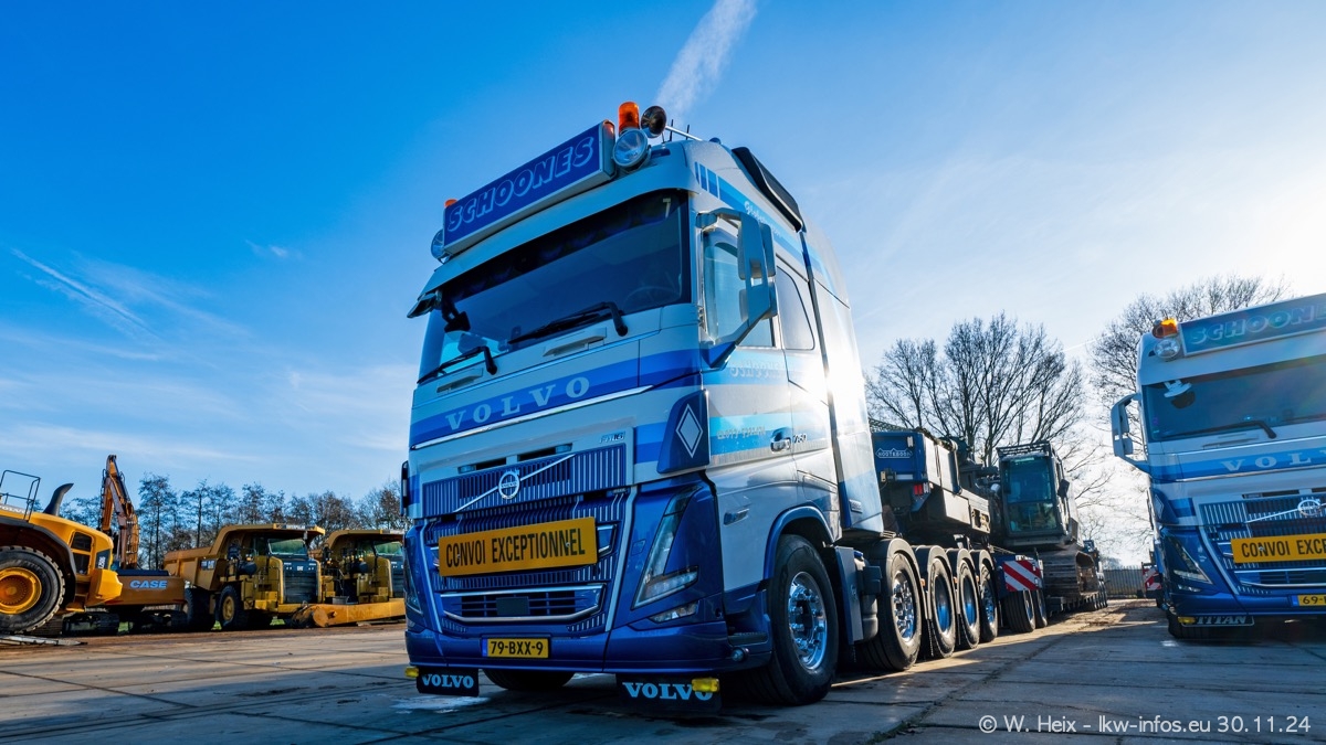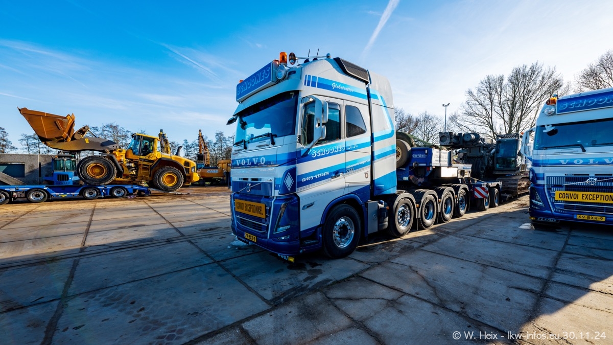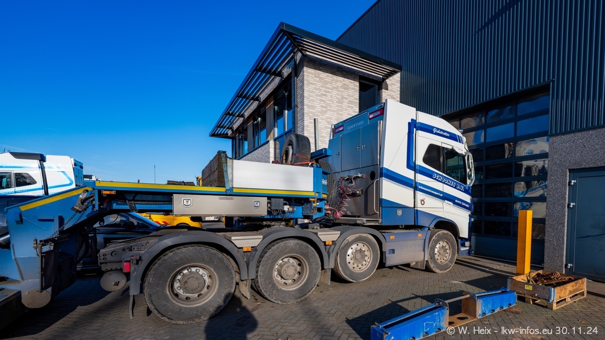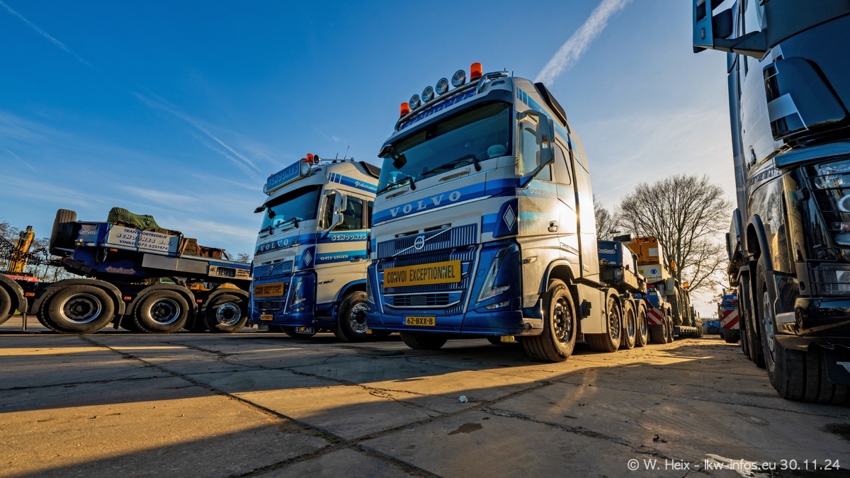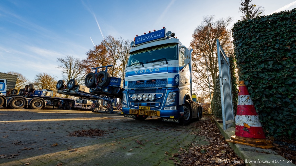 Seit meinem letzten Besuch im Februar sind einige neue LKW in den Fuhrpark gekommen. Das sind einige VOLVO FH 5 sowie fünf VOLVO FH16 (vier Vierachser und ein Fünfachser). Ein sehr großer Teil der LKW war diesmal zuhause. Und das schon winterliche Wetter passte auch.