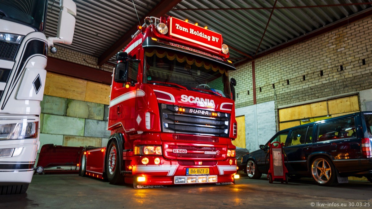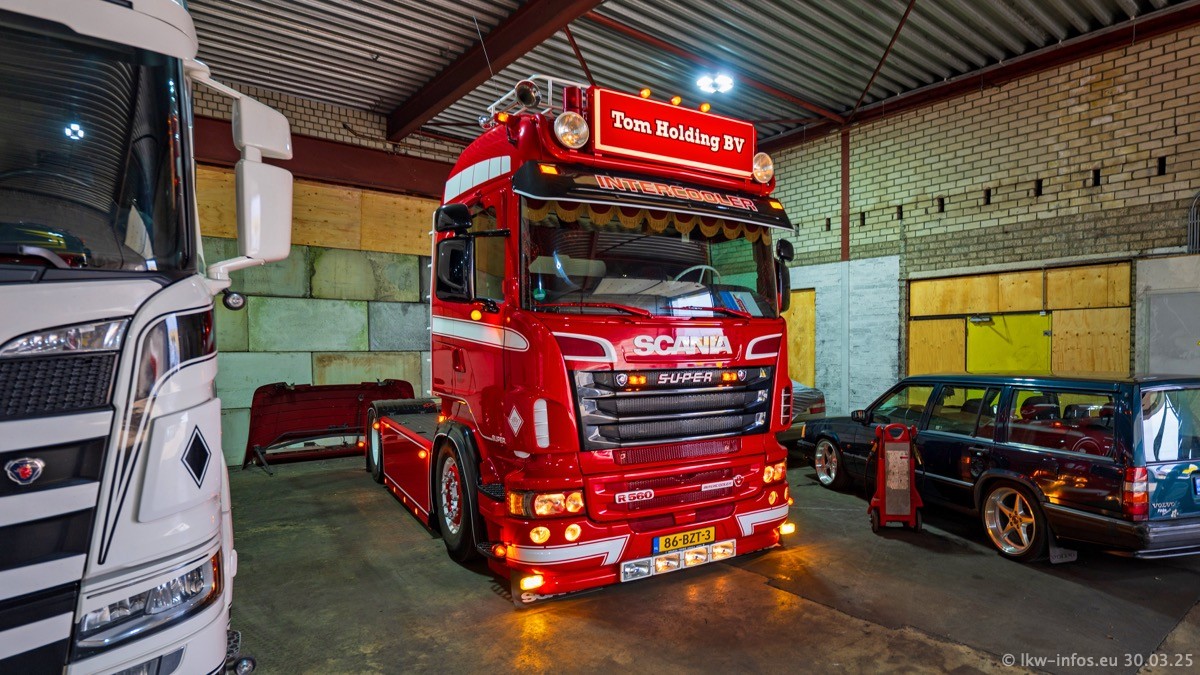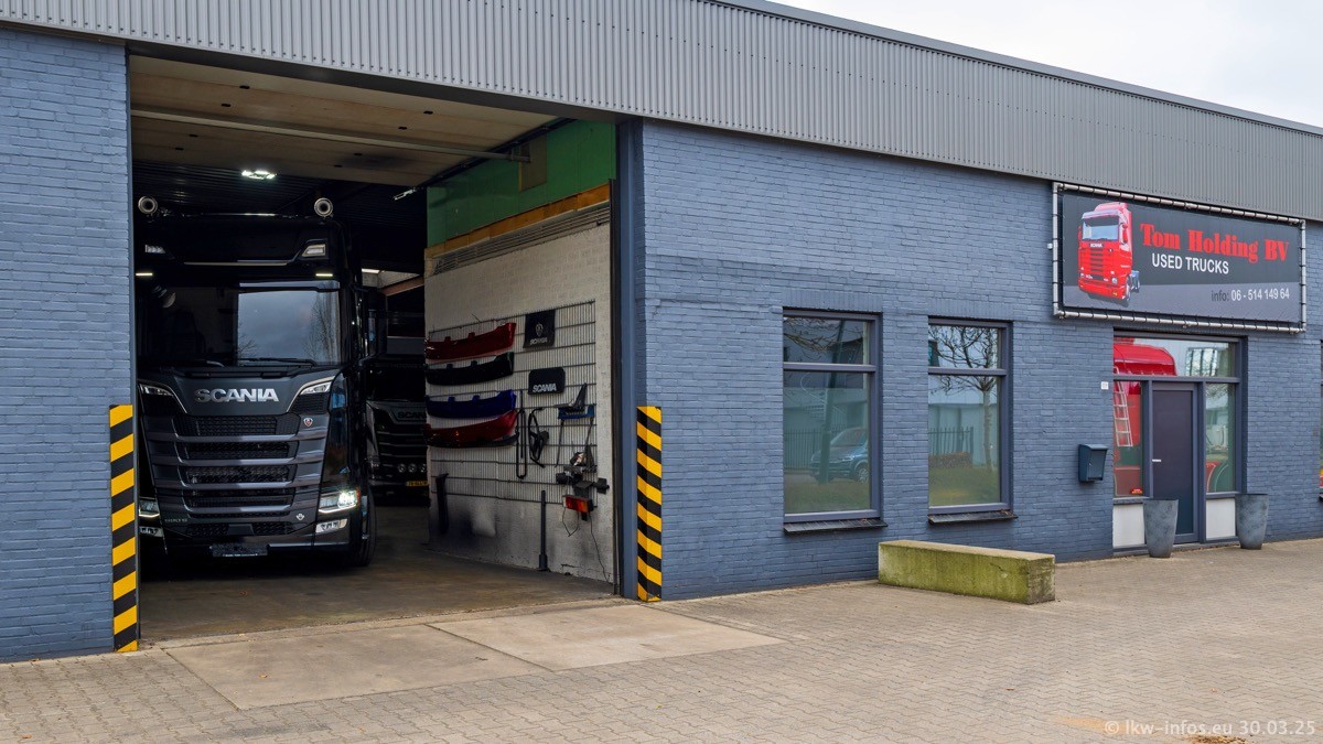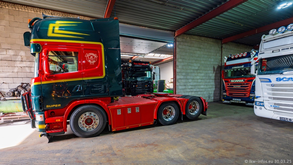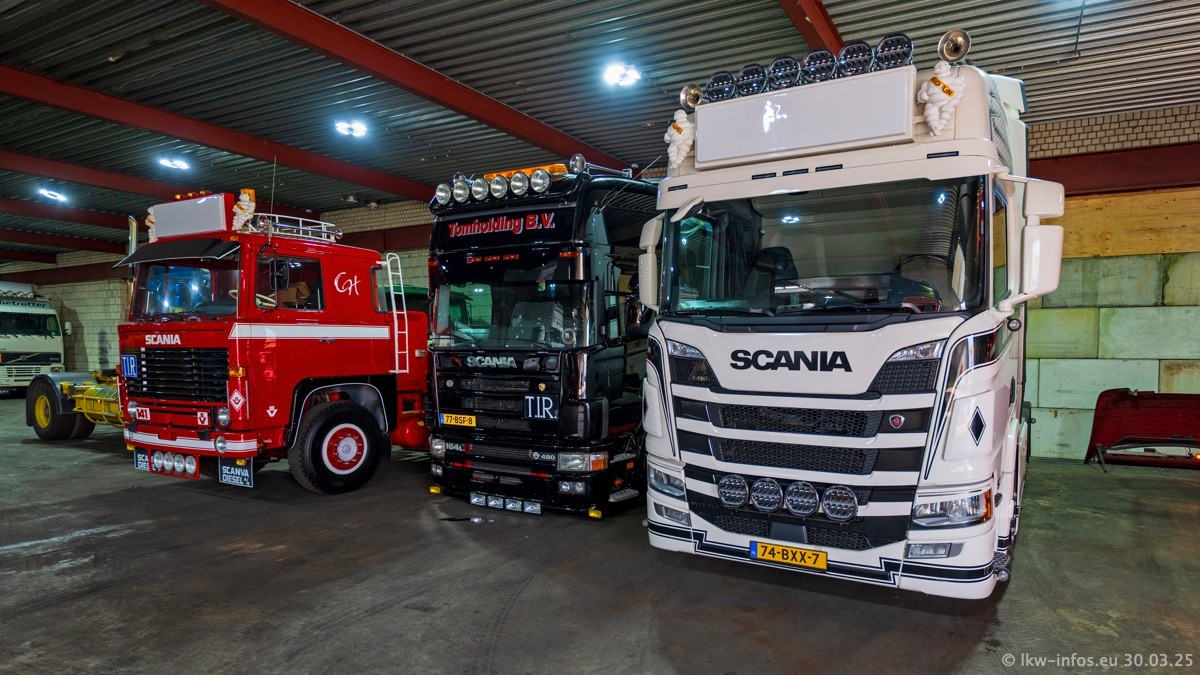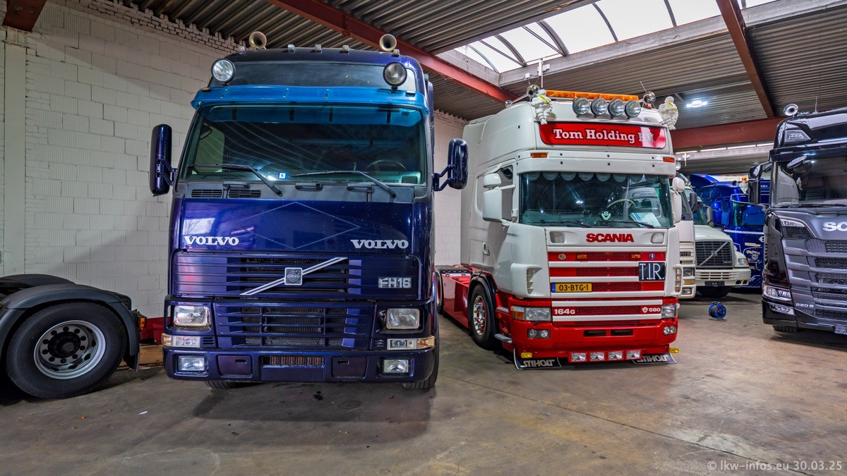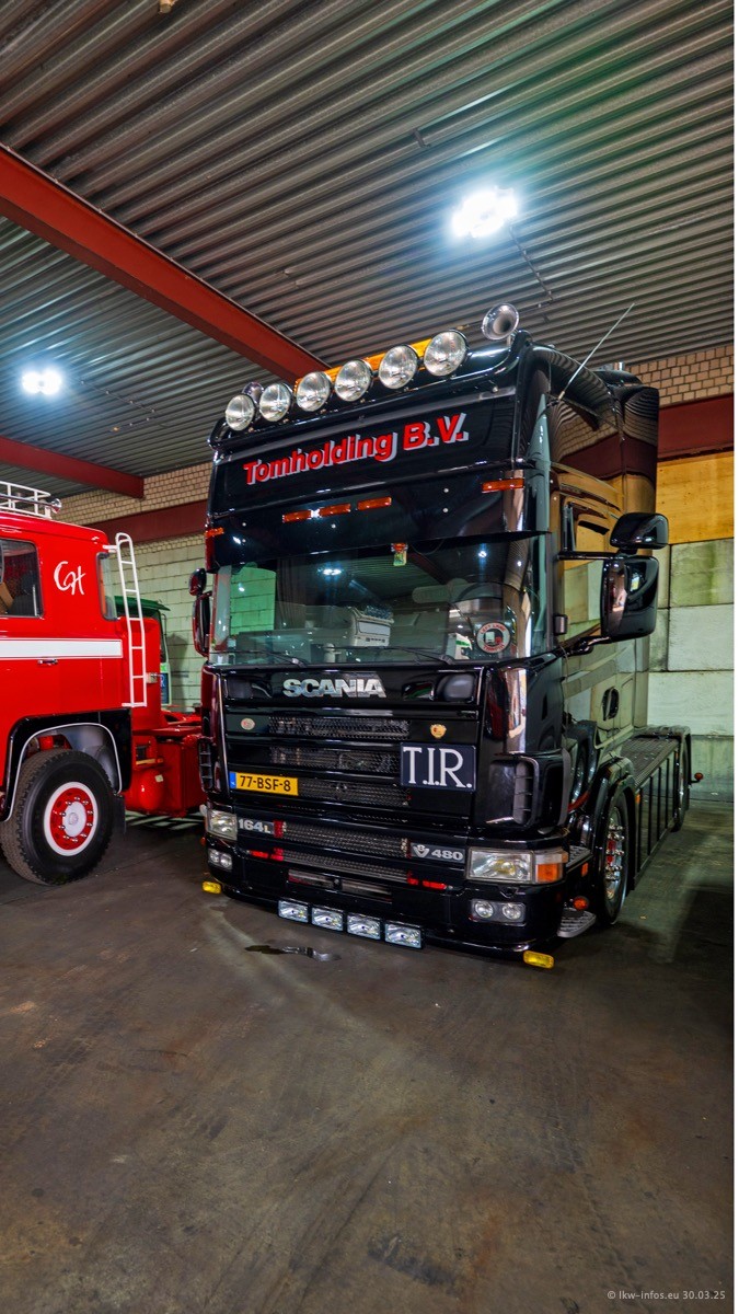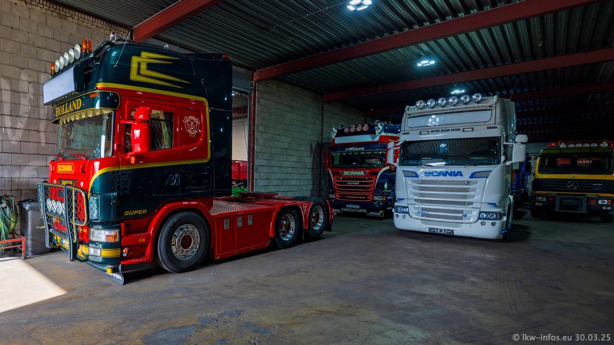 Inzwischen gibt es bei Tom Holding noch mehr Fahrzeuge als bisher, darunter auch einige neue. Der VOLVO VT 5 460 (die Nr. 15 von Vlastuin) ist neu und war eigentlich für einen Kunden in Dänemark gedacht, der das Fahrzeug aber nicht gekauft hat. Die beiden roten SCANIA 141 V8 und R 560 V8 kommen von einer bekannten deutschen Firnma und es gibt aktuell einge SCANIA V8 Showtrucks, die zum Verkauf stehen. Darunter auch wieder ein Fahrzeug von Lansdaal. Diesmal haben wir ein reines Fotoshooting gemacht da es aktuell so viele Fahrzeuge gibt. Videos und Film gibt es dann beim nächsten Besuch wieder.