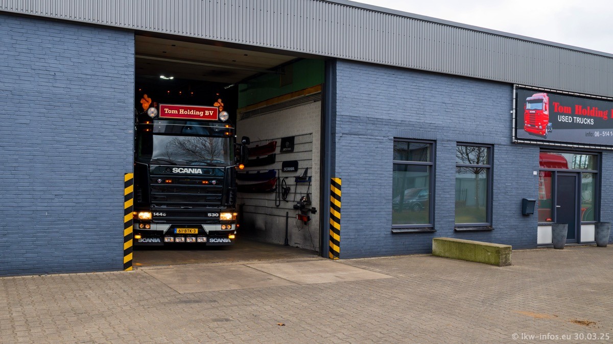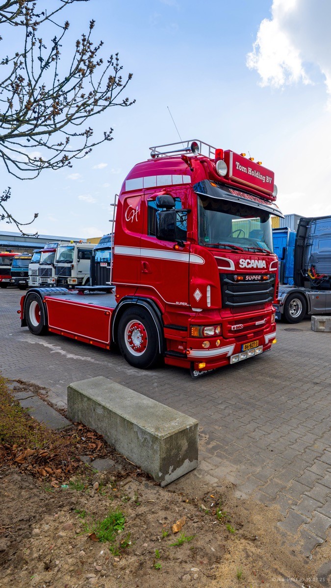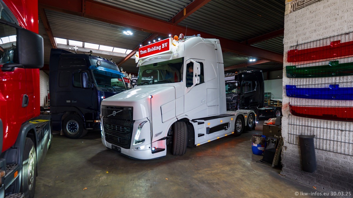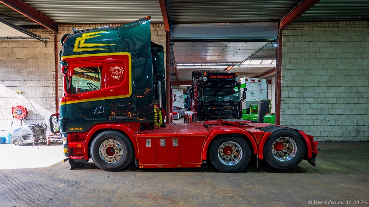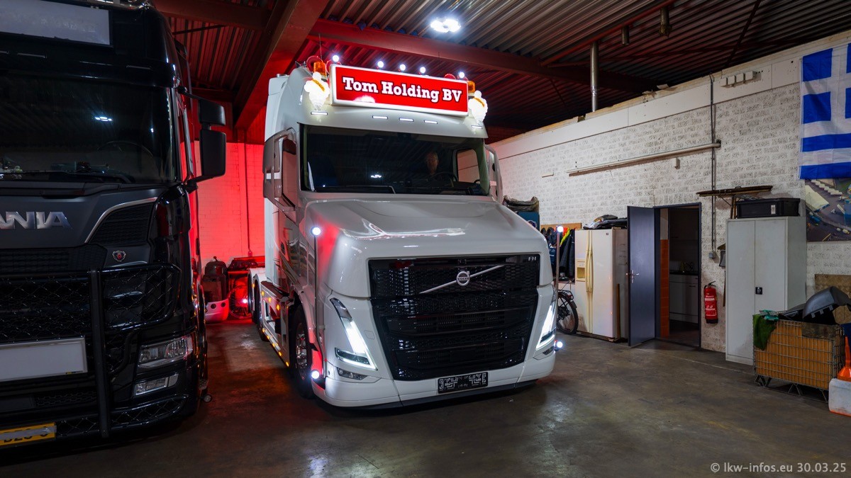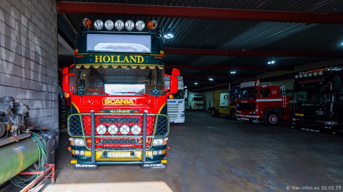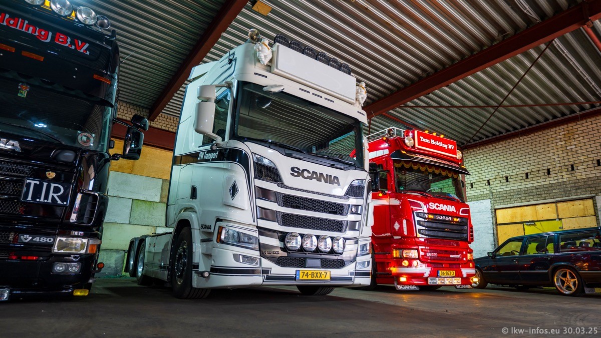 Inzwischen gibt es bei Tom Holding noch mehr Fahrzeuge als bisher, darunter auch einige neue. Der VOLVO VT 5 460 (die Nr. 15 von Vlastuin) ist neu und war eigentlich für einen Kunden in Dänemark gedacht, der das Fahrzeug aber nicht gekauft hat. Die beiden roten SCANIA 141 V8 und R 560 V8 kommen von einer bekannten deutschen Firnma und es gibt aktuell einge SCANIA V8 Showtrucks, die zum Verkauf stehen. Darunter auch wieder ein Fahrzeug von Lansdaal. Diesmal haben wir ein reines Fotoshooting gemacht da es aktuell so viele Fahrzeuge gibt. Videos und Film gibt es dann beim nächsten Besuch wieder.