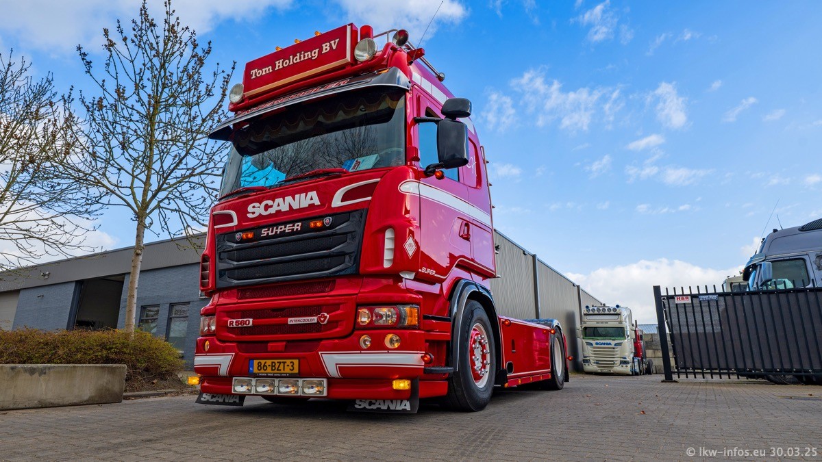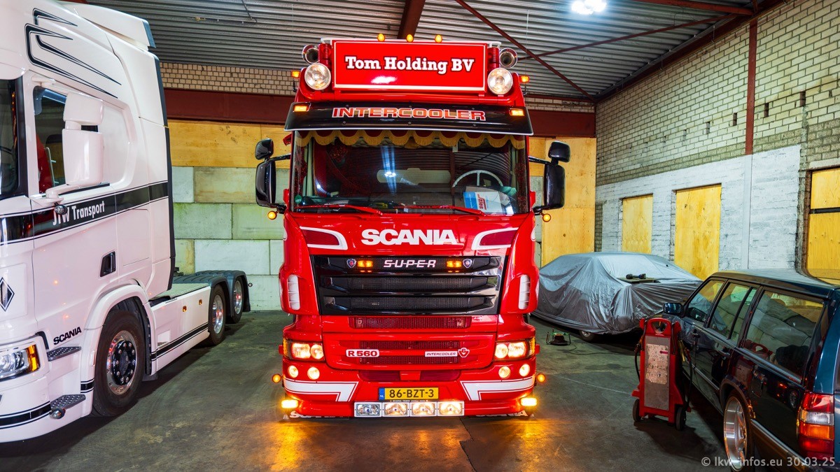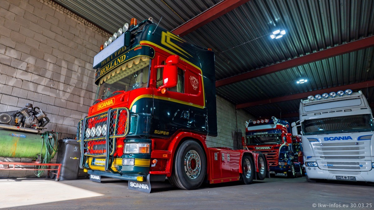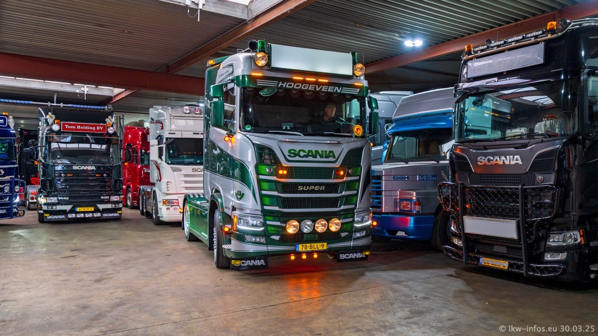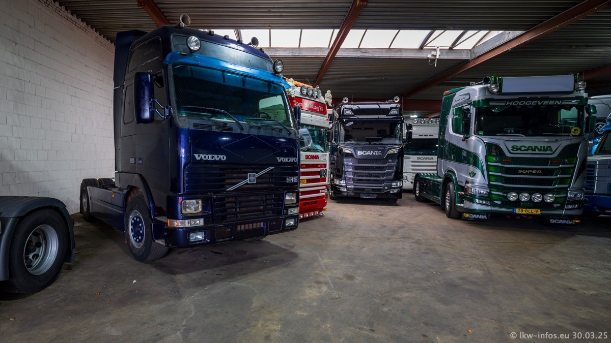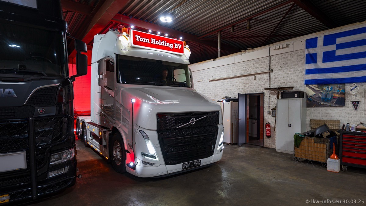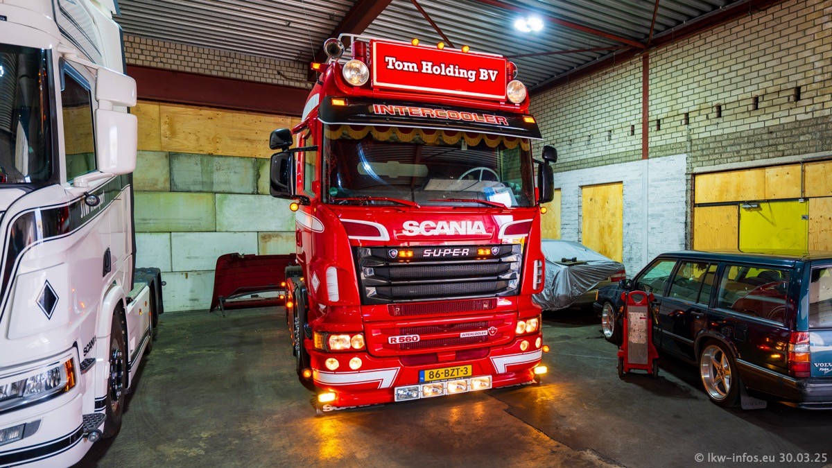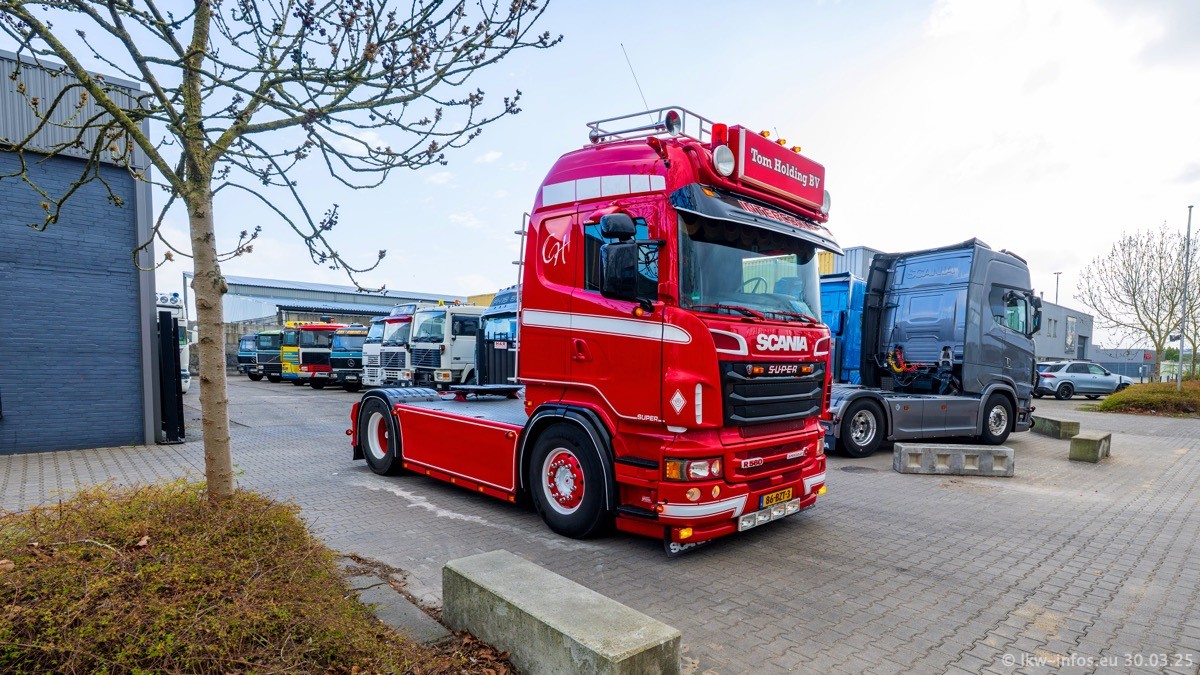 Inzwischen gibt es bei Tom Holding noch mehr Fahrzeuge als bisher, darunter auch einige neue. Der VOLVO VT 5 460 (die Nr. 15 von Vlastuin) ist neu und war eigentlich für einen Kunden in Dänemark gedacht, der das Fahrzeug aber nicht gekauft hat. Die beiden roten SCANIA 141 V8 und R 560 V8 kommen von einer bekannten deutschen Firnma und es gibt aktuell einge SCANIA V8 Showtrucks, die zum Verkauf stehen. Darunter auch wieder ein Fahrzeug von Lansdaal. Diesmal haben wir ein reines Fotoshooting gemacht da es aktuell so viele Fahrzeuge gibt. Videos und Film gibt es dann beim nächsten Besuch wieder.