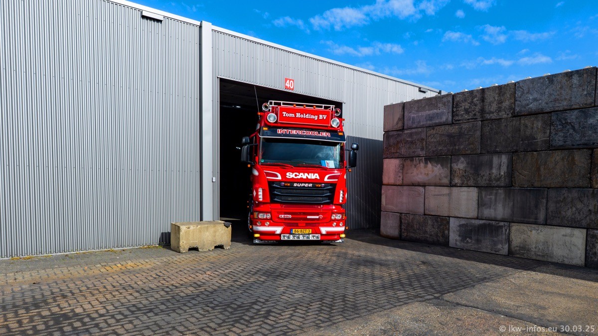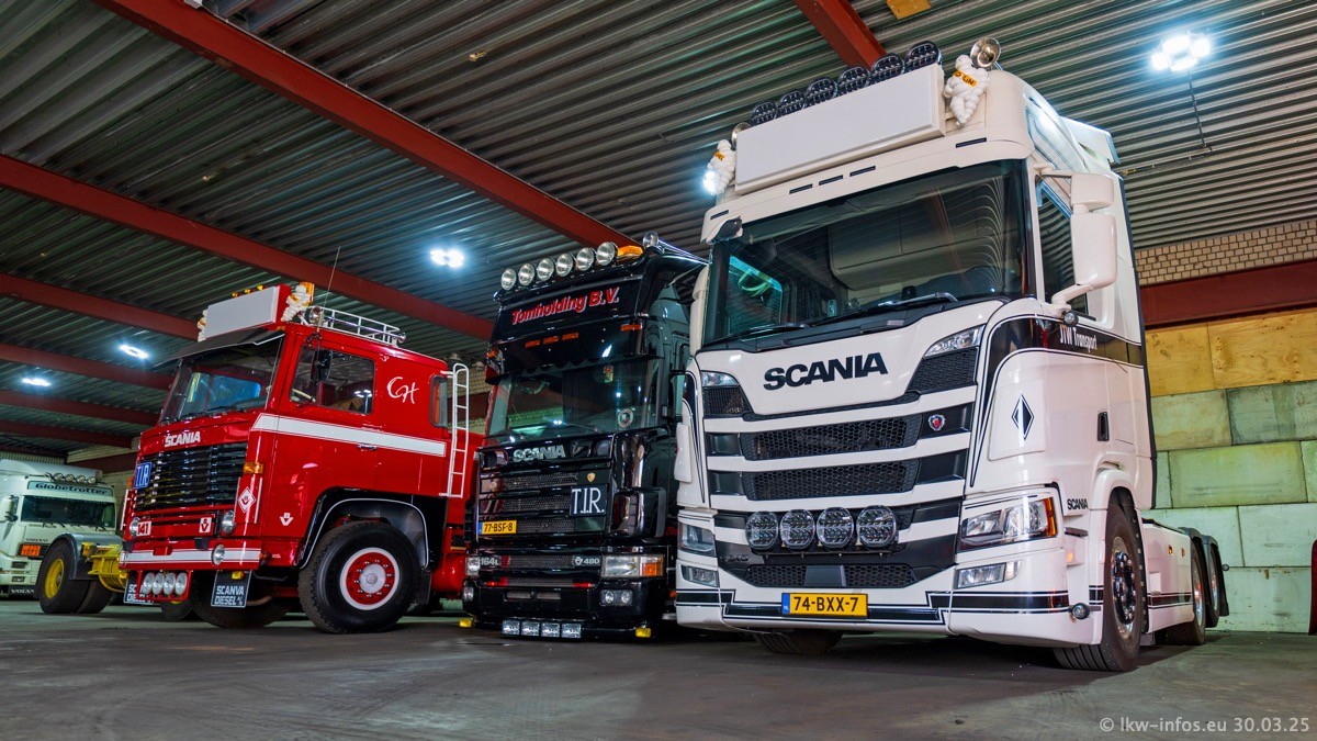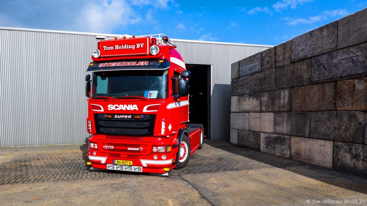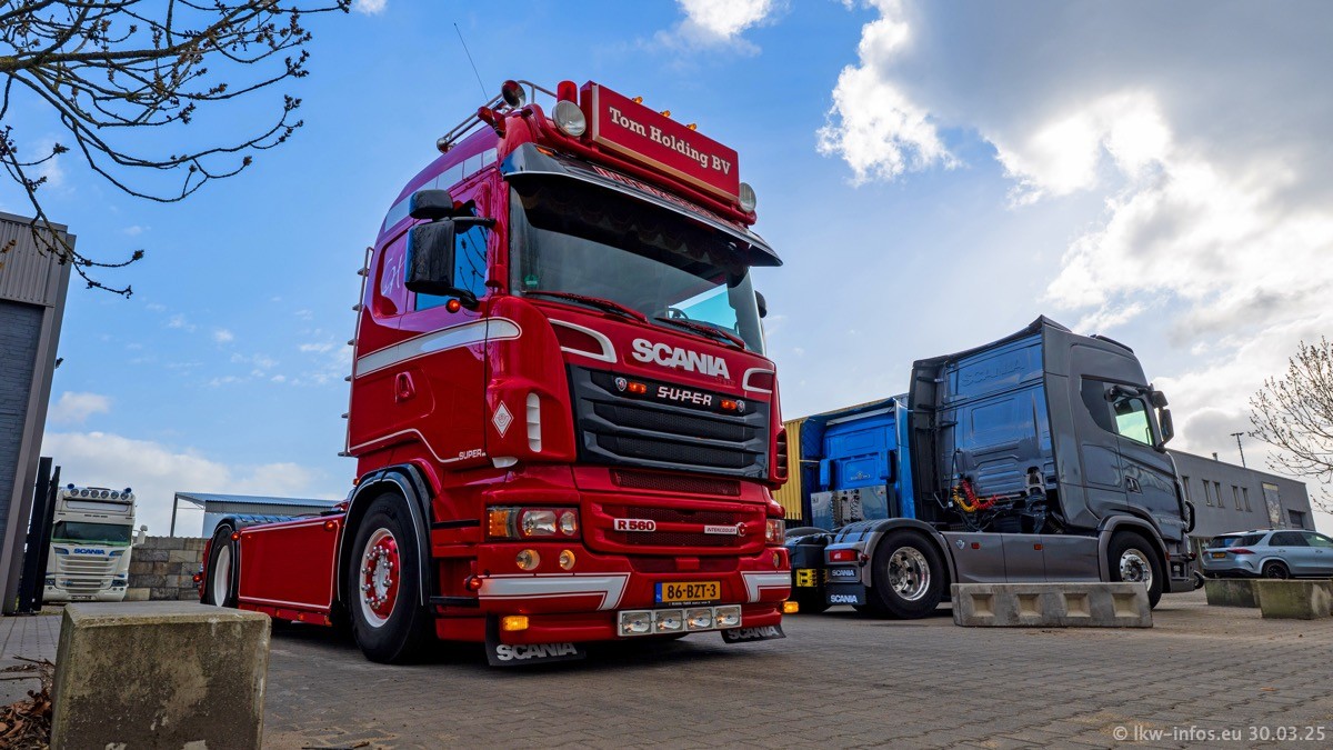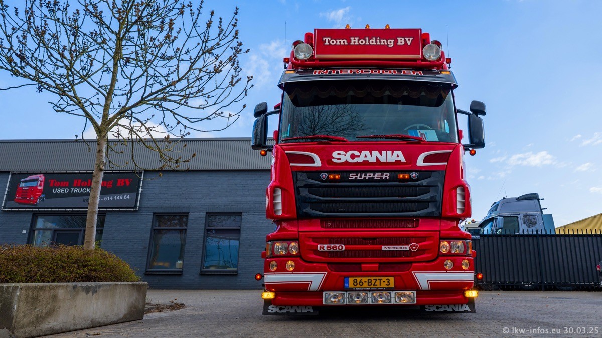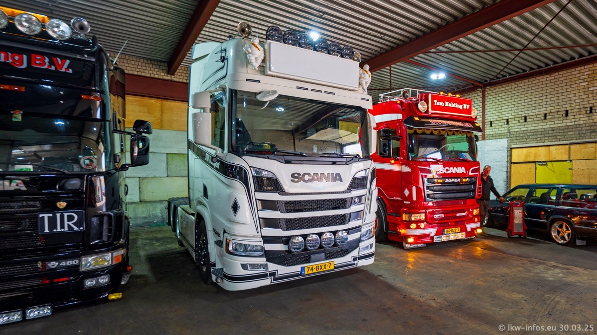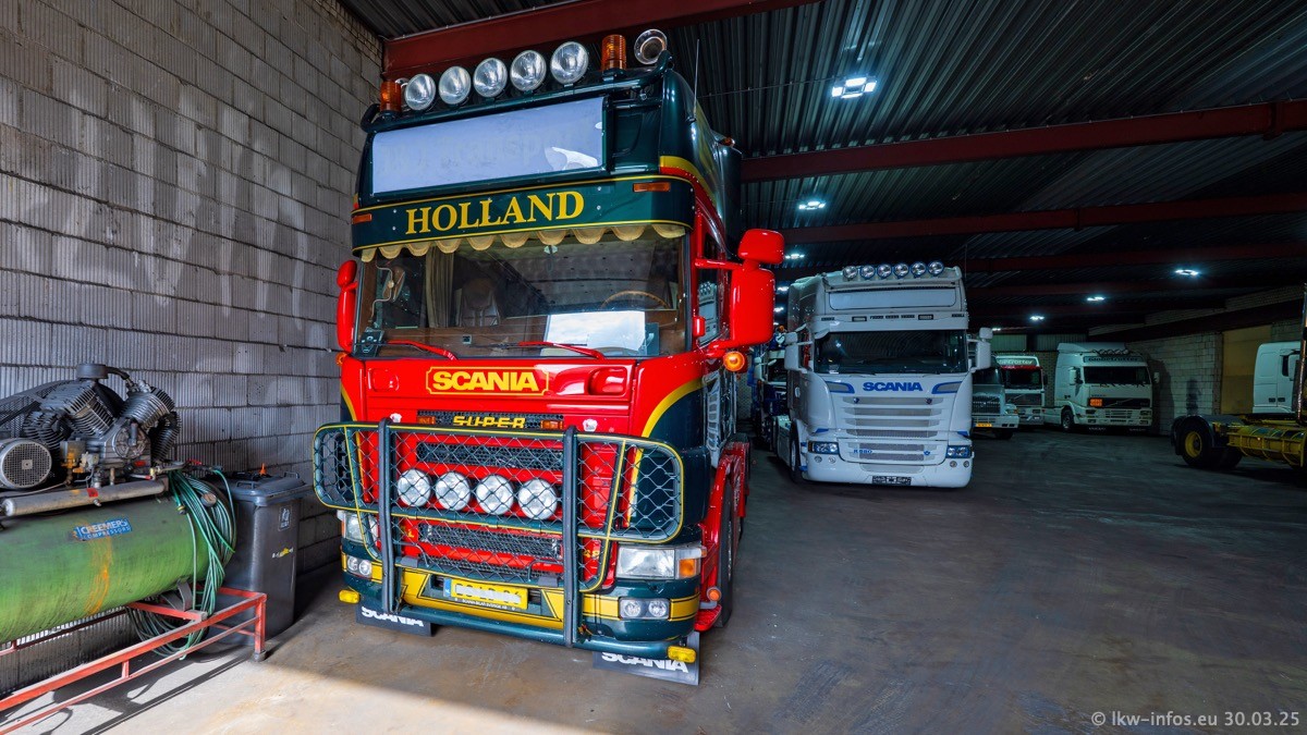 Inzwischen gibt es bei Tom Holding noch mehr Fahrzeuge als bisher, darunter auch einige neue. Der VOLVO VT 5 460 (die Nr. 15 von Vlastuin) ist neu und war eigentlich für einen Kunden in Dänemark gedacht, der das Fahrzeug aber nicht gekauft hat. Die beiden roten SCANIA 141 V8 und R 560 V8 kommen von einer bekannten deutschen Firnma und es gibt aktuell einge SCANIA V8 Showtrucks, die zum Verkauf stehen. Darunter auch wieder ein Fahrzeug von Lansdaal. Diesmal haben wir ein reines Fotoshooting gemacht da es aktuell so viele Fahrzeuge gibt. Videos und Film gibt es dann beim nächsten Besuch wieder.