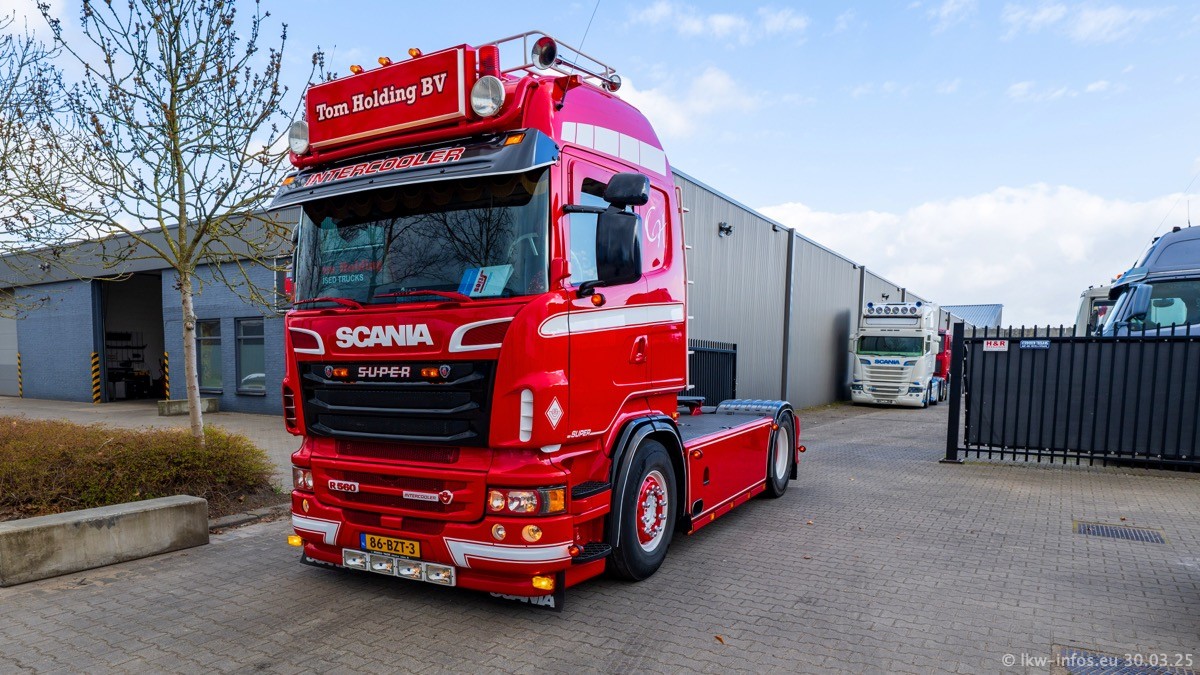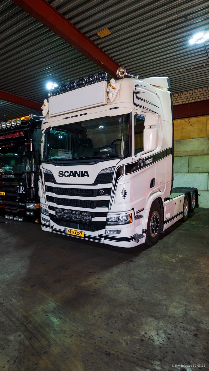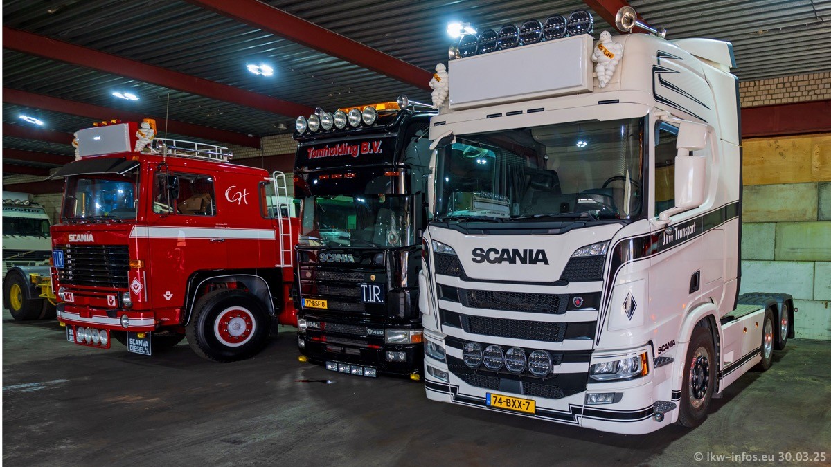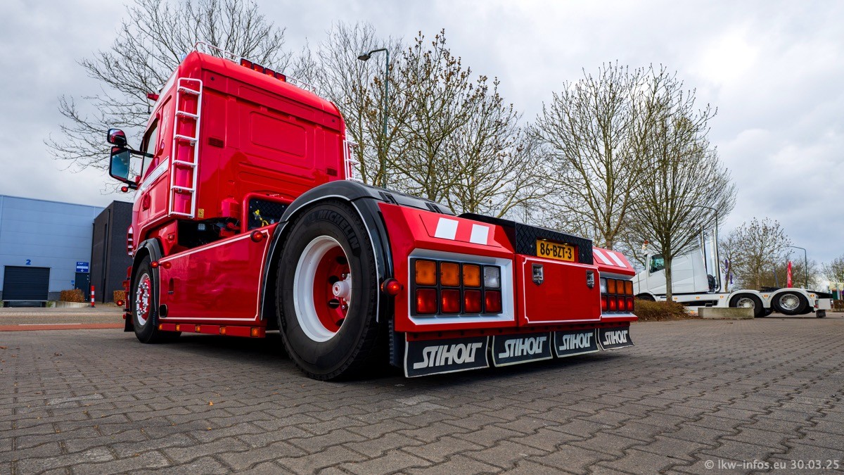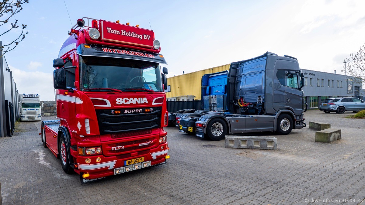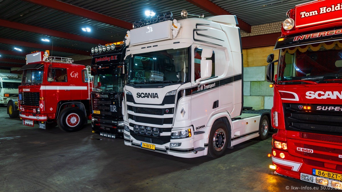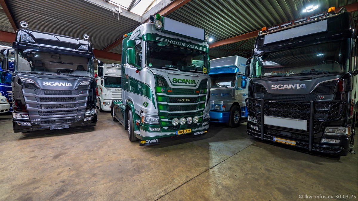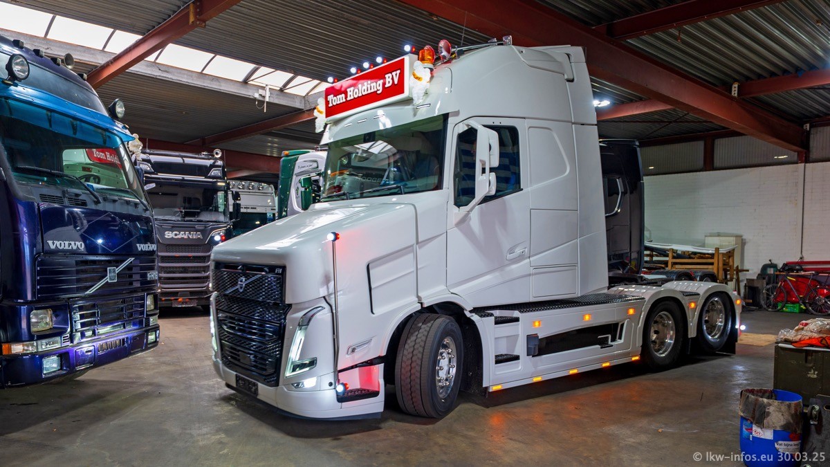 Inzwischen gibt es bei Tom Holding noch mehr Fahrzeuge als bisher, darunter auch einige neue. Der VOLVO VT 5 460 (die Nr. 15 von Vlastuin) ist neu und war eigentlich für einen Kunden in Dänemark gedacht, der das Fahrzeug aber nicht gekauft hat. Die beiden roten SCANIA 141 V8 und R 560 V8 kommen von einer bekannten deutschen Firnma und es gibt aktuell einge SCANIA V8 Showtrucks, die zum Verkauf stehen. Darunter auch wieder ein Fahrzeug von Lansdaal. Diesmal haben wir ein reines Fotoshooting gemacht da es aktuell so viele Fahrzeuge gibt. Videos und Film gibt es dann beim nächsten Besuch wieder.
